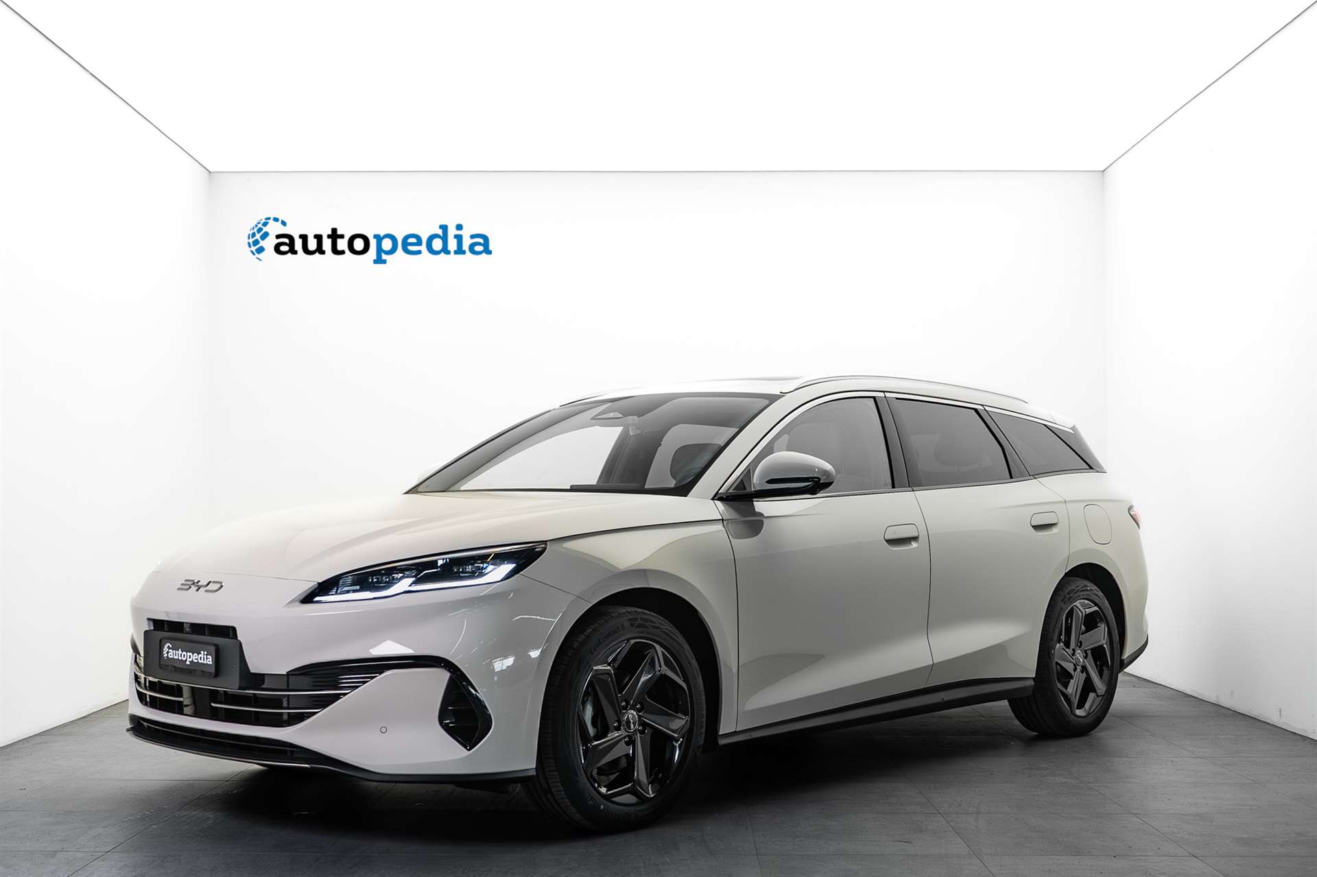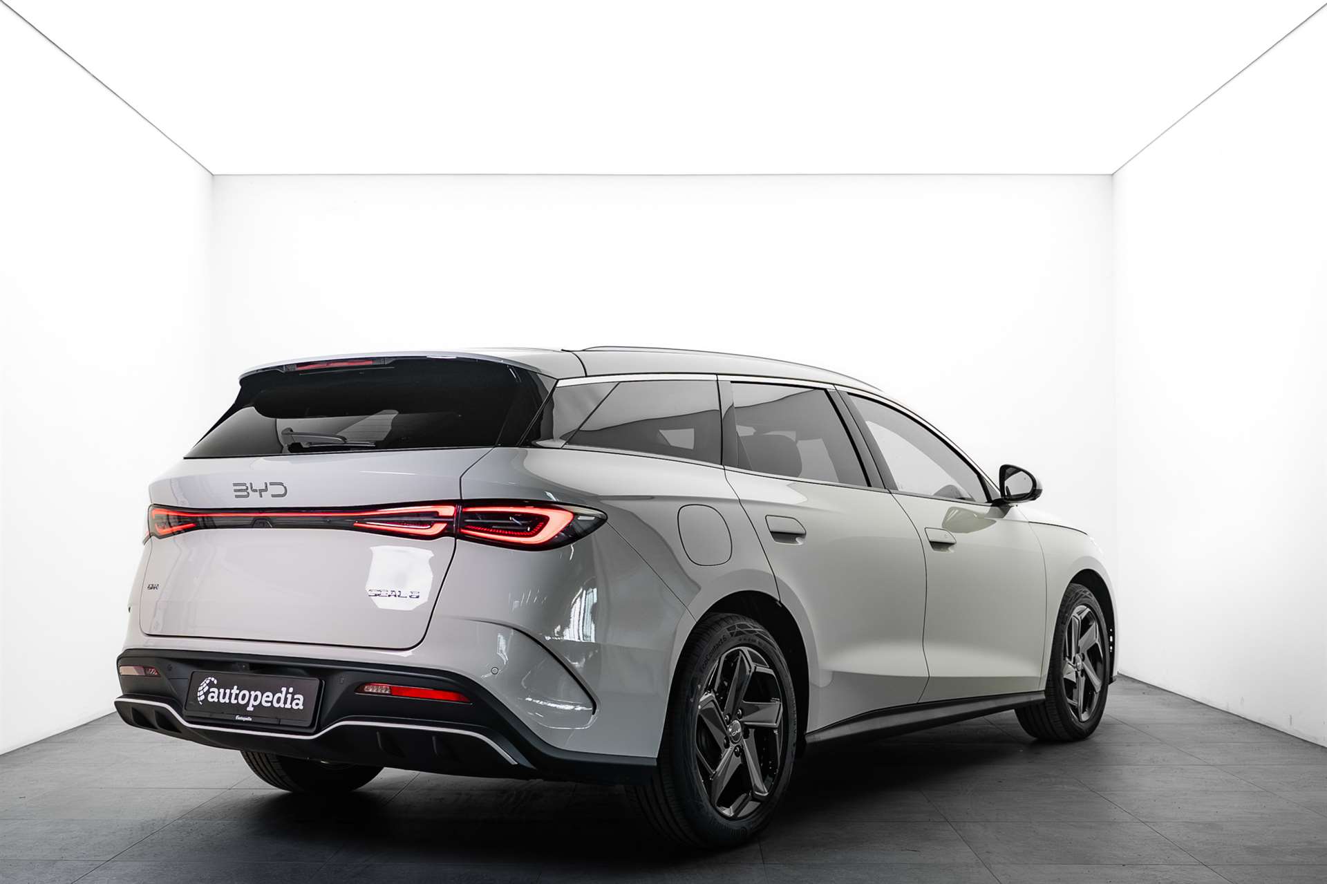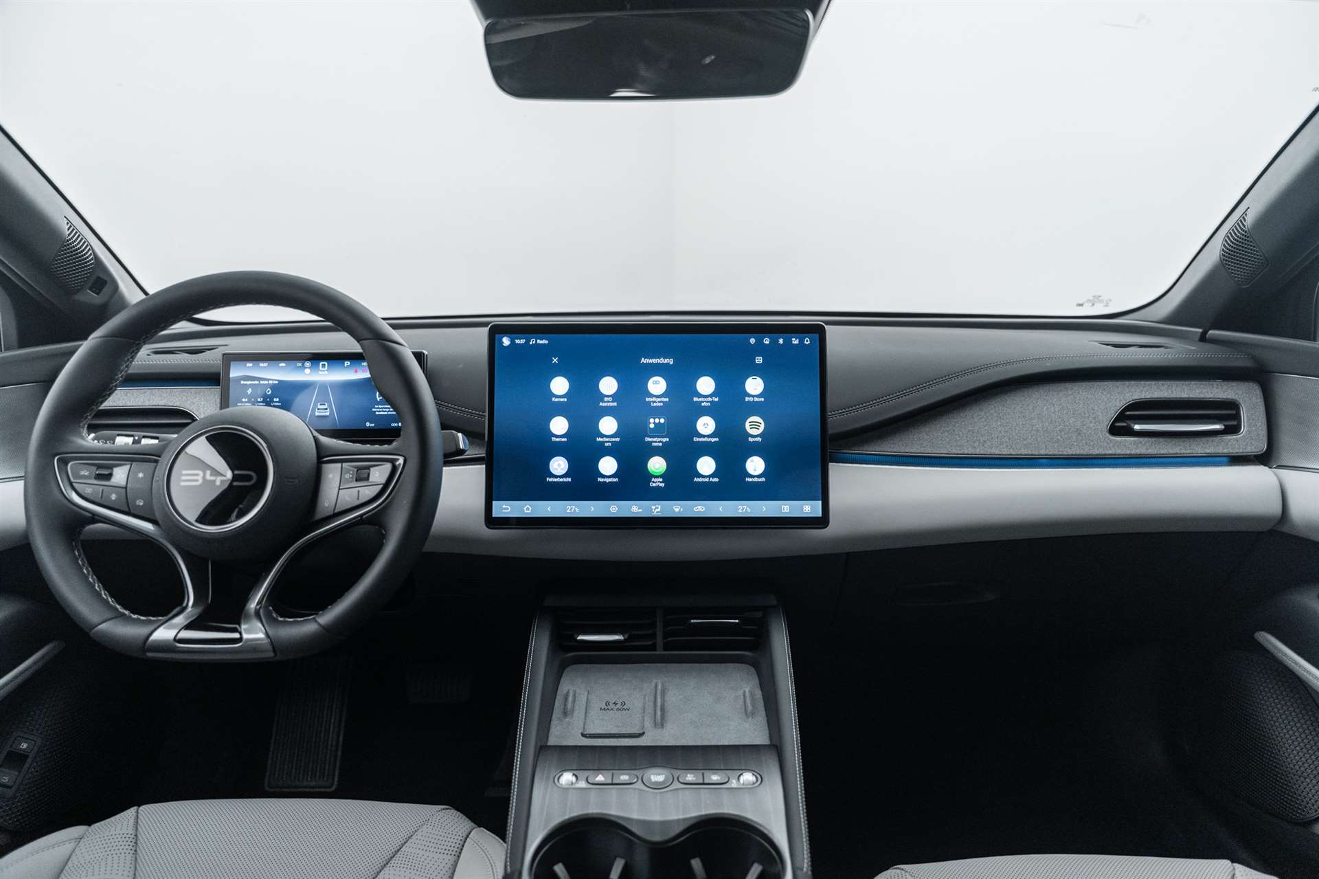 12-V-Stromanschluss, 2 x Smart Key, 4 x Fensterheber mit Ein-Klick-Funktion und Einklemmschutz, 6.6-kW-Bordladegerät (OBC), Airbag: Fahrerairbag und Beifahrerairbag, Airbag: Mittelairbag vorne, Airbag: Seitenairbags vorn, Airbag: Vorhangairbags, Ambientebeleuchtung, mehrfarbig, rhythmusempfindlich, Anhänger-Stabilitätsmanagementsystem (TSM), Antiblockiersystem (ABS), Assist: 360° view camera, Assist: Adaptive Geschwindigkeitsregelung (ACC) & Intelligente Geschwindigkeitsregelung (ICC), Assist: Auto Hold, Assist: Automatische Notbremsung (AEB), Assist: Berganfahrhilfe (HHC), Assist: Comfort Stop (CST), Assist: Direktes Fahrerermüdungsmanagement (DFM), Assist: Elektrische Parkbremse (EPB), Assist: Frontkollisionswarnung (FCW), Assist: Geschwindigkeitsabhängiges automatisches Verriegelungssystem, Assist: Heckkollisionswarnung (RCW), Assist: Hydraulischer Bremsassistent (HBA), Assist: Intelligente Bremskraftverstärker (IPB), Assist: Intelligente Geschwindigkeitsbegrenzungsinformation (ISLI), Assist: Intelligente Geschwindigkeitsbegrenzungskontrolle (ISLC), Assist: Kindererkennung (CPD), Assist: Kontrollierte Verzögerung mit Feststellbremse (CDP), Assist: Notfall-Spurhalteassistent (ELKA), Assist: Parkradar hinten, Assist: Parkradar vorne, Assist: Querverkehrswarnung hinten (RCTA) & Querverkehrsbremse hinten (RCTB), Assist: Spurverlassensassistent (LDA), Assist: Toter-Winkel-Warnung (BSD), Assist: Traktionskontrolle (TCS), Assist: Verkehrszeichenerkennung (TSR), Aussenspiegel elektrisch verstellbar, elektrisch anklappbar, beheizbar, Außenspiegel-Bodenbeleuchtung, Automatisch abblendender Rückspiegel, Bremsüberbrückungssystem (BOS), Dachhimmel in Stoff, Dachreling in Aluminium, Doppelt vorgespannte, höhenverstellbare Sicherheitsgurte vorn, Elektrische Heckklappe, Elektronische Bremskraftverteilung (EBD), ESP (Elektronisches Stabilitätsprogramm), Fahrmodus: Eco, Normal, Sport, Snow, Fahrwerk: Fahrdynamikregelung (VDC), Frontscheibe, Scheibenwischer mit Regensensor, Fußraumbeleuchtung vorne, Getriebe: Direktantrieb, kein Getriebe, Gurtwarner, Handschuhfachbeleuchtung, Heckscheibe, elektrische Heizung zum Entfeuchten und Enteisen, Heckscheibenwischer, ISOFIX und i-Size, Beifahrer- und äussere Rücksitze, Keyless entry & keyless start, Klima: Belüftungsdüsen hinten, Klima: PM2,5-Filter, Klima: Zweizonen-Klimaautomatik, Kofferraum-Gepäckablage, Kofferraumbeleuchtung, Konsolenbeleuchtung, Lackierung: Metallic-Lackierung, LED-Leseleuchten hinten, LED-Leseleuchten vorn, LED-Türbeleuchtung vorne, Lenkrad: Lenkrad beheiztbar, Lenkrad: Multifunktionslenkrad in Vegan-Leder, Licht: Automatische Scheinwerfer, Licht: Follow-me-Home, Licht: Intelligenter Fernlichtassistent (IHBC), Licht: LED-Rückleuchten, Licht: LED-Scheinwerfer, automatisches Ein-/Ausschalten, Licht: LED-Tagfahrlicht, Licht: Nebelschlussleuchten, Mechanische Kindersicherung, Media: 15,6-Zoll-Touchscreen, Media: 8,8" TFT-LCD-Instrumententafel, Media: Android Auto & Apple CarPlay, Media: Cloud-Service - BYD App, Media: DAB+ & FM, Media: HiFi-Soundeffekt, 8 Lautsprecher, Media: Integrierte 4G-Konnektivität, Media: Intelligente Sprachsteuerung "Hallo, BYD", Media: Kabelloses Laden von Smartphones, 50 W Einzelaufladung, Media: USB-Anschlüsse hinten: 2 x 18W Typ C, Media: USB-Anschlüsse vorn: 1 x 18W Typ C, 1 x 60 W Typ C, Mittelarmlehne hinten, 2 Getränkehalter, Mittelarmlehne vorn, 2 Getränkehalter, Mittelkonsolenleuchte, Notfallverriegelung für den mittleren Sitz hinten, Notruf, Panorama-Schiebedach, einklemmschutz, elektrisch verstellbare Sonnenblende, Polster: Vegan-Leder Sitze, Räder: 18"-Monochrom-Leichtmetallräder, Reifendruckkontrollsystem (TPMS), Scheibenwischer vorne mit Regensensor, Seitenfenster hinten und Heckscheibe mit Privacy-Verglasung, Servolenkung, Sitze: Beifahrersitz belüftet, beheizt, Sitze: Beifahrersitz, elektrisch verstellbar, 4-fach, Sitze: Fahrersitz, belüftet, beheizbar, mit Memory-Funktion, Sitze: Fahrersitz, elektrisch verstellbar, 6-fach, Sitze: Rücksitze 40:60 geteilt umklappbar, Sitze: Rücksitze, manuell einstellbare Kopfstütze, Sitze: Vordersitze, manuell verstellbare Kopfstützen, Smartphone-Bluetooth-Schlüssel & Smartphone-NFC-Schlüssel, Sonnenblenden vorne mit beleuchtetem Spiegel, Türöffnungswarnung (DOW), Vehicle-to-Load-Funktion (V2L), Vorgespannte Sicherheitsgurte auf den Rücksitzen hinten