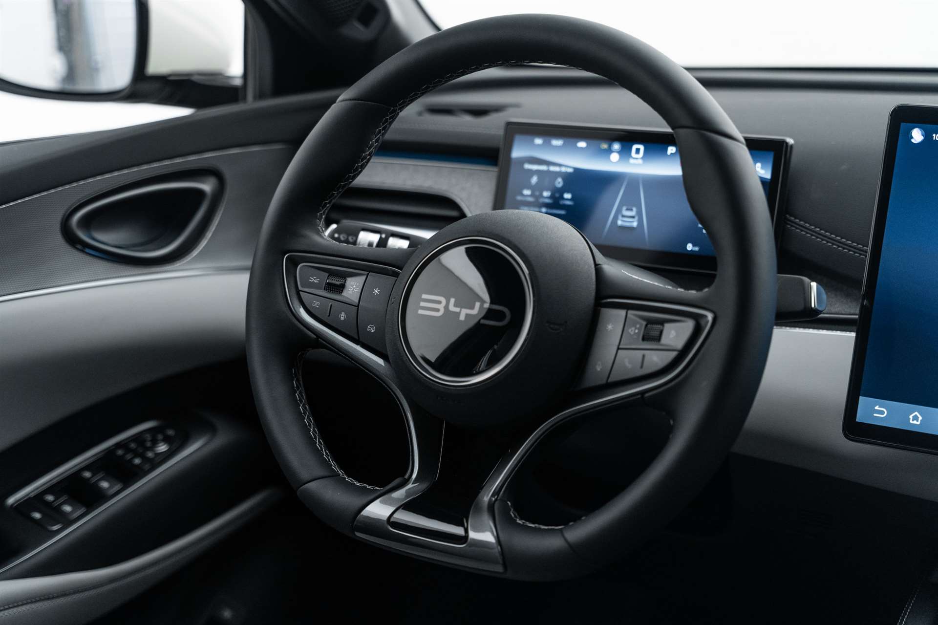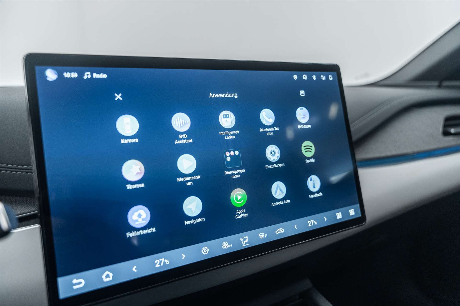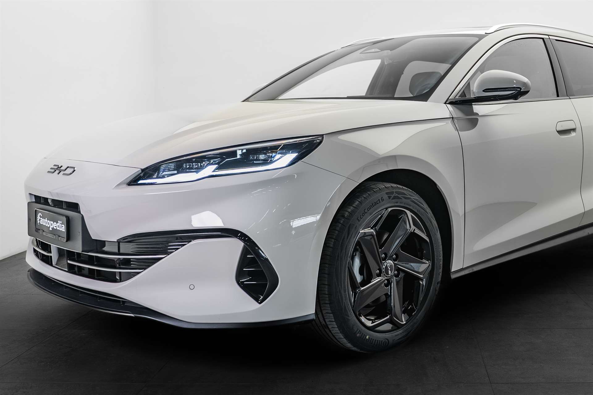 12-V-Stromanschluss, 2 x Smart Key, 4 x Fensterheber mit Ein-Klick-Funktion und Einklemmschutz, 6.6-kW-Bordladegerät (OBC), Airbag: Fahrerairbag und Beifahrerairbag, Airbag: Mittelairbag vorne, Airbag: Seitenairbags vorn, Airbag: Vorhangairbags, Ambientebeleuchtung, mehrfarbig, rhythmusempfindlich, Anhänger-Stabilitätsmanagementsystem (TSM), Antiblockiersystem (ABS), Assist: 360° view camera, Assist: Adaptive Geschwindigkeitsregelung (ACC) & Intelligente Geschwindigkeitsregelung (ICC), Assist: Auto Hold, Assist: Automatische Notbremsung (AEB), Assist: Berganfahrhilfe (HHC), Assist: Comfort Stop (CST), Assist: Direktes Fahrerermüdungsmanagement (DFM), Assist: Elektrische Parkbremse (EPB), Assist: Frontkollisionswarnung (FCW), Assist: Geschwindigkeitsabhängiges automatisches Verriegelungssystem, Assist: Heckkollisionswarnung (RCW), Assist: Hydraulischer Bremsassistent (HBA), Assist: Intelligente Bremskraftverstärker (IPB), Assist: Intelligente Geschwindigkeitsbegrenzungsinformation (ISLI), Assist: Intelligente Geschwindigkeitsbegrenzungskontrolle (ISLC), Assist: Kindererkennung (CPD), Assist: Kontrollierte Verzögerung mit Feststellbremse (CDP), Assist: Notfall-Spurhalteassistent (ELKA), Assist: Parkradar hinten, Assist: Parkradar vorne, Assist: Querverkehrswarnung hinten (RCTA) & Querverkehrsbremse hinten (RCTB), Assist: Spurverlassensassistent (LDA), Assist: Toter-Winkel-Warnung (BSD), Assist: Traktionskontrolle (TCS), Assist: Verkehrszeichenerkennung (TSR), Aussenspiegel elektrisch verstellbar, elektrisch anklappbar, beheizbar, Außenspiegel-Bodenbeleuchtung, Automatisch abblendender Rückspiegel, Bremsüberbrückungssystem (BOS), Dachhimmel in Stoff, Dachreling in Aluminium, Doppelt vorgespannte, höhenverstellbare Sicherheitsgurte vorn, Elektrische Heckklappe, Elektronische Bremskraftverteilung (EBD), ESP (Elektronisches Stabilitätsprogramm), Fahrmodus: Eco, Normal, Sport, Snow, Fahrwerk: Fahrdynamikregelung (VDC), Frontscheibe, Scheibenwischer mit Regensensor, Fußraumbeleuchtung vorne, Getriebe: Direktantrieb, kein Getriebe, Gurtwarner, Handschuhfachbeleuchtung, Heckscheibe, elektrische Heizung zum Entfeuchten und Enteisen, Heckscheibenwischer, ISOFIX und i-Size, Beifahrer- und äussere Rücksitze, Keyless entry & keyless start, Klima: Belüftungsdüsen hinten, Klima: PM2,5-Filter, Klima: Zweizonen-Klimaautomatik, Kofferraum-Gepäckablage, Kofferraumbeleuchtung, Konsolenbeleuchtung, Lackierung: Metallic-Lackierung, LED-Leseleuchten hinten, LED-Leseleuchten vorn, LED-Türbeleuchtung vorne, Lenkrad: Lenkrad beheiztbar, Lenkrad: Multifunktionslenkrad in Vegan-Leder, Licht: Automatische Scheinwerfer, Licht: Follow-me-Home, Licht: Intelligenter Fernlichtassistent (IHBC), Licht: LED-Rückleuchten, Licht: LED-Scheinwerfer, automatisches Ein-/Ausschalten, Licht: LED-Tagfahrlicht, Licht: Nebelschlussleuchten, Mechanische Kindersicherung, Media: 15,6-Zoll-Touchscreen, Media: 8,8" TFT-LCD-Instrumententafel, Media: Android Auto & Apple CarPlay, Media: Cloud-Service - BYD App, Media: DAB+ & FM, Media: HiFi-Soundeffekt, 8 Lautsprecher, Media: Integrierte 4G-Konnektivität, Media: Intelligente Sprachsteuerung "Hallo, BYD", Media: Kabelloses Laden von Smartphones, 50 W Einzelaufladung, Media: USB-Anschlüsse hinten: 2 x 18W Typ C, Media: USB-Anschlüsse vorn: 1 x 18W Typ C, 1 x 60 W Typ C, Mittelarmlehne hinten, 2 Getränkehalter, Mittelarmlehne vorn, 2 Getränkehalter, Mittelkonsolenleuchte, Notfallverriegelung für den mittleren Sitz hinten, Notruf, Panorama-Schiebedach, einklemmschutz, elektrisch verstellbare Sonnenblende, Polster: Vegan-Leder Sitze, Räder: 18"-Monochrom-Leichtmetallräder, Reifendruckkontrollsystem (TPMS), Scheibenwischer vorne mit Regensensor, Seitenfenster hinten und Heckscheibe mit Privacy-Verglasung, Servolenkung, Sitze: Beifahrersitz belüftet, beheizt, Sitze: Beifahrersitz, elektrisch verstellbar, 4-fach, Sitze: Fahrersitz, belüftet, beheizbar, mit Memory-Funktion, Sitze: Fahrersitz, elektrisch verstellbar, 6-fach, Sitze: Rücksitze 40:60 geteilt umklappbar, Sitze: Rücksitze, manuell einstellbare Kopfstütze, Sitze: Vordersitze, manuell verstellbare Kopfstützen, Smartphone-Bluetooth-Schlüssel & Smartphone-NFC-Schlüssel, Sonnenblenden vorne mit beleuchtetem Spiegel, Türöffnungswarnung (DOW), Vehicle-to-Load-Funktion (V2L), Vorgespannte Sicherheitsgurte auf den Rücksitzen hinten