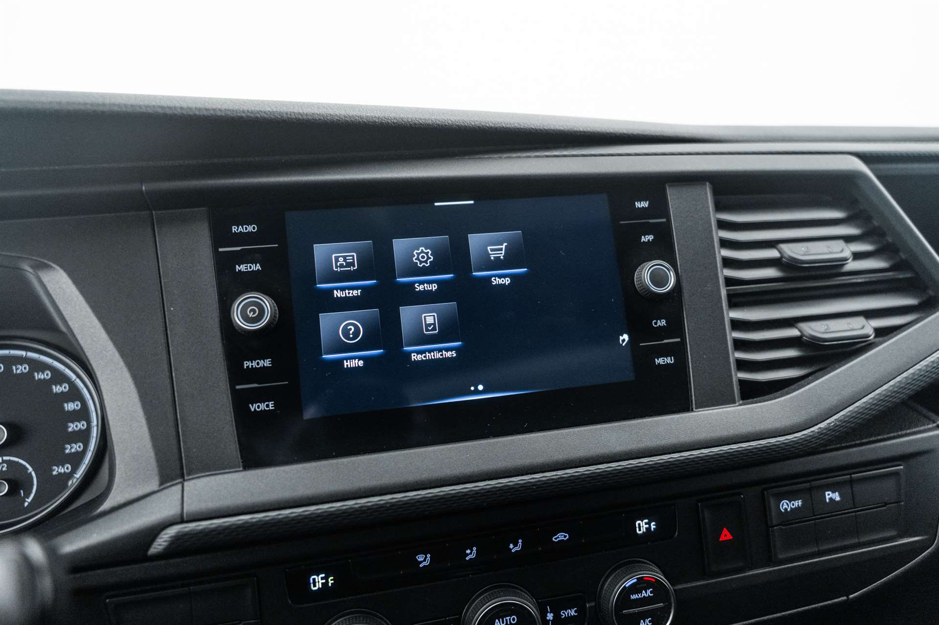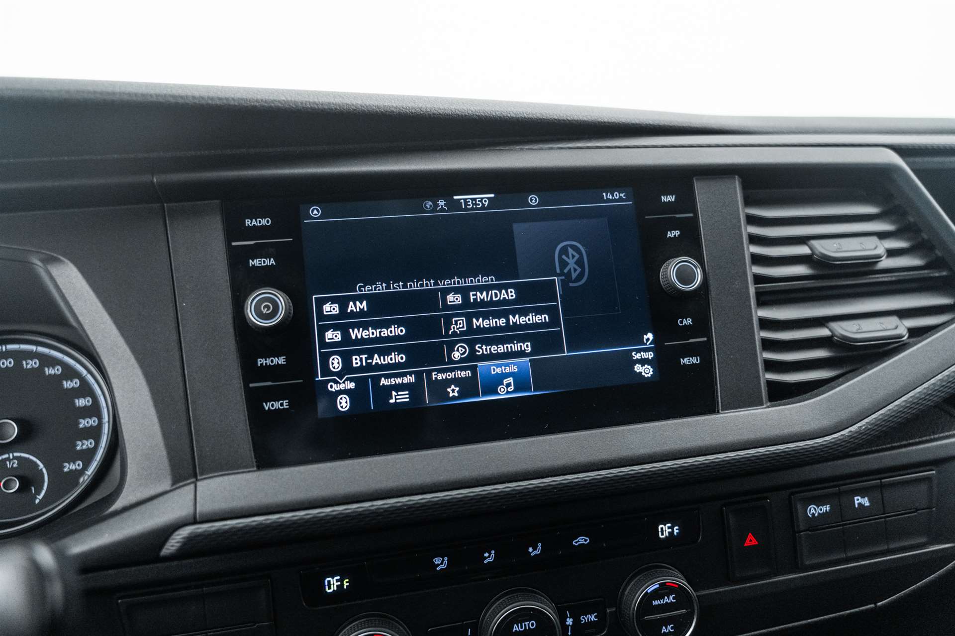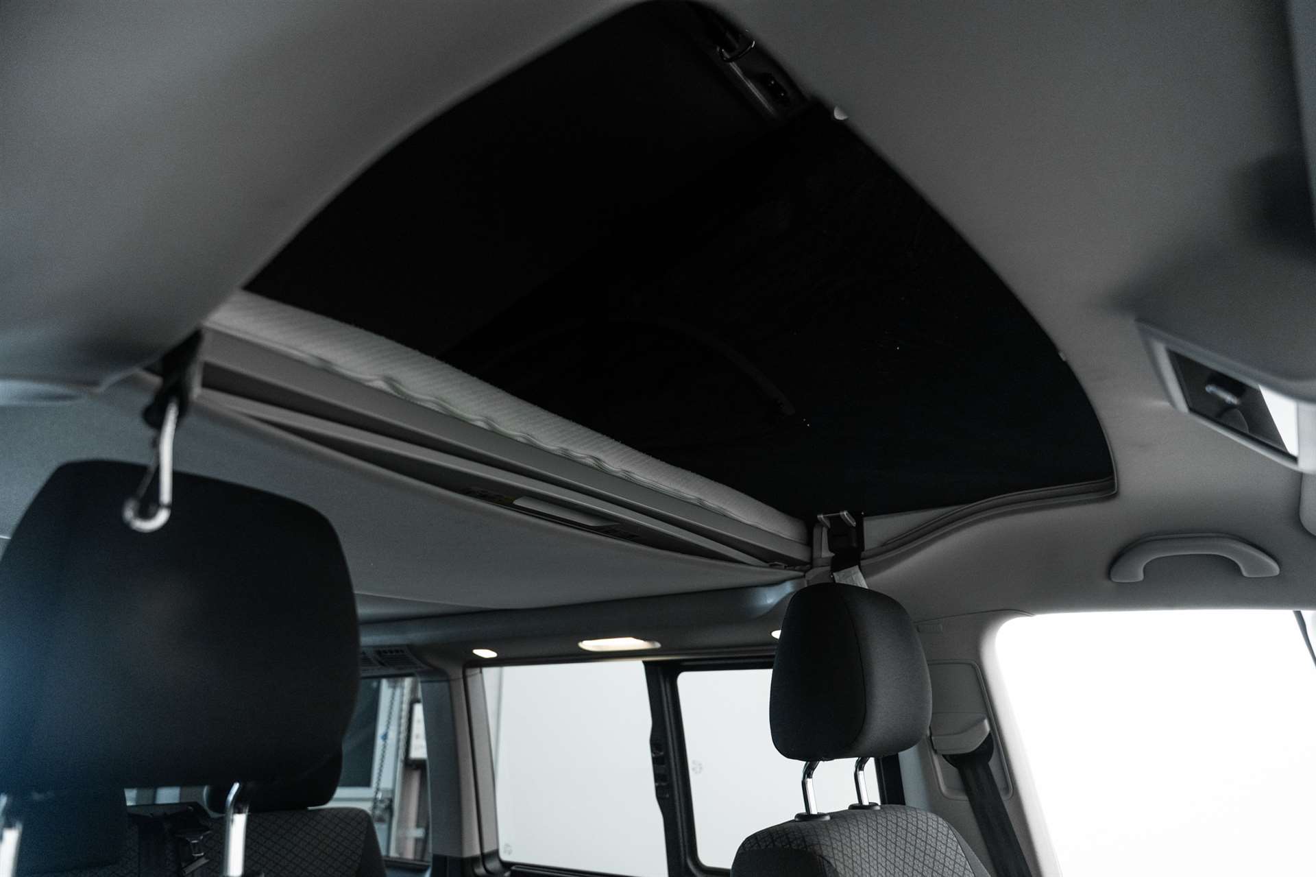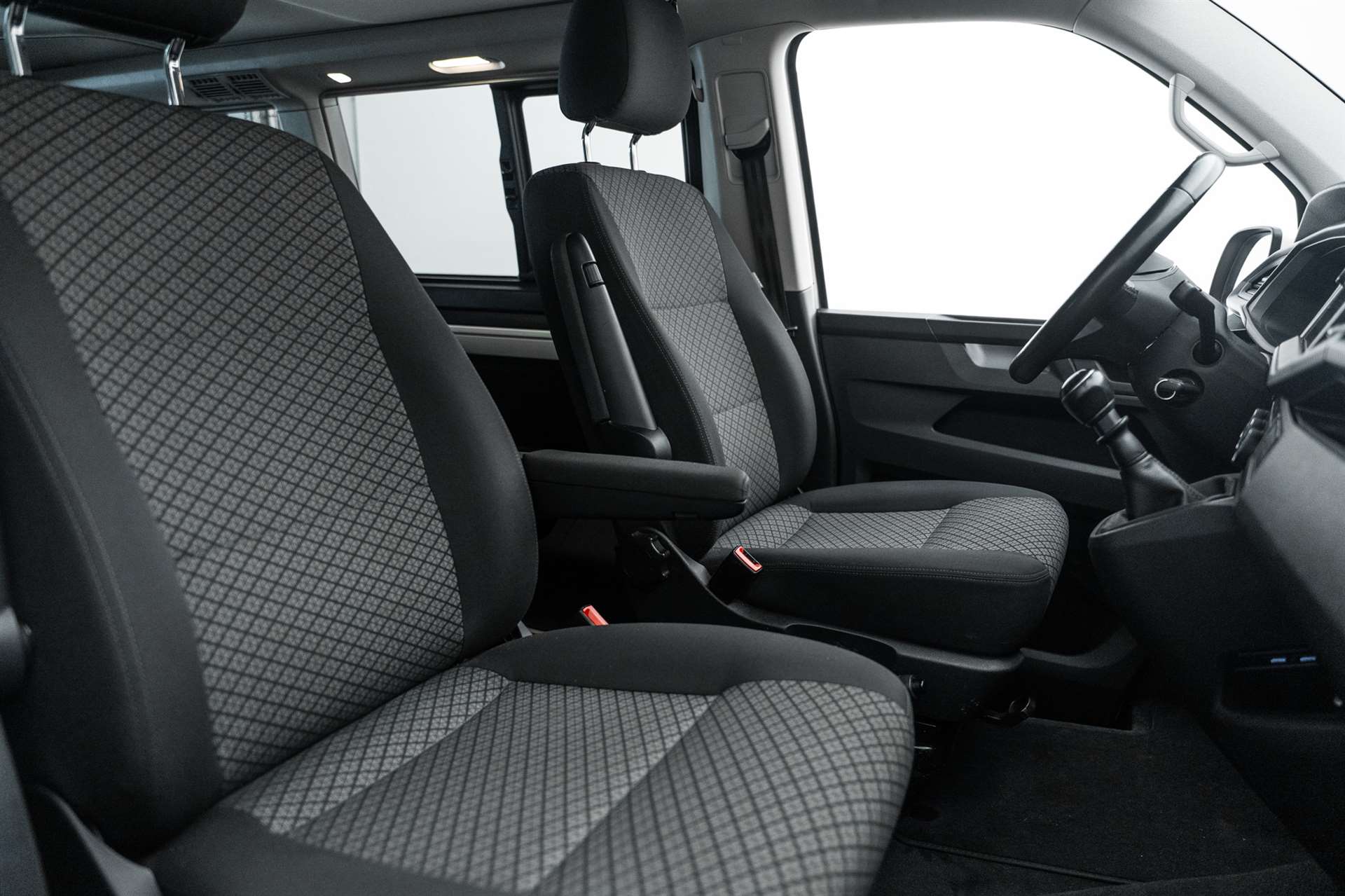 2 Einzelsitze vorne, 2 Klappstühle, 3-Punkt-Sicherheitsgurte auf allen, 3er Sitzbank in 3. Sitzreihe, 5-Gang-Getriebe, Ablage im Armaturenbrett, Ablagen in den Türen, ABS mit ASR und EDS, Airbag Fahrer und Beifahrer, Aussenspiegel rechts und links beheizbar und elektrisch verstellbar, Berganfahrassistent, Bettverlängerung mit Liegepolster hinten, Digital Uhr, Doppelbett mit Lattenrost oben, Drehzahlmesser, Einparkhilfe vorne und hinten, Elektrische Fensterheber vorne, Elektronisches Stabilitäts-Programm, Erhöhtes Gesamtgewicht 3080 kg, Halogen-Doppelscheinwerfer H7, Haltegriff für Beifahrer, Handschuhfach, Heckklappe, Heckscheiben-Wisch-/Waschanlage, Heckscheibenheizung, Heizungsausströmer im Lade-/Fahrgastraum, Innenraumbeleuchtung, Innenspiegel automatisch abblendbar, ISOFIX Kindersitzvorrichtung, Kindersicherung im Fahrgastraum, Klimatisierungsautomatik Climatronic, Kunststoffboden im Fahrgastraum, Lenkrad verstellbar, Lenkrad: Leder Multifunktionslenkrad mit Tiptronic, Lenkradsperre, Leseleuchten hinten, Leseleuchten vorne, Leuchtweitenregulierung von innen, Licht: Drittes Bremslicht, Licht: Nebelschlussleuchte, Make up-Spiegel links, Make up-Spiegel rechts, Manuelles Aufstelldach, Markisenschiene schwarz, Media: 4 Lautsprecher, Media: App-Connect, Media: DAB+ (Digital Audio Broadcasting), Media: Mobiltelefon-Schnittstelle, Mehrzwecktisch integriert in der, Miniküche, Multifunktionsanzeige Plus, Multikollisionsbremse, Nebelscheinwerfer mit Abbiegelicht, Partikelfilter und Oxydationskatalysator, Pollenfilter (Staubfilter), Polster: Sitzbezüge Stoff, Radiosystem Composition Colour, Regensensor für Scheibenwischer vorne, Reifendruck-Kontrollanzeige, Scheibenwischer vorne mit Intervall, Schiebefenster im Fahrgastraum, Seitenairbags und Kopfairbags vorne, Servolenkung, Spezielle Stoff-Ausstattung, Stahlräder 16J, Standartschalttafel, Staukasten mit Liegepolster, Steckdose 12V, Stop/Start-Technologie, Stossstangen in Wagenfarbe, Tagesfahrlichtschaltung mit Assistenz-, Tagfahrlicht, Tempomat, Türen: Schiebetüre rechts, Uni-Lackierung, Verdunkelungsvorhänge Seiten- und, Verschiebbare 2-plätzige Sitz-/Liegebank, Vorbereitung für Dachträger, Vordersitze drehbar, Wärmeschutzverglasung, Wegfahrsperre elektronisch, Zentralverriegelung mit Fernbedienung, Zigarettenanzünder, Zweiklanghorn