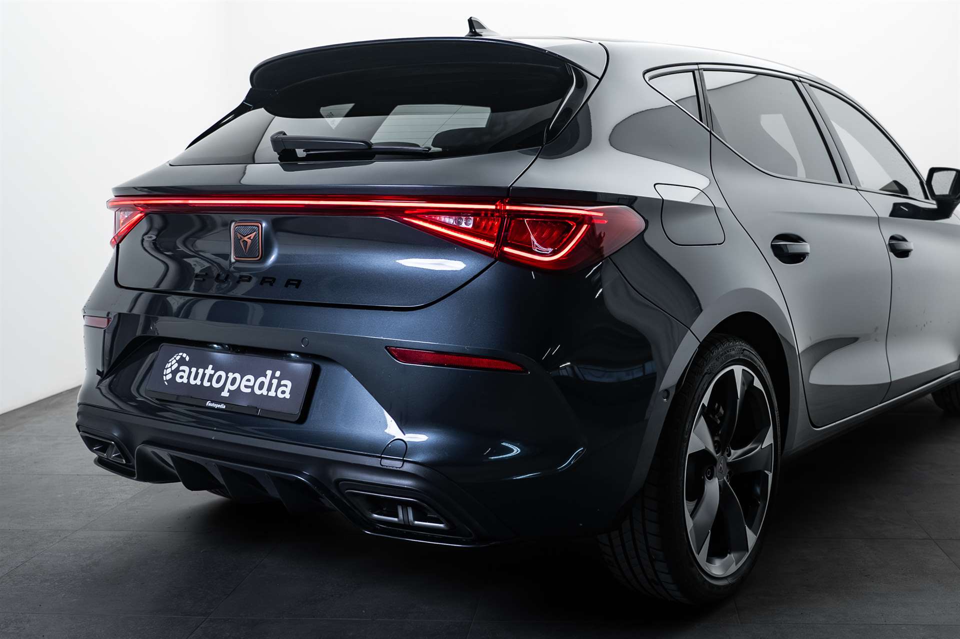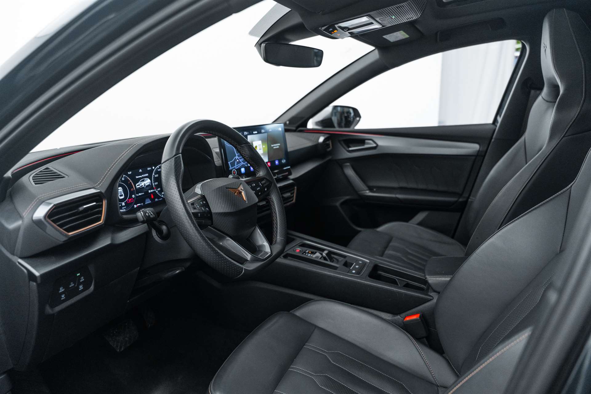 Abgedunkelte Scheiben ab B-Säule hinten, ABS, EBV elektronische Bremskraft-verteilung, Airbag: Airbag Beifahrer deaktivierbar, Airbag: Airbag Fahrer und Beifahrer, Airbag: Kopfairbags vorne und hinten, Airbag: Seitenairbags für Fahrer und Beifahrer, Airbag: Zentral Airbag, Assist: Einparkhilfe hinten, Assist: Elektronische Parkbremse mit Auto Hold Funktion, Assist: Lane assist (Spurhalteassistent), Assist: Multifunktionskamera, Assist: Multikollisionsbremse, Assist: PreCrash Sicherheitssystem, Assist: Speed limiter, Assist: Tempomat, Assist: Tiredness detection (Müdigkeitserkennung), Assist: Traction Control (TCS), deaktivierbar, Aussenspiegel elektrisch einstell-, beheiz- und einklappbar mit Beifahrerabsenkfunktion, Aussenspiegel in Cosmo Grey, Türgriffe in Wagenfarbe, Aussenspiegel mit LED-Blinker, Bremszangen vorne und hinten in Schwarz, CUPRA Drive Profile mit "driving experience button" Comfort, Sport, CUPRA, Individual, CUPRA-Heckspoiler, Dachhimmel schwarz, Dekor: Dekorblenden in Copper, Dreipunkt-Automatiksicherheitsgurte auf allen Plätzen, Elektrische Fensterheber vorne und hinten mit Komfortschaltung und Einklemmschutz, ESC mit EBA, DSR und Reifendruckkontrolle, Fahrwerk: Progressivlenkung, Fahrwerk: Vorderachs-Differenzialsperre, Full Digital Cockpit, Fussmatten vorne und hinten, Getriebe: 7-Gang-Sequentielle-Getriebe mit Automatikfunktion, Heckscheiben-Wisch-/Waschanlage mit Intervall, Heckscheibenheizung, Innenspiegel automatisch abblendbar, Kindersitzverankerung ISOFIX (äussere Plätze hinten), Klima: 3-Zonen Climatronic, Lackierung: Uni-Lackierung, LED-Innenraumbeleuchtung mit Ambientebeleuchtung"Monochrom", Lenkrad: Beheizbares Ledermultifunktionslenkrad mit Schaltwippen, Licht- und Regensensor, Licht: Coming Leaving Home Funktion, Licht: Drittes Bremslicht, Licht: Durchgehende Full LED-Heckleuchten, Licht: LED-Heckleuchten mit dynamischem Blinklicht, Licht: LED-Nebelscheinwerfer mit Cornering-Funktion, Licht: LED-Scheinwerfer für Abblend- und Fernlicht, Licht: LED-Tagfahrlicht, Licht: Leuchtweitenregulierung, Media: 10'' Infotainment (MIB3), Media: 2 USB C Anschlüsse hinten und vorne, Media: 6 Lautsprecher, Media: CUPRA Connect Safety & Services für Media System, Media: DAB+ (Digital Audio Broadcasting), Media: Mobiltelefon Freisprechanlage Bluetooth, Media: Sprachsteuerung, Mittelarmlehne vorne und hinten, Nebelschlussleuchte, Ottopartikelfilter, Parksensoren in Midnight Black, Pollenfilter (Staubfilter), Pyrotechnische Gurtstraffer und Gurtkraftbegrenzer, Räder: Alufelgen 7,5J x 18", "EXCLUSIVE" (225/40 R18), Räder: Reifendruck-Kontrollanzeige, Räder: Reifenreparatur-Set (Tire Fit), Schlüsselloses Schliess- und Startsystem (KESSY), Servolenkung mit geschwindigkeitsabhängiger Lenkkraftunterstützung, Sicherheitsgurtkontrolle für alle Sitze, Sitze: 2 verstellbare Kopfstützen vorne und 3 hinten, Sitze: CUPRA Sportsitze in "Sharp Textil schwarz", Sitze: Geteilt abklappbare Rücksitzlehne 1/3 - 2/3, Sitze: Kindersitzverankerung ISOFIX hinten, Sitze: Vordersitze höhenverstellbar, Sonnenblende Fahrer und Beifahrerseite, Stopp - Start- und Rekuperationssystem, Stossfänger in Sport-Optik mit Heckdiffusor in Wagenfarbe, Vollverzinkte Karosserie, Wärmeschutzverglasung, Wegfahrsperre elektronisch, Zentralverriegelung mit Funkfernbedienung, 2 Funkschlüssel, Zierleisten Seitenfenster in Schwarz Glanz, Zwei Abgasblenden