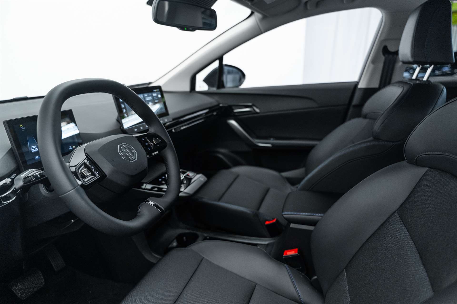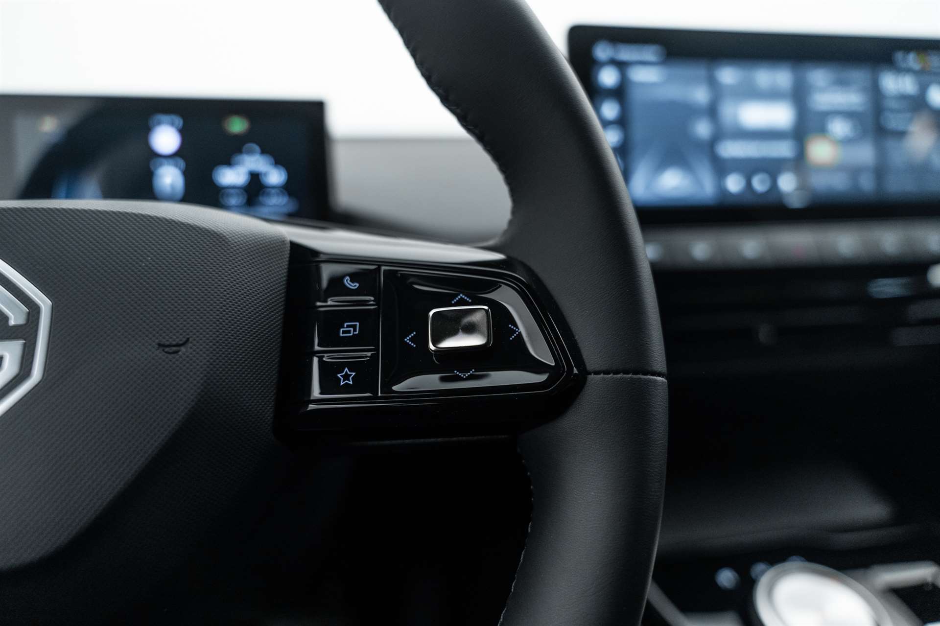"Twin-Aero" Spoiler, 3-Punkt-Sicherheitsgurte auf allen Plätzen, Airbag: Airbag Fahrer und Beifahrer, Airbag: Kopfairbags vorne, Airbag: Seitenairbags, Aktive Luftklappen, Antiblockiersystem (ABS), Assist: 360-Kamera, Assist: MG Pilot: ACC/TJA/FCW/AEB/IHC/SAS/LDW/LKA/UDW, Assist: MG Pilot: +BSD/LCA/CTA/DOW, Auto Start/Stop & Keyless Entry, Beheizbare Aussenspiegel, Dunkel getönte Scheiben hinten, Elektrisch anklappbare Aussenspiegel, Elektrische Fensterheber vorne + hinten, ESP und TCS, Fahrwerk: "One Pedal"-Fahrmodus, Garantie: 7 Jahre oder 150'000 km, Getriebe: Direktantrieb, kein Getriebe, Heckscheiben-Wisch-/Waschanlage, Klima: Automatische Klimaanlage, Lackierung: Uni-Lackierung, Lenkrad: Beheizbares Lenkrad, Lenkrad: Lederlenkrad, Licht: Drittes Bremslicht, Licht: LED-Beleuchtung (Tagfahrlicht/Vorder-/Rücklicht), Licht: Nebelschlussleuchte, Media: 6 Lautsprecher, Media: Android Auto/Apple CarPlay, Media: Digital Cluster 7'', Media: EV-Routenplaner, Media: iSMART, Media: Kabelloses Ladegerät, Media: Touch Screen 10.25'', Polster: Stoff-Ausstattung, Polster: Teilleder Polsterung, Räder: 17-Zoll-Leichtmetallfelgen, Räder: 18-Zoll-Leichtmetallfelgen, Reserverad, Servolenkung geschwindigkeitsabhängig, Sitze: 6-fach verstellbarer Fahrersitz, Sitze: Beheizbare Vordersitze, Sitze: Elektrisch verstellbarer Fahrersitz, Sitze: Rücksitzbank umklappbar 60/40, Sonnenblende mit Make-up-Spiegel, Sonnenbrillenhalter, Vehicle to Load, Wärmepumpe, Wegfahrsperre elektronisch, Zentralverriegelung mit Fernbedienung