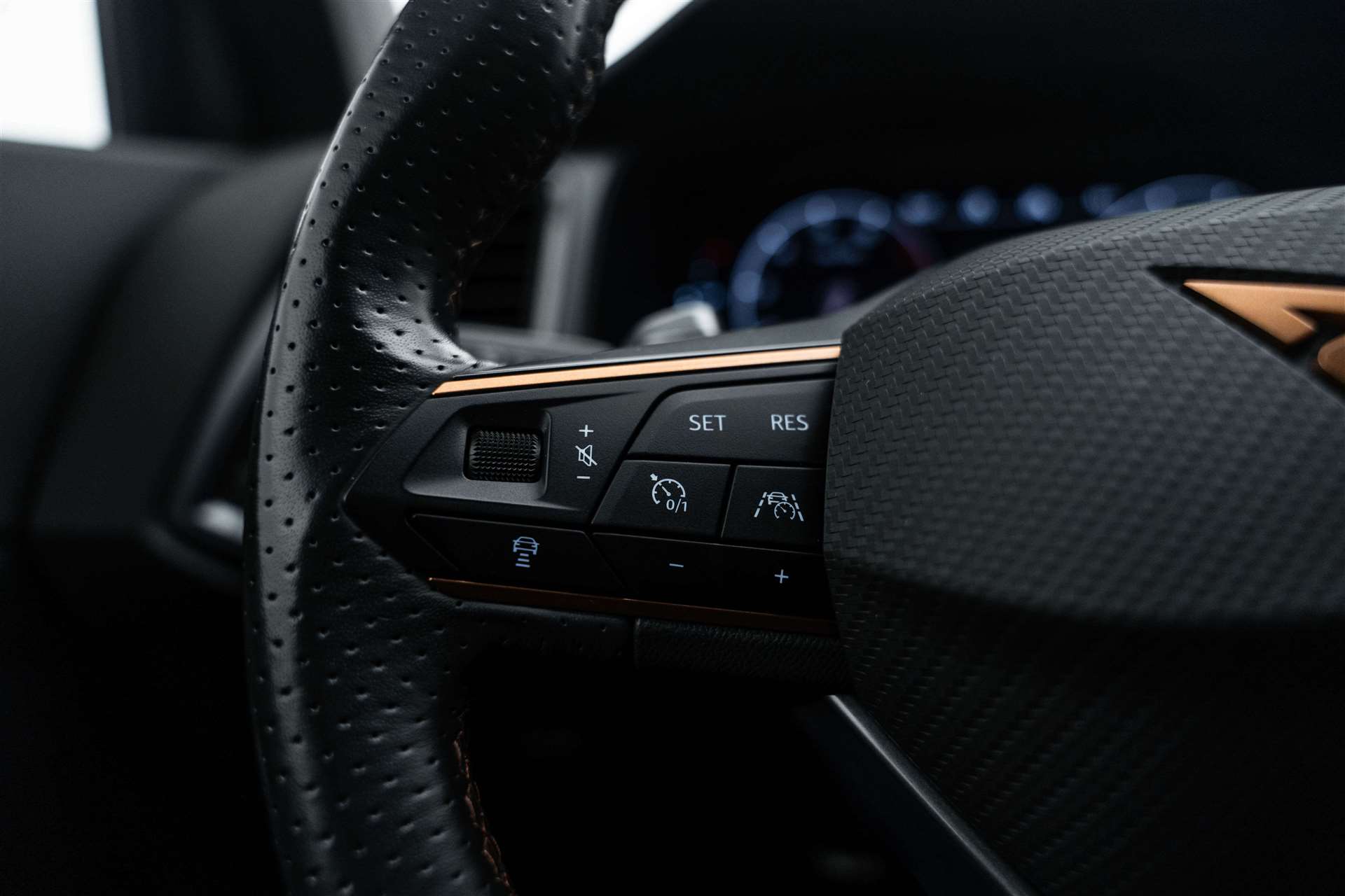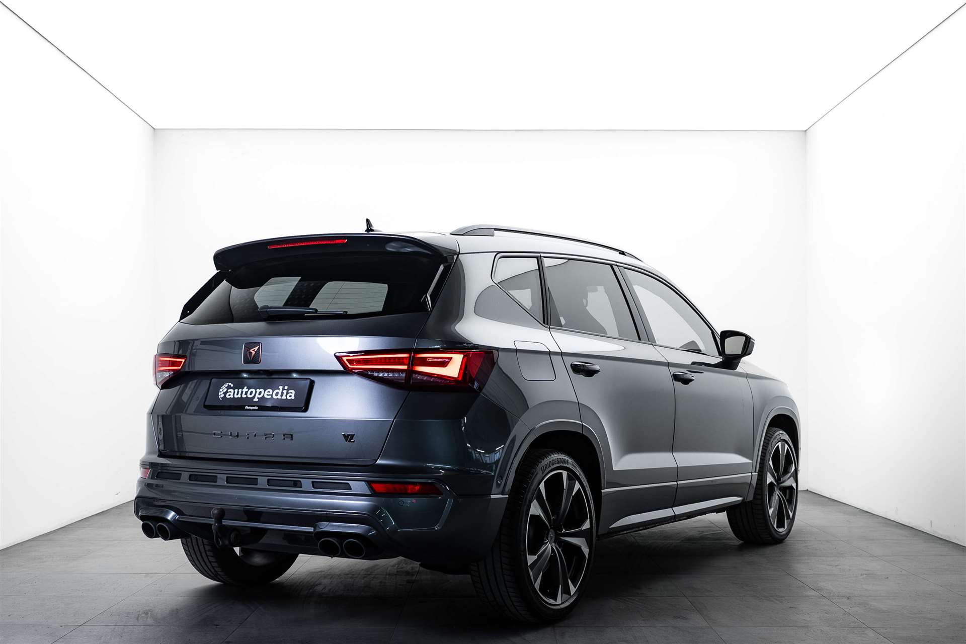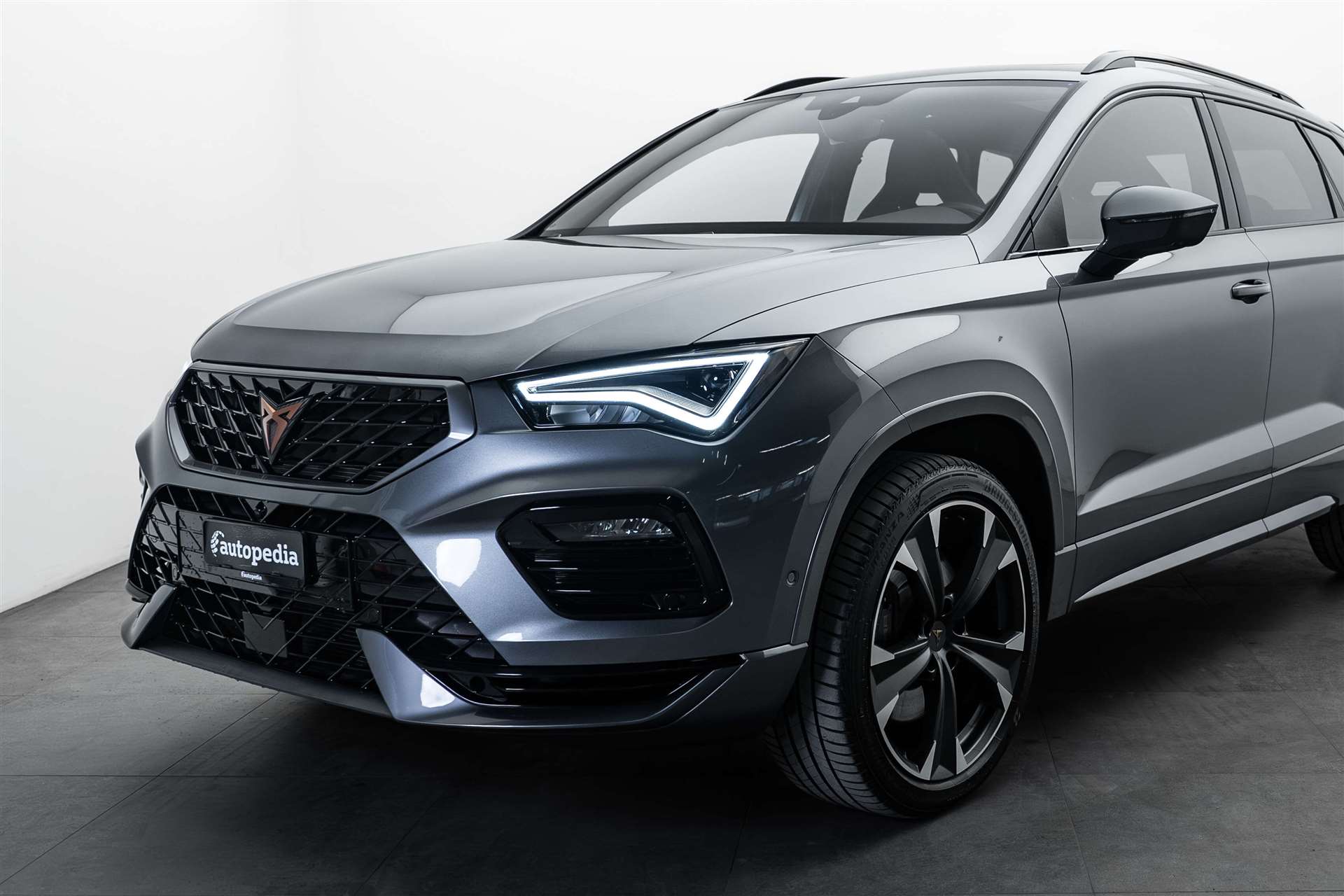 Abgedunkelte Scheiben ab B-Säule hinten, ABS, EBV elektronische Bremskraft-verteilung, Airbag: Airbag Beifahrer deaktivierbar, Airbag: Airbag Fahrer und Beifahrer, Airbag: Knieairbag auf der Fahrerseite, Airbag: Kopfairbags vorne und hinten, Airbag: Seitenairbags für Fahrer und Beifahrer, Allradantrieb permanent, Assist: Einparkhilfe vorne und hinten mit optischer Anzeige, Assist: Elektronische Parkbremse mit Auto Hold Funktion, Assist: Front Assist, Assist: Lane assist (Spurhalteassistent), Assist: Multifunktionskamera, Assist: Multikollisionsbremse, Assist: Parklenkassistent, Assist: Prädiktive automatische Distanzregelung ACC, Assist: Regen-/Lichtsensor, Assist: Speed limiter, Assist: Tempomat, Assist: Tiredness detection (Müdigkeitserkennung), Assist: Top View Camera (Rundumblick), Assist: Traffic sign recognition (Verkehrszeichenerkennung), Aussenspiegel elektrisch einstell-, beheiz- und einklappbar, Aussenspiegel mit Beifahrerspiegelabsenkung, Aussenspiegel mit LED-Umfeldbeleuchtung, Aussenspiegel und Türgriffe in Wagenfarbe, Automatisch abblendender Innenrückspiegel, Beleuchtete Sonnenblende links mit abdeckbarem Spiegel und Lasche, rechts mit abdeckbarem Spiegel, Bordcomputer, CUPRA Drive Profile mit "driving experience button" Comfort, Sport, CUPRA, Individual, Snow, Offroad, Dachhimmel Schwarz, Dachreling schwarz, Dekor: Dekorblenden in Grau glänzend, Dekor: Türverkleidung mit Ambient light, Drehzahlmesser, Dreipunkt-Automatiksicherheitsgurte auf allen Plätzen, Einstiegsleisten in Aluminium, Elektrische Fensterheber vorne und hinten mit Komfortschaltung und Einklemmschutz, ESC mit EBA, DSR, XDS und Reifendruckkontrolle, Fahrwerk: Adaptive Fahrwerksregelung DCC, Fahrwerk: Progressivlenkung, Full Digital Cockpit, Fussmatten vorne und hinten, Garantie: Cupra 12 Jahre Gewährleistung gegen Karosserie-Durchrostung, Garantie: Cupra 3 Jahre Lack-Gewährleistung, Garantie: Cupra Garantie 2 Jahre ohne Kilometerbegrenzung, Getriebe: 7-Gang DSG, Heckdiffusor, Heckscheiben-Wisch-/Waschanlage mit Intervall, Heckscheibenheizung, Heckspoiler, Katalysator geregelt, Klima: 2-Zonen Climatronic, Lackierung: Uni-Lackierung, LED Innenraumbeleuchtung, Lenkrad: Beheizbares Ledermultifunktionslenkrad mit Schaltwippen, Licht: Coming-home-Funktion, Licht: Drittes Bremslicht, Licht: Fernlicht-Assistent, Licht: LED-Heckleuchten mit dynamischem Blinklicht, Licht: LED-Nebelscheinwerfer mit Cornering-Funktion, Licht: LED-Scheinwerfer für Abblend- und Fernlicht, Licht: LED-Tagfahrlicht, Licht: Leuchtweitenregulierung dynamisch, Licht: Nebelschlussleuchte, Media: 2 USB C Anschlüsse hinten und vorne, Media: 8 Lautsprecher, Media: 9.2" 3D Infotainment (MIB3), Media: CUPRA Connect Online Infotainment für Navigationssystem, Media: CUPRA Connect Remote & Access für Navigationssystem, Media: CUPRA Connect Safety & Services für Navigationssystem, Media: CUPRA Connectivity Box, Media: CUPRA FullLink für Navigationssystem, Media: CUPRA Navigationssystem, Media: DAB+ (Digital Audio Broadcasting), Media: Kartenmaterial ''Europa'', Media: Mobiltelefon Freisprechanlage Bluetooth, Media: Sprachsteuerung, Paket: Fahrerassistenzpaket M für Navigationssystem, Paket: Winterpaket, Paket: Winterpaket, Pyrotechnische Gurtstraffer und Gurtkraftbegrenzer, Räder: Alufelgen 8J x 19", Machined Sport Black/Silver, Räder: Reifenreparatur-Set (Tire Fit), Radlaufblenden in Wagenfarbe, Schlüsselloses Schliess- und Startsystem (KESSY), Servolenkung mit geschwindigkeitsabhängiger Lenkkraftunterstützung, Sitze: 2 verstellbare Kopfstützen vorne und 3 hinten, Sitze: CUPRA Sportschalensitze in Dinamica "Black", Sitze: Easy Backseat Release (Rücksitzentriegelung im Kofferraum), Sitze: Geteilt abklappbare Rücksitzlehne 1/3 - 2/3, Sitze: Kindersitzverankerung ISOFIX hinten, Sitze: Mittelarmlehne hinten, Sitze: Mittelarmlehne vorne, Sitze: Sitzheizung für Vordersitze, getrennt regelbar, Sitze: Sitzheizung für Vordersitze, getrennt regelbar, Sitze: Vordersitze höhenverstellbar mit Lendenwirbelstütze, Sportabgasanlage mit 4-fach Endrohr, Stopp - Start- und Rekuperationssystem, Vollverzinkte Karosserie, Wegfahrsperre elektronisch, Zentralverriegelung mit Funkfernbedienung, 2 Funkschlüssel