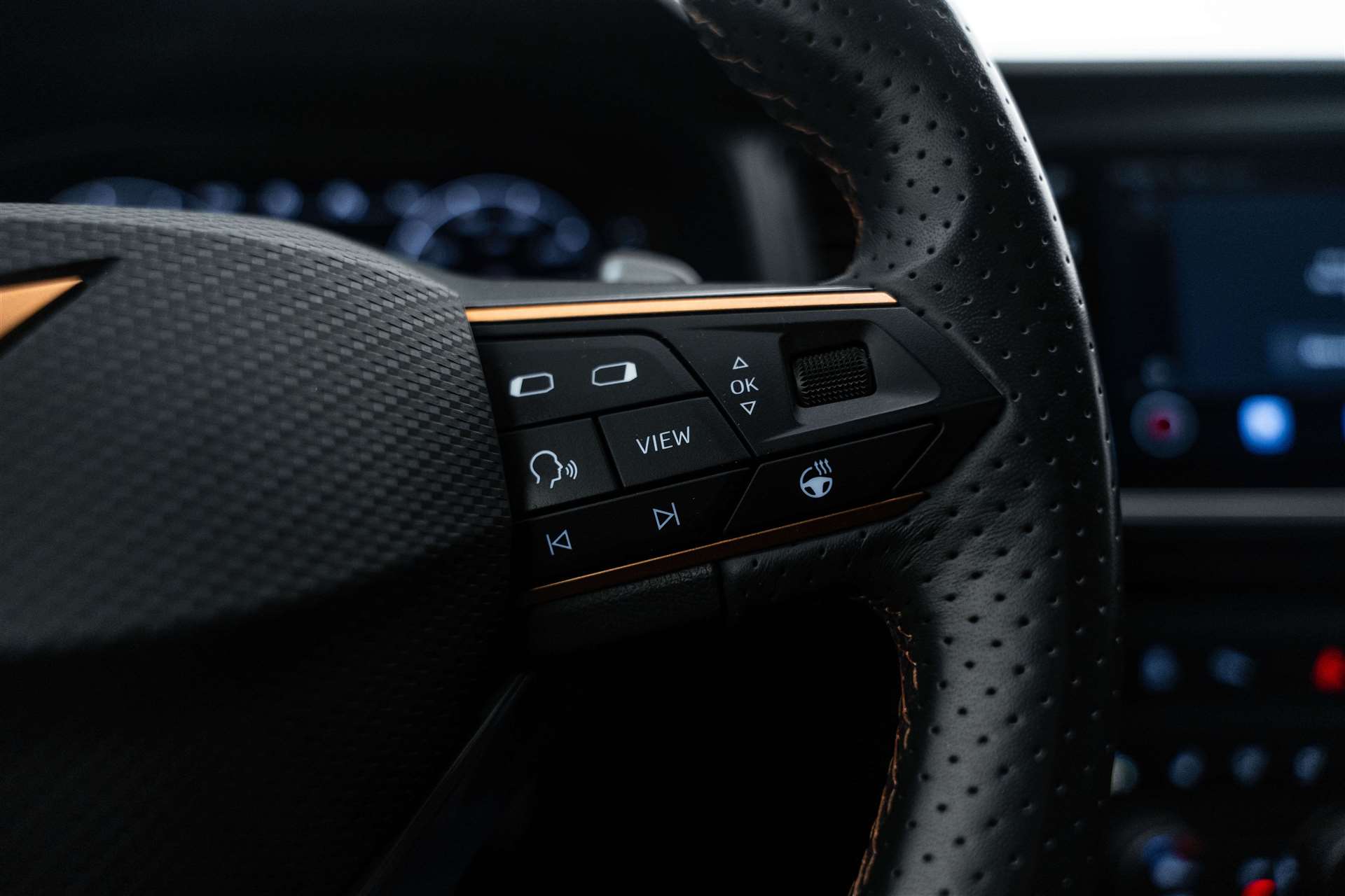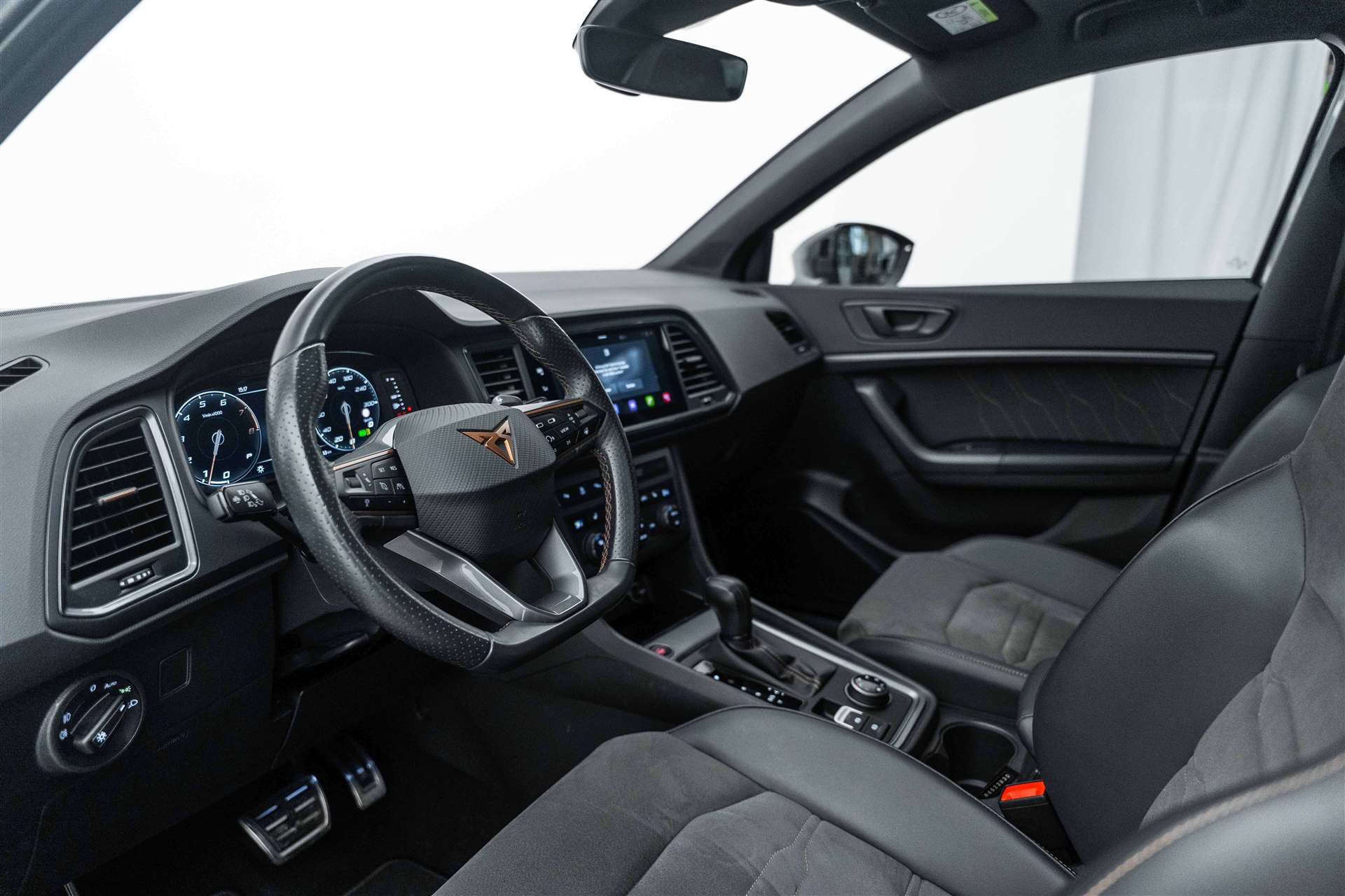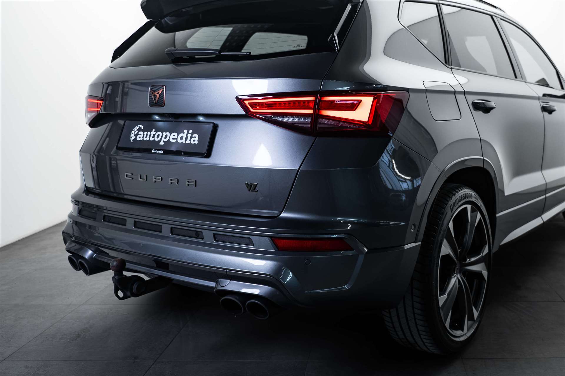 Abgedunkelte Scheiben ab B-Säule hinten, ABS, EBV elektronische Bremskraft-verteilung, Airbag: Airbag Beifahrer deaktivierbar, Airbag: Airbag Fahrer und Beifahrer, Airbag: Knieairbag auf der Fahrerseite, Airbag: Kopfairbags vorne und hinten, Airbag: Seitenairbags für Fahrer und Beifahrer, Allradantrieb permanent, Assist: Einparkhilfe vorne und hinten mit optischer Anzeige, Assist: Elektronische Parkbremse mit Auto Hold Funktion, Assist: Front Assist, Assist: Lane assist (Spurhalteassistent), Assist: Multifunktionskamera, Assist: Multikollisionsbremse, Assist: Parklenkassistent, Assist: Prädiktive automatische Distanzregelung ACC, Assist: Regen-/Lichtsensor, Assist: Speed limiter, Assist: Tempomat, Assist: Tiredness detection (Müdigkeitserkennung), Assist: Top View Camera (Rundumblick), Assist: Traffic sign recognition (Verkehrszeichenerkennung), Aussenspiegel elektrisch einstell-, beheiz- und einklappbar, Aussenspiegel mit Beifahrerspiegelabsenkung, Aussenspiegel mit LED-Umfeldbeleuchtung, Aussenspiegel und Türgriffe in Wagenfarbe, Automatisch abblendender Innenrückspiegel, Beleuchtete Sonnenblende links mit abdeckbarem Spiegel und Lasche, rechts mit abdeckbarem Spiegel, Bordcomputer, CUPRA Drive Profile mit "driving experience button" Comfort, Sport, CUPRA, Individual, Snow, Offroad, Dachhimmel Schwarz, Dachreling schwarz, Dekor: Dekorblenden in Grau glänzend, Dekor: Türverkleidung mit Ambient light, Drehzahlmesser, Dreipunkt-Automatiksicherheitsgurte auf allen Plätzen, Einstiegsleisten in Aluminium, Elektrische Fensterheber vorne und hinten mit Komfortschaltung und Einklemmschutz, ESC mit EBA, DSR, XDS und Reifendruckkontrolle, Fahrwerk: Adaptive Fahrwerksregelung DCC, Fahrwerk: Progressivlenkung, Full Digital Cockpit, Fussmatten vorne und hinten, Garantie: Cupra 12 Jahre Gewährleistung gegen Karosserie-Durchrostung, Garantie: Cupra 3 Jahre Lack-Gewährleistung, Garantie: Cupra Garantie 2 Jahre ohne Kilometerbegrenzung, Getriebe: 7-Gang DSG, Heckdiffusor, Heckscheiben-Wisch-/Waschanlage mit Intervall, Heckscheibenheizung, Heckspoiler, Katalysator geregelt, Klima: 2-Zonen Climatronic, Lackierung: Uni-Lackierung, LED Innenraumbeleuchtung, Lenkrad: Beheizbares Ledermultifunktionslenkrad mit Schaltwippen, Licht: Coming-home-Funktion, Licht: Drittes Bremslicht, Licht: Fernlicht-Assistent, Licht: LED-Heckleuchten mit dynamischem Blinklicht, Licht: LED-Nebelscheinwerfer mit Cornering-Funktion, Licht: LED-Scheinwerfer für Abblend- und Fernlicht, Licht: LED-Tagfahrlicht, Licht: Leuchtweitenregulierung dynamisch, Licht: Nebelschlussleuchte, Media: 2 USB C Anschlüsse hinten und vorne, Media: 8 Lautsprecher, Media: 9.2" 3D Infotainment (MIB3), Media: CUPRA Connect Online Infotainment für Navigationssystem, Media: CUPRA Connect Remote & Access für Navigationssystem, Media: CUPRA Connect Safety & Services für Navigationssystem, Media: CUPRA Connectivity Box, Media: CUPRA FullLink für Navigationssystem, Media: CUPRA Navigationssystem, Media: DAB+ (Digital Audio Broadcasting), Media: Kartenmaterial ''Europa'', Media: Mobiltelefon Freisprechanlage Bluetooth, Media: Sprachsteuerung, Paket: Fahrerassistenzpaket M für Navigationssystem, Paket: Winterpaket, Paket: Winterpaket, Pyrotechnische Gurtstraffer und Gurtkraftbegrenzer, Räder: Alufelgen 8J x 19", Machined Sport Black/Silver, Räder: Reifenreparatur-Set (Tire Fit), Radlaufblenden in Wagenfarbe, Schlüsselloses Schliess- und Startsystem (KESSY), Servolenkung mit geschwindigkeitsabhängiger Lenkkraftunterstützung, Sitze: 2 verstellbare Kopfstützen vorne und 3 hinten, Sitze: CUPRA Sportschalensitze in Dinamica "Black", Sitze: Easy Backseat Release (Rücksitzentriegelung im Kofferraum), Sitze: Geteilt abklappbare Rücksitzlehne 1/3 - 2/3, Sitze: Kindersitzverankerung ISOFIX hinten, Sitze: Mittelarmlehne hinten, Sitze: Mittelarmlehne vorne, Sitze: Sitzheizung für Vordersitze, getrennt regelbar, Sitze: Sitzheizung für Vordersitze, getrennt regelbar, Sitze: Vordersitze höhenverstellbar mit Lendenwirbelstütze, Sportabgasanlage mit 4-fach Endrohr, Stopp - Start- und Rekuperationssystem, Vollverzinkte Karosserie, Wegfahrsperre elektronisch, Zentralverriegelung mit Funkfernbedienung, 2 Funkschlüssel
