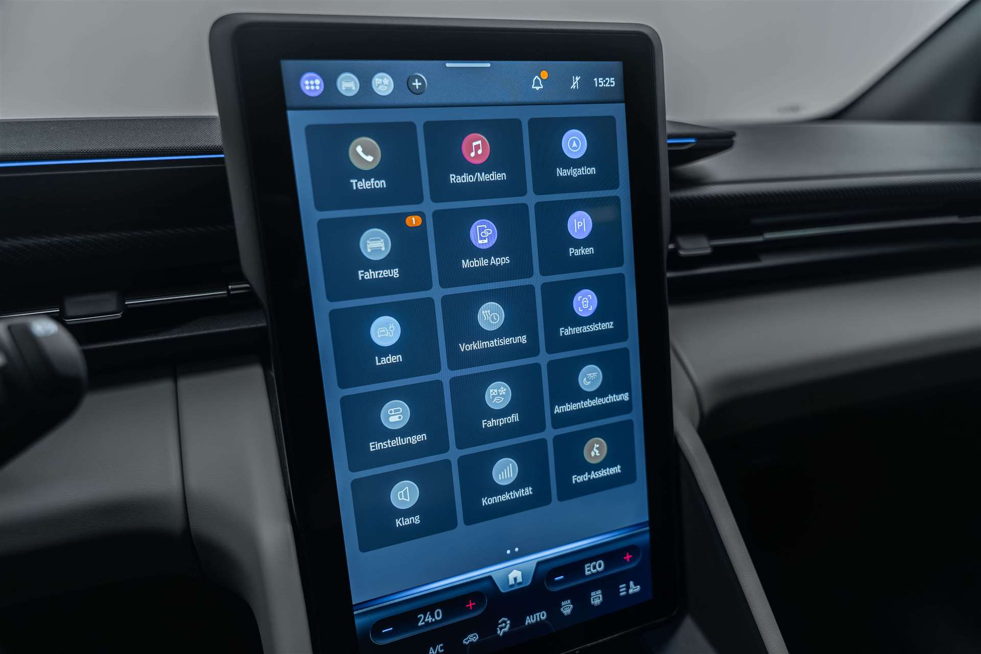 12-Volt-Anschluss im Gepäckraum, 12-Volt-Anschluss im Gepäckraum, Airbag: Airbag zwischen Fahrer und Beifahrer (Fahrersitz), Airbag: Airbag zwischen Fahrer und Beifahrer (Fahrersitz), Airbag: Airbag, Beifahrerseite, Airbag: Airbag, Beifahrerseite, Airbag: Beifahrerairbag - Deaktivierung, Airbag: Beifahrerairbag - Deaktivierung, Airbag: Fahrerairbag, Airbag: Fahrerairbag, Airbag: Seitenairbag für Fahrer und Beifahrer, Airbag: Seitenairbag für Fahrer und Beifahrer - Kopf-und Schulterairbags vorne und hinten, Antiblockier-Bremssystem (ABS), Assist: Akustisches Warnsystem (AVAS), Assist: Akustisches Warnsystem (AVAS), Assist: Ausweichassistent, Assist: Ausweichassistent, Assist: Cross Traffic Alert mit Notbrems-Funktion, Assist: Cross Traffic Alert mit Notbrems-Funktion, Assist: Fahrspur-Assistent inkl. Fahrspurhalte-Assistent, Assist: Falschfahrer-Warnfuntion, Assist: Falschfahrer-Warnfuntion, Assist: Intelligente Geschwindigkeitsregelanlage, adaptiv mit Stop&Go Funktion, Assist: Intelligente Geschwindigkeitsregelanlage, adaptiv mit Stop&Go Funktion, Assist: Intelligenter Geschwindigkeitsbegrenzer mit Tempolimit-Anzeige, Assist: Intelligenter Geschwindigkeitsbegrenzer mit Tempolimit-Anzeige, Assist: Müdigkeitswarner, Assist: Müdigkeitswarner, Assist: Park-Pilot System hinten, Assist: Park-Pilot System hinten, Assist: Park-Pilot System vorne, Assist: Park-Pilot System vorne, Assist: Post-Collision-Assist, Assist: Pre-Collision-Assist inkl. Auffahrwarnsystem und Notbremsfunktion, Assist: Pre-Collision-Assist inkl. Auffahrwarnsystem und Notbremsfunktion, Assist: Rückfahrkamera, Assist: Toter-Winkel-Assistent, Assist: Toter-Winkel-Assistent, Assist: Traktionskontrolle (TCS-Traction Conrol System), Assist: Verkehrsschild-Erkennungssystem, Assist: Verkehrsschild-Erkennungssystem, Aussenspiegel elektrisch einstellbar, beheizbar, elektrisch anklappbar, Aussenspiegel elektrisch einstellbar, beheizbar, elektrisch anklappbar - mit integrierten Blinkleuchten und Logo Bodenprojektion, Aussenspiegel in Schwarz lackiert, Aussenspiegel in Schwarz lackiert, Dachhimmel schwarz, Dachhimmel schwarz, Dekor: Zierelemente in Carbon-Dekor, Diebstahl-Alarmanlage mit Innenraumüberwachung, Diebstahl-Alarmanlage mit Innenraumüberwachung, Einstiegszierleisten vorn, Einstiegszierleisten vorn, Elektrische Fensterheber vorne, Elektronisches Stabilitäts-Programm, Ereignisdatenrekorder, Fahrerinformationssystem mit digitaler Instrumententafel, 5.3", Fahrerinformationssystem mit digitaler Instrumententafel, 5.3", Fahrmodi auswählbar, Fahrwerk: Sportlich abgestimmtes Fahrwerk, Fahrwerk: Sportlich abgestimmtes Fahrwerk, Fahrzeug-Vorkonditionierung (Batterie und Innenraum), Feststellbremse, elektronisch mit Auto Hold-Funktion, Ford Key Free-System (schlüsselfreies Ent/- Verriegeln) inkl. Ford Power-Startfunktion, Ford Key Free-System (schlüsselfreies Ent/- Verriegeln) inkl. Ford Power-Startfunktion (schlüsselfreies Starten), FordPass Connect inkl. eCall, FordPass Connect inkl. eCall, Gepäckraumabdeckung, herausnehmbar, Gepäckraumabdeckung, herausnehmbar, Getriebe: Direktantrieb, kein Getriebe, Gurtstraffer vorne und auf den äußeren Plätzen der zweiten Sitzreihe, Gurtstraffer vorne und auf den äußeren Plätzen der zweiten Sitzreihe, Haltegriff für Fahrer- und Beifahrer, Haltegriffe hinten, Induktive Ladestation für mobile Endgeräte, Induktive Ladestation für mobile Endgeräte, Innenspiegel automatisch abblendbar, Innenspiegel automatisch abblendbar, Klima: Klimaanlage mit automatischer Temperaturkontrolle (2-Zonen-Klimaautomatik), Lackierung: Vivid Yellow, Ladekabel Mode 3, Typ 2, Ladekabel Mode 3, Typ 2, Laderaumbeleuchtung, LED Ambientebeleuchtung, Multicolor, LED Ambientebeleuchtung, Multicolor, Lenkrad: Lederlenkrad, beheizbar, Lenkrad: Lederlenkrad, beheizbar, Lenkrad: Soft-Touch Lenkrad, Sensico, Lenkrad: Soft-Touch Lenkrad, Sensico, Licht: Fernlicht-Assistent, blendfrei, Licht: Fernlicht-Assistent, blendfrei, Licht: LED-Rückleuchten mit Ford-Schriftzug und Coast-to-Coast-Applikation, Licht: LED-Rückleuchten mit Ford-Schriftzug und Coast-to-Coast-Applikation, Licht: Matrix LED-Scheinwerfer, Licht: Matrix LED-Scheinwerfer, Licht: Scheinwerfer, automatisch höhenverstellbar, Licht: Scheinwerfer, automatisch höhenverstellbar, Make-up-Spiegel in Fahrer- und Beifahrersonnenblende, beleuchtet, Make-up-Spiegel in Fahrer- und Beifahrersonnenblende, beleuchtet, Media: 2 USB Anschlüsse, vorne, Media: 2 USB Anschlüsse, vorne, Media: Audiosystem mit 7 Lautsprechen inkl. Soundbar, Media: Ford SYNC Move mit beweglichem 14,6" Touchscreen und My Private Locker, Media: Ford SYNC Move mit beweglichem 14,6" Touchscreen und My Private Locker, Media: Integriertes Modem, Media: Integriertes Modem, Media: Kabellose Smartphone-Integration via Apple CarPlay und Android Auto, Media: Kabellose Smartphone-Integration via Apple CarPlay und Android Auto, Media: Radio mit digitalem Radioempfang DAB+ und geschwindigkeitsabhängiger Lautstärke, Media: Sprachsteuerung, Media: Sprachsteuerung, Media: Vernetzte Navigation, Media: Vernetzte Navigation, MegaConsole mit Staufach, 2 Getränkehaltern und Luftausströmern für 2. Sitzreihe, MegaConsole mit Staufach, 2 Getränkehaltern und Luftausströmern für 2. Sitzreihe, Polster: Premium-Polsterung Sensico in Leder-Optik in Schwarz, Polster: Premium-Polsterung Sensico in Leder-Optik in Schwarz, Räder: Ganzjahresreifen, Räder: Reifendruckkontrollsystem, Räder: Reifenreparatur-Set (Tire Fit), Räder: Reifenreparatur-Set (Tire Fit), Scheibenwischer mit Regensensor, Scheibenwischer mit Regensensor, Seitenscheiben ab 2. Sitzreihe und Heckscheibe, dunkel getönt, Seitenscheiben ab 2. Sitzreihe und Heckscheibe, dunkel getönt, Servolenkung, Sitze: 3 Kopfstützen hinten, Sitze: 3 Kopfstützen hinten, Sitze: Beifahrersitz, 6-fach manuell einstellbar, Sitze: Beifahrersitz, 6-fach manuell einstellbar, Sitze: Fahrer- und Beifahrersitz, individuell und variabel beheizbar, Sitze: Fahrer- und