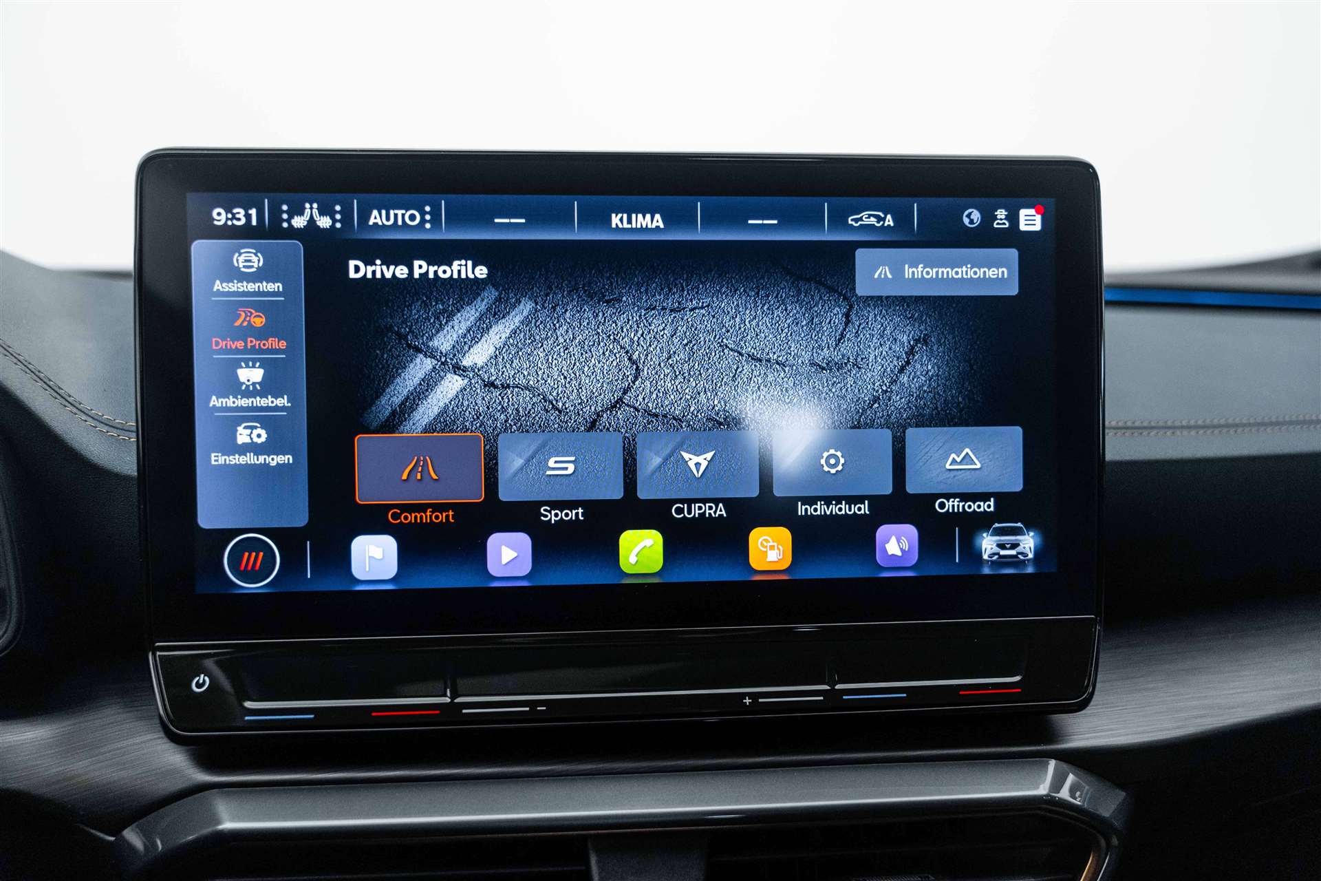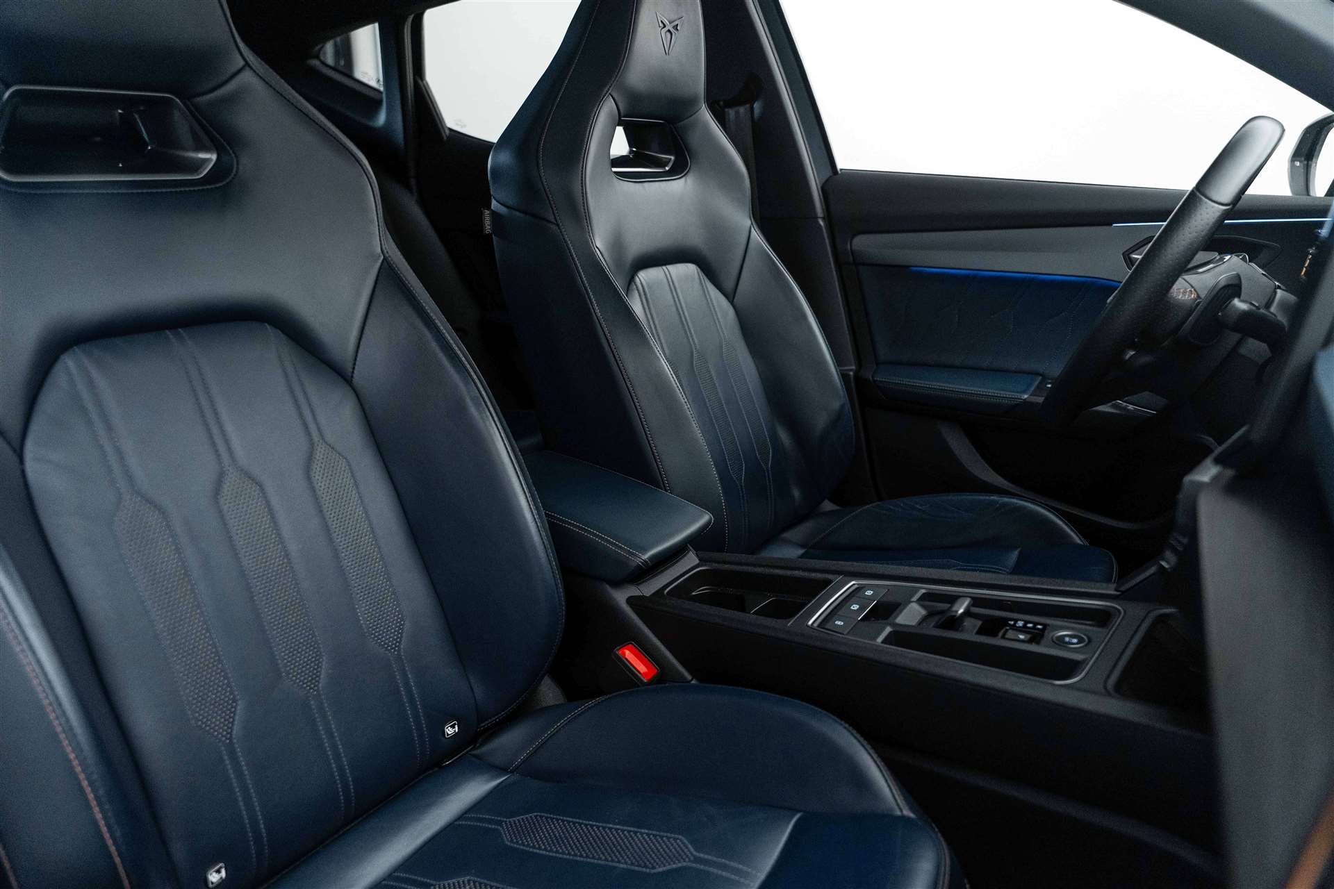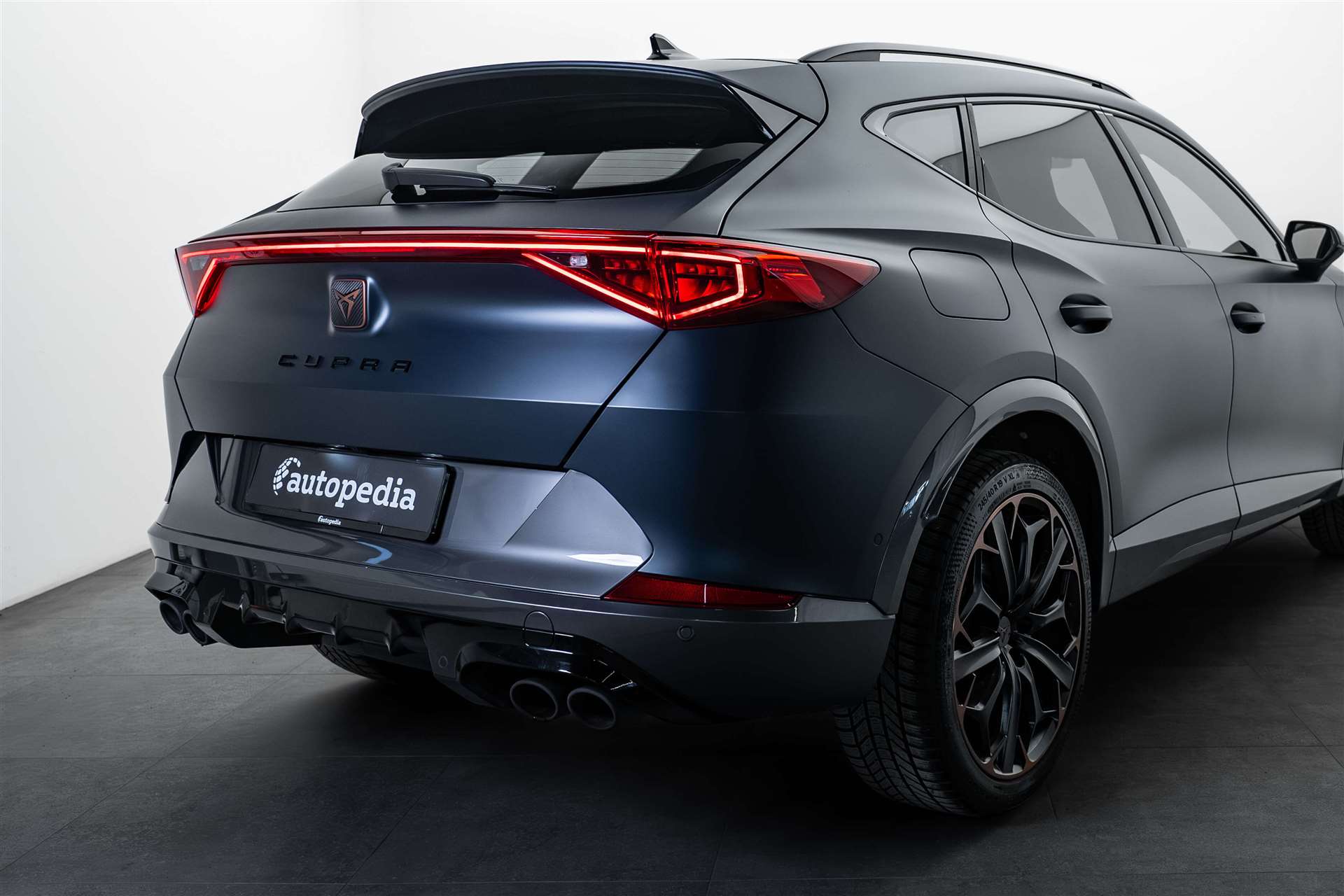 230-Volt Steckdose im Kofferraum und 12-Volt Steckdose in der Mittelkonsole, Abgedunkelte Scheiben ab B-Säule hinten, ABS, EBV elektronische Bremskraft-verteilung, Airbag: Airbag Beifahrer deaktivierbar, Airbag: Airbag Fahrer und Beifahrer, Airbag: Kopfairbags vorne und hinten, Airbag: Seitenairbags für Fahrer und Beifahrer, Allradantrieb permanent, Assist: Automatische Distanzregelung ACC, Assist: City Notbremsfunktion, Assist: Einparkhilfe vorne und hinten mit Rückfahrkamera, Assist: Elektronische Parkbremse mit Auto Hold Funktion, Assist: Exit Assist (Ausparkassistent), Assist: Multifunktionskamera, Assist: Multikollisionsbremse, Assist: Parklenkassistent, Assist: PreCrash Sicherheitssystem, Assist: Regen-/Lichtsensor, Assist: Side Assist (Spurwechselassistent), Assist: Tiredness detection (Müdigkeitserkennung), Assist: Traffic sign recognition (Verkehrszeichenerkennung), Assist: Travel Assist, Assist: Umfeldbeobachtung Front-Assist, Aussenspiegel elektrisch einstell-, beheiz- und einklappbar, Aussenspiegel mit Beifahrerspiegelabsenkung, Aussenspiegel mit LED-Umfeldbeleuchtung, Automatisch abblendender Innenrückspiegel, Beleuchtete Sonnenblende links mit abdeckbarem Spiegel und Lasche, rechts mit abdeckbarem Spiegel, CUPRA Drive Profile mit "driving experience button" Comfort, Sport, CUPRA, Individual, Snow, Offroad, Dachhimmel schwarz, Dachreling schwarz, Dreipunkt-Automatiksicherheitsgurte auf allen Plätzen, Elektrische Fensterheber vorne und hinten mit Komfortschaltung und Einklemmschutz, ESC mit EBA, DSR, XDS und Reifendruckkontrolle, Fahrwerk: Adaptive Fahrwerksregelung DCC, Fahrwerk: Performance BREMBO Bremsen, Fahrwerk: Performance BREMBO Bremsen, Fahrwerk: Progressivlenkung, Full Digital Cockpit, Fussmatten vorne und hinten, Garantie: Cupra 12 Jahre Gewährleistung gegen Karosserie-Durchrostung, Garantie: Cupra 3 Jahre Lack-Gewährleistung, Garantie: Cupra Garantie 2 Jahre ohne Kilometerbegrenzung, Getriebe: 7-Gang DSG, Heckdiffusor, Heckscheiben-Wisch-/Waschanlage mit Intervall, Heckspoiler, Kindersitzverankerung ISOFIX (äussere Plätze hinten), Klima: 3-Zonen Climatronic mit Fondraumbedienung, Lackierung: Matt-Lackierungen, LED-Innenraumbeleuchtung mit Ambientebeleuchtung Wraparound, Lenkrad: Beheizbares Ledermultifunktionslenkrad mit Tiptronic, Lenkrad: Supersportlenkrad mit Start-/ Drive Profile-Knopfsystem und Schaltwippen, beheizbar, Licht: Coming-home-Funktion, Licht: Durchgehende Full LED-Heckleuchten, Licht: LED-Heckleuchten mit dynamischem Blinklicht, Licht: LED-Nebelscheinwerfer mit Cornering-Funktion, Licht: LED-Scheinwerfer für Abblend- und Fernlicht, Licht: LED-Tagfahrlicht, Licht: Leuchtweitenregulierung dynamisch, Media: 12" 3D Infotainment (MIB3), Media: 2 USB C Anschlüsse hinten und vorne, Media: 7 Lautsprecher, Media: CUPRA Connect Online Infotainment für Navigationssystem, Media: CUPRA Connect Remote & Access für Navigationssystem, Media: CUPRA FullLink für Navigationssystem, Media: CUPRA FullLink für Navigationssystem, Media: CUPRA Navigationssystem PLUS, Media: DAB+ (Digital Audio Broadcasting), Media: Kartenmaterial ''Europa'', Media: Mobiltelefon Freisprechanlage Bluetooth, Media: Sprachsteuerung, Mittelarmlehne vorne und hinten, Nebelschlussleuchte, Ottopartikelfilter, Pyrotechnische Gurtstraffer und Gurtkraftbegrenzer, Räder: Alufelgen 19", "EXCLUSIVE" Machined in Copper, Räder: Reifendruck-Kontrollanzeige, Räder: Reserverad platzsparend, Schlüsselloses Schliess- und Startsystem (KESSY), Servolenkung mit geschwindigkeitsabhängiger Lenkkraftunterstützung, Sitze: 2 verstellbare Kopfstützen vorne und 3 hinten, Sitze: CUPRA Sport Schalensitze in Leder "Petrol blue", Sitze: CUPRA Sport Schalensitze in Leder "Petrol blue" -Sitzmittelbahnen und -wangeninnenseiten in Leder, restliche Bezüge in Kunstleder - Elektrische Sitzverstellung mit Memory-Funktion für linken Sitz, rechter Sitz manuell höhenverstellbar, - Schublade unter dem rechten Vordersitz, Sitze: Easy Backseat Release (Rücksitzentriegelung im Kofferraum), Sitze: Geteilt abklappbare Rücksitzlehne 1/3 - 2/3, Sitze: Sitzheizung für Vordersitze, getrennt regelbar, Sitze: Vordersitze höhenverstellbar mit Lendenwirbelstütze, Sportauspuffanlage mit 4-fach Endrohr, Stopp - Start- und Rekuperationssystem, Türgriffe in Wagenfarbe, Variabler Ladeboden, Vollverzinkte Karosserie, Wegfahrsperre elektronisch, Zentralverriegelung mit Funkfernbedienung, 2 Funkschlüssel