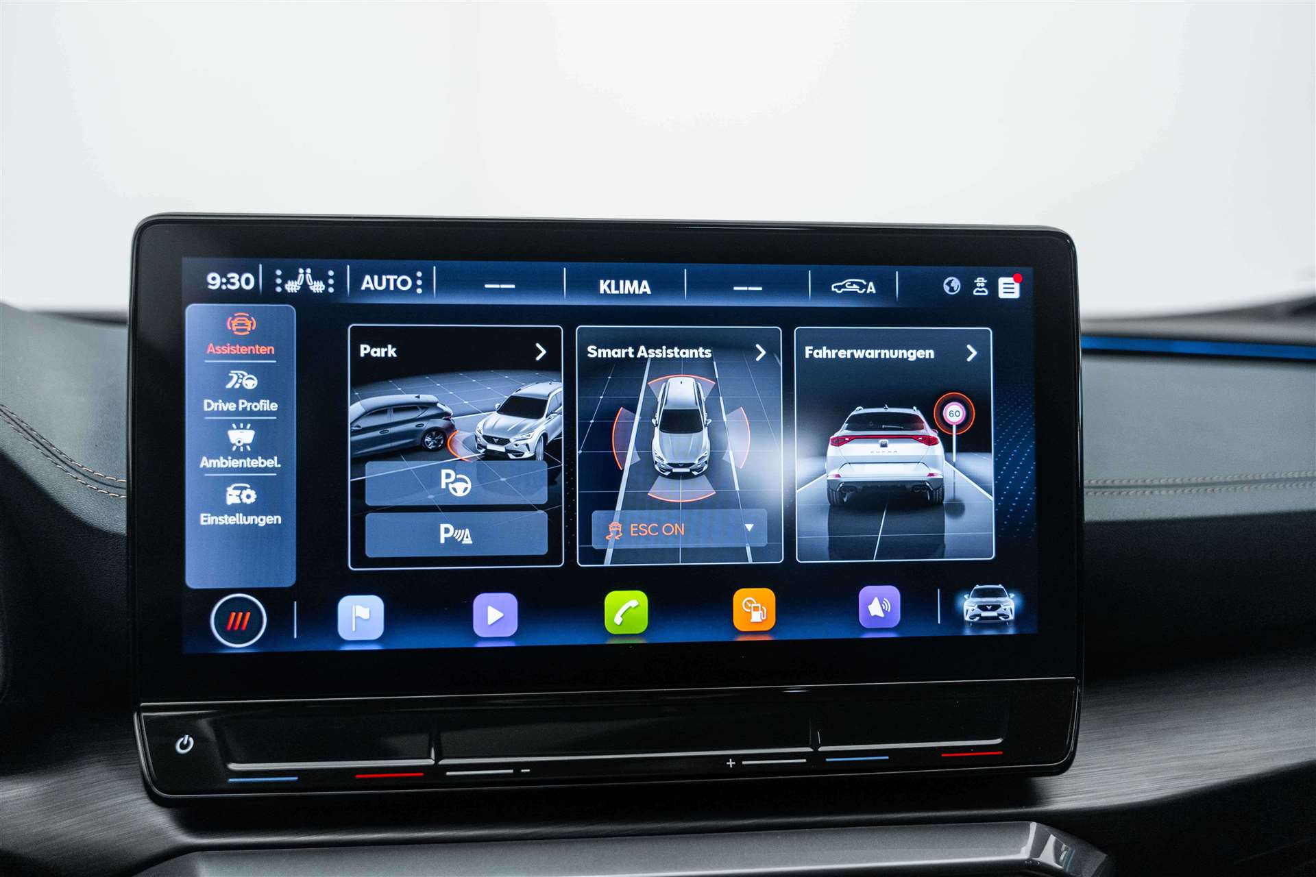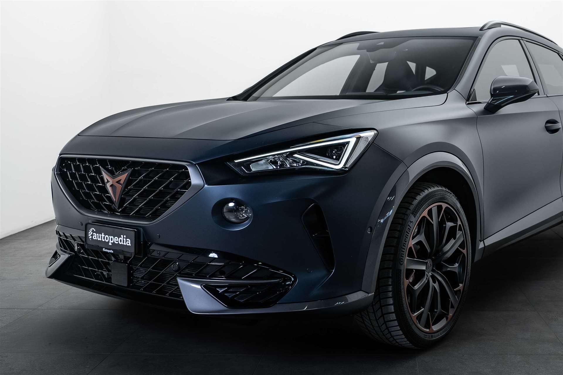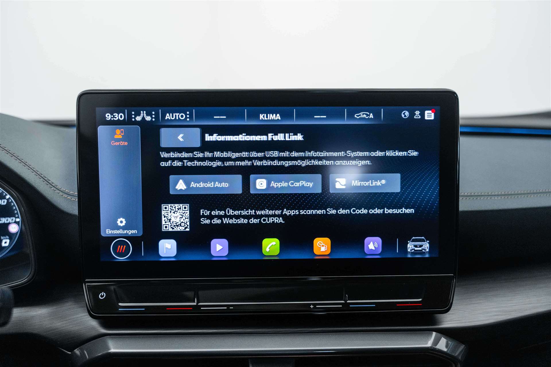 230-Volt Steckdose im Kofferraum und 12-Volt Steckdose in der Mittelkonsole, Abgedunkelte Scheiben ab B-Säule hinten, ABS, EBV elektronische Bremskraft-verteilung, Airbag: Airbag Beifahrer deaktivierbar, Airbag: Airbag Fahrer und Beifahrer, Airbag: Kopfairbags vorne und hinten, Airbag: Seitenairbags für Fahrer und Beifahrer, Allradantrieb permanent, Assist: Automatische Distanzregelung ACC, Assist: City Notbremsfunktion, Assist: Einparkhilfe vorne und hinten mit Rückfahrkamera, Assist: Elektronische Parkbremse mit Auto Hold Funktion, Assist: Exit Assist (Ausparkassistent), Assist: Multifunktionskamera, Assist: Multikollisionsbremse, Assist: Parklenkassistent, Assist: PreCrash Sicherheitssystem, Assist: Regen-/Lichtsensor, Assist: Side Assist (Spurwechselassistent), Assist: Tiredness detection (Müdigkeitserkennung), Assist: Traffic sign recognition (Verkehrszeichenerkennung), Assist: Travel Assist, Assist: Umfeldbeobachtung Front-Assist, Aussenspiegel elektrisch einstell-, beheiz- und einklappbar, Aussenspiegel mit Beifahrerspiegelabsenkung, Aussenspiegel mit LED-Umfeldbeleuchtung, Automatisch abblendender Innenrückspiegel, Beleuchtete Sonnenblende links mit abdeckbarem Spiegel und Lasche, rechts mit abdeckbarem Spiegel, CUPRA Drive Profile mit "driving experience button" Comfort, Sport, CUPRA, Individual, Snow, Offroad, Dachhimmel schwarz, Dachreling schwarz, Dreipunkt-Automatiksicherheitsgurte auf allen Plätzen, Elektrische Fensterheber vorne und hinten mit Komfortschaltung und Einklemmschutz, ESC mit EBA, DSR, XDS und Reifendruckkontrolle, Fahrwerk: Adaptive Fahrwerksregelung DCC, Fahrwerk: Performance BREMBO Bremsen, Fahrwerk: Performance BREMBO Bremsen, Fahrwerk: Progressivlenkung, Full Digital Cockpit, Fussmatten vorne und hinten, Garantie: Cupra 12 Jahre Gewährleistung gegen Karosserie-Durchrostung, Garantie: Cupra 3 Jahre Lack-Gewährleistung, Garantie: Cupra Garantie 2 Jahre ohne Kilometerbegrenzung, Getriebe: 7-Gang DSG, Heckdiffusor, Heckscheiben-Wisch-/Waschanlage mit Intervall, Heckspoiler, Kindersitzverankerung ISOFIX (äussere Plätze hinten), Klima: 3-Zonen Climatronic mit Fondraumbedienung, Lackierung: Matt-Lackierungen, LED-Innenraumbeleuchtung mit Ambientebeleuchtung Wraparound, Lenkrad: Beheizbares Ledermultifunktionslenkrad mit Tiptronic, Lenkrad: Supersportlenkrad mit Start-/ Drive Profile-Knopfsystem und Schaltwippen, beheizbar, Licht: Coming-home-Funktion, Licht: Durchgehende Full LED-Heckleuchten, Licht: LED-Heckleuchten mit dynamischem Blinklicht, Licht: LED-Nebelscheinwerfer mit Cornering-Funktion, Licht: LED-Scheinwerfer für Abblend- und Fernlicht, Licht: LED-Tagfahrlicht, Licht: Leuchtweitenregulierung dynamisch, Media: 12" 3D Infotainment (MIB3), Media: 2 USB C Anschlüsse hinten und vorne, Media: 7 Lautsprecher, Media: CUPRA Connect Online Infotainment für Navigationssystem, Media: CUPRA Connect Remote & Access für Navigationssystem, Media: CUPRA FullLink für Navigationssystem, Media: CUPRA FullLink für Navigationssystem, Media: CUPRA Navigationssystem PLUS, Media: DAB+ (Digital Audio Broadcasting), Media: Kartenmaterial ''Europa'', Media: Mobiltelefon Freisprechanlage Bluetooth, Media: Sprachsteuerung, Mittelarmlehne vorne und hinten, Nebelschlussleuchte, Ottopartikelfilter, Pyrotechnische Gurtstraffer und Gurtkraftbegrenzer, Räder: Alufelgen 19", "EXCLUSIVE" Machined in Copper, Räder: Reifendruck-Kontrollanzeige, Räder: Reserverad platzsparend, Schlüsselloses Schliess- und Startsystem (KESSY), Servolenkung mit geschwindigkeitsabhängiger Lenkkraftunterstützung, Sitze: 2 verstellbare Kopfstützen vorne und 3 hinten, Sitze: CUPRA Sport Schalensitze in Leder "Petrol blue", Sitze: CUPRA Sport Schalensitze in Leder "Petrol blue" -Sitzmittelbahnen und -wangeninnenseiten in Leder, restliche Bezüge in Kunstleder - Elektrische Sitzverstellung mit Memory-Funktion für linken Sitz, rechter Sitz manuell höhenverstellbar, - Schublade unter dem rechten Vordersitz, Sitze: Easy Backseat Release (Rücksitzentriegelung im Kofferraum), Sitze: Geteilt abklappbare Rücksitzlehne 1/3 - 2/3, Sitze: Sitzheizung für Vordersitze, getrennt regelbar, Sitze: Vordersitze höhenverstellbar mit Lendenwirbelstütze, Sportauspuffanlage mit 4-fach Endrohr, Stopp - Start- und Rekuperationssystem, Türgriffe in Wagenfarbe, Variabler Ladeboden, Vollverzinkte Karosserie, Wegfahrsperre elektronisch, Zentralverriegelung mit Funkfernbedienung, 2 Funkschlüssel