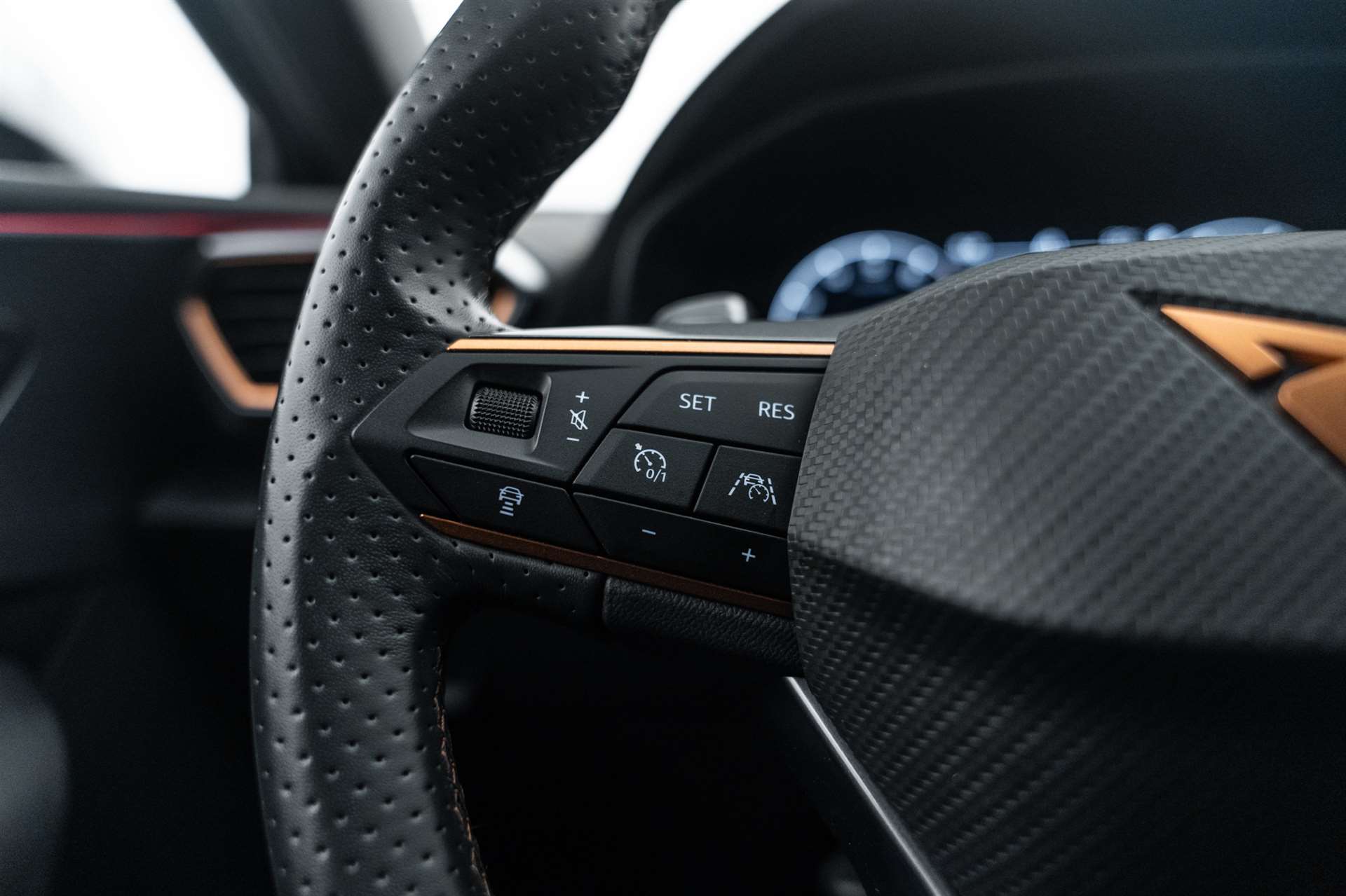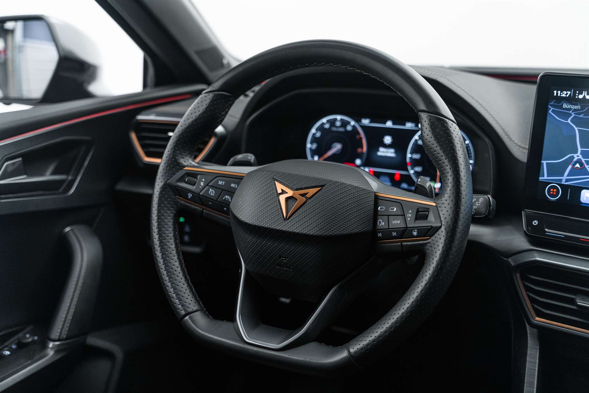 Garantie: 2 Jahre ohne Kilometerbegrenzung (ab 1. Inv.), Räder: Ersatzrad platzsparend, Paket: Elektrikpaket, 230V-Steckdose im Kofferaum, Media: CUPRA Connectivity Box, Paket: Fahrerassistenzpaket M für Navigationssystem, Assist: Fernlichtassistent, Assist: Prädiktive automatische Distanzregelung ACC, Assist: Traffic sign recognition (Verkehrszeichenerkennung), Paket: Winterpaket, Sitze: Sitzheizung für Vordersitze, getrennt regelbar, Airbag: Seitenairbags hinten, vorn mit Knieairbag, CUPRA Seitenschweller in Dark Aluminium, Garantie: Cupra Hersteller-Garantieverlängerung für das 3. und 4. Jahr / max. 80’000 km, Licht: Matrix LED Scheinwerfer, Garantie: Cupra Hersteller-Garantieverlängerung für das 3., 4. und 5. Jahr / max.100’000 km, Sitze: Fahrersitz elektrisch einstellbar, Paket: Dynamic Pack, Fahrwerk: Adaptive Fahrwerksregelung DCC, Lackierung: Metallic-Lackierung - Desire Red, Lackierung: Spezial Metallic-Lackierungen, CUPRA Service, Paket: Design Pack, CUPRA Seitenschweller in Dark Aluminium, Dachspoiler in Black, Pedalen in Dark Aluminium, Räder: Alufelgen 7,5J x 18", "EXCLUSIVE" Machined in Black Copper (225/40 R18), Sitze: CUPRA Sport Schalensitze in Leder "Petrol blue", CUPRA ServicePLUS, Lackierung: Matt-Lackierungen