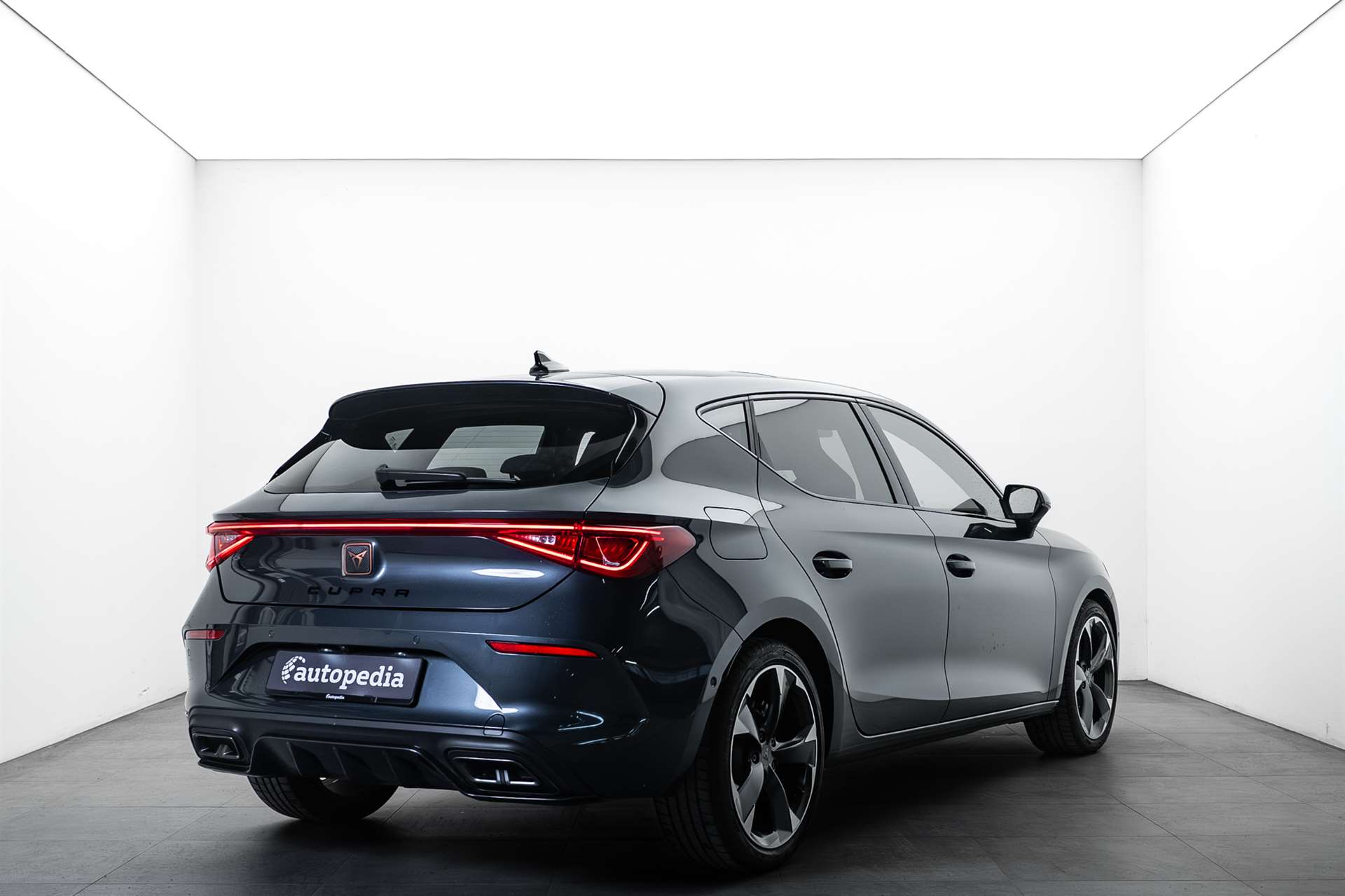 Abgedunkelte Scheiben ab B-Säule hinten, ABS, EBV elektronische Bremskraft-verteilung, Airbag: Airbag Beifahrer deaktivierbar, Airbag: Airbag Fahrer und Beifahrer, Airbag: Kopfairbags vorne und hinten, Airbag: Seitenairbags für Fahrer und Beifahrer, Airbag: Zentral Airbag, Assist: Einparkhilfe hinten, Assist: Elektronische Parkbremse mit Auto Hold Funktion, Assist: Lane assist (Spurhalteassistent), Assist: Multifunktionskamera, Assist: Multikollisionsbremse, Assist: PreCrash Sicherheitssystem, Assist: Speed limiter, Assist: Tempomat, Assist: Tiredness detection (Müdigkeitserkennung), Assist: Traction Control (TCS), deaktivierbar, Aussenspiegel elektrisch einstell-, beheiz- und einklappbar mit Beifahrerabsenkfunktion, Aussenspiegel in Cosmo Grey, Türgriffe in Wagenfarbe, Aussenspiegel mit LED-Blinker, Bremszangen vorne und hinten in Schwarz, CUPRA Drive Profile mit "driving experience button" Comfort, Sport, CUPRA, Individual, CUPRA-Heckspoiler, Dachhimmel schwarz, Dekor: Dekorblenden in Copper, Dreipunkt-Automatiksicherheitsgurte auf allen Plätzen, Elektrische Fensterheber vorne und hinten mit Komfortschaltung und Einklemmschutz, ESC mit EBA, DSR und Reifendruckkontrolle, Fahrwerk: Progressivlenkung, Fahrwerk: Vorderachs-Differenzialsperre, Full Digital Cockpit, Fussmatten vorne und hinten, Getriebe: 7-Gang-Sequentielle-Getriebe mit Automatikfunktion, Heckscheiben-Wisch-/Waschanlage mit Intervall, Heckscheibenheizung, Innenspiegel automatisch abblendbar, Kindersitzverankerung ISOFIX (äussere Plätze hinten), Klima: 3-Zonen Climatronic, Lackierung: Uni-Lackierung, LED-Innenraumbeleuchtung mit Ambientebeleuchtung"Monochrom", Lenkrad: Beheizbares Ledermultifunktionslenkrad mit Schaltwippen, Licht- und Regensensor, Licht: Coming Leaving Home Funktion, Licht: Drittes Bremslicht, Licht: Durchgehende Full LED-Heckleuchten, Licht: LED-Heckleuchten mit dynamischem Blinklicht, Licht: LED-Nebelscheinwerfer mit Cornering-Funktion, Licht: LED-Scheinwerfer für Abblend- und Fernlicht, Licht: LED-Tagfahrlicht, Licht: Leuchtweitenregulierung, Media: 10'' Infotainment (MIB3), Media: 2 USB C Anschlüsse hinten und vorne, Media: 6 Lautsprecher, Media: CUPRA Connect Safety & Services für Media System, Media: DAB+ (Digital Audio Broadcasting), Media: Mobiltelefon Freisprechanlage Bluetooth, Media: Sprachsteuerung, Mittelarmlehne vorne und hinten, Nebelschlussleuchte, Ottopartikelfilter, Parksensoren in Midnight Black, Pollenfilter (Staubfilter), Pyrotechnische Gurtstraffer und Gurtkraftbegrenzer, Räder: Alufelgen 7,5J x 18", "EXCLUSIVE" (225/40 R18), Räder: Reifendruck-Kontrollanzeige, Räder: Reifenreparatur-Set (Tire Fit), Schlüsselloses Schliess- und Startsystem (KESSY), Servolenkung mit geschwindigkeitsabhängiger Lenkkraftunterstützung, Sicherheitsgurtkontrolle für alle Sitze, Sitze: 2 verstellbare Kopfstützen vorne und 3 hinten, Sitze: CUPRA Sportsitze in "Sharp Textil schwarz", Sitze: Geteilt abklappbare Rücksitzlehne 1/3 - 2/3, Sitze: Kindersitzverankerung ISOFIX hinten, Sitze: Vordersitze höhenverstellbar, Sonnenblende Fahrer und Beifahrerseite, Stopp - Start- und Rekuperationssystem, Stossfänger in Sport-Optik mit Heckdiffusor in Wagenfarbe, Vollverzinkte Karosserie, Wärmeschutzverglasung, Wegfahrsperre elektronisch, Zentralverriegelung mit Funkfernbedienung, 2 Funkschlüssel, Zierleisten Seitenfenster in Schwarz Glanz, Zwei Abgasblenden