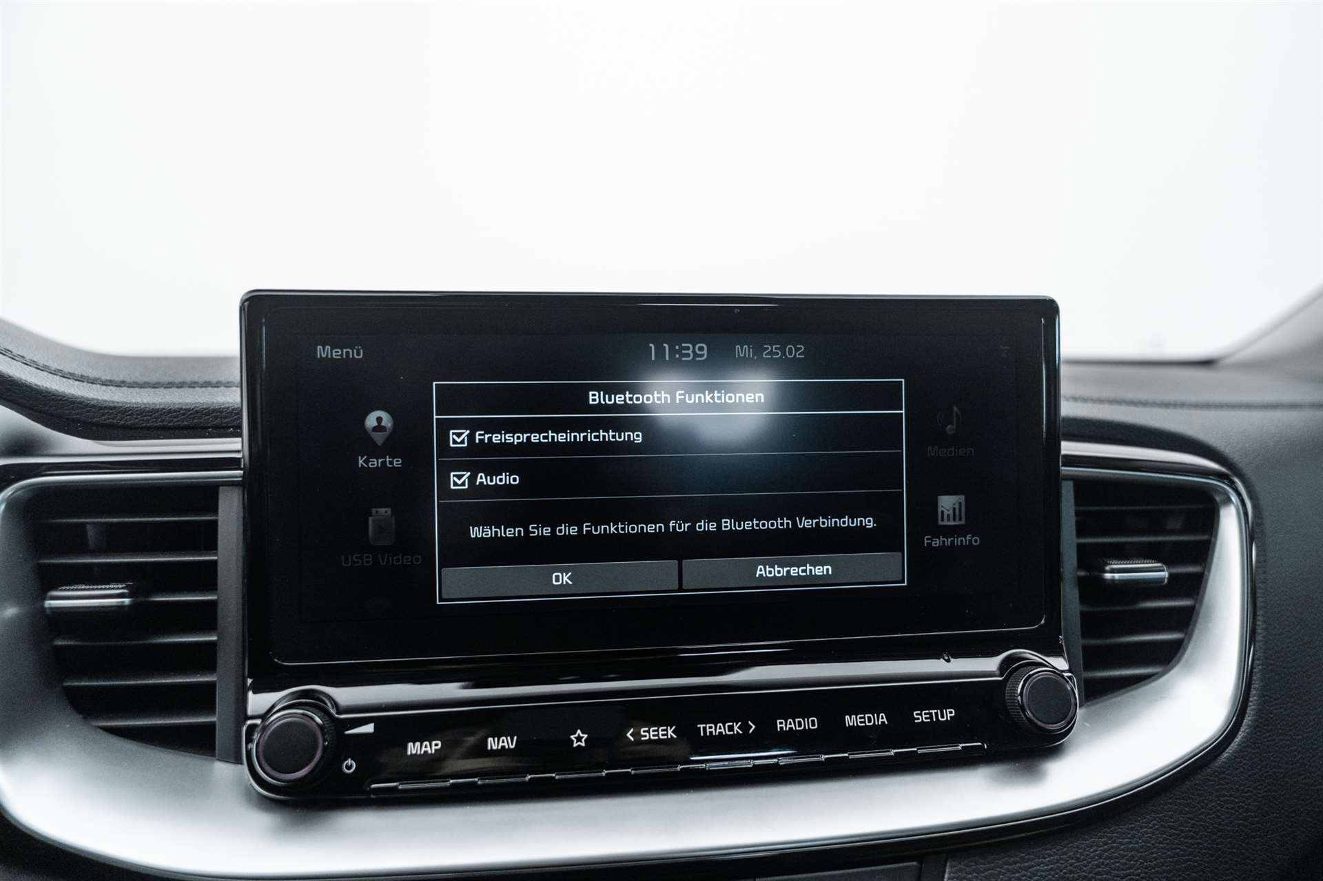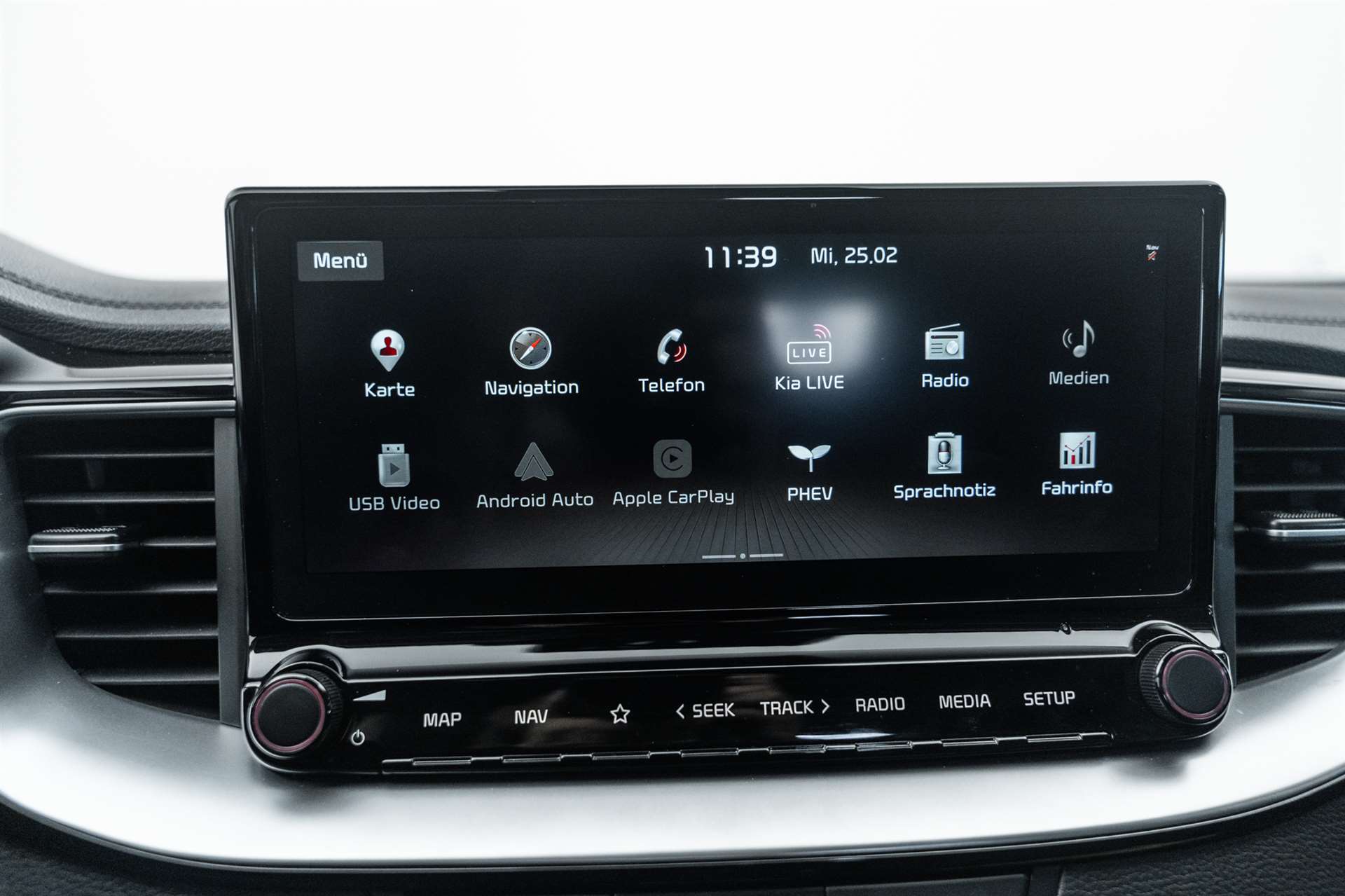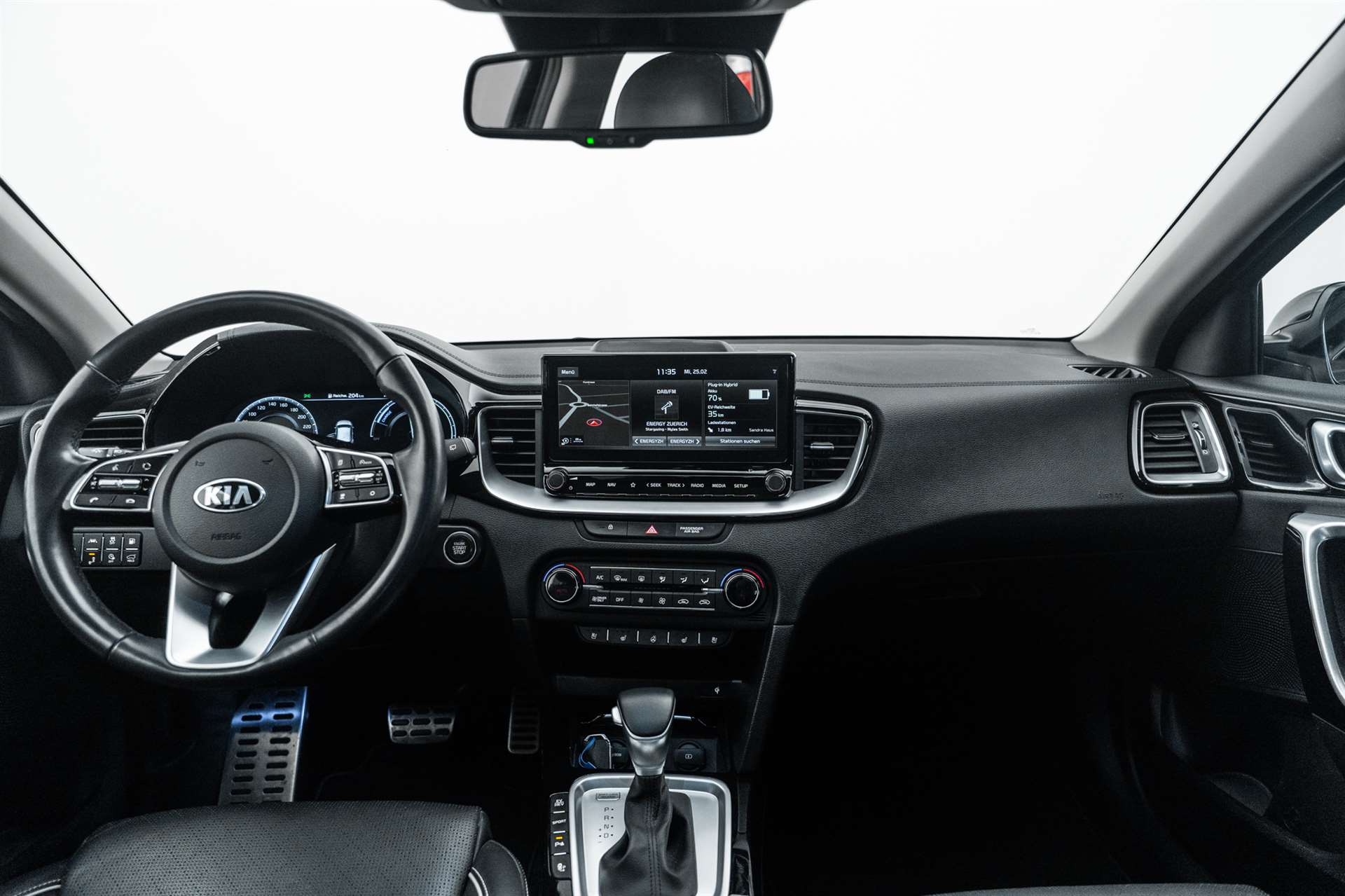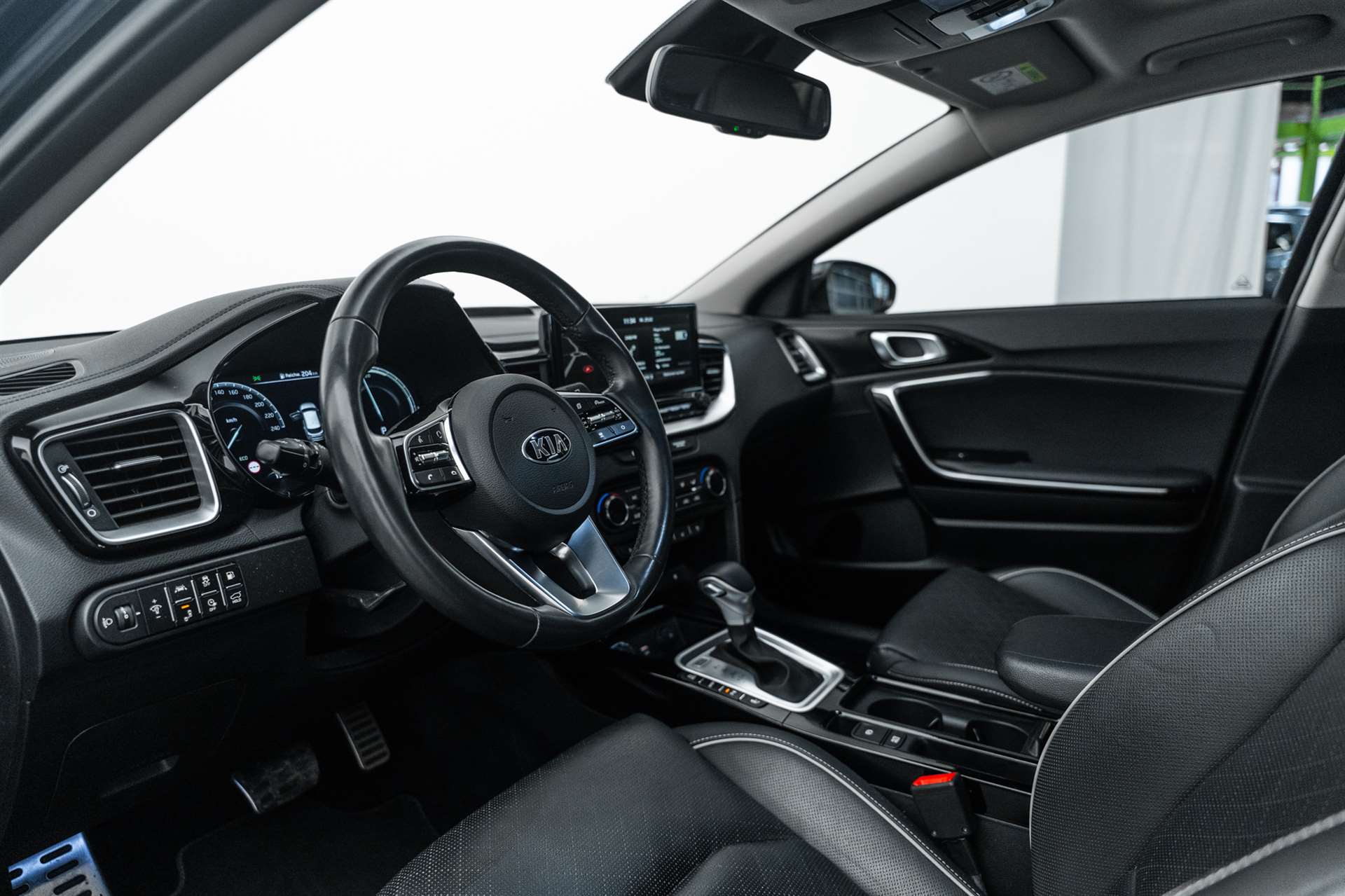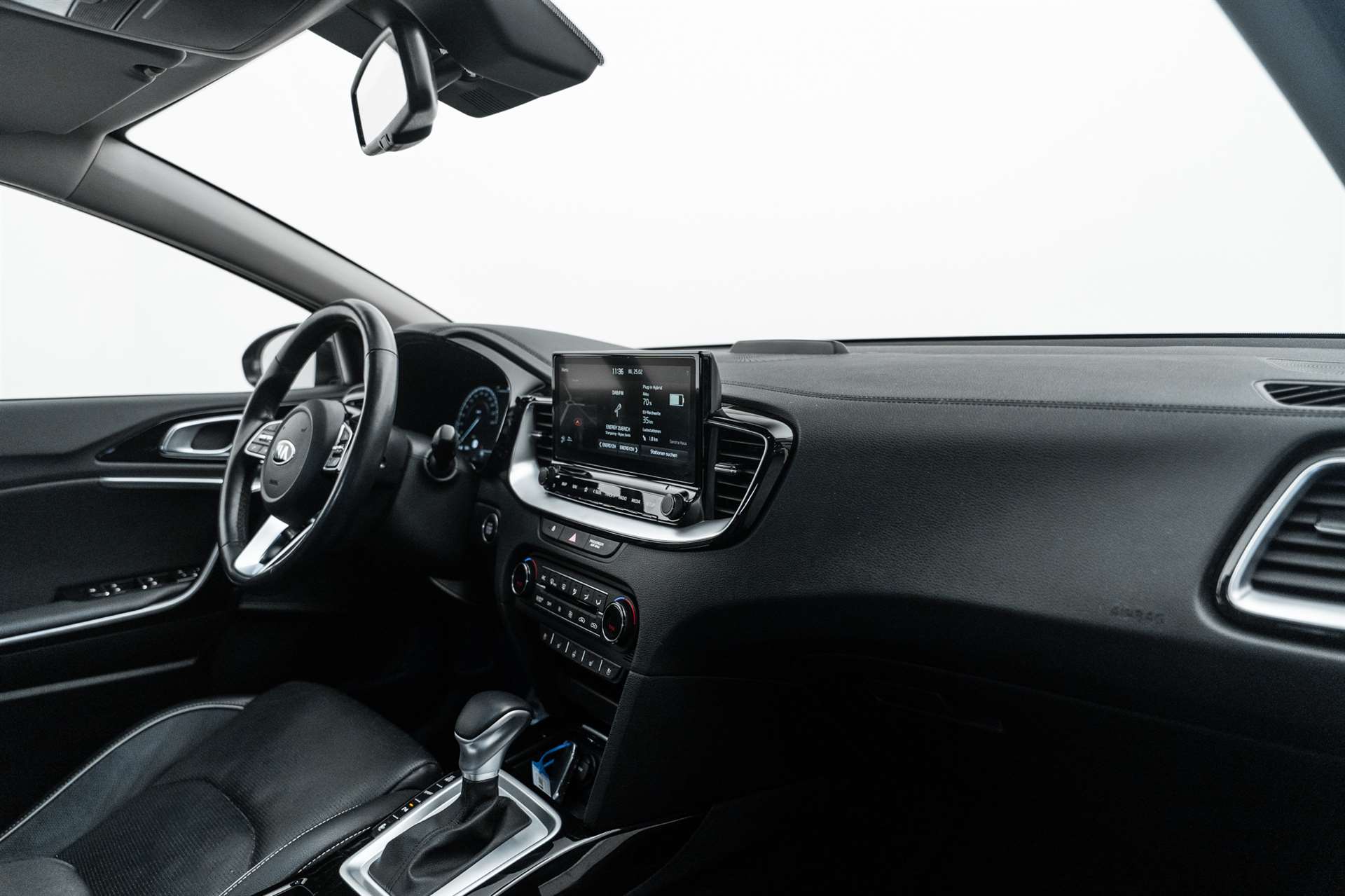 3-Punkt-Sicherheitsgurte an allen Sitzplätzen, vorn höhenverstellbar, Airbag: Airbag Fahrer und Beifahrer inkl. Seitenairbags, Airbag: Knie-Airbag, Airbag: Kopfairbags (Vorhang) vorn und hinten, Antiblockiersystem (ABS) mit elektronischer Bremskraftverteilung (EBD), Assist: Aktiv Bremslicht (ESS), Assist: Anzeige Tempolimit, Assist: Automatische Parkhilfe, Assist: Autonomer Bremsassistent (BAS), Fahrzeug- und Fussgängererkennung, Assist: Berganfahrassistent (HAC), Assist: Fernlicht-Assistent, Assist: Lichtsensor, Assist: Müdigkeitserkennung, Assist: Parksensoren hinten, Assist: Parksensoren vorn, Assist: Rear Cross Traffic Alert, Assist: Spurhalteassistent, Assist: Tempomat mit Distanzassistent, Assist: Totwinkel-Assistent, Aussenspiegel elektrisch verstell- und beheizbar, Dachreling, Drehzahlmesser, Elektrische Handbremse, Elektrische Heckklappe, Elektronisches Stabilitätsprogramm (ESC) / elektronische Traktionskontrolle (TCS), Fensterheber elektrisch vorn und hinten, Getönte Scheiben / Solarglas, Getriebe: 6-Gang DSG, Gurtstraffer und Gurtkraftbegrenzer vorn, Heckscheibenheizung, Heckscheibenwischer, Innenrückspiegel automatisch abblendbar, Katalysator geregelt mit Partikelfilter, Klima: 2-Zonen-Klima-Automatik, Kofferraumabdeckung (Rollo), Kopfstützen hinten höhenverstellbar, Kopfstützen vorne höhenverstellbar, Lackierung: Uni Lackierung, Ladeanschluss Typ2 inkl. Ladekabel, Lenkrad: GT-Line Lenkrad mit Schaltwippen, Lenkrad: Lenkrad höhen- und tiefenverstellbar, Lenkrad: Lenkradheizung, Licht: Drittes Bremslicht, Licht: LED Heckleuchten, Licht: LED-Scheinwerfer, Licht: LED-Tagfahrlicht, Media: 6 Lautsprecher, Media: Android Auto und Apple CarPlay, Media: Bluetooth, Media: Induktive Ladevorrichtung für Smartphone, Media: Instrumentenanzeige Supervision Digital 12.3", Media: KIA Connected, Media: Navigationssystem 10.25" mit DAB+ und Rückfahrkamera, Media: USB-Anschluss vorne, Polster: Sitzbezüge Stoff/Leder, Privacy-Verglasung, Räder: 4 Leichtmetallfelgen 6,5 J × 16", Räder: Reifendruckkontrollsystem (TPMS), Räder: Tire mobility kit, Regensensor, Servolenkung mit elektrischer Lenkunterstützung, Sitze: Fahrersitz elektrisch verstellbar, Sitze: Fahrersitz höhenverstellbar, Sitze: ISOFIX-Kindersitzverankerung hinten, Sitze: Mittelarmlehne vorn mit Ablagefach, Sitze: Sitzheizung hinten, Sitze: Sitzheizung vorne, Sitze: Sitzlehne der 2. Sitzreihe umklappbar, asymmetrisch 60:40, Sonnenblende mit Make-up-Spiegel mit Beleuchtung, Start-/Stop-Knopf mit Smart Key, Türgriffe aussen in Chrom, Wegfahrsperre elektronisch, Zentralverriegelung mit Fernbedienung