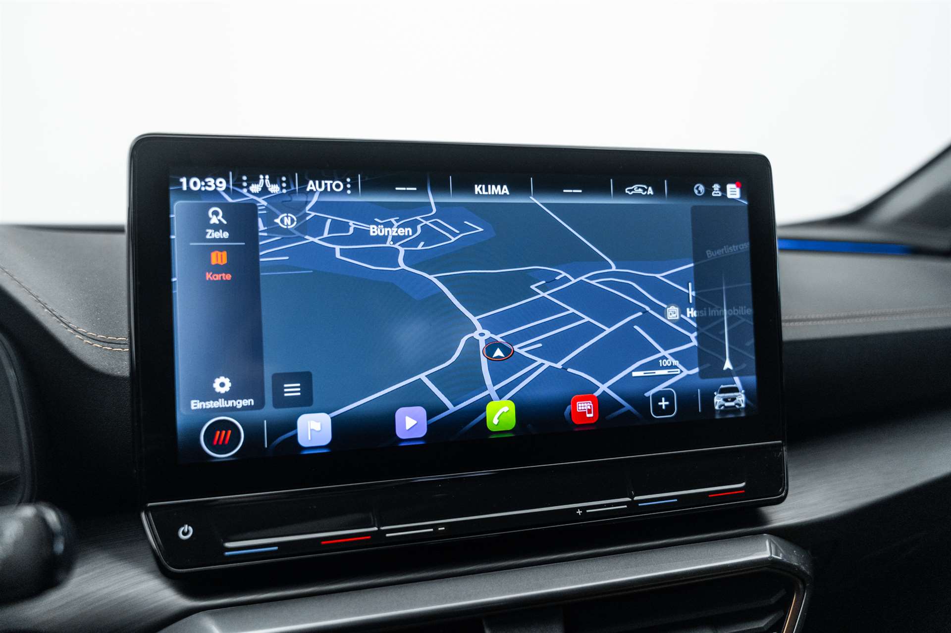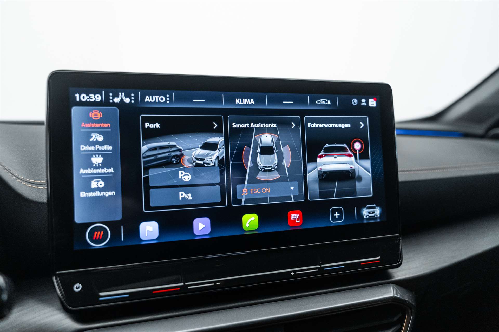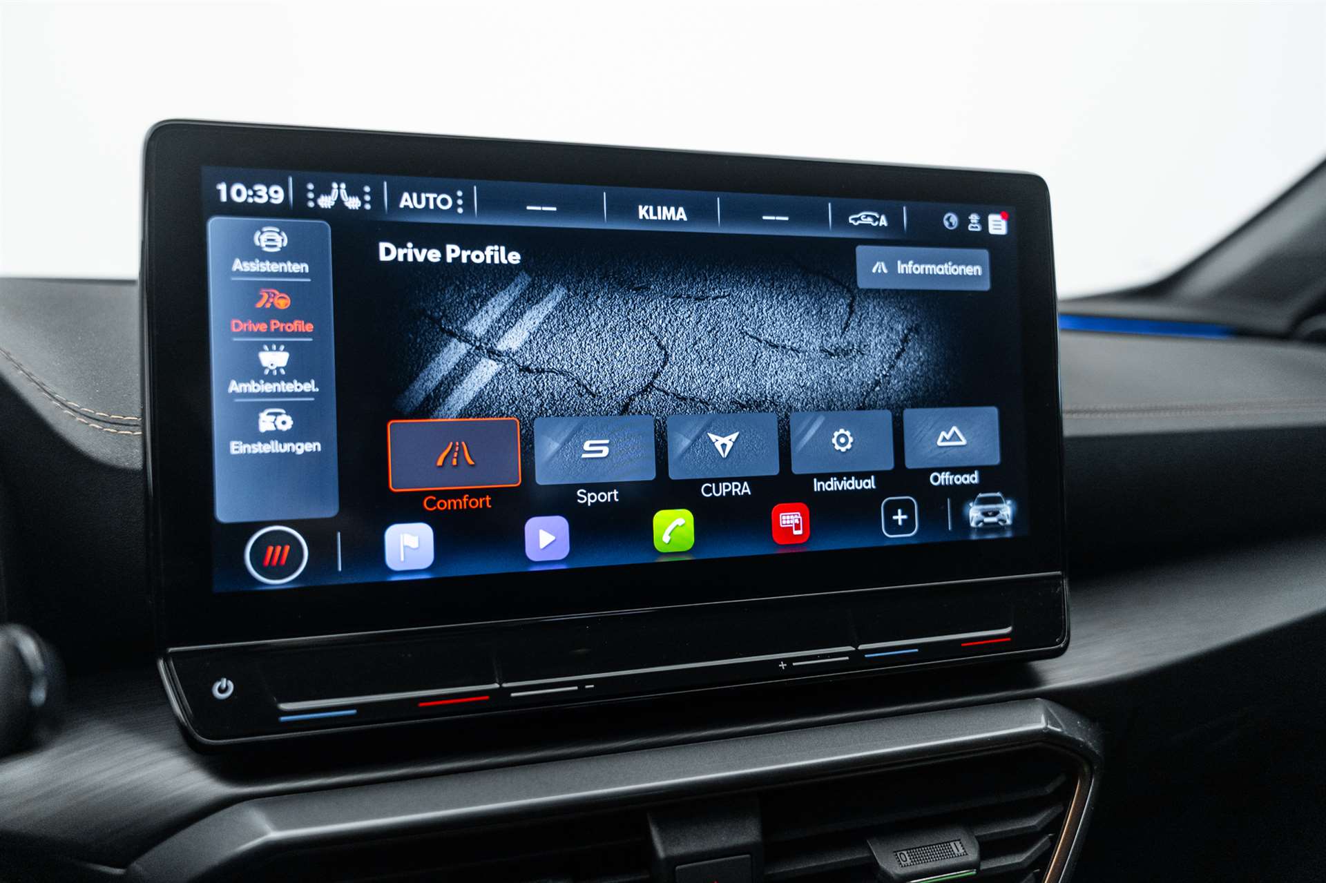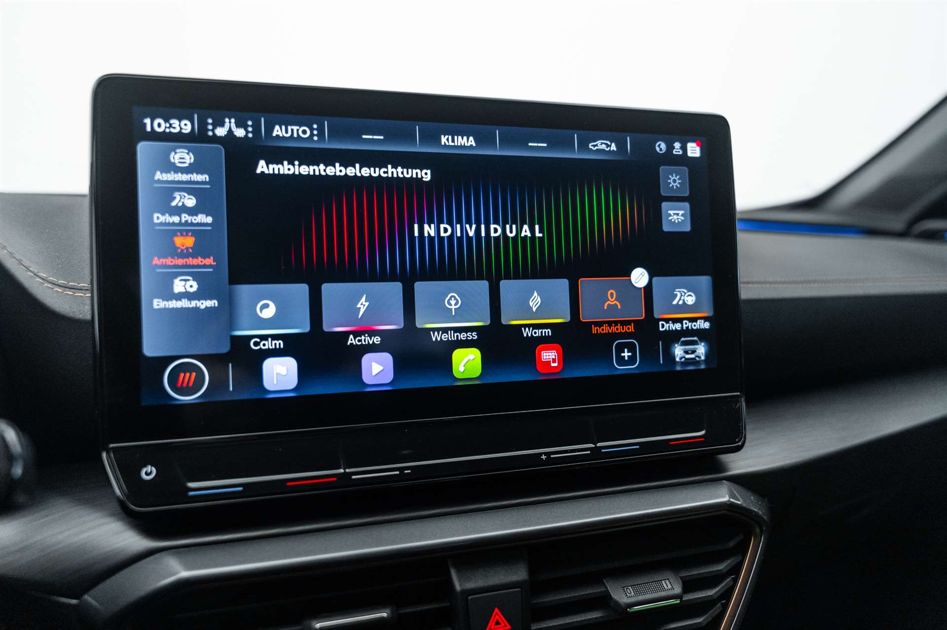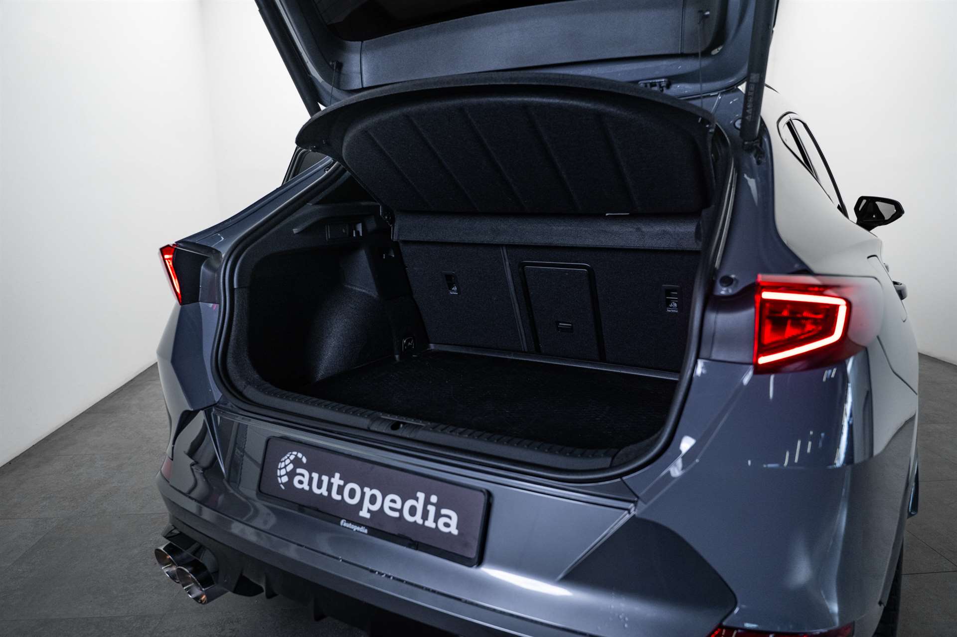 230-Volt Steckdose im Kofferraum und 12-Volt Steckdose in der Mittelkonsole, Abgedunkelte Scheiben ab B-Säule hinten, ABS, EBV elektronische Bremskraft-verteilung, Airbag: Airbag Beifahrer deaktivierbar, Airbag: Airbag Fahrer und Beifahrer, Airbag: Kopfairbags vorne und hinten, Airbag: Seitenairbags für Fahrer und Beifahrer, Allradantrieb permanent, Assist: City Notbremsfunktion, Assist: Einparkhilfe vorne und hinten, Assist: Elektronische Parkbremse mit Auto Hold Funktion, Assist: Exit Assist (Ausparkassistent), Assist: Exit Warning (Ausstiegswarner), Assist: Multifunktionskamera, Assist: Multikollisionsbremse, Assist: Parklenkassistent, Assist: PreCrash Sicherheitssystem, Assist: Regen-/Lichtsensor, Assist: Rückfahrkamera, Assist: Side Assist (Spurwechselassistent), Assist: Tiredness detection (Müdigkeitserkennung), Assist: Travel Assist, Assist: Umfeldbeobachtung Front-Assist, Aussenspiegel elektrisch einstell-, beheiz- und einklappbar, Aussenspiegel mit Beifahrerspiegelabsenkung, Aussenspiegel mit LED-Umfeldbeleuchtung, Automatisch abblendender Innenrückspiegel, Beleuchtete Sonnenblende links mit abdeckbarem Spiegel und Lasche, rechts mit abdeckbarem Spiegel, CUPRA Drive Profile mit "driving experience button" Comfort, Sport, CUPRA, Individual, Snow, Offroad, Dachhimmel schwarz, Dachreling schwarz, Dreipunkt-Automatiksicherheitsgurte auf allen Plätzen, Elektrische Fensterheber vorne und hinten mit Komfortschaltung und Einklemmschutz, ESC mit EBA, DSR, XDS und Reifendruckkontrolle, Fahrwerk: Adaptive Fahrwerksregelung DCC, Fahrwerk: Progressivlenkung, Full Digital Cockpit, Fussmatten vorne und hinten, Garantie: Cupra 12 Jahre Gewährleistung gegen Karosserie-Durchrostung, Garantie: Cupra 3 Jahre Lack-Gewährleistung, Garantie: Cupra Garantie 2 Jahre ohne Kilometerbegrenzung, Getriebe: 7-Gang DSG, Heckdiffusor, Heckscheiben-Wisch-/Waschanlage mit Intervall, Heckscheibenheizung, Heckspoiler, Kindersitzverankerung ISOFIX (äussere Plätze hinten), Klima: 3-Zonen Climatronic mit Fondraumbedienung, Lackierung: Uni-Lackierung, LED-Innenraumbeleuchtung mit Ambientebeleuchtung Wraparound, Lenkrad: Supersportlenkrad mit Start-/ Drive Profile-Knopfsystem und Schaltwippen, beheizbar, Licht: Coming-home-Funktion, Licht: Durchgehende Full LED-Heckleuchten, Licht: LED-Heckleuchten mit dynamischem Blinklicht, Licht: LED-Nebelscheinwerfer mit Cornering-Funktion, Licht: LED-Scheinwerfer für Abblend- und Fernlicht, Licht: LED-Tagfahrlicht, Licht: Leuchtweitenregulierung dynamisch, Media: 12" Infotainment (MIB3), Media: 2 USB C Anschlüsse hinten und vorne, Media: 7 Lautsprecher, Media: CUPRA Connect Online Infotainment für Navigationssystem, Media: CUPRA Connect Remote & Access für Navigationssystem, Media: CUPRA Navigationssystem, Media: DAB+ (Digital Audio Broadcasting), Media: Kartenmaterial ''Europa'', Media: Mobiltelefon Freisprechanlage Bluetooth, Media: Sprachsteuerung, Mittelarmlehne vorne und hinten, Nebelschlussleuchte, Ottopartikelfilter, Paket: Fahrerassistenzpaket M für Navigationssystem, Paket: Fahrerassistenzpaket XL für Navigationssystem, Paket: Winterpaket, Pyrotechnische Gurtstraffer und Gurtkraftbegrenzer, Räder: Alufelgen 8J x 19", "EXCLUSIVE" 38/3 Machined Black Matt / Silver, Räder: Ersatzrad platzsparend, Räder: Reifendruck-Kontrollanzeige, Schlüsselloses Schliess- und Startsystem (KESSY), Servolenkung mit geschwindigkeitsabhängiger Lenkkraftunterstützung, Sitze: 2 verstellbare Kopfstützen vorne und 3 hinten, Sitze: CUPRA Sport Schalensitze in "Sharp Textil schwarz", Sitze: Easy Backseat Release (Rücksitzentriegelung im Kofferraum), Sitze: Geteilt abklappbare Rücksitzlehne 1/3 - 2/3, Sitze: Sitzheizung für Vordersitze, getrennt regelbar, Sitze: Vordersitze höhenverstellbar mit Lendenwirbelstütze, Sportauspuffanlage mit 4-fach Endrohr, Stopp - Start- und Rekuperationssystem, Türgriffe in Wagenfarbe, Variabler Ladeboden, Vollverzinkte Karosserie, Wegfahrsperre elektronisch, Zentralverriegelung mit Funkfernbedienung, 2 Funkschlüssel