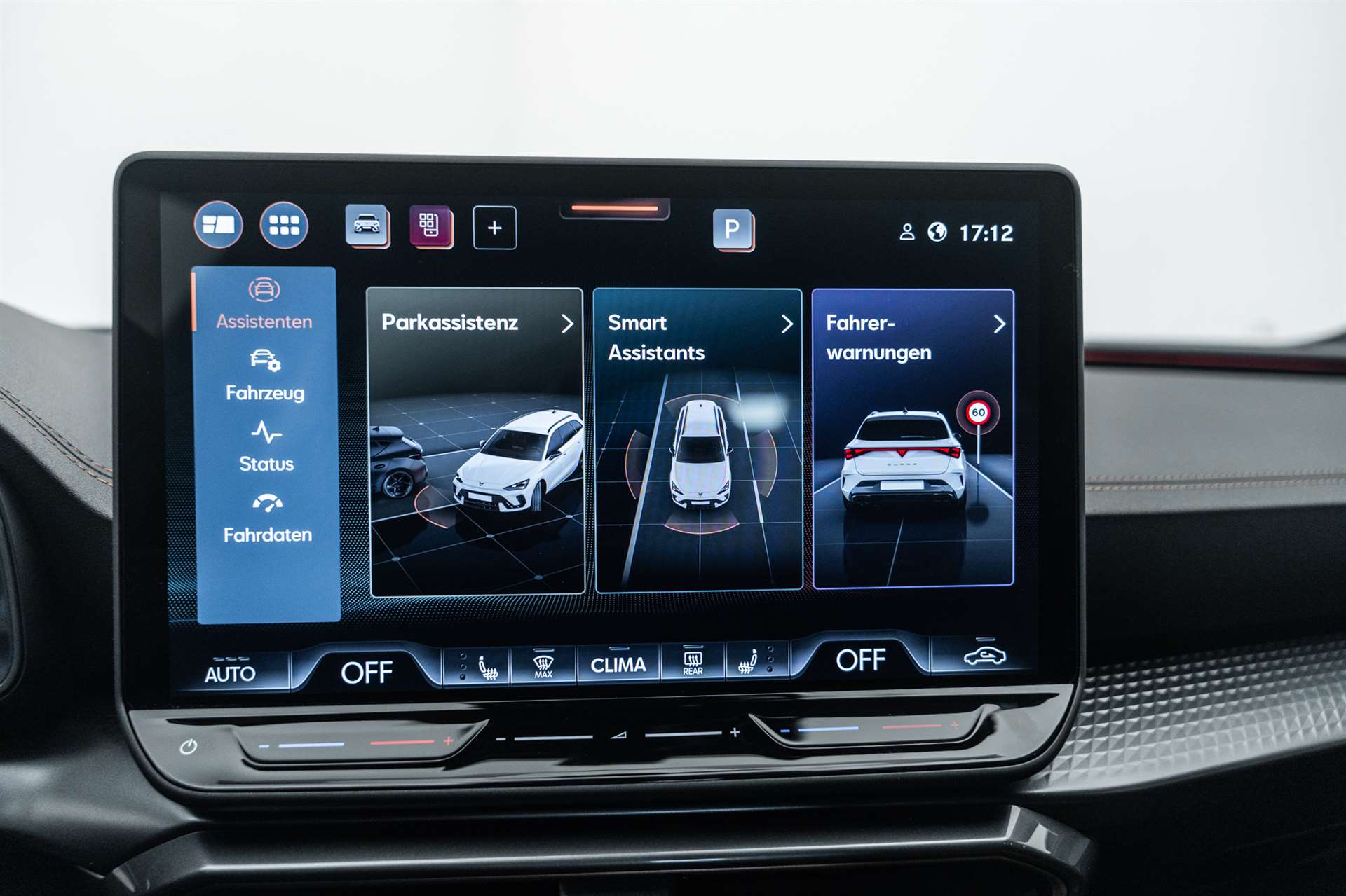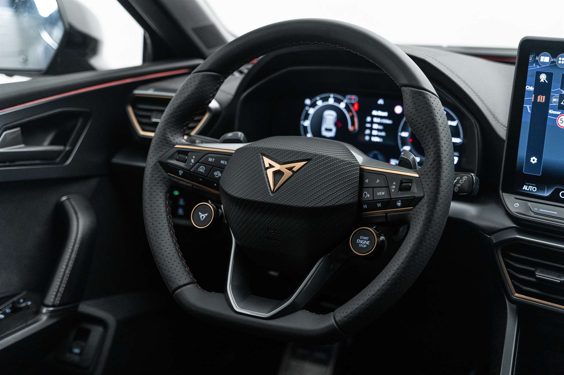 Abgedunkelte Scheiben ab B-Säule hinten, ABS, EBV elektronische Bremskraft-verteilung, Airbag: Airbag Beifahrer deaktivierbar, Airbag: Airbag Fahrer und Beifahrer, Airbag: Seitenairbags vorne mit Kopfairbag und Interaktionsairbag vorne, Alarmanlage mit Innenraumüberwachung, Allradantrieb permanent, Assist: Aufmerksamkeits- und Müdigkeitserkennung (ADA), Assist: Ausweichunterstützung / Abbiegeassistent, Assist: Automatische Distanzregelung ACC, Assist: Einparkhilfe vorne und hinten, Assist: Elektronische Parkbremse mit Auto Hold Funktion, Assist: Lane assist (Spurhalteassistent), Assist: Multifunktionskamera, Assist: Multikollisionsbremse, Assist: Prädiktive Speedlimiter, Assist: Regen-/Lichtsensor, Assist: Rückfahrkamera, Assist: Tempomat, Assist: Traction Control (TCS), Assist: Traffic sign recognition (Verkehrszeichenerkennung), Aussenspiegel elektrisch einstell-, beheiz- und einklappbar mit Memory -Funktion, CUPRA Drive Profile mit "driving experience button" Comfort, Performance, Drift, Individual, Dachhimmel Schwarz, Dekor: Dekorblenden in Copper, Dekor: Dinamica Ambiente, Dreipunkt-Automatiksicherheitsgurte auf allen Plätzen, Elektrische Fensterheber vorne und hinten mit Komfortschaltung und Einklemmschutz, ESC mit EBA, DSR und Reifendruckkontrolle, Fahrwerk: Adaptive Fahrwerksregelung DCC, Full Digital Cockpit, Fussmatten vorne und hinten, Getriebe: 7-Gang DSG, Heckklappe elektrisch öffnend "Virtual Pedal", Heckscheiben-Wisch-/Waschanlage mit Intervall, Innenspiegel automatisch abblendbar, Klima: 3-Zonen Climatronic mit Fondraumbedienung, Lackierung: Uni-Lackierung, LED-Innenraumbeleuchtung mit Ambientebeleuchtung Smart Wraparound "Multicolor", Lenkrad: Supersportlenkrad mit Start-/ Drive Profile-Knopfsystem und Schaltwippen, beheizbar, Licht: Coming Leaving Home Funktion, Licht: Drittes Bremslicht, Licht: Durchgehende Full LED-Heckleuchten, Licht: Dynamische LED-Blinker, Licht: Fernlicht-Assistent, Licht: LED Heckleuchten mit beleuchtetem 3D CUPRA Logo, Licht: LED-Nebelscheinwerfer mit Cornering-Funktion, Licht: LED-Scheinwerfer für Abblend- und Fernlicht, Licht: LED-Tagfahrlicht, Licht: Leuchtweitenregulierung, Licht: Nebelschlussleuchte, Media: 12,9" Infotainment (MIB3), Media: 2 USB C Anschlüsse hinten und vorne, Media: 6 Lautsprecher, Media: CUPRA Connect Remote & Access, Media: CUPRA Connect Safety & Services, Media: CUPRA Connectivity Box, Media: CUPRA FullLink, Media: DAB+ (Digital Audio Broadcasting), Media: Mobiltelefon Freisprechanlage Bluetooth, Media: Sprachsteuerung, Netztrennwand, Paket: DYNAMIC DESIGN, Paket: EDGE, Pyrotechnische Gurtstraffer und Gurtkraftbegrenzer vorne, Räder: Reifenreparatur-Set (Tire Fit), Schlüsselloses Schliess- und Startsystem (KESSY Advance), Servolenkung mit geschwindigkeitsabhängiger Lenkkraftunterstützung, Sicherheitsgurtkontrolle für alle Sitze, Sitze: 2 verstellbare Kopfstützen vorne und 3 hinten, Sitze: CUPRA Sport Schalensitze in Dinamica "Black/Blue", Sitze: Fahrer- und Beifahrersitz mit Lendenwirbelstütze, Sitze: Fahrersitz elektrisch einstellbar mit Memory-Funktion, Sitze: Geteilt abklappbare Rücksitzlehne 1/3 - 2/3, Sitze: Kindersitzverankerung ISOFIX hinten, Sitze: Kopfstützen vorne (integrierte), Sitze: Lendenwirbelstütze Fahrerseite elektrisch einstellbar, Sitze: Lendenwirbelstütze in den Vordersitzlehnen, Sitze: Mittelarmlehne hinten, Sitze: Mittelarmlehne vorne, Sitze: Sitzheizung für Vordersitze, getrennt regelbar, Sonnenblende Fahrer und Beifahrerseite, Stopp - Start- und Rekuperationssystem, Variabler Ladeboden, Vollverzinkte Karosserie, Wärmeschutzverglasung, Wegfahrsperre elektronisch, Zentralverriegelung mit Funkfernbedienung, 2 Funkschlüssel