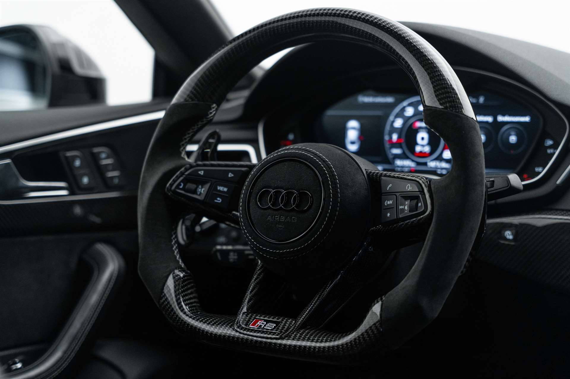 SUPER GELEGENHEIT! Optikpaket schwarz glänzend, erweitert mit Audi Ringen, Assist: Parklenkassistent, Audi connect (3 Jahre), Kopfstützen vorne mit X-Verstellung, Assistenzpaket Stadt + Parken, Audi side assist inkl. pre sense rear, Assist: Einparkhilfe plus, Assist: Rückfahrkamera, Assist: Ausstiegswarnung, Assist: Querverkehrsassistent hinten, Umgebungskameras + Parklenkassistent, Dekoreinlagen Klavierlack, Dekor: Interieurelemente in Leder Feinnappa, RS-Sportauspuffanlage, Optikpaket schwarz, Sportdifferential, Aussenspiegel in Hochglanzschwarz, Sitzbelüftung vorne, Getönte Scheiben Privacy, Vordersitze elektrisch verstellbar, Fahrersitz mit Memoryschaltung, Lendenwirbelstützen elektrisch, Bremssättel rot lackiert, Head-Up Display, Infotainmentpaket, Media: Audi Phone Box, Audi Smartphone Interface, Audi Sound System, MMI Navigationssystem Plus, Audi connect, Media: Bang & Olufsen Soundsystem, Geschwindigkeitsbegrenzer 280 km/h, Fahrwerk: RS-Sportfahrwerk plus mit Dynamic Ride Control (DRC), Dynamiklenkung, Audi virtual cockpit 12,3'', Panorama-Glasdach, Metallic-Lackierung, Dynamik-Paket, Dynamiklenkung, Matrix LED Scheinwerfer, Sportdifferential hinten, Sportfahrwerk plus, Geschwindigkeitsbegrenzer 280 km/h, Media: Audi Phone Box, Assistenzpaket Tour, Assist: Audi active lane assist, Adaptive cruise control, Assist: Kamerabasierte Verkehrszeichenerkennung, Assist: Stauassistent, Turn Assistant (Abbiegeassistent), Assist: Ausweichassistent, Assist: Kamerabasierte Verkehrszeichenerkennung, Audi Smartphone Interface, Garantie: Audi Garantie: 4 Jahre oder 80'000 km (ab 1. Inv.)