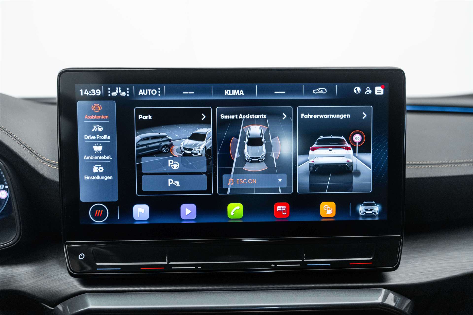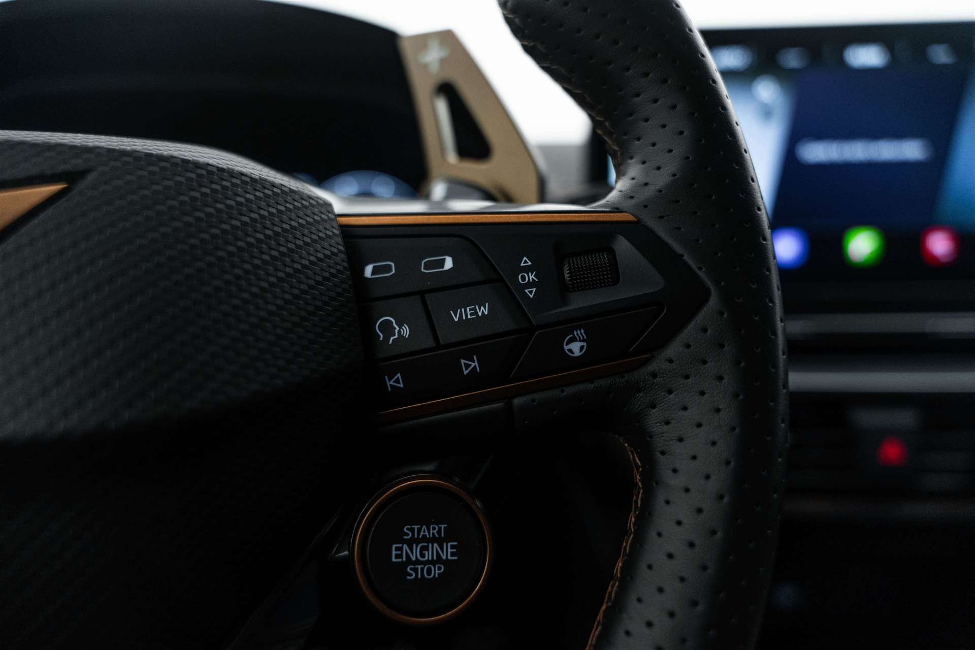230-Volt Steckdose im Kofferraum und 12-Volt Steckdose in der Mittelkonsole, 3-Punkt-Sicherheitsgurte auf allen Plätzen, Abgedunkelte Scheiben ab B-Säule hinten, ABS, EBV elektronische Bremskraft-verteilung, Airbag: Airbag Beifahrer deaktivierbar, Airbag: Airbag Fahrer und Beifahrer, Airbag: Knie-Airbag für Fahrer, Airbag: Kopfairbags vorne und hinten, Airbag: Seitenairbag für Fahrer und Beifahrer, Allradantrieb permanent, Assist: City Notbremsfunktion, Assist: Einparkhilfe vorne und hinten mit Rückfahrkamera, Assist: Elektronische Parkbremse mit Auto Hold Funktion, Assist: Exit Assist (Ausparkassistent), Assist: Exit Warning (Ausstiegswarner), Assist: Front Assist, Assist: Lane assist (Spurhalteassistent), Assist: Multifunktionskamera, Assist: Multikollisionsbremse, Assist: Parklenkassistent, Assist: Prädiktive automatische Distanzregelung ACC, Assist: PreCrash Sicherheitssystem, Assist: Tiredness detection (Müdigkeitserkennung), Assist: Top View Camera (Rundumblick), Assist: Traffic Jam Assist (Stauassistent), Assist: Traffic sign recognition (Verkehrszeichenerkennung), Aussenspiegel elektrisch einstell-, beheiz- und einklappbar, Aussenspiegel mit Beifahrerspiegelabsenkung, Aussenspiegel mit LED-Umfeldbeleuchtung, Automatisch abblendender Innenrückspiegel, Beleuchtete Sonnenblende links mit abdeckbarem Spiegel und Lasche, rechts mit abdeckbarem Spiegel, Bordcomputer, Bremsen mit 6-Kolben-AKEBONO-Bremssätteln, CUPRA Drive Profile mit "driving experience button" Comfort, Sport, CUPRA, Individual, Snow, Offroad, Dachhimmel Schwarz, Dachreling schwarz, Drehzahlmesser, Elektrische Fensterheber vorne und hinten mit Komfortschaltung und Einklemmschutz, ESC mit EBA, DSR, XDS und Reifendruckkontrolle, Fahrwerk: Adaptive Fahrwerksregelung DCC, Fahrwerk: Progressivlenkung, Full Digital Cockpit, Fussmatten vorne und hinten, Garantie: Cupra 12 Jahre Gewährleistung gegen Karosserie-Durchrostung, Garantie: Cupra 3 Jahre Lack-Gewährleistung, Garantie: Cupra Garantie 2 Jahre ohne Kilometerbegrenzung, Getriebe: 7-Gang DSG, Heckscheiben-Wisch-/Waschanlage mit Intervall, Heckscheibenheizung, Katalysator geregelt, Klima: 3-Zonen Climatronic mit Fondraumbedienung, Lackierung: Metallic-Lackierung, Lackierung: Metallic-Lackierung, LED-Innenraumbeleuchtung mit Ambientebeleuchtung Smart Wraparound "Multicolor", Lenkrad: Supersportlenkrad mit Start-/ Drive Profile-Knopfsystem und Schaltwippen, beheizbar, Licht : LED-Scheinwerfer für Abblend- und Fernlicht, Licht- und Regensensor, Licht: Coming Leaving Home Funktion, Licht: Drittes Bremslicht, Licht: Durchgehende Full LED-Heckleuchten, Licht: LED-Heckleuchten mit dynamischem Blinklicht, Licht: LED-Nebelscheinwerfer mit Cornering-Funktion, Licht: LED-Tagfahrlicht, Licht: Leuchtweitenregulierung dynamisch, Licht: Nebelschlussleuchte, Media: 2 USB C Anschlüsse hinten und vorne, Media: 7 Lautsprecher, Media: CUPRA Connect Safety & Services für Navigationssystem, Media: CUPRA Connectivity Box, Media: CUPRA FullLink, Media: CUPRA Navigationssystem 12" Infotainment (MIB3), Media: DAB+ (Digital Audio Broadcasting), Media: Kartenmaterial ''Europa'', Media: Mobiltelefon Freisprechanlage Bluetooth, Media: Sprachsteuerung, Pollenfilter (Staubfilter), Räder: Alufelgen 8,5J X 20", "Exclusive" Machined in Black/Copper, Räder: Reserverad platzsparend, Schlüsselloses Schliess- und Startsystem (KESSY), Seitliche Frontsplitter und Einsätze in Karbon, Servolenkung mit geschwindigkeitsabhängiger Lenkkraftunterstützung, Sitze: 2 verstellbare Kopfstützen vorne und 3 hinten, Sitze: CUPRA Sport Schalensitze in "Sharp Textil schwarz", Sitze: Easy Backseat Release (Rücksitzentriegelung im Kofferraum), Sitze: Geteilt abklappbare Rücksitzlehne 1/3 - 2/3, Sitze: Kindersitzverankerung ISOFIX hinten, Sitze: Mittelarmlehne hinten, Sitze: Mittelarmlehne vorne, Sitze: Sitzheizung für Vordersitze, getrennt regelbar, Sitze: Vordersitze höhenverstellbar mit Lendenwirbelstütze, Sportabgasanlage mit 4-Fach Endrohr und Karbon Heckdiffusor, Stopp - Start- und Rekuperationssystem, Türgriffe in Wagenfarbe, Variabler Ladeboden, Vollverzinkte Karosserie, Wegfahrsperre elektronisch, Zentralverriegelung mit Funkfernbedienung, 2 Funkschlüssel