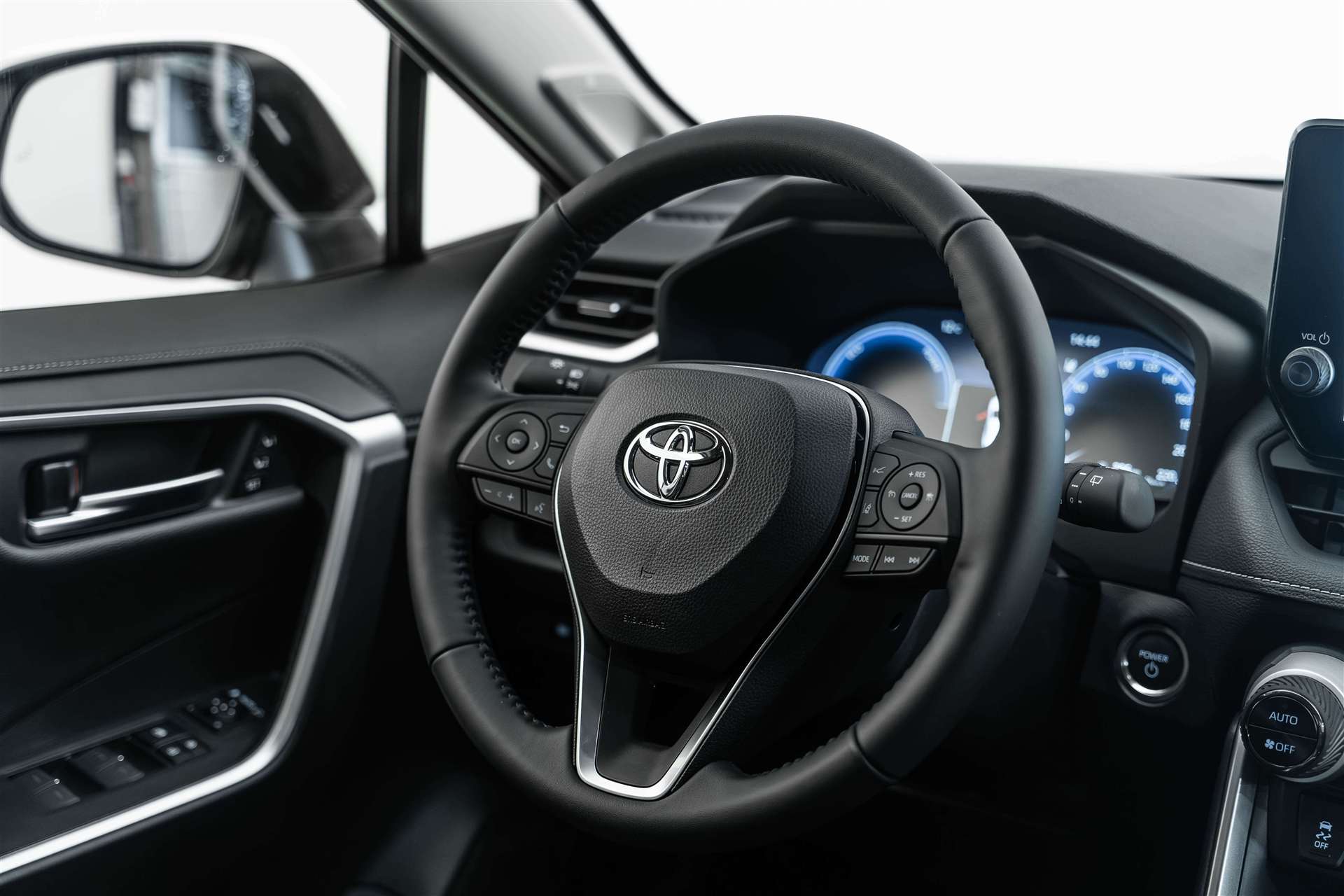 12 V-Anschluss vorne, Airbag: Airbag Beifahrer deaktivierbar, Airbag: Airbag Fahrer und Beifahrer, Airbag: Knie-Airbag für Fahrer, Airbag: Seiten- und Kopfairbags vorne und hinten, Allradantrieb permanent, Anhängerstabilisierung (TSC), Antiblockiersystem (ABS), Assist: 360° - Panoramakamera, Assist: Adaptiver Tempomat ACC, Assist: Berganfahrhilfe (Hill Assist Control - HAC), Assist: Geschwindigkeitsbegrenzer ASL, Assist: Parksensoren vorne und hinten mit automatischer Bremsassistent, Assist: Pre Collision System mit Fussgängerekennung (PCS), Assist: Spurverfolgungsassistent (LTA) mit Spurverlasswarner (LDA) und aktiver Lenkunterstützung, Assist: Totwinkelassistent (BSM) und Querverkehrswarner hinten (RCTA), Assist: Verkehrsschilderkennung (RSA), Aussenspiegel elektrisch einklappbar, verstellbar und beheizt, Bodenteppiche, Dachreling schwarz, Dachspoiler in Wagenfarbe, Dämmerungssensor, Elektrische Feststellbremse, Elektronische Traktionskontrolle, Fensterheber elektrisch mit Auf- und Abwärtsautomatik mit Einklemmschutz, Fensterzierleisten chrom, Frontscheibenheizung, Gepäckraumabdeckung, demontierbar, Gepäckraumbeleuchtung, Getränkehalter, vorn beleuchtet, Getriebe: Stufenloser Automat, Heckklappe, elektrisch betrieben mit Kick-Open-Funktion, Heckscheibe und hintere Seitenscheiben getönt, Heckscheibenheizung, Innenraumbeleuchtung LED, Innenspiegel automatisch abblendbar, ISOFIX Anschlüsse in 2. Sitzreihe (2x), Kabellose Ladestation für mobile Geräte (Qi), Klima: 2-Zonen-Klimaautomatik, Lackierung: Uni-Lackierung, Lenkrad: Lederlenkrad, Lenkrad: Lenkrad beheizbar, Lenkrad: Lenkrad mit Bedienelementen, Lenkrad: Lenkrad mit Schaltwippen, Lenksäule manuell höhenverstellbar und längsverstellbar, Licht: Fernlicht-Automatik (AHB), Licht: Follow me home Lichtfunktion, Licht: Heckkombinationsleuchten, LED, Licht: LED Nebelscheinwerfer, Licht: LED-Tagfahrlicht, Licht: Projektorscheinwerfer LED, Media: 12,3" Multiinformationsdisplay (Tachodisplay), Media: 2 USB-Anschlüsse hinten (USB-C), Media: 2 USB-Anschlüsse vorne (USB-C), Media: 6 Lautsprecher, Media: JBL Soundsystem, Media: MyT App Connected Services (10 Jahre gratis), Media: MyT App Smart Connect Pack (4 Jahre gratis), Media: MyT App Smart Connect Pack (4 Jahre gratis) Ver-/entriegelung, Warnblinker betätigen, Media: Radio, DAB+ und Bluetooth, Media: Smartphone Integration: Apple CarPlay ohne Kabel / Android Auto mit Kabel, Media: Toyota Smart Connect+ (T2) Multimedia mit 10.5" HD Bildschirm, integriertes Navigationssyste, Media: USB-Anschlüsse vorne (1x USB-A), Mittelarmlehne vorn und hinten mit 2 Getränkehaltern, Mittelarmlehne vorne mit Staufach, Paket: Multimedia Pack, Paket: Winter-Pack, Polster: Ledersitze, Räder: 19" Leichtmetallfelgen, 235/55 R19-Reifen, Räder: Reifendruck-Warnsystem (TPWS), Räder: Reifenreparatur-Set, Regensensor, Schaltknauf Leder, Scheibenwaschdüsen vorne beheizt, Scheinwerferreinigungsanlage, Servolenkung elektrisch und geschwindigkeitsabhängig, Sitze: 2. Sitzreihe, im Verhältnis 60:40 manuell umklappbar, Sitze: Ablagetasche Rückenlehne Beifahrersitz, Sitze: Beifahrersitz 8-fach elektrisch verstellbar, Sitze: Beifahrersitz höhenverstellbar, Sitze: Fahrersitz 8-fach elektrisch verstellbar, Sitze: Fahrersitz höhenverstellbar, Sitze: Fahrersitz mit Lendenwirbelstütze, Sitze: Fahrersitz mit Memoryfunktion, Sitze: Sitzheizung Fahrer und Beifahrer, Smart Entry-/Start-System, Sonnenblende Fahrer und Beifahrerseite mit beleuchtetem Spiegel, Stabilitätskontrolle (VSC), Türgriffe aussen in Wagenfarbe, Windschutzscheibe beheizt, Zentralverriegelung mit Fernbedienung