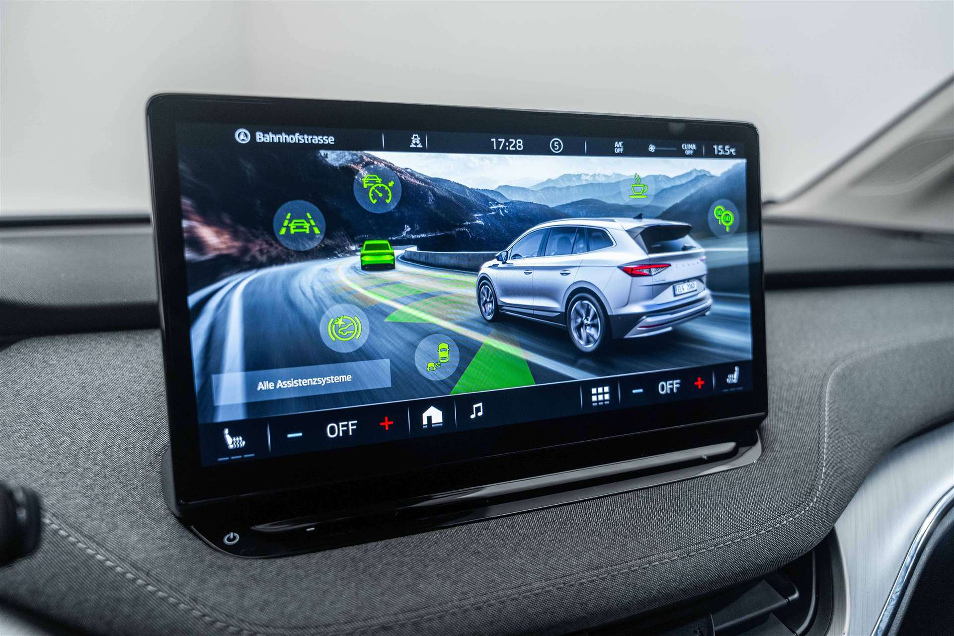 12 Volt-Steckdose im Laderaum, 12 Volt-Steckdose im Laderaum, 13"-Infotainmentdisplay, 13"-Infotainmentdisplay, 3-Punkt-Sicherheitsgurte auf allen Plätzen, Ablagekästen im Kofferraum (mit Steckdeckel links + rechts, ohne Kargoelementen), Ablagekasten in Mittelkonsole hinten, Ablagekasten in Mittelkonsole hinten, ABS, EBD elektronische Bremskraftverteilung, AC Batterieladung bis 11 kW, Airbag: Fahrer- und Beifahrerairbag, Airbag: Fahrer- und Beifahrerairbag, Airbag: Seitenairbag vorne mit Kopfairbag und Mittelairbag vorne, Akustisch optimierte Windschutzscheibe aus wärmedämmendem Glas, Akustisch optimierte Windschutzscheibe aus wärmedämmendem Glas, Ambientebeleuchtung für Türverkleidung vorn (mehrfarbig), Ambientebeleuchtung für Türverkleidung vorn (mehrfarbig) sowie Fussraumbeleuchtung und beleuchtete Türgriffmulden, Assist: Crew Protect Assist Plus, Assist: Front Assistant inkl. City-Notbremsfunktion, Assist: Front Assistant inkl. City-Notbremsfunktion, Assist: Geschwindigkeitsregelanlage mit Distanzkontrolle "Adaptive Cruise Control" (ACC) und-, Assist: Müdigkeitserkennung "Driver Alert", Assist: Notrufsystem Emergency-Call, Assist: Notrufsystem Emergency-Call, Assist: Parklenkassistent "Park Assist" mit Einparkhilfe vorne und hinten, Assist: Parklenkassistent "Park Assist" mit Einparkhilfe vorne und hinten, Assist: Regensensor mit Lichtassistent (Coming Home, Leaving Home, Tunnel Light), Assist: Regensensor mit Lichtassistent (Coming Home, Leaving Home, Tunnel Light), Assist: Rückfahrkamera, Assist: Spurhalteassistent "Lane Assist", Assist: Spurwechselassistent "Side Assist", Aussenspiegel automatisch abblendbar, elektrisch anklapp-/einstellbar, Boardwerkzeug und Reifenreparaturset, DC Batterieladung bis 120 kW, DC Batterieladung bis 120 kW, Drittes Bremslicht LED, Elektrische Kindersicherung, Elektrische Kindersicherung, Elektronisches Stabilitäts-Programm (ESP), Fahrprofilauswahl- Driving Mode Selection, Fahrprofilauswahl- Driving Mode Selection, Fussmatten vorne und hinten, Fussmatten vorne und hinten, Getriebe: 1-Gang Getriebe, Heckklappenöffnung manuell, Heckscheibenheizung, Heckscheibenwischer «AERO», Heckscheibenwischer «AERO», Innenspiegel automatisch abblendbar, Klima: Klimaanlage "Climatronic", 3-Zonen-Temperaturregelung, vollautomatisch, getrennt regelbar, Kofferraumabdeckung, herausnehmbar, Kofferraumabdeckung, herausnehmbar, Lackierung: Uni-Lackierung, Ladekabel für AC-Normalladen bis zu 11 kW, Typ2-Stecker, Ladekabel für AC-Normalladen bis zu 11 kW, Typ2-Stecker (geeignet für öffentliche AC-Ladeinfrastruktur oder Wallbox), Lenkrad: 2-Speichen-Leder-Multifunktionslenkrad mit Schaltwippen, beheizbar, Licht: Basis LED Frontscheinwerfer inkl. LED Tagfahrlicht, Licht: LED Rückleuchten, Licht: Leuchtweitenregulierung manuell, Media: 2 USB-C Anschlüsse im Fond, Media: 2 USB-C Anschlüsse im Fond, Media: 2 USB-C Anschlüsse vorne, Media: 8 Lautsprecher, Media: 8 Lautsprecher, Media: DAB+ (Digital Audio Broadcasting), Media: DAB+ (Digital Audio Broadcasting), Media: Navigation mit SKODA Connect Infotainment Online 3 Jahre + "Care Connect", Media: SmartLink (CarPlay und Android Auto), Media: Sprachsteuerung, Media: Sprachsteuerung, Mittelkonsole mit Armlehne, Mittelkonsole mit Armlehne, Nebelschlussleuchte, Phonebox mit kabelloser Ladefunktion, Polster: Loft- Sitzbezüge Stoff/Kunstleder, Dekor Alu brushed, Räder: Leichtmetallräder 8 J x 20" "VEGA", Silber Metallic, lackiert, Räder: Reifendruckkontrollsystem, Räder: Reifendruckkontrollsystem, Regenschirm in der Vordertür, Regenschirm in der Vordertür, Scheibenwaschdüsen beheizt, Schliess- und Startsystem KESSY (Keyless Access), Servolenkung, geschwindigkeitsabhängig (Servotronic), Servolenkung, geschwindigkeitsabhängig (Servotronic), Sitze: 3. Kopfstütze hinten, Sitze: Isofix an Rücksitzen und Beifahrersitz und 2 x TopTether, Sitze: Isofix an Rücksitzen und Beifahrersitz und 2 x TopTether, Sitze: Komfortsitze vorne, Sitze: Komfortsitze vorne, Sitze: Rücksitzbank, 60:40 geteilt umklappbare Rückenlehne, mit Mittelarmlehne, Sitze: Rücksitzbank, 60:40 geteilt umklappbare Rückenlehne, mit Mittelarmlehne, Sitze: Vordersitze heizbar, Sitze: Vordersitze heizbar, Sitze: Vordersitze höhenverstellbar (manuell), Sitze: Vordersitze mit Lendenwirbelstütze manuell anpassbar, SKODA Garantie: Garantie 12 Jahre gegen Durchrostungs (ab 1. Inv.), SKODA Garantie: Garantie 2 Jahre ohne Kilometerbegrenzung (ab 1. Inv.), SKODA Garantie: Garantie 3 Jahre gegen Lackschäden (ab 1. Inv.), SKODA Garantie: Garantie 8 Jahre oder 160000 km Garantie auf HV-Batterie, Sonnenschutzrollos für Türscheiben hinten, Sonnenschutzrollos für Türscheiben hinten, Steckdose 220/230V, Steckdose 220/230V, Vorbereitung für Anhängevorrichtung, Vorbereitung für Anhängevorrichtung, Wärmepumpe zur Reichweitenoptimierung, Wegfahrsperre elektronisch, Zusätzliche Fahrgeräuschunterdrückung im Innenraum