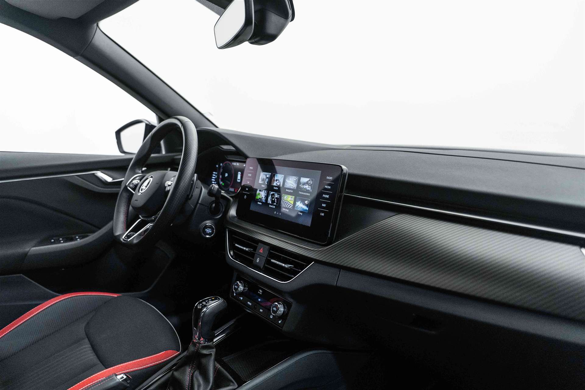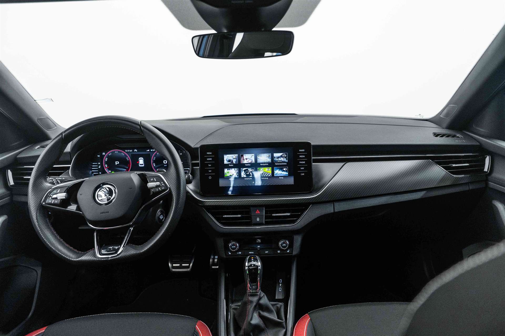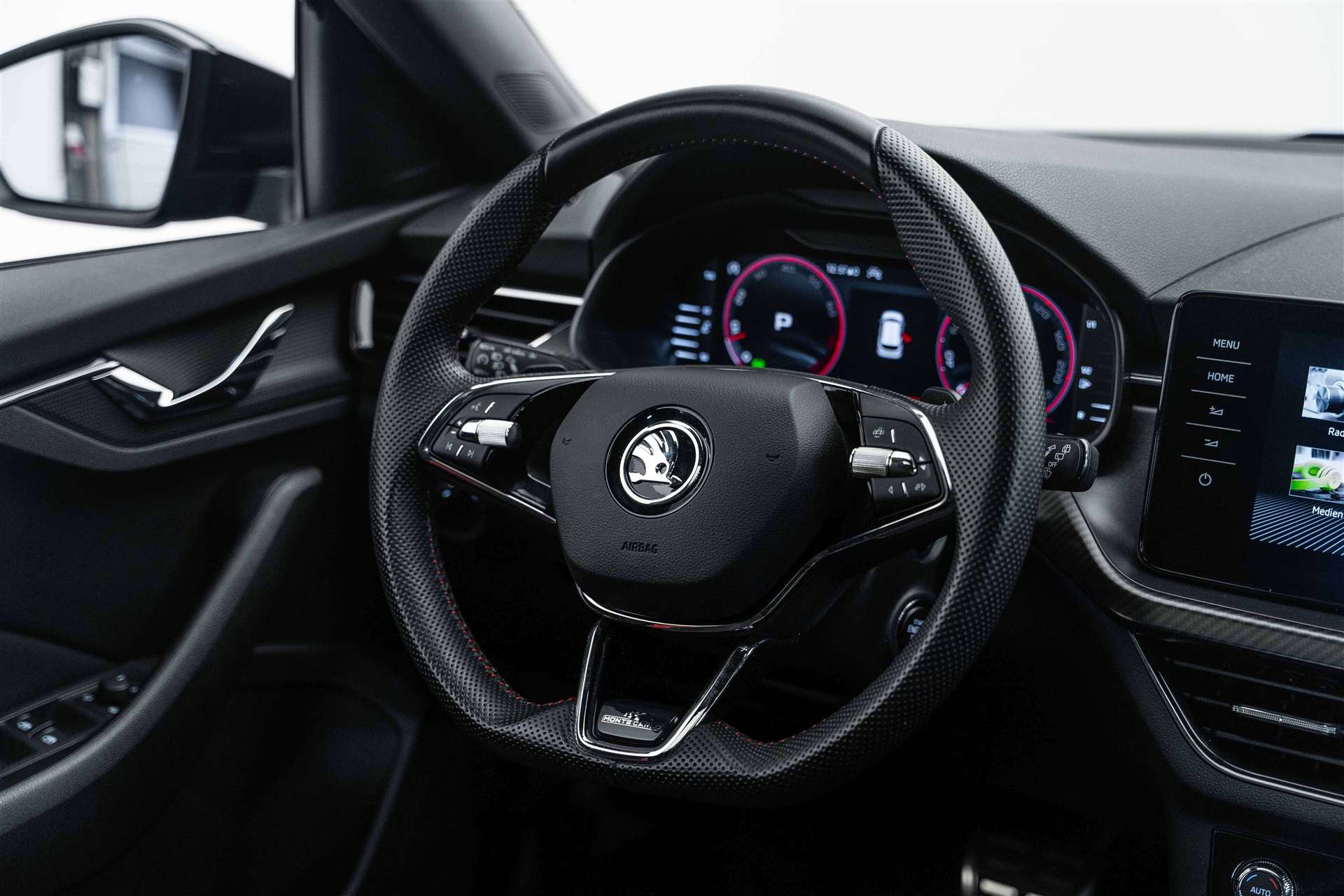 LED Ambiente Beleuchtung rot, Assist: Müdigkeitserkennung, Netztrennwand, Räder: Stahlnotrad inkl. Wagenheber, Radschraubenschlüssel (ohne Pannenset), SKODA Care: MobilitätPLUS (Ersatzmobilität für die Dauer der Wartung) für 4 Jahre / 100000 km, Ladeboden variabel, Paket: Paket Simply Clever, Ablagefach unter dem Fahrersitz, Ablagefach unter dem Beifahrersitz, Türkantenschutz, 12 Volt-Steckdose im Laderaum, Vorbereitung für Anhängevorrichtung, SKODA Garantie: Garantie +1 Jahre oder 100'000 km (ab 1. Inv.), Elektrische Betätigung der Heckklappe, Sitze: Fahrersitz elektrisch verstellbar, Lackierung: Uni-Lackierung Steel-Grau, Lackierung: Uni-Lackierung Candy weiss, Lackierung: Uni-Lackierung Corrida rot, SKODA Garantie: Garantie +2 Jahre / 100'000 km (ab 1. Inv.), Airbag: Seitenairbags hinten, Sitze: Vorder- und Rücksitze heizbar, Media: Soundsystem SKODA (10 Lautsprecher, Digital Equalizer, Subwoofer) inkl. Stahlnotrad, Räder: Leichtmetallräder VEGA 7,0Jx18 schwarz, Lackierung: Perleffekt-Lackierung, Paket: Paket mySKODA Pack für Monte Carlo Premium, Media: Wireless Smartlink+ und Hotspot, Fahrwerk: Adaptive Fahrwerksregelung und Fahrprofilauswahl (Bodenfreiheit -10 mm), Media: Bluetoth Freisprechanlage, Phonebox und Wireless Charging, Schliess- und Startsystem KESSY, 2 USB Anschlüsse in der hinteren Mittelkonsole, Anhängerkupplung, mechanisch anklappbar mit elektrischer Entriegelung, SKODA Garantie: Garantie +3 Jahre / 150'000 km (ab 1. Inv.), Assist: Parklenkassistent Parkassist(lenkt das Fahrzeug automatisch in Längs-und Querparklücken ein), Lackierung: Metallic-Lackierung Velvet Rot, SKODA Care: Service (Wartung & Verschleiss) für 4 Jahre / 100000 km, SKODA Care: ServicePLUS (Wartung, Verschleiss & Flüssigkeiten) für 4 Jahre / 100000 km, SKODA Care: Räder (Radwechsel und Reifenersatz) für 4 Jahre / 100000 km, SKODA Care: RäderPLUS (Radwechsel, Reifenersatz und Radeinlagerung) für 4 Jahre / 100000 km, Paket: Paket mySkoda Pack für Monte Carlo Basic, Beheizbare Vordersitze und beheizbare Scheibenwaschdüsen vorne, Lenkrad: 3-Speichen-Supersport-Leder-Multifunktionslenkrad mit Schaltwippen (DSG), beheizbar, Assist: Paket Travel Assist mit Verkehrszeichenerkennung,Geschwindigkeitsregelanlage mit Distanzkon., Assist: Parksensoren vorne und hinten, Media: Infotainment Online 3 Jahre, Assist: Rückfahrkamera, Aussenspiegel rechts und links beheizbar und elektrisch anklappbar, automatisch abblendend, Rain Light Assist inkl.Fernlichtassistent, Media: Dynamisches Navigationssystem "AMUNDSEN" mit 9.2" Farb-Touchscreen, Assist: Spurwechselassistent Side Assist und Ausparkassistent Rear Traffic Alert, SKODA Care: Reifen (Reifenwechsel und Reifenersatz) für 4 Jahre / 100000 km, SKODA Care: ReifenPLUS (Reifenwechsel, Reifenersatz und Reifeneinlagerung) für 4 Jahre / 100000 km