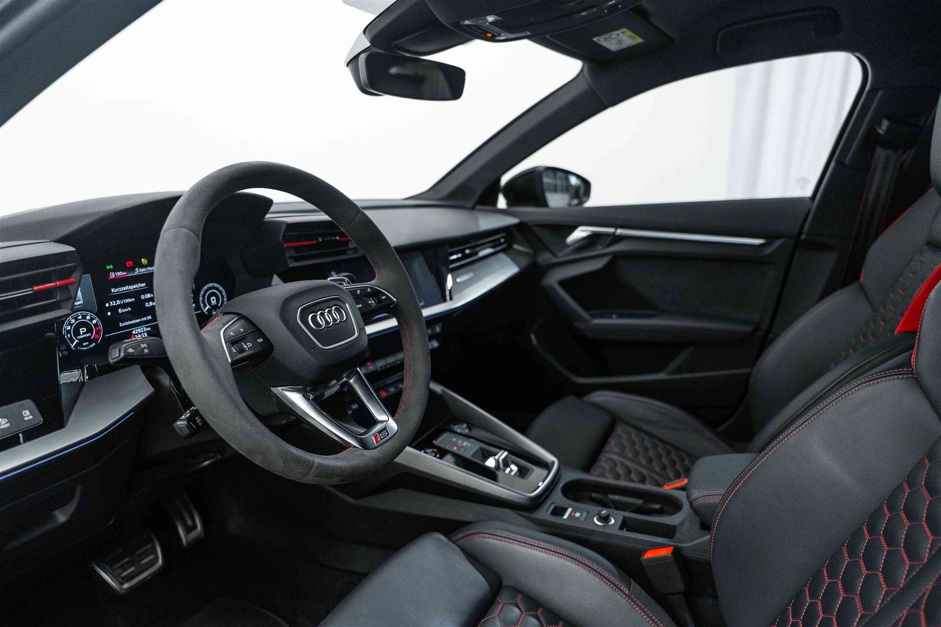 SUPER GELEGENHEIT! Sitze: Vordersitze elektrisch verstellbar, Paket: RS-Designpaket plus rot, Dekor: Mittelsteg der Luftausströmer in rot, Fussmatten RS mit Nähten in rot, Sicherheitsgurte in schwarz mit rotem Rand, Polster: Leder Feinnappa mit Wabensteppung in schwarz, Nähte in rot, Polster: Sitzschultern in Microfaser Dinamica rot, Lenkrad: Lenkradkranz in Alcantara, Nähte & 12-Uhr Markierung in rot, Assist: Adaptiver Fahrassistent mit Notfallassistent, Räder: Räder, 5-Y-Speichen, schwarz mit Grafikdruck - Grösse 9,0 J x 19 / 8,0 J x 19 mit Reifen 265/30 R19 und 245/35 R19, Privacy-Verglasung (Scheiben abgedunkelt), RS-Sportabgasanlage, Aussenspiegel elektrisch einstell-, beheiz- und anklappbar, Head-Up Display, RS-Exterieurumfänge in schwarz glänzend, Komfortschlüssel mit sensorgesteuerter Gepäckraumentriegelung, Räder: Diebstahlsicherung für Räder, Assist: Kamerabasierte Verkehrszeichenerkennung, Paket: Assistenzpaket mit MMI Navigation plus, Sitze: Vordersitze heizbar, Assist: Halteassistent, Lackierung: Metallic-Lackierung, Bordwerkzeug und Wagenheber, Polster: Sitzbezüge in Leder Feinnappa mit RS-Prägung und Wabensteppung, Assist: Adaptiver Geschwindigkeitsassistent, Klima: 3-Zonen-Klimatisierungsautomatik, Media: MMI Navigationssystem Plus mit MMI touch, Sitze: 4-Wege-Lendenwirbelstütze für die Vordersitze, Fahrwerk: RS-Bremsanlage mit Bremssätteln rot, Media: Bang & Olufsen Premium Soundsystem mit 3D Klang, Assist: Audi pre sense basic, Media: Audi Smartphone Interface, Sitze: Kindersitzbefestigung ISOFIX vorn, Top Tether und i-Size für die äusseren Fondsitze, Licht: Abgedunkelte Matrix LED-Scheinwerfer mit dynamischem Blinklicht, Innenspiegel automatisch abblendend, rahmenlos, Media: USB-Anschlüsse mit Ladefunktion im Fond