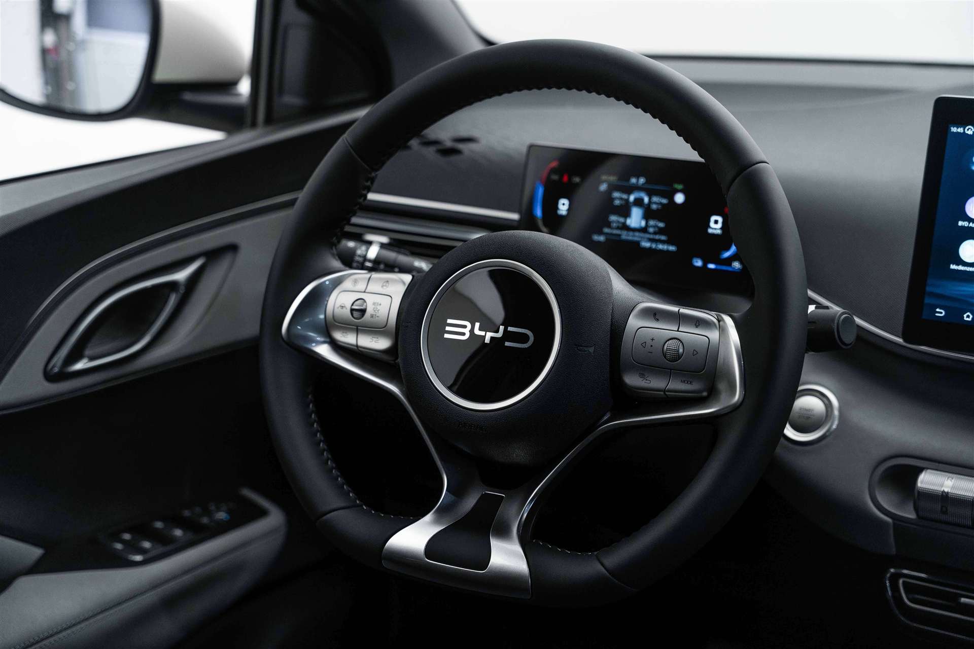 11kW On-Board Charger (OBC), 12-V-Stromanschluss, 2 x Smart Key, Airbag: Fahrerairbag und Beifahrerairbag, Airbag: Seitenairbags vorn und hinten, Antiblockiersystem (ABS), Assist: 360° view camera, Assist: Adaptive Geschwindigkeitsregelung (ACC) & Intelligente Geschwindigkeitsregelung (ICC), Assist: Auto Hold, Assist: Automatische Notbremsung (AEB), Assist: Comfort Stop (CST), Assist: Elektrische Parkbremse (EPB), Assist: Fahrerüberwachungssystem (DMS), Assist: Intelligente Bremskraftverstärker (IPB), Assist: Intelligente Geschwindigkeitsbegrenzungskontrolle (ISLC), Assist: Notfall-Spurhalteassistent (ELKA), Assist: Parksensoren hinten, Assist: Spurverlassensassistent (LDA), Assist: Traktionskontrolle (TCS), Assist: Verkehrszeichenerkennung (TSR), Assist: Vorwärtskollisionswarnung (FCW), Aussenspiegel elektrisch verstellbar, elektrisch anklappbar, beheizbar, BYD digital key, Elektronische Bremskraftverteilung (EBD), ESP (Elektronisches Stabilitätsprogramm), Fahrerseitenfenster, mit Ein-Klick-Funktion und Einklemmschutz, Fahrmodus: Eco, Normal, Sport, Snow, Frontscheibe, Scheibenwischer mit Regensensor, Getriebe: Direktantrieb, kein Getriebe, Heckscheiben und hintere Windschutzscheibe, Privacy glass, ISOFIX und i-Size, Beifahrer- und äussere Rücksitze, Keyless entry & keyless start, Kindersicherung manuell, Klima: Klimaanlage, Lackierung: Metallic-Lackierung, LED-Leseleuchten vorn, Lenkrad: Multifunktionslenkrad in Vegan-Leder, Licht: Follow-me-Home, Licht: Intelligenter Fernlichtassistent (IHBC), Licht: LED-Rückleuchten, Licht: LED-Scheinwerfer, automatisches Ein-/Ausschalten, Licht: LED-Tagfahrlicht, Licht: Nebelschlussleuchten, Media: 10,1" elektrisch drehbarer Touchscreen, Media: 7" Digital-Instrumententafel, Media: Android Auto & Apple CarPlay, Media: Audiosystem, 4 Lautsprecher, Media: DAB+ & FM, Media: Integrierte 4G-Konnektivität, Media: Intelligente Sprachsteuerung "Hallo, BYD", Media: Navigationsystem, Media: Smartphone wireless charging, 15 W, Media: USB-Anschlüsse hinten: 1 x 18W Typ A, 1 x 60W Typ C, Mittelarmlehne vorn, 2 Getränkehalter, Notruf, Polster: Vegan-Leder Sitze, Räder: 16" Leichtmetallfelgen, Reifendruckkontrolle (TPMS), Servolenkung, Sicherheitsgurte mit Vorspannung und Kraftbegrenzer, Sitze: 4 Sitze, Sitze: Beifahrersitz beheiztbar, Sitze: Beifahrersitz, elektrisch verstellbar, 4-fach, Sitze: Fahrersitz beheiztbar, Sitze: Fahrersitz, elektrisch verstellbar, 6-fach, Sitze: Lordosenstütze für Fahrer, Sitze: Rücksitze 50:50 geteilt umklappbar, Sonnenblenden vorne mit beleuchtetem Spiegel, Türöffnungswarnung (DOW), Wärmepumpe, Zentralverriegelung