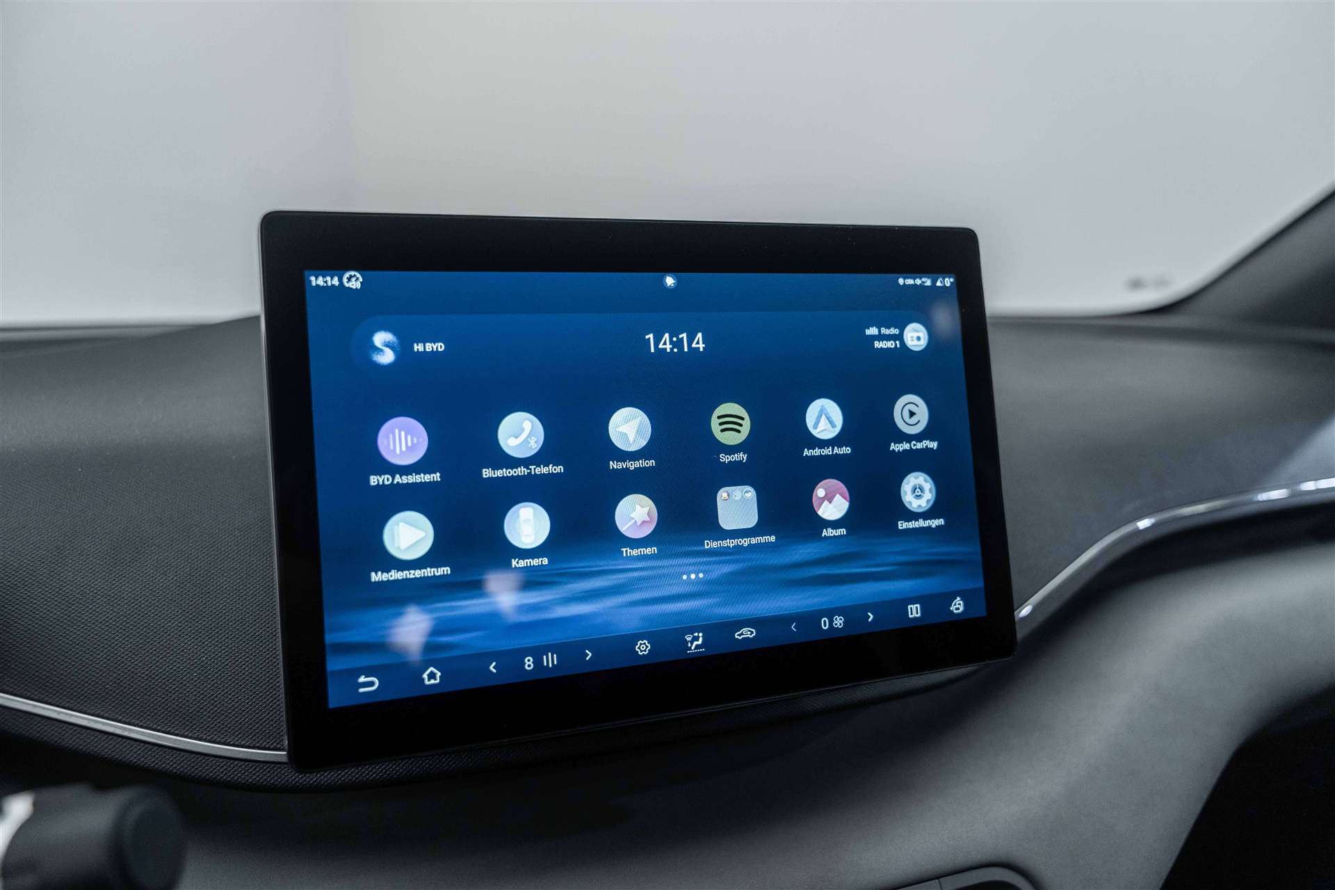 11kW On-Board Charger (OBC), 12-V-Stromanschluss, 2 x Smart Key, Airbag: Fahrerairbag und Beifahrerairbag, Airbag: Seitenairbags vorn und hinten, Antiblockiersystem (ABS), Assist: 360° view camera, Assist: Adaptive Geschwindigkeitsregelung (ACC) & Intelligente Geschwindigkeitsregelung (ICC), Assist: Auto Hold, Assist: Automatische Notbremsung (AEB), Assist: Comfort Stop (CST), Assist: Elektrische Parkbremse (EPB), Assist: Fahrerüberwachungssystem (DMS), Assist: Intelligente Bremskraftverstärker (IPB), Assist: Intelligente Geschwindigkeitsbegrenzungskontrolle (ISLC), Assist: Notfall-Spurhalteassistent (ELKA), Assist: Parksensoren hinten, Assist: Spurverlassensassistent (LDA), Assist: Traktionskontrolle (TCS), Assist: Verkehrszeichenerkennung (TSR), Assist: Vorwärtskollisionswarnung (FCW), Aussenspiegel elektrisch verstellbar, elektrisch anklappbar, beheizbar, BYD digital key, Elektronische Bremskraftverteilung (EBD), ESP (Elektronisches Stabilitätsprogramm), Fahrerseitenfenster, mit Ein-Klick-Funktion und Einklemmschutz, Fahrmodus: Eco, Normal, Sport, Snow, Frontscheibe, Scheibenwischer mit Regensensor, Getriebe: Direktantrieb, kein Getriebe, Heckscheiben und hintere Windschutzscheibe, Privacy glass, ISOFIX und i-Size, Beifahrer- und äussere Rücksitze, Keyless entry & keyless start, Kindersicherung manuell, Klima: Klimaanlage, Lackierung: Metallic-Lackierung, LED-Leseleuchten vorn, Lenkrad: Multifunktionslenkrad in Vegan-Leder, Licht: Follow-me-Home, Licht: Intelligenter Fernlichtassistent (IHBC), Licht: LED-Rückleuchten, Licht: LED-Scheinwerfer, automatisches Ein-/Ausschalten, Licht: LED-Tagfahrlicht, Licht: Nebelschlussleuchten, Media: 10,1" elektrisch drehbarer Touchscreen, Media: 7" Digital-Instrumententafel, Media: Android Auto & Apple CarPlay, Media: Audiosystem, 4 Lautsprecher, Media: DAB+ & FM, Media: Integrierte 4G-Konnektivität, Media: Intelligente Sprachsteuerung "Hallo, BYD", Media: Navigationsystem, Media: Smartphone wireless charging, 15 W, Media: USB-Anschlüsse hinten: 1 x 18W Typ A, 1 x 60W Typ C, Mittelarmlehne vorn, 2 Getränkehalter, Notruf, Polster: Vegan-Leder Sitze, Räder: 16" Leichtmetallfelgen, Reifendruckkontrolle (TPMS), Servolenkung, Sicherheitsgurte mit Vorspannung und Kraftbegrenzer, Sitze: 4 Sitze, Sitze: Beifahrersitz beheiztbar, Sitze: Beifahrersitz, elektrisch verstellbar, 4-fach, Sitze: Fahrersitz beheiztbar, Sitze: Fahrersitz, elektrisch verstellbar, 6-fach, Sitze: Lordosenstütze für Fahrer, Sitze: Rücksitze 50:50 geteilt umklappbar, Sonnenblenden vorne mit beleuchtetem Spiegel, Türöffnungswarnung (DOW), Wärmepumpe, Zentralverriegelung
