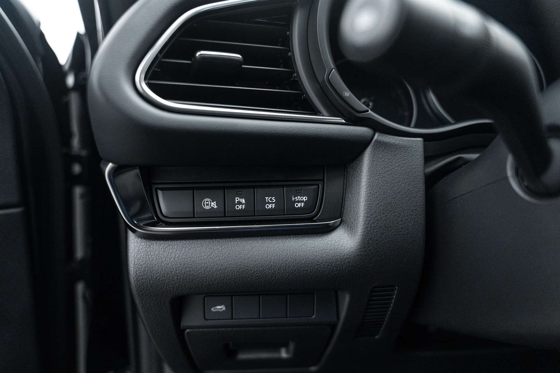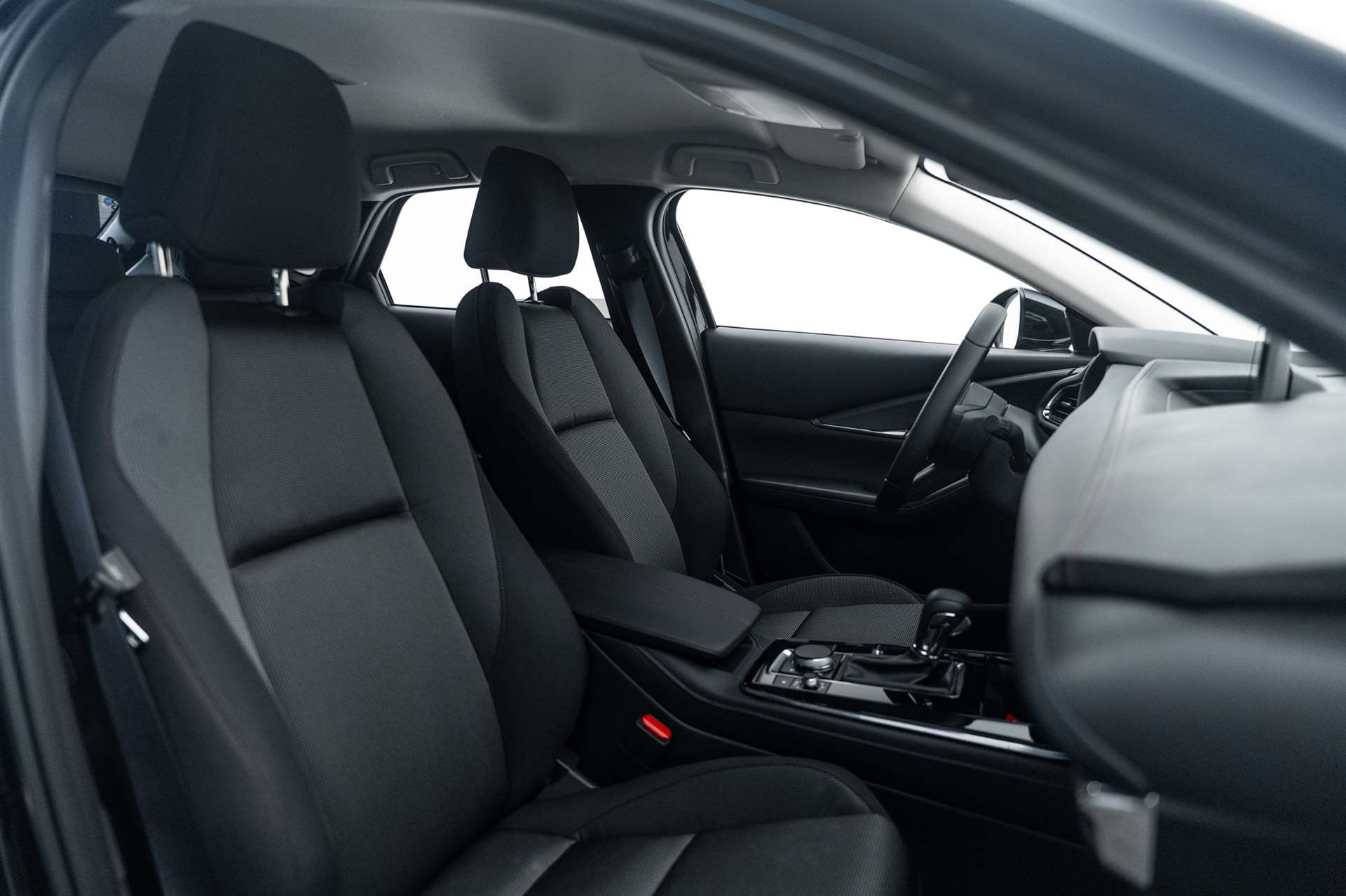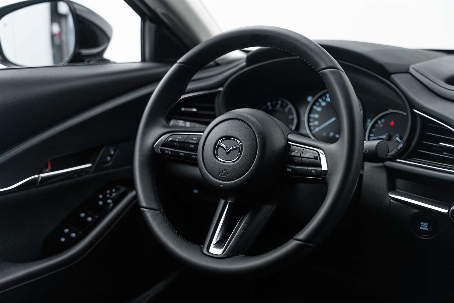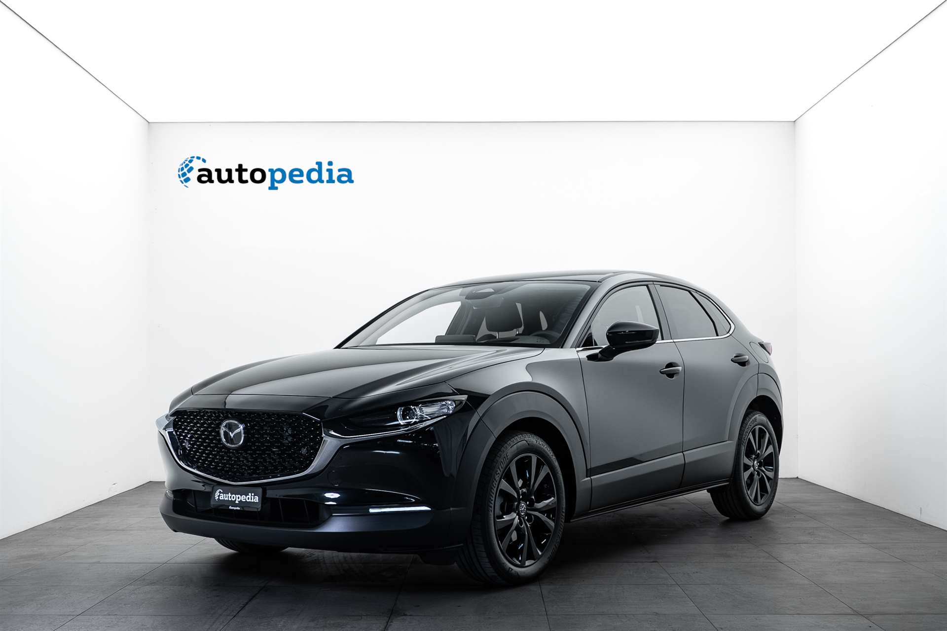 Ablagetasche (Rückseite Beifahrersitz), ABS, Airbag: Airbag Fahrer und Beifahrer, Airbag: Fahrer-Knie-Airbag, Airbag: Seitenairbags vorne, Airbag: Vorhang vorn-hinten, Alarmanlage, Assist: Adaptive Geschwindigkeitsautomatik MRCC (Mazda Radar Cruise Control) mit Stop & Go-Funktion, Assist: Aufmerksamkeitswarner DAA (Driver Attention Alert), Assist: City-Notbremsassistent SCBS mit Fussgänger- und Fahrraderkennung, Assist: Dynamische Stabilitätskontrolle (DSC) und Traktionskontrolle (TCS), Assist: Einparkhilfe mit Parksensoren hinten, Assist: Einparkhilfe mit Parksensoren vorne, Assist: Elektronische Parkbremse mit Auto-Hold-Funktion und Berganfahrhilfe, Assist: Intelligente Geschwindigkeitsautomatik und Geschwindigkeitsbegrenzer mit Verkehrszeichen, Assist: Pre-Crash Safety mit aktivem Bremseingriff SBS (Smart Brake Support), Assist: Rückfahr-Querverkehrswarner (RCTA, Rear Cross Traffic Alert), Assist: Rückfahrkamera, Assist: Spurhalteassistent LAS (Lane-keep Assist System) mit aktiver Lenkunterstützung, Assist: Spurwechselassistent (BSM, Blind Spot Monitoring) mit Totwinkelwarner, Assist: Verkehrszeichenerkennung (TSR, Traffic Sign Recognition), Aussenspiegel beheizbar und automatisch einklappbar, Aussenspiegel in Brilliant Black, Blenden im Seitenfensterbereich in Brilliant Black, Bordcomputer, Dachheckspoiler in Brilliant Black, Dekor: Interieur Schwarz mit roten Ziernähten, Dunkel getönte Scheiben hinten (Privacy Glass), eCall, Elektrische Fensterheber vorn und hinten mit Automatikfunktion, Elektrische Heckklappe, Fahrwerk: G-Vectoring Control Plus, die Fahrdynamikregelung von Mazda, Garantie: 6 Jahre oder 150'000 km, Getriebe: 6-Gang-Automat, Head-up-Display mit Projektion auf die Windschutzscheibe, i-stop, das intelligente Stopp-Start-System von Mazda, Innenspiegel automatisch abblendbar, Isofix-Kindersitzverankerungen (2x), Keyless Entry mit Smart Key, Klima: 2-Zonen-Klimaautomatik mit Ventilation hinten, Kosmetikspiegel auf Beifahrerseite und Fahrerseite, beide beleuchtet, Kühlergrill in Brilliant Black, Lackierung: Uni-Lackierung, LED-Innenbeleuchtung, Lederlenkrad und -schaltknauf, Lenkrad: Lenkrad längs- und höhenverstellbar, Lenkrad: Multifunktionslenkrad, Licht: Fernlichtautomatik (HBC, High-Beam Control), Licht: LED-Rückleuchten, Licht: Lichtautomatik, Licht: Scheinwerfer mit Coming-/Leaving-Home-Funktion, Licht: Voll-LED-Scheinwerfer, Mazda M Hybrid, Mild-Hybridsystem (M-HEV) mit Bremsenergie-Rückgewinnung, Media: 8 Lautsprecher, Media: Apple CarPlay wireless und Android Auto wireless, Media: Audiosystem mit DAB+-Radio, 2x USB- C- und 12-V-Anschluss, Media: Bluetooth für Smartphones und Audiogeräte, Media: Instrumentenanzeige mit 7'-TFT-Multidisplay, Media: Mazda Connect mit 10,25'-TFT-Farbdisplay, Media: Mazda Connected Services, Media: Multi Commander HMI auf der Mittelkonsole, Media: MyMazda App, Media: Navigationssystem, Media: Wireless-Ladestation (für Smartphones mit Qi-Standard), Mittelarmlehne vorne mit Ablagefach, Motor-Startknopf, Polster: Stoffsitze in Schwarz mit roten Ziernähten, Räder: Leichtmetallfelgen 18" Farbe Black Metallic 215/55 R18, Räder: Reifendruckkontrollsystem, Räder: Reifenreparatur-Set (Tire Fit), Scheibenwischer mit integrierter Waschdüse, Scheibenwischer mit Regensensor, Servolenkung, Sitze: Beifahrersitz höhenverstellbar, Sitze: Fahrersitz in Höhe und Sitzkissen in Neigung verstellbar, Sitze: Rücksitzlehnen getrennt abklappbar 60:40, Sitze: Vordersitze heizbar, Zentralverriegelung mit Fernbedienung