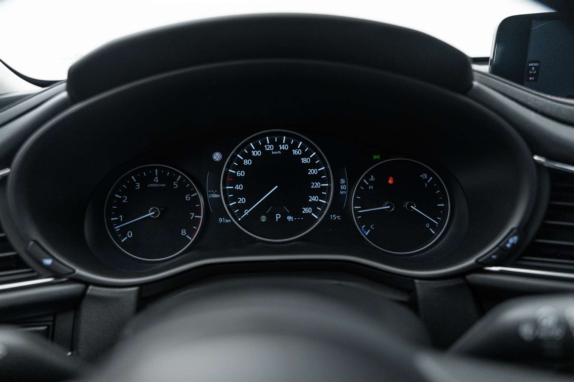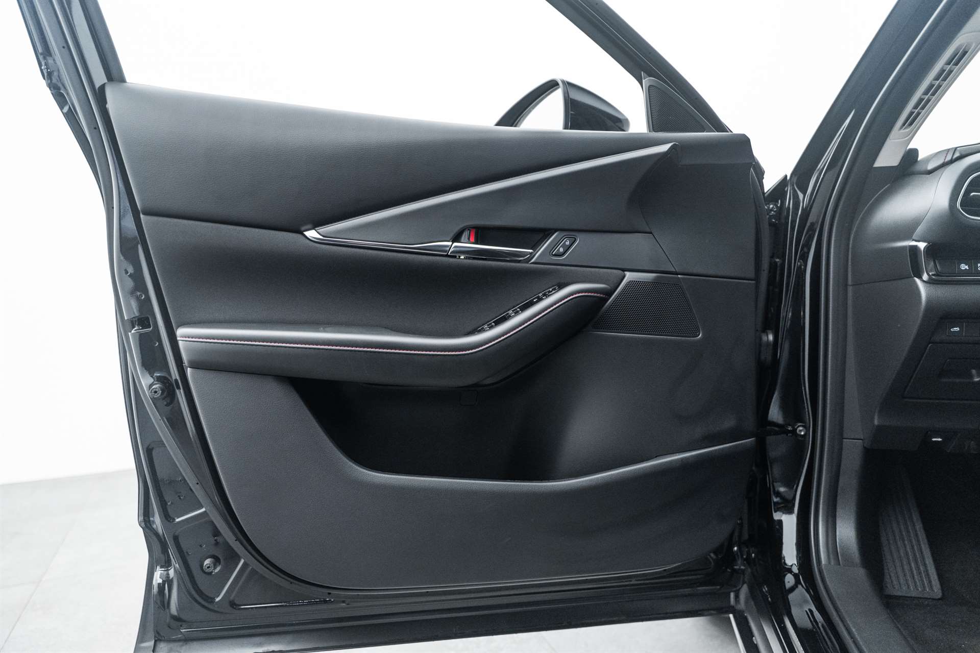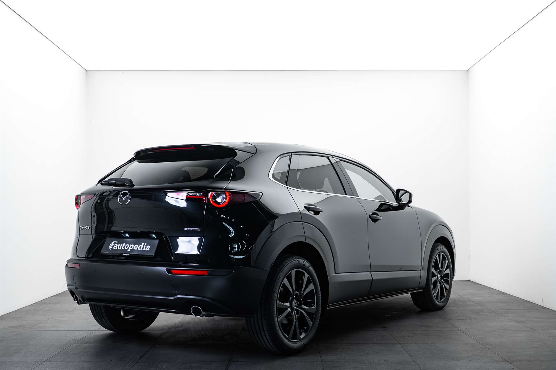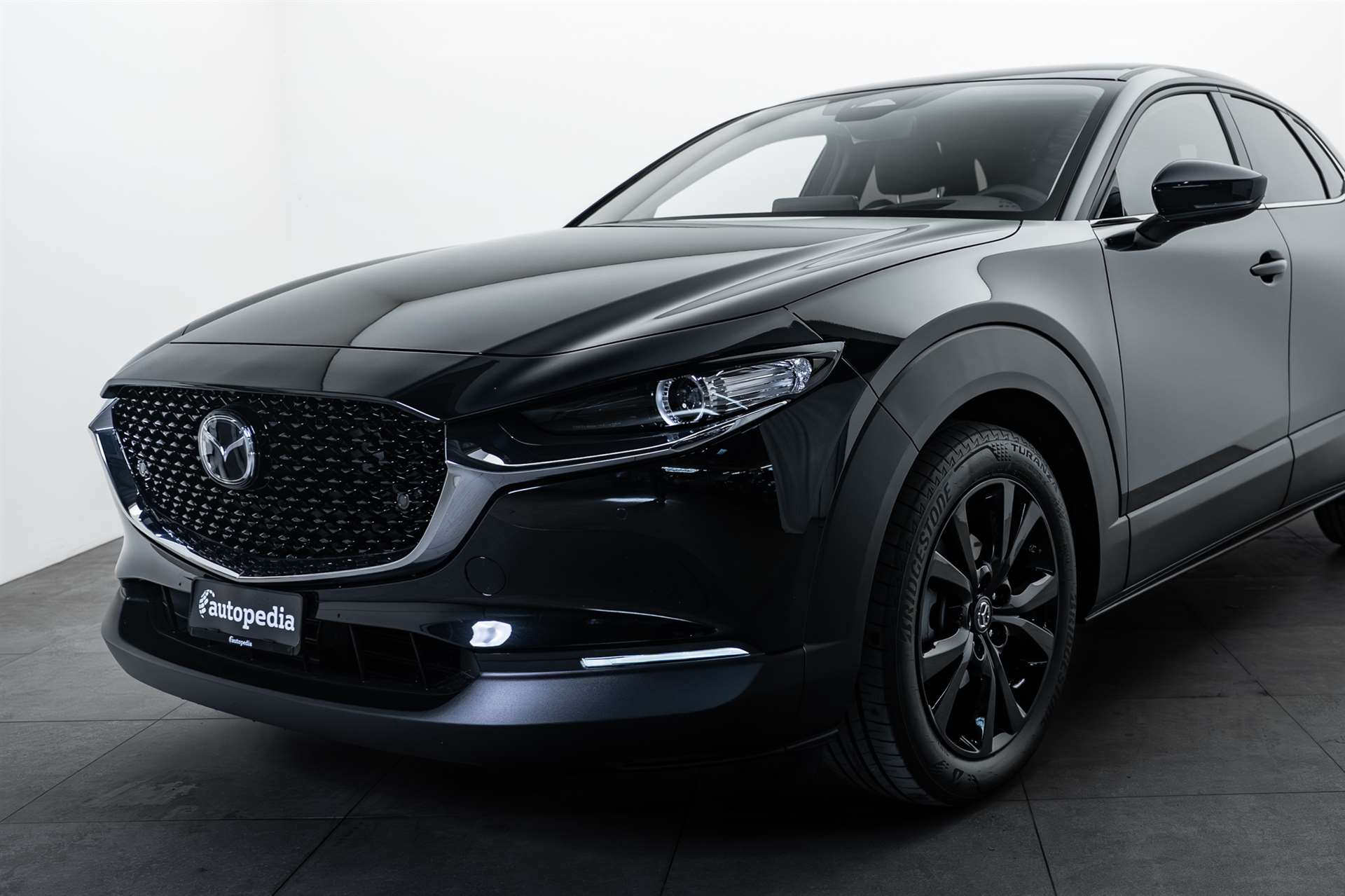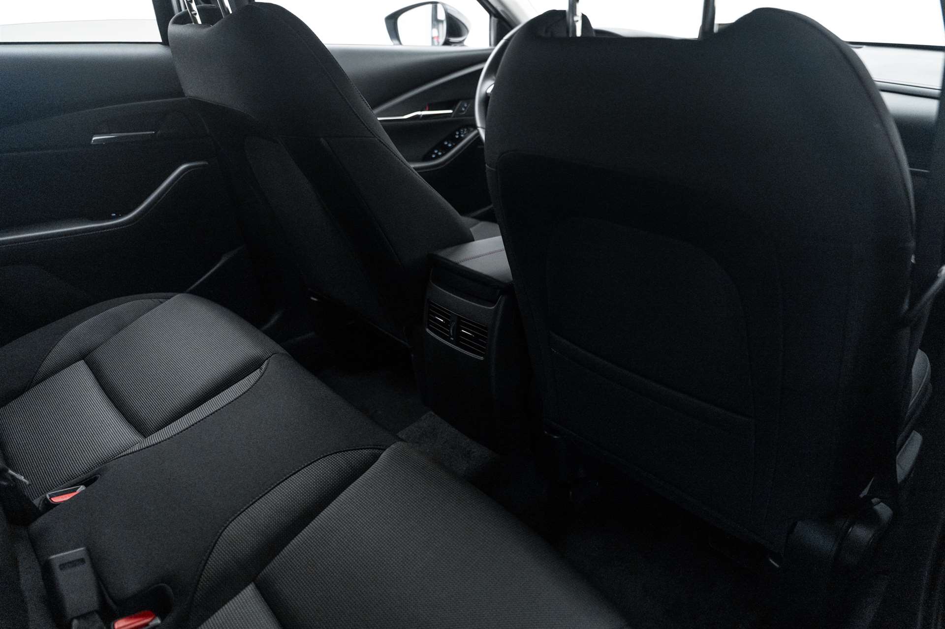 Ablagetasche (Rückseite Beifahrersitz), ABS, Airbag: Airbag Fahrer und Beifahrer, Airbag: Fahrer-Knie-Airbag, Airbag: Seitenairbags vorne, Airbag: Vorhang vorn-hinten, Alarmanlage, Assist: Adaptive Geschwindigkeitsautomatik MRCC (Mazda Radar Cruise Control) mit Stop & Go-Funktion, Assist: Aufmerksamkeitswarner DAA (Driver Attention Alert), Assist: City-Notbremsassistent SCBS mit Fussgänger- und Fahrraderkennung, Assist: Dynamische Stabilitätskontrolle (DSC) und Traktionskontrolle (TCS), Assist: Einparkhilfe mit Parksensoren hinten, Assist: Einparkhilfe mit Parksensoren vorne, Assist: Elektronische Parkbremse mit Auto-Hold-Funktion und Berganfahrhilfe, Assist: Intelligente Geschwindigkeitsautomatik und Geschwindigkeitsbegrenzer mit Verkehrszeichen, Assist: Pre-Crash Safety mit aktivem Bremseingriff SBS (Smart Brake Support), Assist: Rückfahr-Querverkehrswarner (RCTA, Rear Cross Traffic Alert), Assist: Rückfahrkamera, Assist: Spurhalteassistent LAS (Lane-keep Assist System) mit aktiver Lenkunterstützung, Assist: Spurwechselassistent (BSM, Blind Spot Monitoring) mit Totwinkelwarner, Assist: Verkehrszeichenerkennung (TSR, Traffic Sign Recognition), Aussenspiegel beheizbar und automatisch einklappbar, Aussenspiegel in Brilliant Black, Blenden im Seitenfensterbereich in Brilliant Black, Bordcomputer, Dachheckspoiler in Brilliant Black, Dekor: Interieur Schwarz mit roten Ziernähten, Dunkel getönte Scheiben hinten (Privacy Glass), eCall, Elektrische Fensterheber vorn und hinten mit Automatikfunktion, Elektrische Heckklappe, Fahrwerk: G-Vectoring Control Plus, die Fahrdynamikregelung von Mazda, Garantie: 6 Jahre oder 150'000 km, Getriebe: 6-Gang-Automat, Head-up-Display mit Projektion auf die Windschutzscheibe, i-stop, das intelligente Stopp-Start-System von Mazda, Innenspiegel automatisch abblendbar, Isofix-Kindersitzverankerungen (2x), Keyless Entry mit Smart Key, Klima: 2-Zonen-Klimaautomatik mit Ventilation hinten, Kosmetikspiegel auf Beifahrerseite und Fahrerseite, beide beleuchtet, Kühlergrill in Brilliant Black, Lackierung: Uni-Lackierung, LED-Innenbeleuchtung, Lederlenkrad und -schaltknauf, Lenkrad: Lenkrad längs- und höhenverstellbar, Lenkrad: Multifunktionslenkrad, Licht: Fernlichtautomatik (HBC, High-Beam Control), Licht: LED-Rückleuchten, Licht: Lichtautomatik, Licht: Scheinwerfer mit Coming-/Leaving-Home-Funktion, Licht: Voll-LED-Scheinwerfer, Mazda M Hybrid, Mild-Hybridsystem (M-HEV) mit Bremsenergie-Rückgewinnung, Media: 8 Lautsprecher, Media: Apple CarPlay wireless und Android Auto wireless, Media: Audiosystem mit DAB+-Radio, 2x USB- C- und 12-V-Anschluss, Media: Bluetooth für Smartphones und Audiogeräte, Media: Instrumentenanzeige mit 7'-TFT-Multidisplay, Media: Mazda Connect mit 10,25'-TFT-Farbdisplay, Media: Mazda Connected Services, Media: Multi Commander HMI auf der Mittelkonsole, Media: MyMazda App, Media: Navigationssystem, Media: Wireless-Ladestation (für Smartphones mit Qi-Standard), Mittelarmlehne vorne mit Ablagefach, Motor-Startknopf, Polster: Stoffsitze in Schwarz mit roten Ziernähten, Räder: Leichtmetallfelgen 18" Farbe Black Metallic 215/55 R18, Räder: Reifendruckkontrollsystem, Räder: Reifenreparatur-Set (Tire Fit), Scheibenwischer mit integrierter Waschdüse, Scheibenwischer mit Regensensor, Servolenkung, Sitze: Beifahrersitz höhenverstellbar, Sitze: Fahrersitz in Höhe und Sitzkissen in Neigung verstellbar, Sitze: Rücksitzlehnen getrennt abklappbar 60:40, Sitze: Vordersitze heizbar, Zentralverriegelung mit Fernbedienung