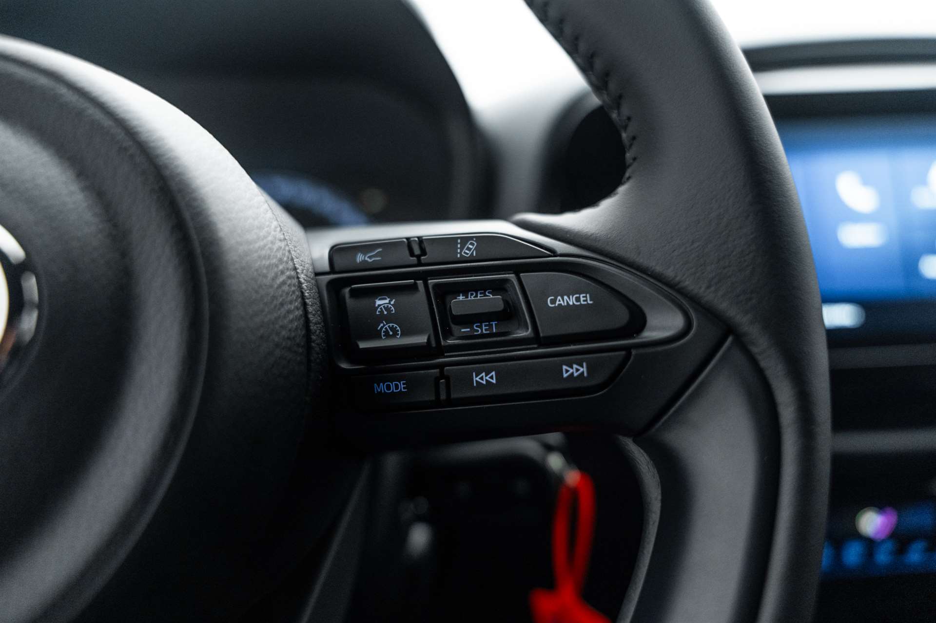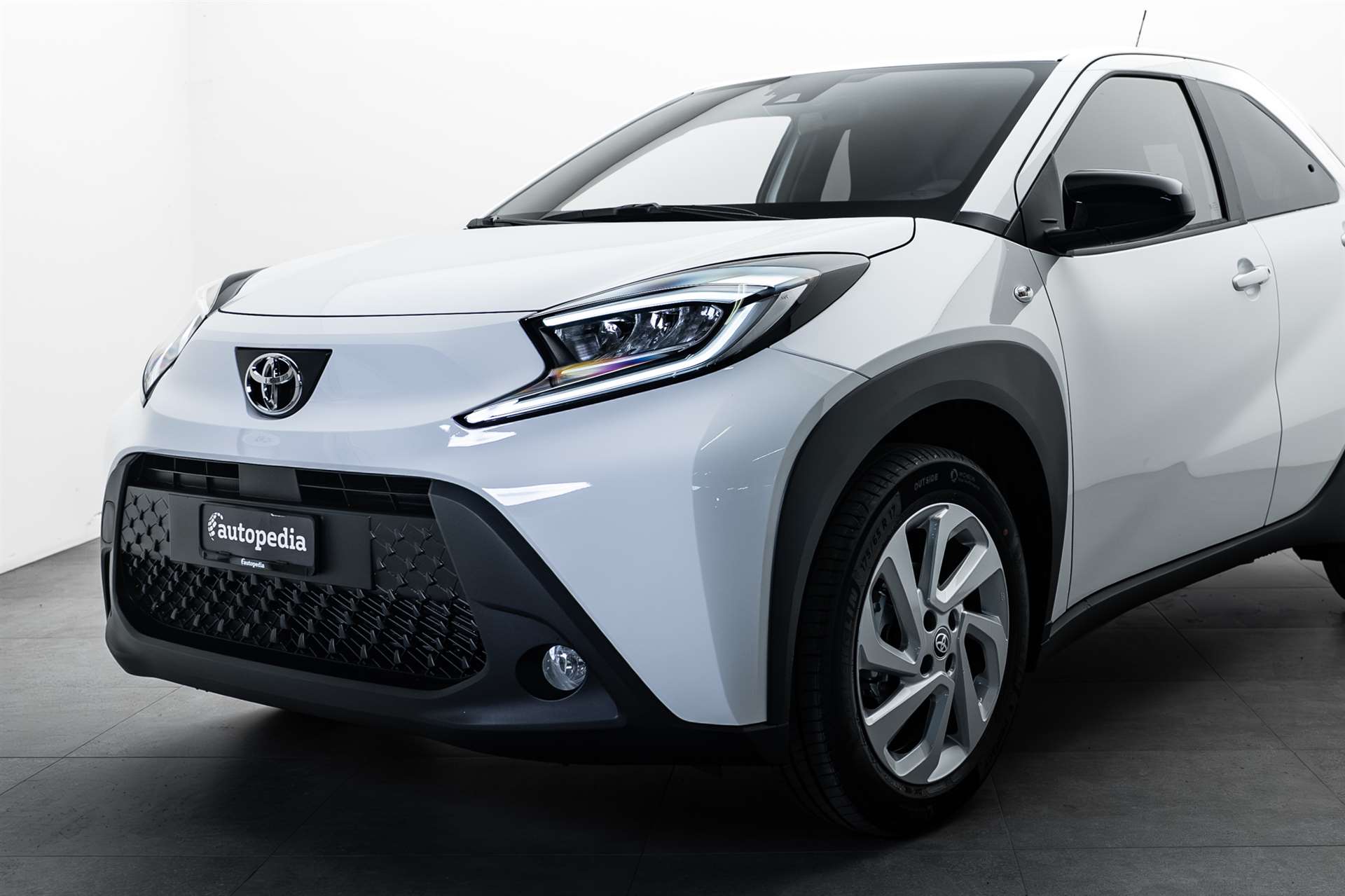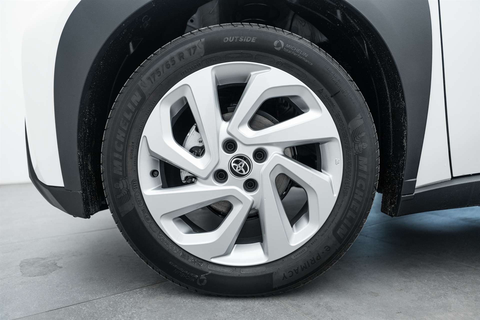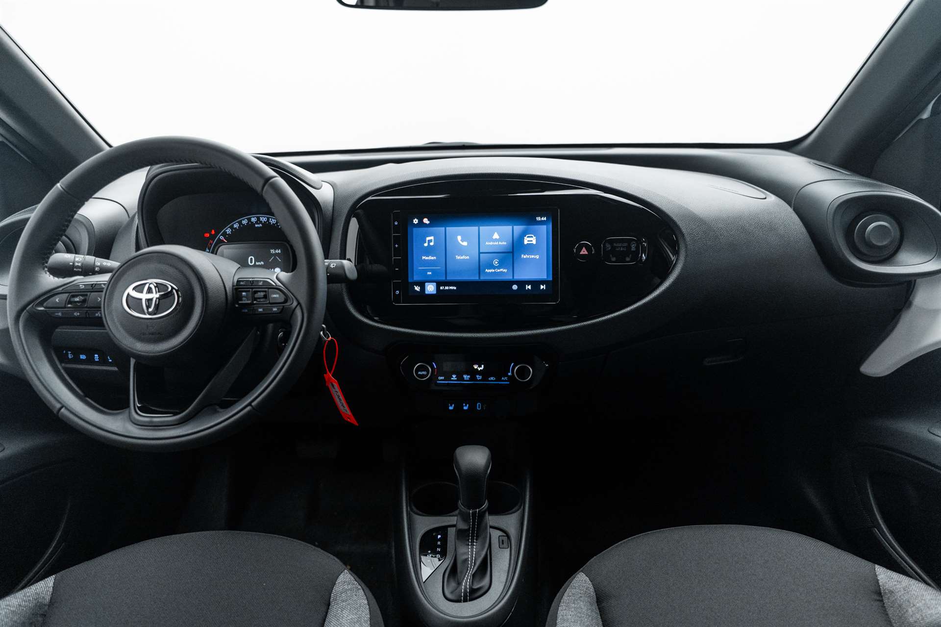 12 V-Anschluss vorne, Airbag: Airbag Fahrer und Beifahrer, Airbag: Kopfairbags vorne und hinten, Airbag: Seitenairbag für Fahrer und Beifahrer, Antiblockiersystem (ABS), Assist: Adaptiver Tempomat ACC, Assist: Geschwindigkeitsbegrenzer ASL, Assist: Parksensoren vorne und hinten (akustich), Assist: Parksensoren vorne und hinten (akustich), Assist: Pre Collision System mit Fussgänger- und Fahrraderkennung (PCS), Assist: Rückfahrkamera, Assist: Spurverfolgungsassistent (LTA) mit Spurverlasswarner (LDA) und aktiver Lenkunterstützung, Assist: Verkehrsschilderkennung (RSA), Aussenspiegel elektrisch verstellbar und beheizbar, Aussenspiegel in schwarz, Elektronische Traktionskontrolle, Elektronisches Stabilitäts-Programm (ESP), Fensterheber vorne elektrisch, Garantie: 3 Jahre/100’000 km, Getriebe: Stufenloser Automat, Heckscheibe und hintere Seitenscheiben getönt, Kabellose Ladestation für mobile Geräte (Qi), Klima: Klimaanlage mit Fernsteuerung, Klima: Klimaanlage mit Fernsteuerung, Klima: Klimaautomatik mit Pollenfilter, Kopfstützen 2. Sitzreihe fix, Lackierung: Bi-tone Lackierung, Lederbezogener Schaltknauf, Lenkrad: Lederlenkrad, Lenkrad: Lenkrad mit Bedienelementen, Licht: Abbiegelicht, LED, Licht: Ambientebeleuchtung Innenraum, Licht: Fernlicht-Automatik (AHB), Licht: Frontscheinwerfer LED, Licht: LED-Tagfahrlicht, Licht: Nebelscheinwerfer Halogen, Medfia. 4 Lautsprecher, Media: 9" Multimedia Display Toyota Touch 3, Media: MyT App Connected Services (10 Jahre gratis), Media: MyT App Smart Connect Pack (4 Jahre gratis) Ver-/entriegelung, Warnblinker betätigen, Media: Radio, DAB+ und Bluetooth, Media: Smartphone Integration: Apple CarPlay ohne Kabel / Android Auto ohne Kabel, Media: Toyota Smart Connect (T1) Multimedia mit 10.5" HD Bildschirm, Cloud-Navigationssystem, Media: USB Anschlüsse vorne (1x USB-C), Paket: Comfort-Pack, Pannendreieck, Passgenaue Kofferraummatte, Polster: Stoff, Räder: 17"-Leichtmetallfelgen, 175/65-R17 Reifen, Räder: 4 hochwertige Winter-Leichtmetallräder 17", Räder: Reifendruckkontrollsystem, Regensensor, Reiseapotheke, Servolenkung, Sicherheitsweste, Sitze: 2. Sitzreihe abklappbar 50:50, Sitze: Beifahrersitz 4 -fach manuell verstellbar, Sitze: Fahrersitz 6-fach manuell verstellbar, Sitze: Fahrersitz höhenverstellbar, Sitze: Sitzheizung vorne, Sitze: Sitzheizung vorne, Smart Entry, Sonnenblenden mit Spiegel Fahrerseite beleuchtet, Stossstangenschutzplatte hinten, Türgriffe aussen Wagenfarbe, Wegfahrsperre elektronisch, Zentralverriegelung mit Fernbedienung