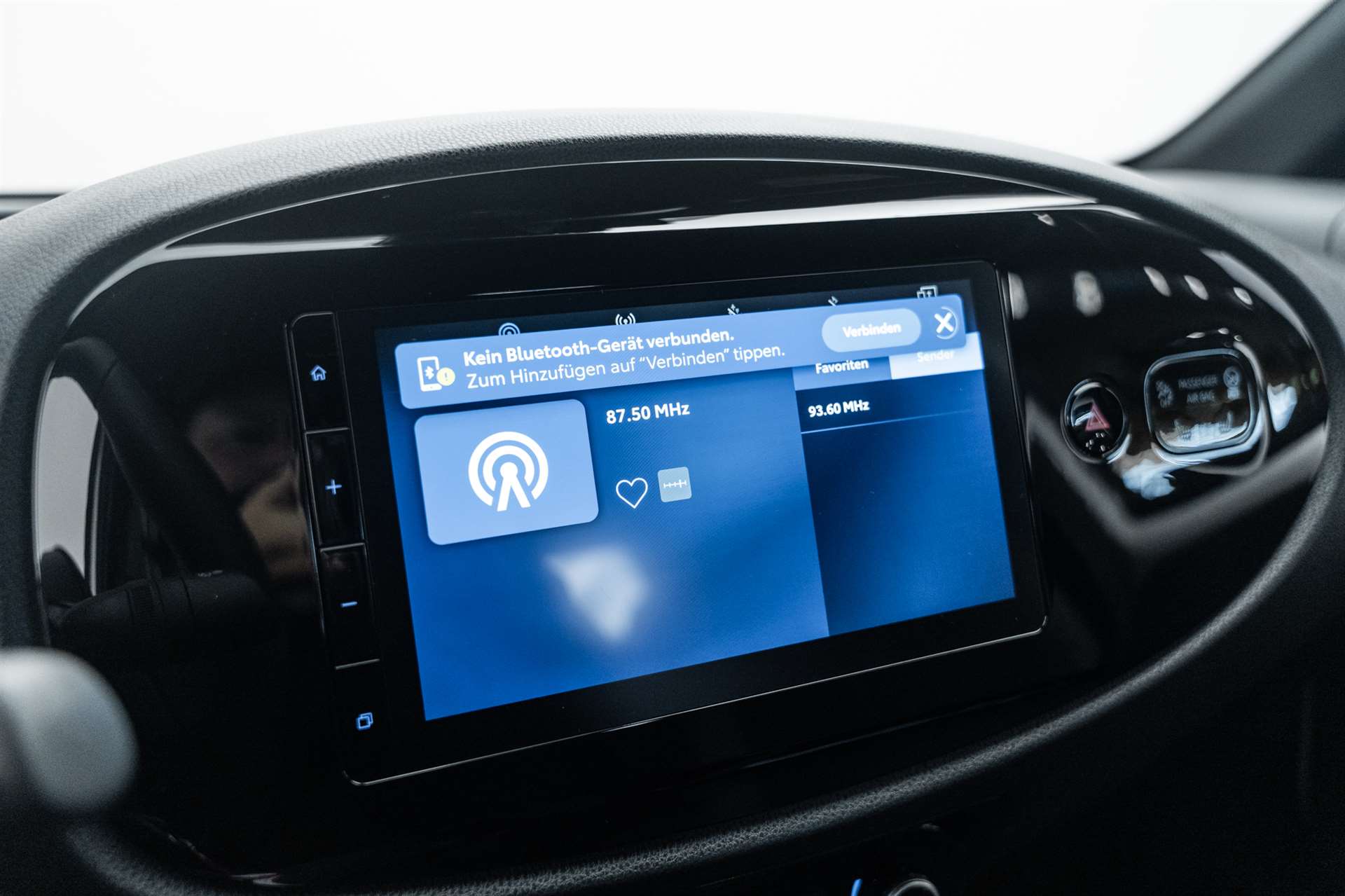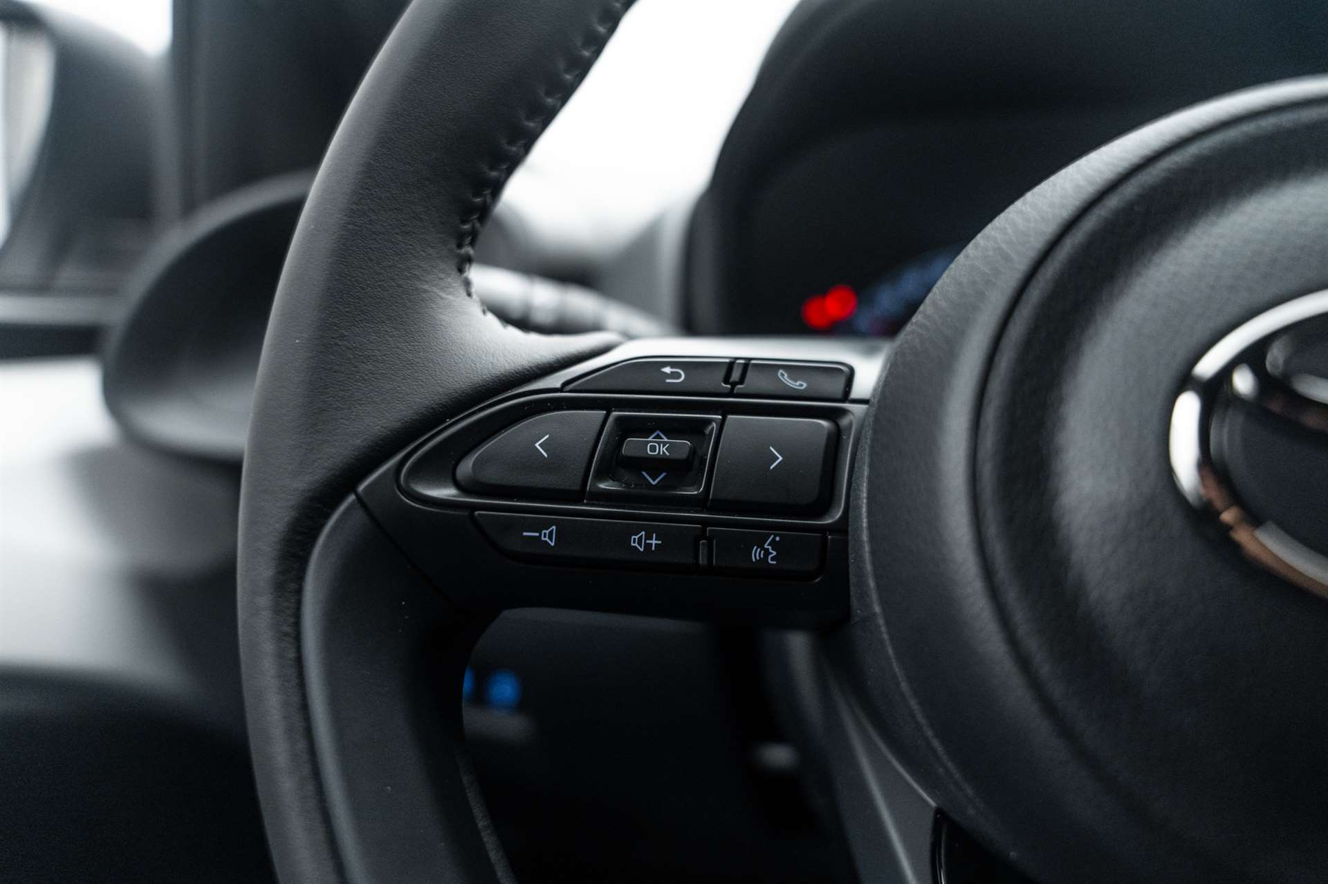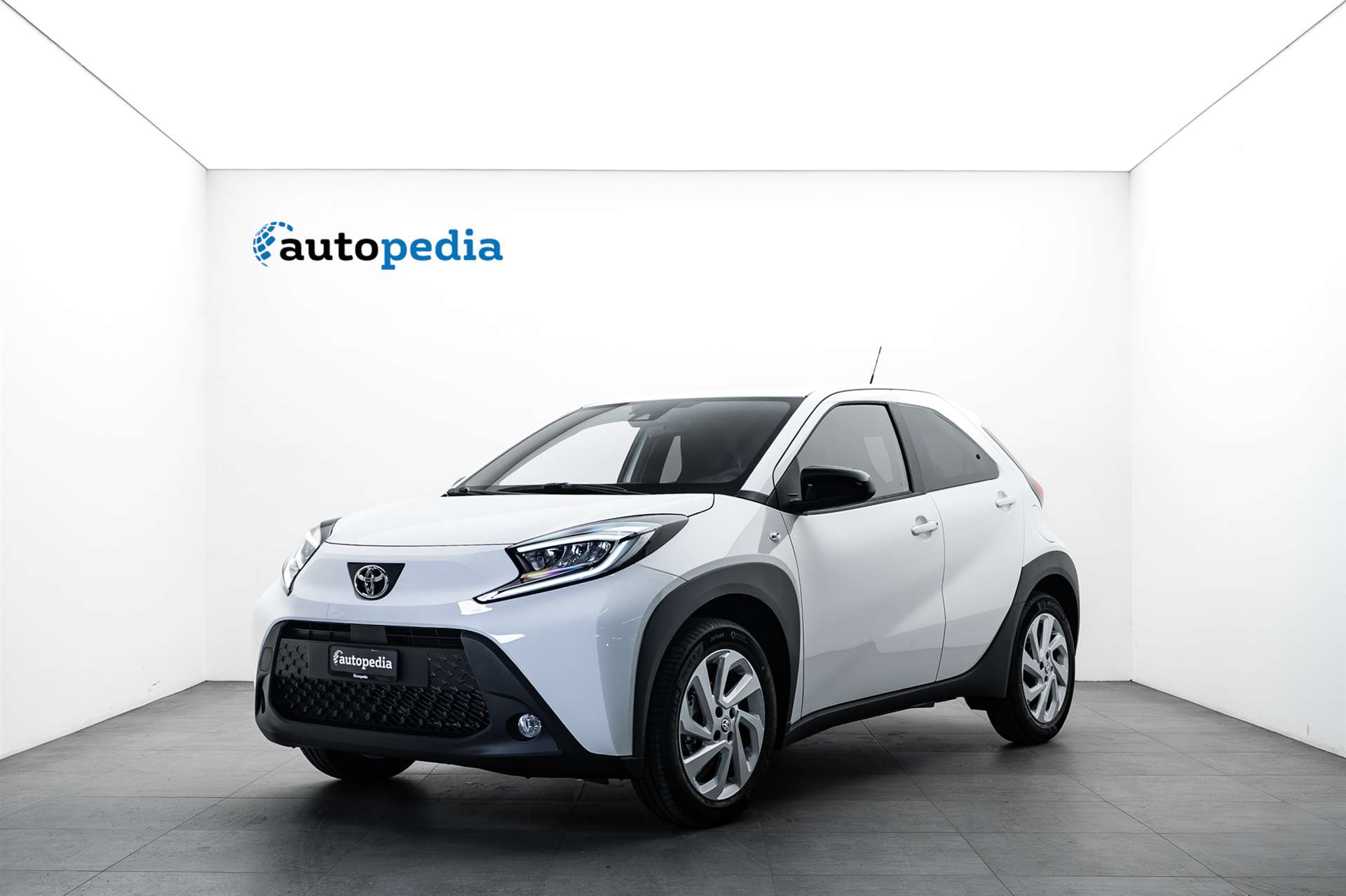 12 V-Anschluss vorne, Airbag: Airbag Fahrer und Beifahrer, Airbag: Kopfairbags vorne und hinten, Airbag: Seitenairbag für Fahrer und Beifahrer, Antiblockiersystem (ABS), Assist: Adaptiver Tempomat ACC, Assist: Geschwindigkeitsbegrenzer ASL, Assist: Parksensoren vorne und hinten (akustich), Assist: Parksensoren vorne und hinten (akustich), Assist: Pre Collision System mit Fussgänger- und Fahrraderkennung (PCS), Assist: Rückfahrkamera, Assist: Spurverfolgungsassistent (LTA) mit Spurverlasswarner (LDA) und aktiver Lenkunterstützung, Assist: Verkehrsschilderkennung (RSA), Aussenspiegel elektrisch verstellbar und beheizbar, Aussenspiegel in schwarz, Elektronische Traktionskontrolle, Elektronisches Stabilitäts-Programm (ESP), Fensterheber vorne elektrisch, Garantie: 3 Jahre/100’000 km, Getriebe: Stufenloser Automat, Heckscheibe und hintere Seitenscheiben getönt, Kabellose Ladestation für mobile Geräte (Qi), Klima: Klimaanlage mit Fernsteuerung, Klima: Klimaanlage mit Fernsteuerung, Klima: Klimaautomatik mit Pollenfilter, Kopfstützen 2. Sitzreihe fix, Lackierung: Bi-tone Lackierung, Lederbezogener Schaltknauf, Lenkrad: Lederlenkrad, Lenkrad: Lenkrad mit Bedienelementen, Licht: Abbiegelicht, LED, Licht: Ambientebeleuchtung Innenraum, Licht: Fernlicht-Automatik (AHB), Licht: Frontscheinwerfer LED, Licht: LED-Tagfahrlicht, Licht: Nebelscheinwerfer Halogen, Medfia. 4 Lautsprecher, Media: 9" Multimedia Display Toyota Touch 3, Media: MyT App Connected Services (10 Jahre gratis), Media: MyT App Smart Connect Pack (4 Jahre gratis) Ver-/entriegelung, Warnblinker betätigen, Media: Radio, DAB+ und Bluetooth, Media: Smartphone Integration: Apple CarPlay ohne Kabel / Android Auto ohne Kabel, Media: Toyota Smart Connect (T1) Multimedia mit 10.5" HD Bildschirm, Cloud-Navigationssystem, Media: USB Anschlüsse vorne (1x USB-C), Paket: Comfort-Pack, Pannendreieck, Passgenaue Kofferraummatte, Polster: Stoff, Räder: 17"-Leichtmetallfelgen, 175/65-R17 Reifen, Räder: 4 hochwertige Winter-Leichtmetallräder 17", Räder: Reifendruckkontrollsystem, Regensensor, Reiseapotheke, Servolenkung, Sicherheitsweste, Sitze: 2. Sitzreihe abklappbar 50:50, Sitze: Beifahrersitz 4 -fach manuell verstellbar, Sitze: Fahrersitz 6-fach manuell verstellbar, Sitze: Fahrersitz höhenverstellbar, Sitze: Sitzheizung vorne, Sitze: Sitzheizung vorne, Smart Entry, Sonnenblenden mit Spiegel Fahrerseite beleuchtet, Stossstangenschutzplatte hinten, Türgriffe aussen Wagenfarbe, Wegfahrsperre elektronisch, Zentralverriegelung mit Fernbedienung