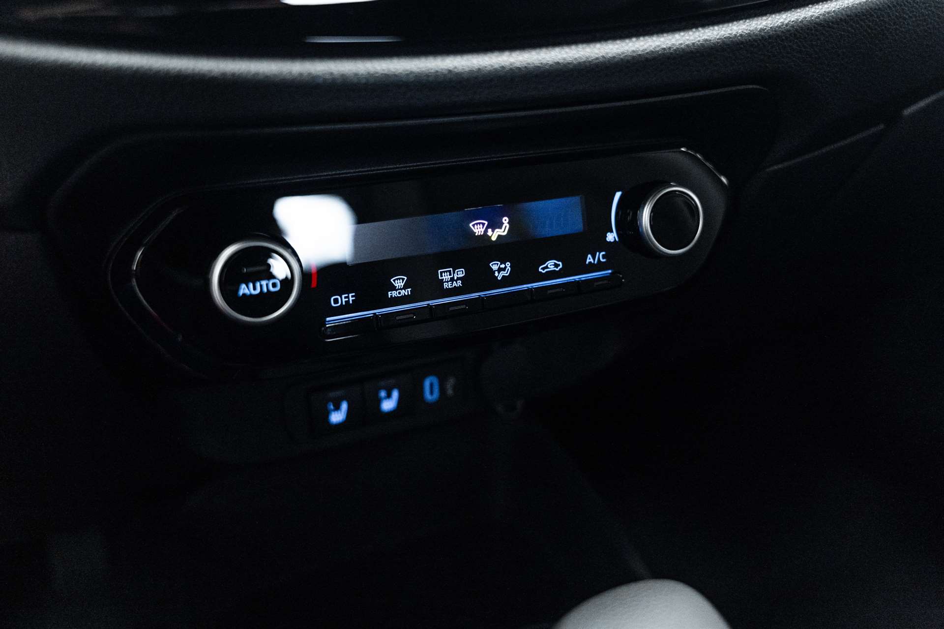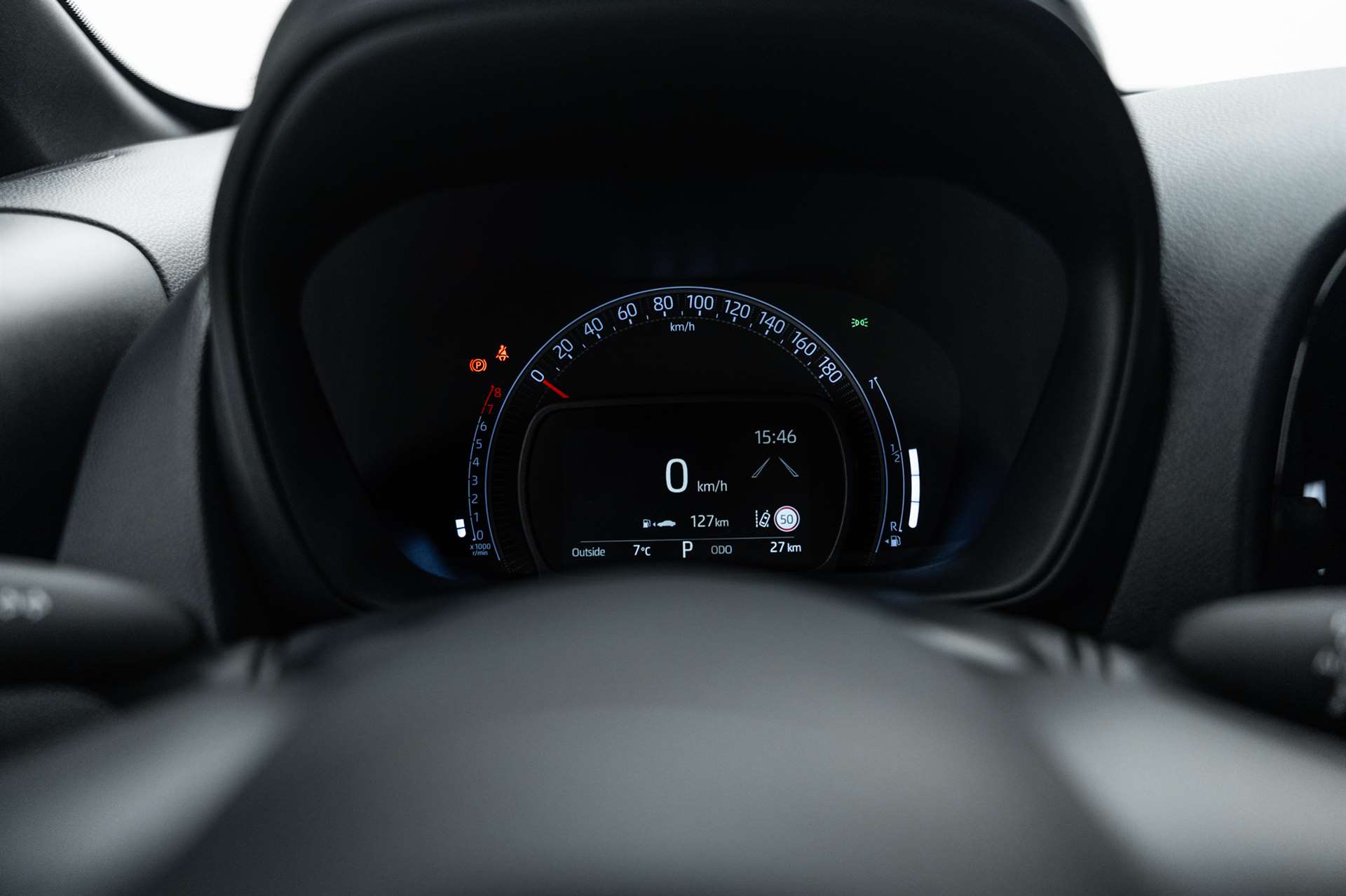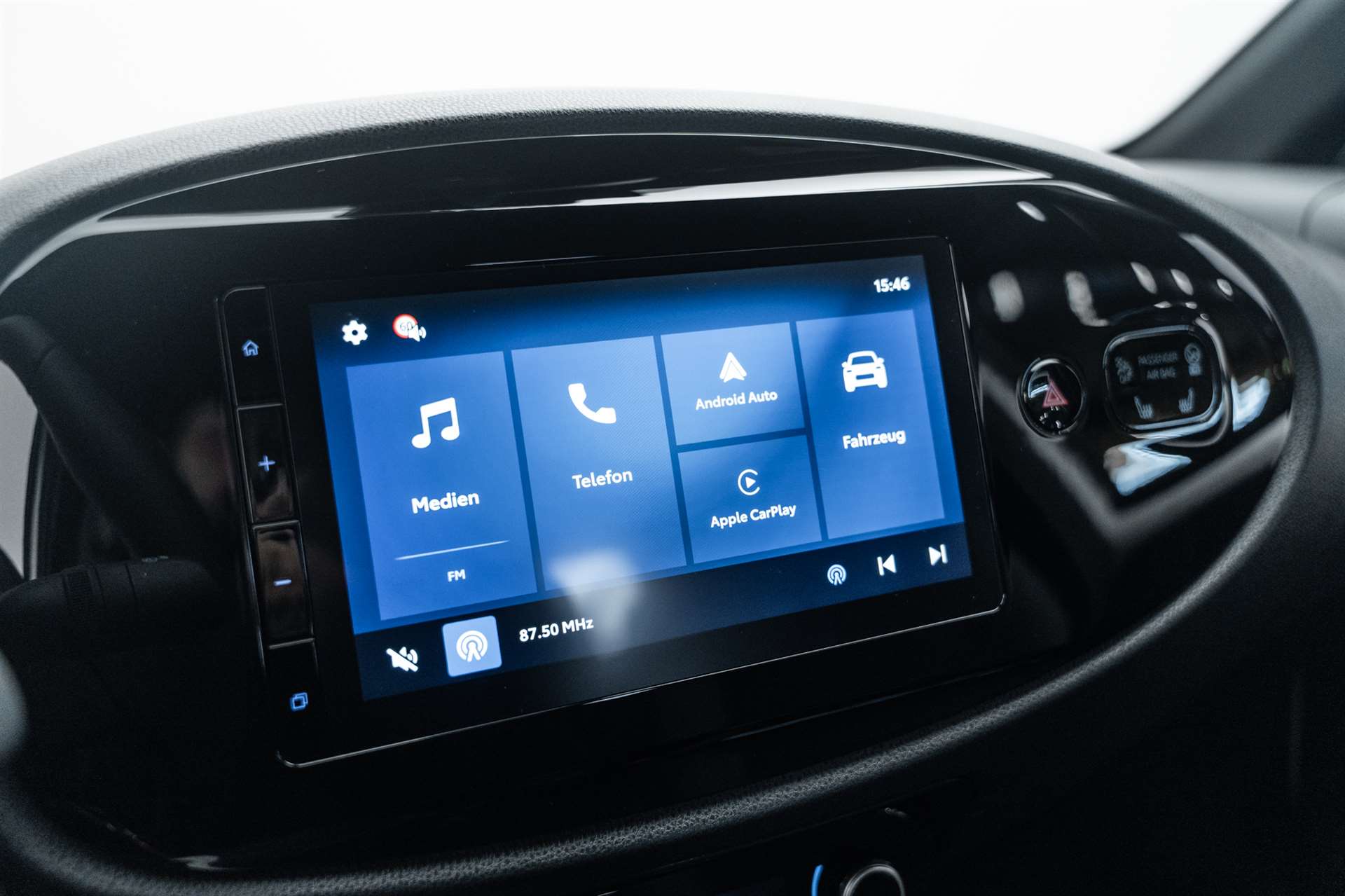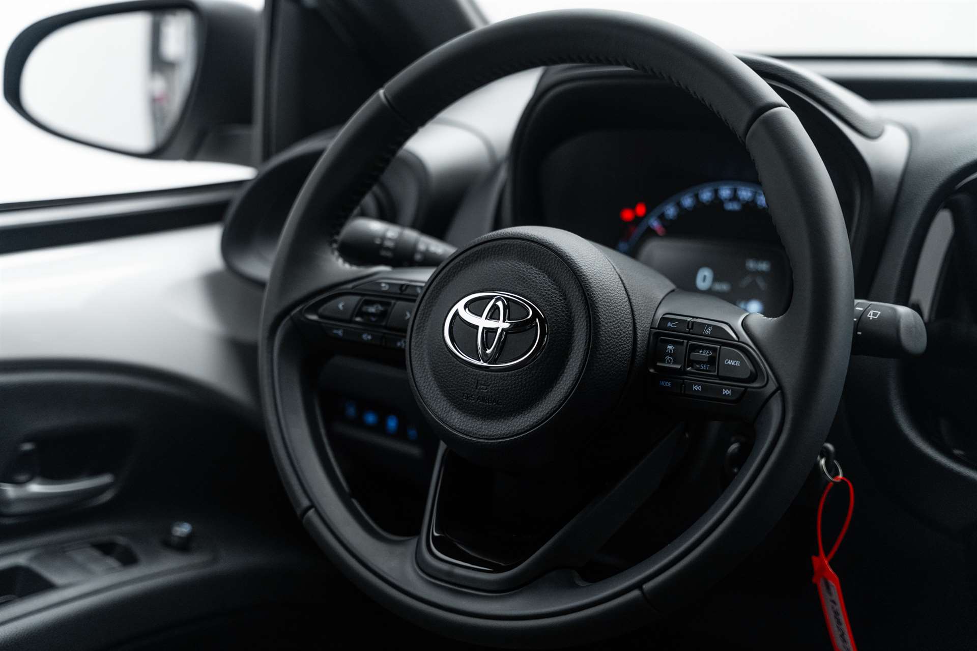 12 V-Anschluss vorne, Airbag: Airbag Fahrer und Beifahrer, Airbag: Kopfairbags vorne und hinten, Airbag: Seitenairbag für Fahrer und Beifahrer, Antiblockiersystem (ABS), Assist: Adaptiver Tempomat ACC, Assist: Geschwindigkeitsbegrenzer ASL, Assist: Parksensoren vorne und hinten (akustich), Assist: Parksensoren vorne und hinten (akustich), Assist: Pre Collision System mit Fussgänger- und Fahrraderkennung (PCS), Assist: Rückfahrkamera, Assist: Spurverfolgungsassistent (LTA) mit Spurverlasswarner (LDA) und aktiver Lenkunterstützung, Assist: Verkehrsschilderkennung (RSA), Aussenspiegel elektrisch verstellbar und beheizbar, Aussenspiegel in schwarz, Elektronische Traktionskontrolle, Elektronisches Stabilitäts-Programm (ESP), Fensterheber vorne elektrisch, Garantie: 3 Jahre/100’000 km, Getriebe: Stufenloser Automat, Heckscheibe und hintere Seitenscheiben getönt, Kabellose Ladestation für mobile Geräte (Qi), Klima: Klimaanlage mit Fernsteuerung, Klima: Klimaanlage mit Fernsteuerung, Klima: Klimaautomatik mit Pollenfilter, Kopfstützen 2. Sitzreihe fix, Lackierung: Bi-tone Lackierung, Lederbezogener Schaltknauf, Lenkrad: Lederlenkrad, Lenkrad: Lenkrad mit Bedienelementen, Licht: Abbiegelicht, LED, Licht: Ambientebeleuchtung Innenraum, Licht: Fernlicht-Automatik (AHB), Licht: Frontscheinwerfer LED, Licht: LED-Tagfahrlicht, Licht: Nebelscheinwerfer Halogen, Medfia. 4 Lautsprecher, Media: 9" Multimedia Display Toyota Touch 3, Media: MyT App Connected Services (10 Jahre gratis), Media: MyT App Smart Connect Pack (4 Jahre gratis) Ver-/entriegelung, Warnblinker betätigen, Media: Radio, DAB+ und Bluetooth, Media: Smartphone Integration: Apple CarPlay ohne Kabel / Android Auto ohne Kabel, Media: Toyota Smart Connect (T1) Multimedia mit 10.5" HD Bildschirm, Cloud-Navigationssystem, Media: USB Anschlüsse vorne (1x USB-C), Paket: Comfort-Pack, Pannendreieck, Passgenaue Kofferraummatte, Polster: Stoff, Räder: 17"-Leichtmetallfelgen, 175/65-R17 Reifen, Räder: 4 hochwertige Winter-Leichtmetallräder 17", Räder: Reifendruckkontrollsystem, Regensensor, Reiseapotheke, Servolenkung, Sicherheitsweste, Sitze: 2. Sitzreihe abklappbar 50:50, Sitze: Beifahrersitz 4 -fach manuell verstellbar, Sitze: Fahrersitz 6-fach manuell verstellbar, Sitze: Fahrersitz höhenverstellbar, Sitze: Sitzheizung vorne, Sitze: Sitzheizung vorne, Smart Entry, Sonnenblenden mit Spiegel Fahrerseite beleuchtet, Stossstangenschutzplatte hinten, Türgriffe aussen Wagenfarbe, Wegfahrsperre elektronisch, Zentralverriegelung mit Fernbedienung