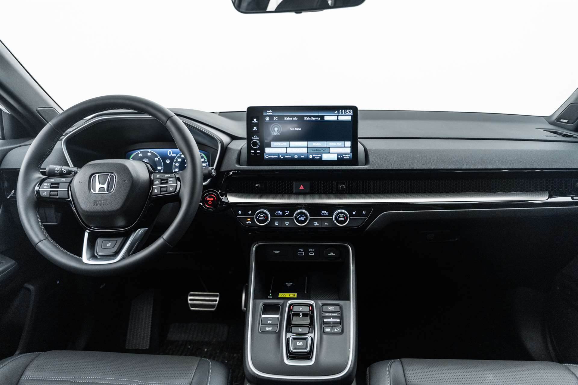 Airbag: Airbag Beifahrer deaktivierbar, Airbag: Airbag Fahrer und Beifahrer, Airbag: Knie Airbag Fahrer und Beifahrer, Airbag: Seiten-Airbags, Airbag: Seitenairbags, hinten, Airbag: SRS-Airbag Fahrerseite, Airbag: Vorhang-Airbags (vorne und hinten), Airbag: Vorne mitte, Ambientebeleuchtung, Ambientebeleuchtung, Ambientebeleuchtung, Armlehne für Fahrer- und Beifahrersitz, Assist: Adaptiver Tempomat, Assist: Anhänger-Stabilitäts-Assistent (TSA), Assist: Antiblockiersystem (ABS), Assist: Berganfahrhilfe, Assist: Bremsassistent, Assist: Bremssystem für niedrige Geschwindigkeit, Assist: e-Call, Assist: Einstellbarer Geschwindigkeitsbegrenzer, Assist: Elektronische Parkbremse mit Auto Hold Funktion (EPB & BH), Assist: Elektronischer Bremskraftverteilung EBD, Assist: Fahrer-Aufmerksamkeitsüberwachung, Assist: Fahrspur-Überwachung, Assist: Frontkollisionswarnung, Assist: Handling-Assistent, Assist: Honda Parking Pilot, Assist: HONDA SENSING 360, Assist: Intelligenter Geschwindigkeitsbegrenzer, Assist: Kollisionsschutz-Fahrpedalkontrolle (vorw. und rückw.), Assist: Langsamfahrt-Folgefunktion, Assist: Multi-View-Kamerasystem, Assist: Notbremssignal, Assist: Parksensoren (vorne 4: hinten 4: seitlich 4), Assist: Querverkehrswarnung vorne, Assist: Spurhalteassistent, Assist: Spurverlassens-Vermeidungssystem, Assist: Spurverlassenswarnung (LDWS), Assist: Stabilisierungsprogramm VSA (Vehicle Stability Assist), Assist: Stauassistent (LSF), Assist: Toter-Winkel-Assistent (BSI) inklusive Querverkehrs-warnung, Assist: Traktionskontrolle, Assist: Verhinderung ungewollter Beschleunigung, Assist: Verkehrszeichenerkennung (TSR), Auspuff (Auspuffblende), Aussenspiegel - Spiegel für Rückwärtsfahrt nach unten kippbar, Aussenspiegel Multi-View-Kamerasystem, Aussenspiegel rechts und links beheizt, elektrisch verstell- / und einklappbar, Aussenspiegel schwarz, Automatische abblendender Innenrückspiegel, Beleuchteter Make-up-Spiegel, Dachhimmel Dunkel, Dachreling, Dekor: Mit mehrschichtiger Waben-Metallfolie beschichtete Applikationen, Dekor: Platin- und chrombeschichtete Innentürgriffe, Diebstahlwarnanlage, Dunkel getönte Scheiben hinten, Elektrische Fensterheber vorne + hinten, Fahrmodus, Fahrwerk: Elektrische Servolenkung mit variabler Übersetzung, Fensterbetätigung mit Funkschlüssel, Garantie: 3 Jahre oder 100'000 km (ab 1. Inv.), Garantie: 5 Jahre oder 100 000 km für die Komponenten des Hybrid-Systems., Gepäckraumabdeckung, Gepäckraumbelechtung, Gepäckraumboden Box, Gerätesteckdosen vorne und im Kofferraum, Getriebe: Stufenloser Automat, Haifischflossenantenne Schwarz, Head-Up Display, Heckklappe elektrisch, Innenbeleuchtung, Instrumentenbeleuchtung, ISOFIX-Verankerungen für Kindersitze, Kartenleselicht (vorne), Klima: Lüftungsauslässe hinten, Klima: Zwei-Zonen-Klimaanlage, Kühlergrill schwarz Exklusiv, Lackierung: Uni-Lackierung, Ladekabel-Aufbewahrung unter dem Gepäckraumboden, Ladungsnetzhaken, Leistungsmesser, Lenkrad: Beheizbares Lenkrad, Lenkrad: Längs-und höhenverstellbares Lenkrad, Lenkrad: Lederlenkrad, Lenkrad: Multifunktions lenkrad, Leseleuchten hinten, Licht: Adaptives Fernlicht (ADB), Licht: Aktive Kurvenlicht, Licht: Einschaltautomatik für Scheinwerfer, Licht: LED Heckleuchten, Licht: LED Scheinwerfer, Licht: LED-Tagfahrlicht, Licht: Scheinwerfer mit Coming-Home-Funktion, Licht: Sequentielle LED-Blinker vorne, Media: 10,2" Volldigitales Display, Media: 2 USB-Anschlüsse vorne (1 mit Ladefunktion), Media: 9-Zoll-Touchscreen, Media: Android Auto, Media: Apple CarPlay, Media: Bluetooth Freisprecheinrichtung mit Sprachsteuerung, Media: Bose Sound System mit 12 Lautsprechern, Media: Hochtöner vorne, Media: Honda CONNECT mit Navigation, Media: Kabelloses Laden, Media: Lautsprecher - Mitte, Media: Navigationssystem, Media: Radio AM / FM / DAB+, Media: USB-Ladeanschlüsse hinten 2, My Honda+, Panorama-Glasdach, Pedale Sport, Polster: Schwarze Volllederpolsterung (Seiten und Kopfstützen aus Kunstleder), Räder: 18'' Alufelgen Schwarz lackiert, Räder: Reifendruck-Kontrollanzeige, Räder: Reifenreparatur-Set (Tire Fit), Scheibenwischerautomatik, Schleudertrauma mindernde Kopfstützen vorne, Schwarze Fensterrahmen "Hochglänzend", Sicherheitsgurte, Retraktor mit Notverriegelung (ELR) - (vorne und hinten), Sitze: Beheizbare Sitze (hinten), Sitze: Beheizbare Sitze (vorne), Sitze: Beifahrersitz elektrisch verstellbar (4-Wege), Sitze: Belüftete Vordersitze, Sitze: Elektrische einstellbare Lendenwirbelstützen (Fahrer), Sitze: Fahrersitz elektrisch einstellbar mit Memory-Funktion (8 Sitzpositionen), Sitze: Rücksitzbank mit Mittelarmlehne, Sitze: Rücksitzlehnen geteilt umklappbar (60:40), Smart Entry & Start (Schlüsselloses Zugangssystem), Sonnenblenden mit Kosmetikspiegel, Sonnenbrillenfach, Spiegel- und Fensterbetätigung mit Funkschlüssel, Steuerung der regenerativen Bremse (Lenkradpaddel), Stossfänger und Kotflügeleinsätze, Wagenfarbe, Taschen an den Rücklehnen der Vordersitze, Türgriffe aussen in Wagenfarbe, Wählbare Türentriegelung, Wegfahrsperre elektronisch, Zentralverriegelung mit Fernbedienung