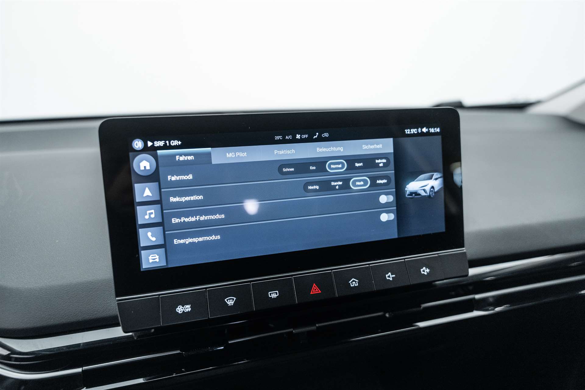 3-Punkt-Sicherheitsgurte auf allen Plätzen, Airbag: Airbag Fahrer und Beifahrer, Airbag: Kopfairbags vorne, Airbag: Seitenairbags, Antiblockiersystem (ABS), Assist: MG Pilot: ACC/TJA/FCW/AEB/IHC/SAS/LDW/LKA/UDW, Auto Start/Stop & Keyless Entry, Beheizbare Aussenspiegel, Elektrische Fensterheber vorne + hinten, ESP und TCS, Fahrwerk: "One Pedal"-Fahrmodus, Garantie: 7 Jahre oder 150'000 km, Getriebe: Direktantrieb, kein Getriebe, Heckscheiben-Wisch-/Waschanlage, Klima: Automatische Klimaanlage, Lackierung: Uni-Lackierung, Licht: Drittes Bremslicht, Licht: LED-Beleuchtung (Tagfahrlicht/Vorder-/Rücklicht), Licht: Nebelschlussleuchte, Media: 4 Lautsprecher, Media: Android Auto/Apple CarPlay, Media: Digital Cluster 7'', Media: iSMART Lite, Media: Touch Screen 10.25'', Polster: Stoff-Ausstattung, Räder: 17-Zoll-Leichtmetallfelgen, Reserverad, Servolenkung geschwindigkeitsabhängig, Sitze: 6-fach verstellbarer Fahrersitz, Sitze: Rücksitzbank umklappbar 60/40, Sonnenbrillenhalter, Vehicle to Load, Wegfahrsperre elektronisch, Zentralverriegelung mit Fernbedienung