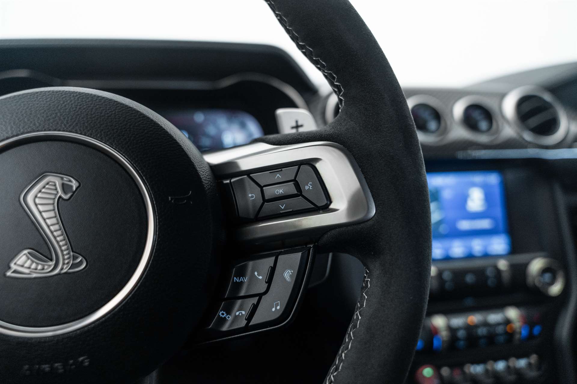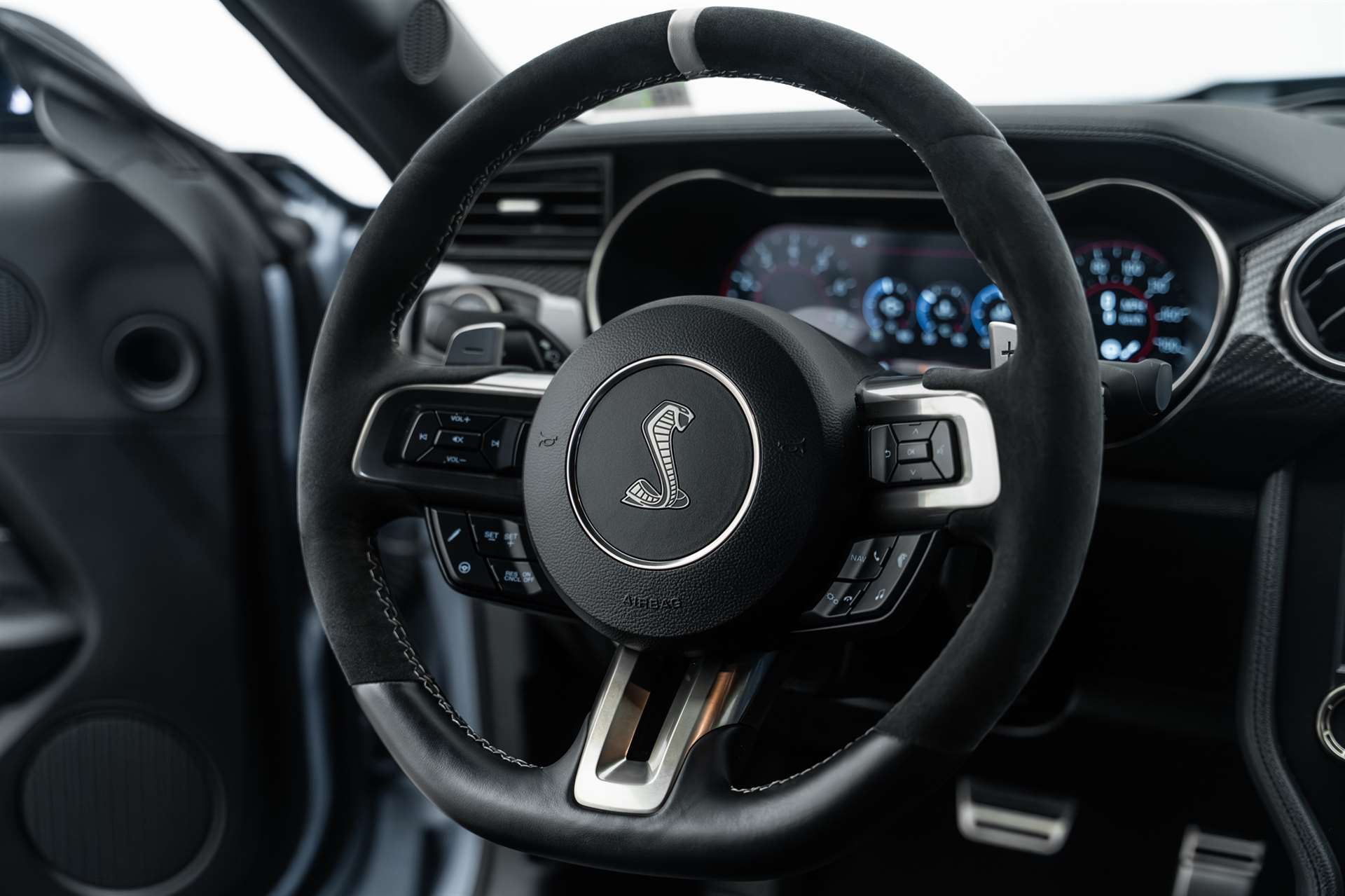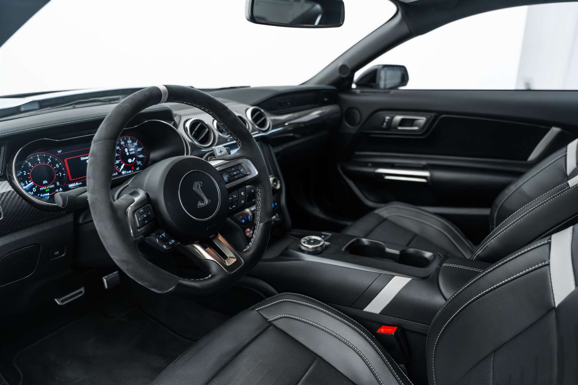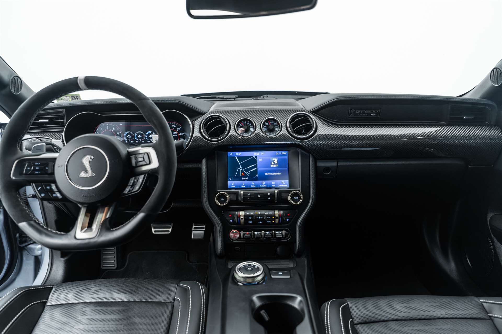 2 Getränkehalter, 3-Punkt-Sicherheitsgurte auf allen Plätzen, 6-Kolben Brembo Hochleistungsbremsanlage, Airbag Fahrerseite, Airbag: Airbag Beifahrer deaktivierbar, Airbag: Knie-Airbag für Fahrer, Airbag: Kopf- und Schulterairbag für Fahrer und Beifahrer, Antiblockier-Bremssystem (ABS), Assist: Fahrspurassistent inkl. Fahrspurhalte-Assistent, Assist: Geschwindigkeitsregelanlage, Assist: Line-Lock System, Assist: Pre-Collision-Assist, Assist: Rückfahrkamera, Außenspiegel, elektrisch einstellbar und beheizbar, mit integrierten Blinkleuchten, Aussenspiegelkappen in Magnetic-Grau, Bremssättel, Orange lackiert, Bremssättel, Schwarz lackiert, Design-Streifen an den Seiten und auf der Motorhaube in Schwarz/Rot, Design-Streifen an Fahrzeugseiten und auf der Motorhaube in Schwarz/Orange, Diebstahl-Alarmanlage inkl. Doppelverriegelung (mit Innenraumüberwachung), Digitale Instrumententafel 12" (30,4cm Bildschirmdiagonale), Einstiegszierleisten vorn im Mach 1 Design, Elektronisches Sicherheits- und Stabiltätsprogramm, Fahrmodus auswählbar, Fahrwerk: Magne Ride - Dämpfungssystem, Fensterheber vorn elektrisch, Ford Easy Fuel, Ford PassConnect, Ford Power-Startfunktion, Garantie: FordProtect Garantie: 3 Jahre oder 100'000 km (ab 1. Inv.), Garantie: Garantie 2 Jahre ohne Kilometerbegrenzung (ab 1. Inv.), Getriebe: 10-Stufen-Automat, Heckscheibe, beheizbar, Heckspoiler Mach 1, Innenspiegel automatisch abblendbar, Klappenauspuffanlage mit vier Endrohren, Klima: 2-Zonen-Klimaautomatik, Lackierung: Lackierung Fighter Jet Grey, Lackierung: Uni-Lackierung Oxford White, Launch Control, Lederhandbremsgriff, Lederschaltknauf, Lenkrad: Lederlenkrad, beheizbar, Lenkrad: Schaltwippen am Lenkrad, Licht: Drittes Bremslicht, Licht: Fernlicht-Assistent, Licht: LED-Rückleuchten, Licht: LED-Scheinwerfer, Licht: LED-Tagfahrlicht, Licht: Nebelschlussleuchte, Licht: Scheinwerfer-Assistent mit Tag/Nacht-Sensor, Mach 1 Badge, Media: B&O Sound System mit 12 Lautsprechern und 1.000 Watt, Media: Ford Navigationssystem inkl. Ford SYNC 3 mit AppLink und Touchscreen, Mittelkonsole, MyKey-Schlüsselsystem (individuell programmierbarer Zweitschlüssel), Paket: Navigations-Paket, Pedalerie mit Aluminium-Auflagen, Polster: Premium-Polsterung in Schwarz mit Design-Streifen in Grau, Polster: Premium-Polsterung in Schwarz mit Design-Streifen in Orange, Räder: Leichtmetallräder, 5-Speichen-Design in Dunkelgrau, Räder: Radmuttern Abschliessbar, Räder: Reifendruckkontrollsystem, Räder: Reifenreparatur-Set (Tire Fit), Roll Over Curtain, Scheibenwischer mit Regensensor, Servolenkung, elektro-mechanisch (EPAS-Electric Power Assisted Steering), Sicherheitsgurtstraffer und -gurtkraftbegrenzer vorn, Sitze: Aktive Kopfstützen vorn, höhen- und neigungsverstellbar, Sitze: Beifahrersitz, 6-fach elektrisch einstellbar, Sitze: Fahrersitz, 6-fach elektrisch einstellbar, Sitze: ISOFIX-Halterung, Sitze: Vordersitze, klimatisiert (Heizung und Lüftung) und individuell beheizbar, Stoßfänger vorn und hinten in Wagenfarbe lackiert, hinten mit integriertem Diffusor, Teppichfussmatten vorne Premium, Warnsystem für nicht angelegten Sicherheitsgurt in der 1.Reihe, Wegfahrsperre elektronisch, Zentralverriegelung mit Fernbedienung