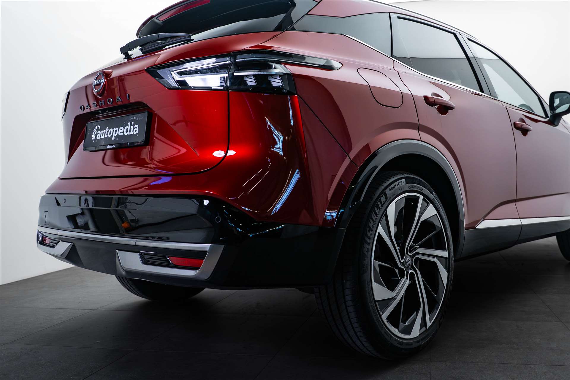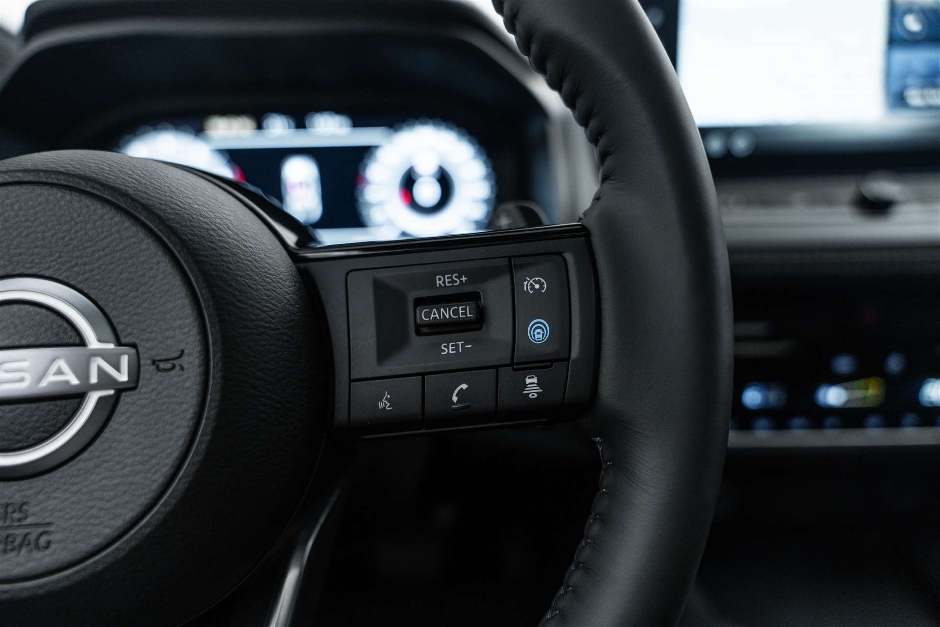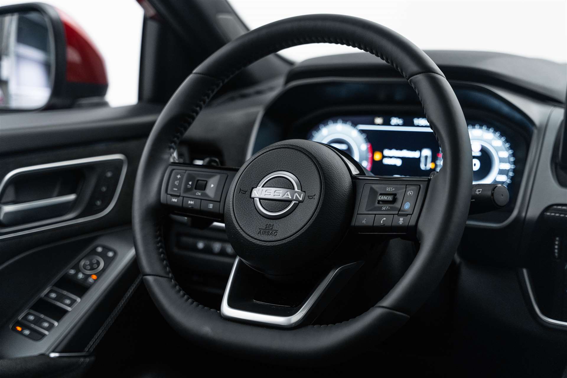3-Punkt-Sicherheitsgurte auf allen Plätzen, 6 Verzurrösen im Kofferraum, Ablagen in den Türen, Airbag: Airbag Fahrer und Beifahrer, Airbag: Seitenairbag für Fahrer und Beifahrer, Airbag: Window-Kopfairbags vorne und hinten, Airbag: Zentralairbag, Antiblockiersystem (ABS) mit elektronischer Bremskraftverteilung (EBD), Assist: Auto-Hold-Funktion, Assist: Berganfahr-Assistent, Assist: Einparkhilfe vorne und hinten, Assist: Elektronische Parkbremse (e-PKB) mit automatischer Deaktivierung beim Anfahren, Assist: Intelligente Müdigkeitserkennung, Assist: Intelligenter Adaptiver Geschwindigkeits- und Abstands-Assistent, Assist: Intelligenter autonomer Notbrems-Assistent hinten -, Assist: Intelligenter autonomer Notbrems-Assistent vorne mit Fussgänger-und Velofahrererkennung und-, Assist: Intelligenter Frontkollisionswarnungs-Assistent, Assist: Intelligenter Spurhalte-Assistent aktiv mit korrigierendem Bremseingriff, Assist: Querverkehrswarner, hinten, Assist: Rückfahrkamera in Farbe, Assist: Totwinkel-Assistent aktiv mit korrigierendem Bremseingriff, Assist: Verkehrszeichenerkennung, Assist: Warnblinkautomatik, Ausklappbare Mittelarmlehne hinten mit 2 Getränkehaltern, Aussenspiegel automatisch einklappbar, Aussenspiegel rechts und links beheizbar und elektrisch verstellbar, Beleuchtetes Handschuhfach, Dachhimmel in Hellgrau, Drehzahlmesser, Elektrische Fensterheber vorne + hinten, Elektronisches Stabilitäts-Programm (ESP), Fahrer-Informationssystem mit 12.3"-TFT-Bildschirm, Fahrmodi: Standard, Sport, Eco, Flexi-Board: Modulares Verstausystem im Kofferraum, Garantie: 12 Jahre Garantie gegen Durchrostung, Garantie: Garanie 3 Jahre Lackgarantie, Garantie: Garanie 3 Jahre oder 100'000 km (ab 1. Inv.), Getriebe: Xtronic Automatikgetriebe, Heckscheiben-Wisch-/Waschanlage, Heckscheibenheizung, Innenspiegel automatisch abblendbar, INTELLIGENT KEY-, ISOFIX-Kindersitz-Befestigungspunkte auf den hinteren Sitzplätzen inkl. Top-Tether, Katalysator geregelt, Kleiderhaken im Fahrgastraum, Klima: 2-Zonen-Klimaautomatik, Kniepolsterung an der Mittelkonsole, Kofferraumbeleuchtung, Lackierung: Uni-Lackierung, LED-Ambientebeleuchtung in der Mittelkonsole, Lenkrad: Lenkrad und Schalthebelknauf, lederummantelt, Lenkrad: Lenkradfernbedienung für :, Lenkrad: Lenkradfernbedienung für:, Lenkrad: Schaltwippen, Lenksäule, höhen- und tiefenverstellbar, Leselampe, vorne und hinten, Licht: Dritte Bremsleuchte, Licht: Fahrlichtautomatik, Licht: Fernlicht-Assistent, Licht: LED-Nebelscheinwerfer, Licht: LED-Nebelschlussleuchte, Licht: LED-Rückleuchten, Licht: LED-Scheinwerfer, Licht: LED-Tagfahrlicht, Media: 6 Lautsprecher, Media: Bluetooth-Schnittstelle für Mobiltelefon und Audiostreaming, Media: Digitaler Radioempfang (DAB/DAB+), Media: Haifischantenne, Media: NissanConnect Navigationssystem:, Media: NissanConnect Services Infotainment:, Media: USB-Anschluss (Typ A und Typ C) hinten, Media: USB-Anschluss (Typ A) in der Mittelkonsole, Media: USB-Anschluss (Typ C) in der Mittelkonsole, Notruf und Pannenanruf (eCall), Paket: Connect-/Winter-Paket, Paket: Winter Paket, Perimetrische Alarmanlage, Pollenfilter (Staubfilter), Polster: Sitzbezüge Stoff, Räder: 18"-Leichtmetallfelgen, Räder: Reifendruck-Kontrollsystem (TPMS), Räder: Reifenreparatur-Set, Scheibenwischer mit Intervall schaltung und Regensensor vorne, Servolenkung, Sitze: Beifahrersitz höhenverstellbar, Sitze: Fahrersitz höhenverstellbarr, Sitze: Fahrersitz mit 2-fach elektrischer einstellbarer Lendenwirbelstütze, Sitze: Kopfstützen auf allen Plätzen, Sitze: Rückenlehne asymmetrisch (60:40) umklappbar, Sonnenblende Fahrer und Beifahrerseite mit beleuchtetem Spiegel, Sonnenblenden mit Make-Up-Spiegel auf Fahrer- und Beifahrerseite, Sonnenbrillenfach, Steckdose im Kofferraum, Steckdose, 12 Volt, vorne, Stopp-/Start-System, Verdunkelte Seitenscheiben ab B-Säule, Warnsignal für nicht angelegte Sicherheitsgurte, Wegfahrsperre elektronisch, Zentralverriegelung mit Funkfernbedienung