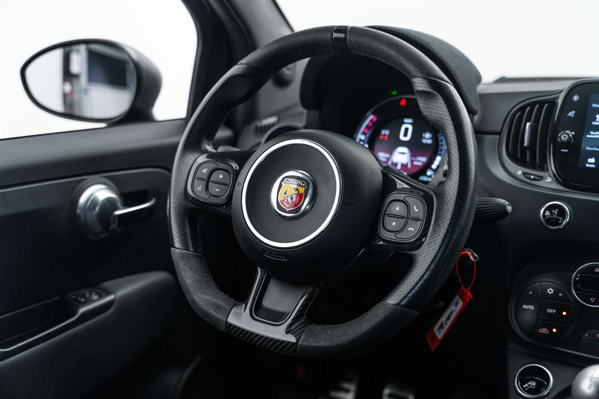 3-Punkt-Sicherheitsgurte auf allen Plätzen, Abarth Sportpedalerie, Airbag: Airbag Fahrer und Beifahrer mit dual Stage system, Airbag: Kopfairbags und Knie-Airbag auf Fahrerseite, Aktive Record Monza Auspuffanlage mit zwei vertikalen Auspuffrohren, Antenne 'Record' integriert in hintere Seitenscheibe, Antenne 'Record' integriert in hintere Seitenscheibe, Anti-Submarining-Struktur für alle Sitzplätze, Antiblockiersystem (ABS) und elektronische Bremskraftverteilung (EBD), Assist: Elektronisches Stabilitäts-Programm (ESP) mit Antischlupfregelung (ASR) und Hill Holder, Assist: Notbremsassistent, Assist: Parksensoren hinten, Assist: Parksensoren hinten, Aussenspiegelkappen in Satiniertem Chrom, Automatische Aktivierung der Warnblinkanlage bei Notbremsung, Badge 695, Brandschutzsystem / Fire Prevention System (FPS), Brembo-Bremssystem mit Bremszangen in gelb, COMPETIZIONE BADGE, Dekor: Armaturenbretteinlage in schwarz matt, Drehzahlmesser, Elektrisch verstellbare und beheizbare Aussenspiegel und Temperatursensor, Elektrische Fensterheber vorne, Elektrische Servolenkung Dualdrive, Fahrwerk: Sportfahrwerk, Garantie: 3 Jahre ohne Kilometerbegrenzung (ab 1. Inv.), Garrett Turbolader, Getriebe: Schaltgetriebe MT, Heckscheibenwischaschanlage und beheizbare Heckscheibe, Hintere Seitenscheiben und Heckscheibe getönt, Hintere Seitenscheiben und Heckscheibe getönt, ISOFIX-Befestigung für Kindersitze, Katalysator geregelt, Klima: Klimaautomatik mit Pollenfilter, Klima: Klimaautomatik mit Pollenfilter, Koni Stossdämpfer mit FSD-Technologie hinten, Koni Stossdämpfer mit FSD-Technologie vorne, Kopfstützen hinten versenkbar, Lackierung: Uni-Lackierung, Lenkrad: Alcantara-Lederlenkrad mit 12-Uhr-Markierung und Lenkradeinlagen aus Carbon, Lenkrad: Lederlenkrad mit Bedienelementen für Audiosystem, Licht: Drittes Bremslicht, Licht: Follow me home-Lichtfunktion, Licht: Nebelscheinwerfer, Licht: Nebelscheinwerfer, Licht: Nebelschlussleuchte, Licht: Poly-Elliptische Frontscheinwerfer, Licht: Tagfahrlicht, Media: Android Auto/Apple CarPlay, Media: Android Auto/Apple CarPlay, Media: Audio Beats System, Media: Uconnect 7 "-Touchscreenradio mit Navigationssystem, Bluetooth, USB, AUX, DAB+, Media: Uconnect 7 "-Touchscreenradio mit Navigationssystem, Bluetooth, USB, AUX, DAB+, Räder: Leichtmetallfelgen 17" Supersport schwarz matt - Bereifung 205/40 R17, Räder: Reifendruck-Kontrollsystem (TPMS), Record Monza Sovrapposto Sportauspuffanlage, Regen- und Lichtsensor, Regen- und Lichtsensor, Schaltempfehlungsanzeige - Gear Shift Indicator GSI, Sicherheitsgurte vorn mit Gurtstraffern und Gurtkraftbegrenzern, Sitze: Geteilt umlegbare Rücksitzbank (50/50) mit Kopfstützen hinten, Sitze: Rennsportsitze "GT BY SABELT" Stoff Schwarz, Sport-Taste für direktere Gasannahme und Lenkung sowie Erhöhung des maximalen Drehmoments, Torque Transfer Control (TTC / Elektonisches Sperrdifferenzial), Versperrbare Tankverschlusskappe, Wärmeschutzverglasung, Wegfahrsperre elektronisch, Zentralverriegelung mit Fernbedienung, Zusatzinstrument mit analoger Ladedruckanzeige und Display für Sportmodus