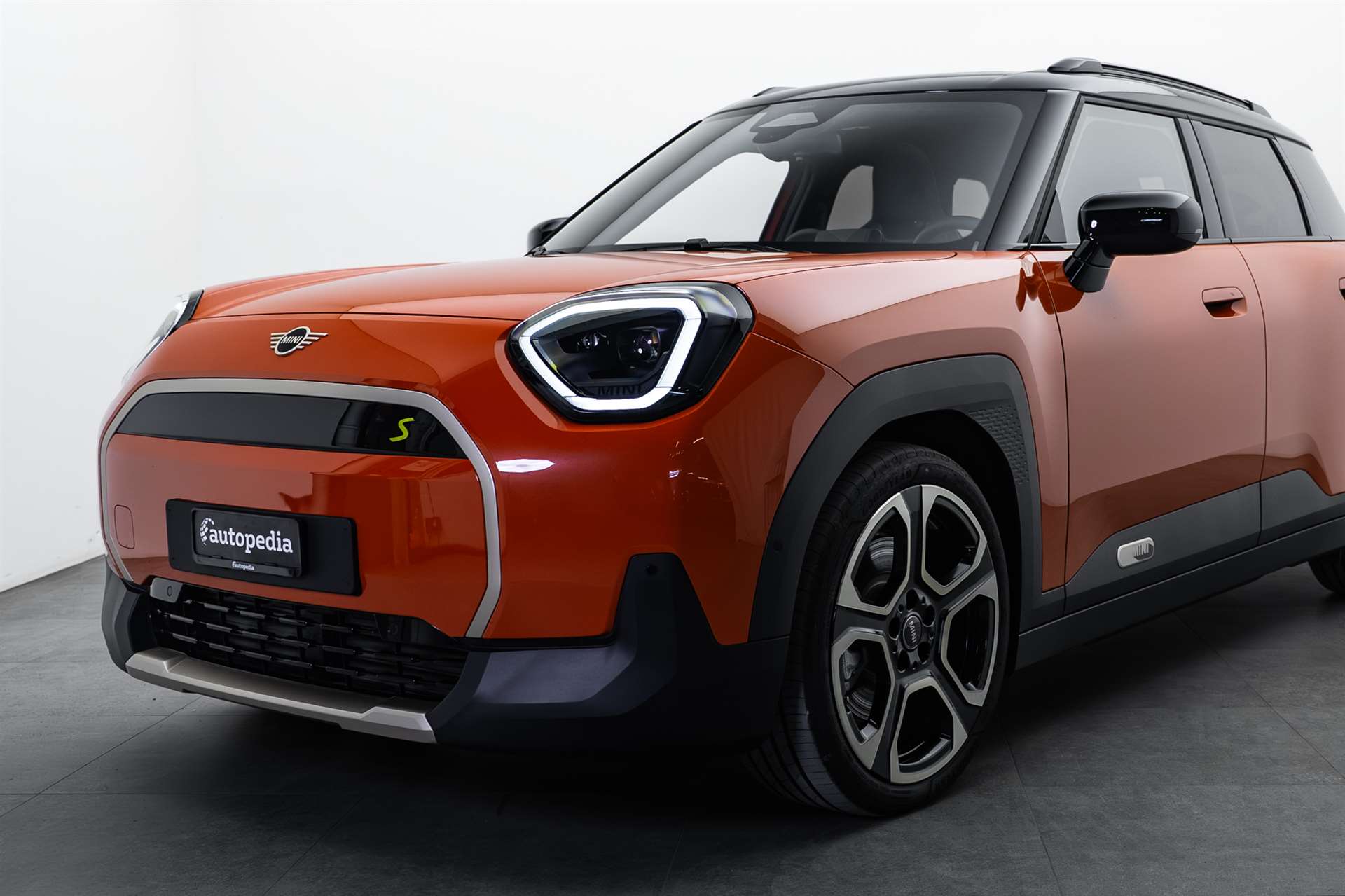 AC-Laden Plus 11 kW, Akustischer Fussgängerschutz, Assist: Driving Assistant - Radarbasiertes Fahrerassistenzsystem bestehend aus: Spurwechselwarnung, Querverkehrswarnung hinten mit Bremseingriff, Safe Exit, Prävention Heckkollision, Assist: Parking Assistant Kamera- und ultraschallbasiertes Assistenzsystem bestehend aus: - Parkassistent - Rückfahrassistent - Active Park Distance Control - PDC (ultraschallbasiertes Fahrerassistenzsystem) - Einparkhilfe Seite - Parken-Anfahrüberwachung - Anhängerassistent - Rückfahrkamera mit Panoramaansicht hinten, Dach in schwarz, Dachreling schwarz, Gesetzlicher Notruf, Media: DAB+ (Digital Audio Broadcasting), Media: MINI Interaction Unit - rundes Zentralinstrument - Fläche 440 cm² - OLED Technologie - MINI Spezifische Nutzeroberfläche, Räder: Abschliessbare Radschrauben, Räder: Reifendruck-Kontrollanzeige, Reifenreparatur-Set, Sitze: Kindersitzbefestigung i-Size für Beifahrer, TeleService, Warndreieck - inklusive Erste-Hilfe-Set.