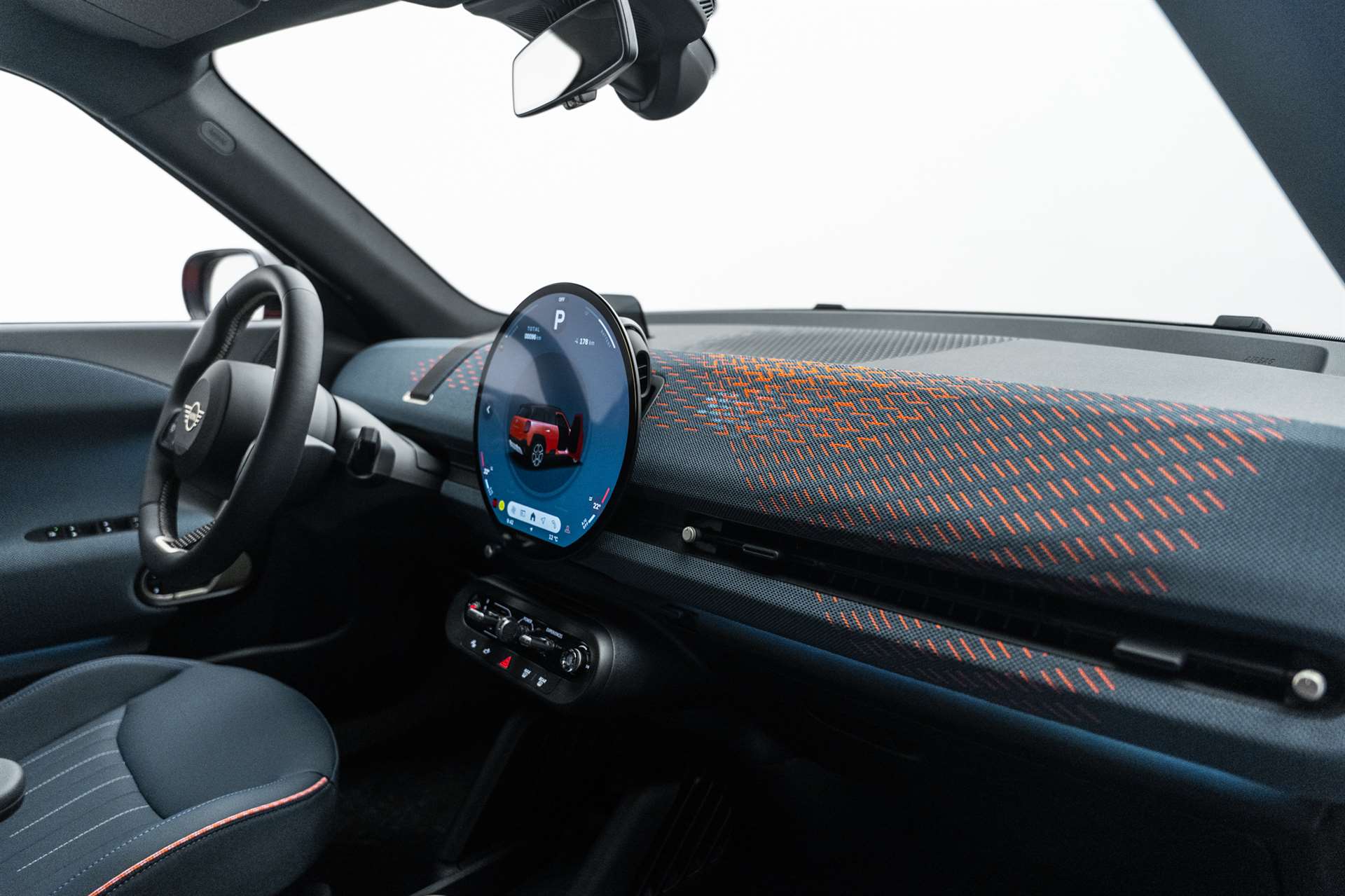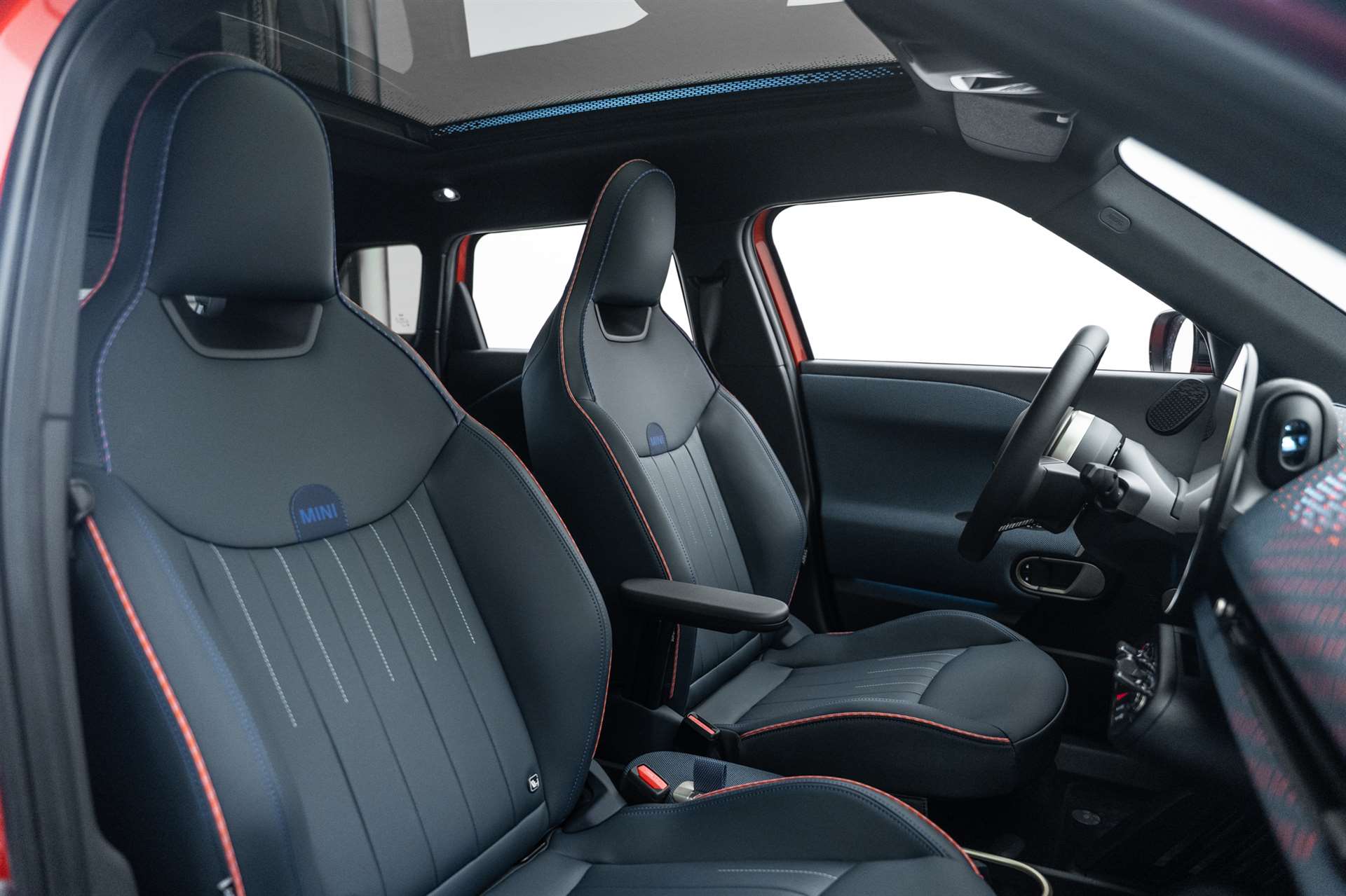 Polster: Vescin, Sitze: John Cooper Works Sportsitze, Lenkrad: Lenkradheizung, Lenkrad: Sport-Lederlenkrad, Dachhimmel Anthrazit, Sonnenschutzverglasung, Komfortzugang, Head-Up Display, Licht: Fernlichtassistent, Sitze: Vordersitze heizbar, MINI Excitement Modes, Innenspiegel automatisch abblendbar, Licht: LED Scheinwerfer mit erweiterten Umfängen, Paket: Innen- und Aussenspiegelpaket, Wireless Charging Ablage, Alarmanlage, Panorama-Glasdach