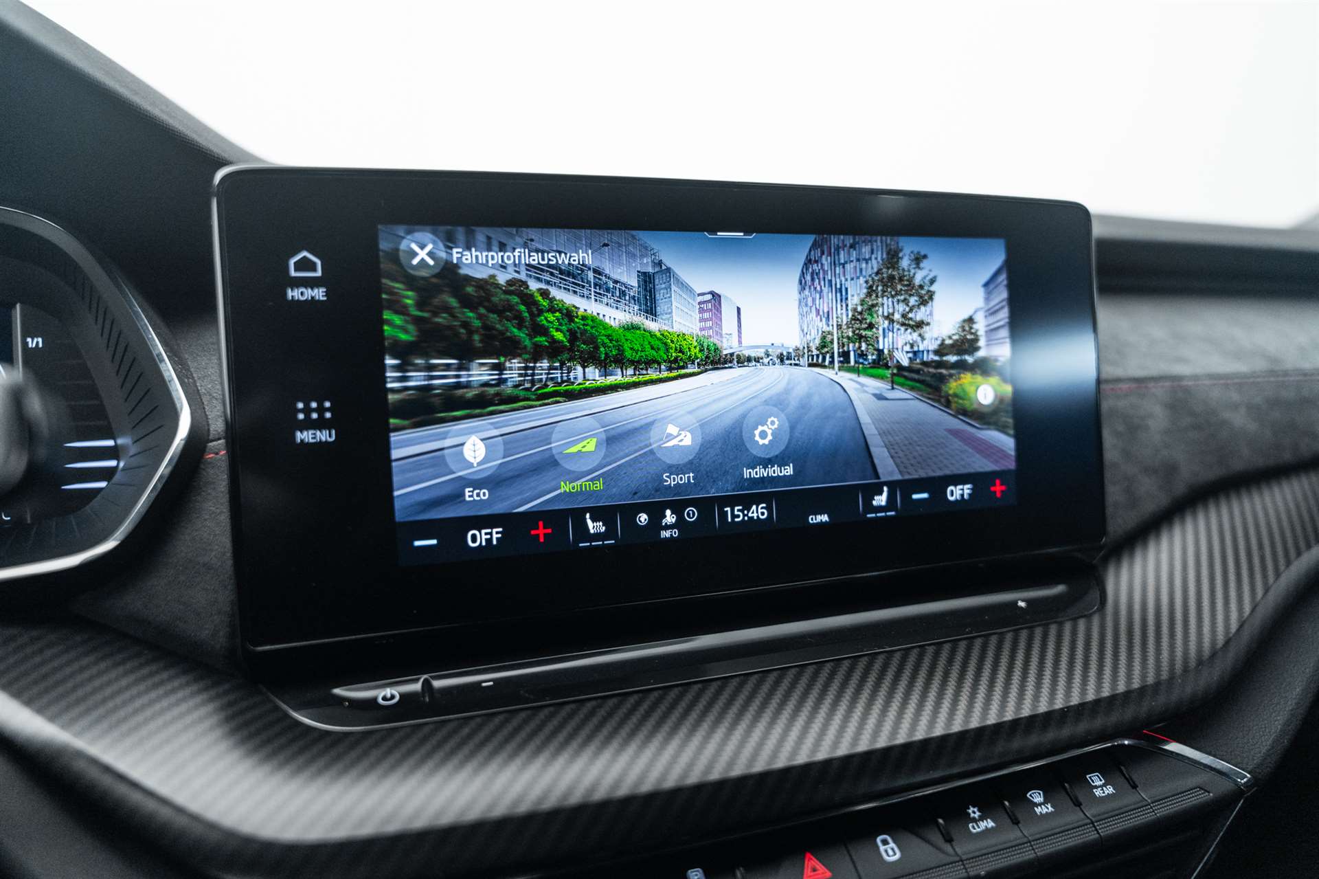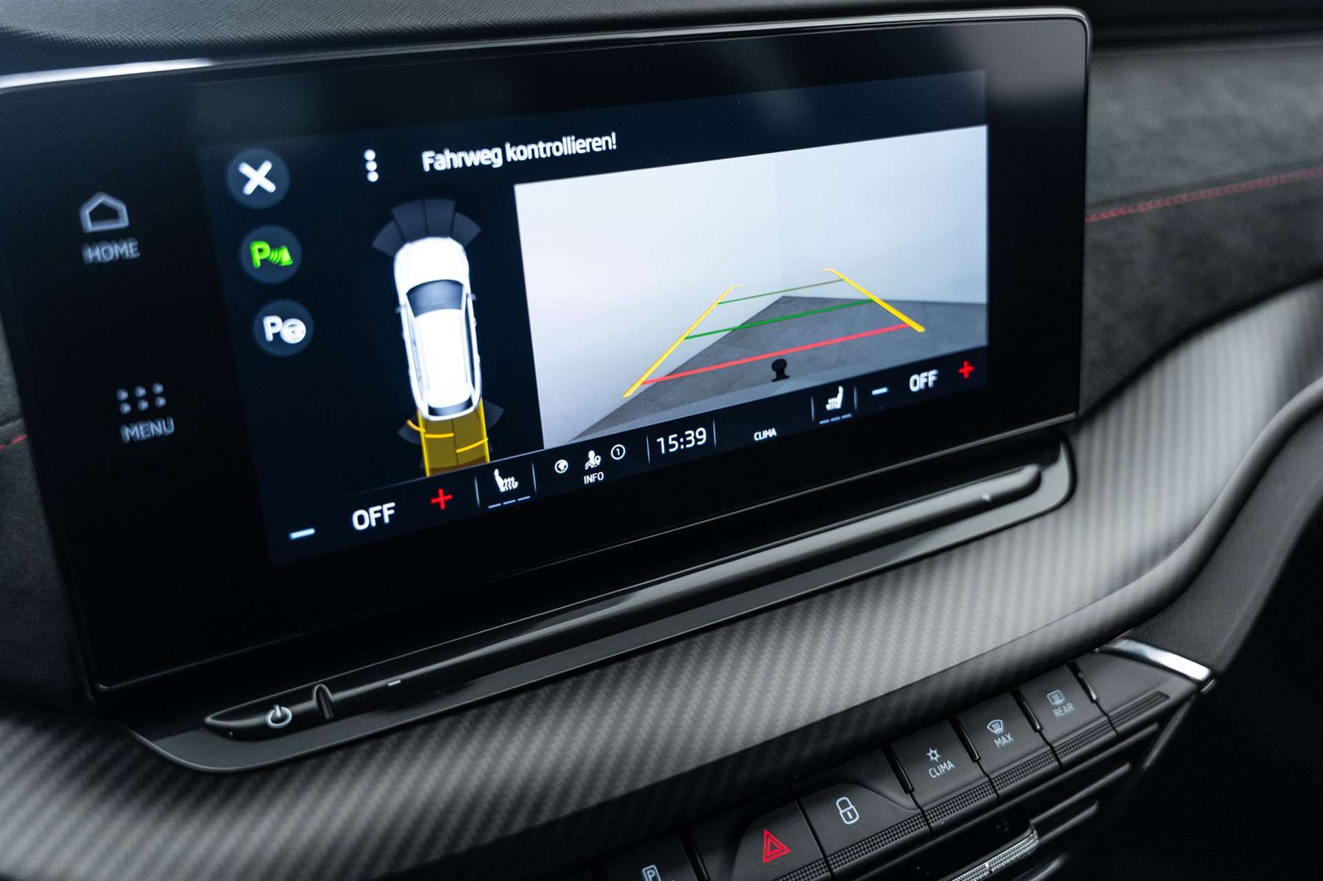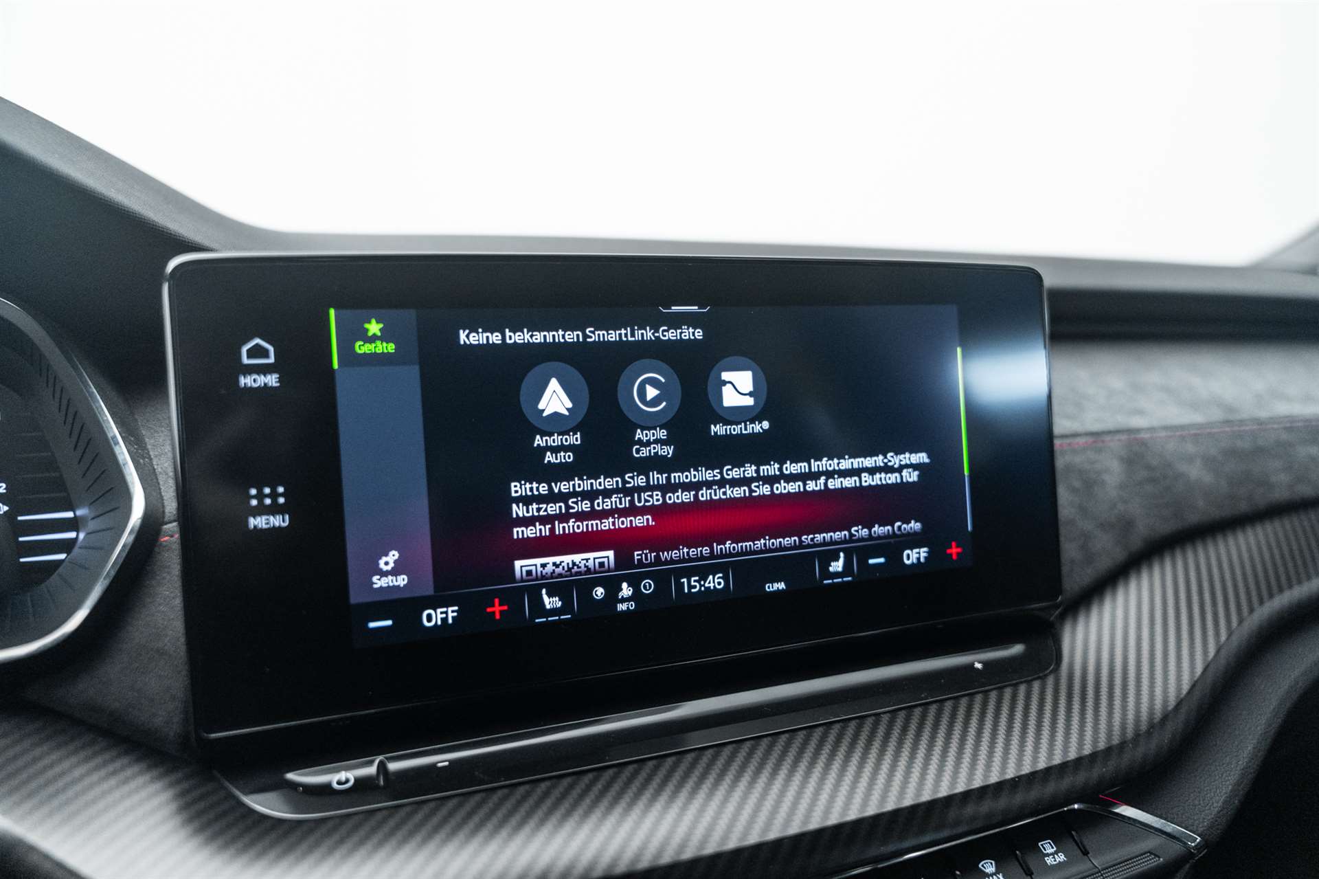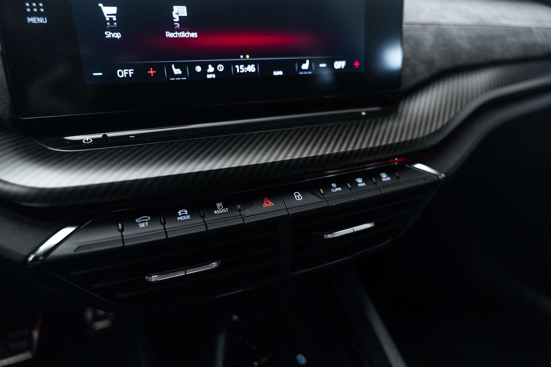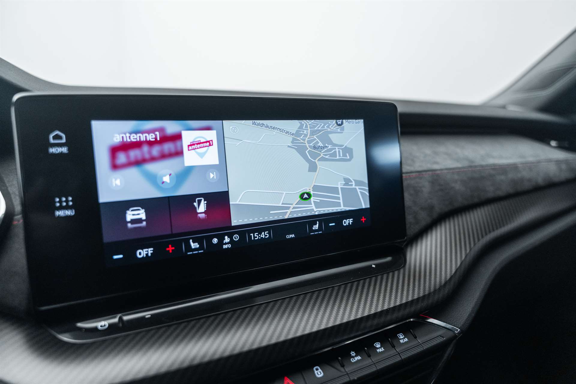 Räder: Leichtmetallräder 7,5 J x 18" "COMET", schwarz mit polierter Oberfläche, Lenkrad: 3-Speichen-Supersport-Leder-Multifunktionslenkrad mit Schaltwippen (DSG), beheizbar, Paket: Simply Clever Paket, SKODA Care: MobilitätPLUS (Ersatzmobilität für die Dauer der Wartung) für 4 Jahre / 100000 km, Vorbereitung für Anhängevorrichtung, Paket: Schlafpaket, 2 spezielle Kopfstütze hinten, Decke, Sonnenschutzrollo für Seitenscheiben hinten-, Lackierung: Metallic-Lackierung, Lackierung: Perleffekt-Lackierung, Alarmanlage mit Innenraumüberwachung und Neigungssensor, Steckdose 230 V, zusätzliche 3 USB C-Anschlüsse, Frontscheibenheizung, SKODA Garantie: Garantie +1 Jahr / 100'000 km, Media: Soundsystem CANTON, SKODA Garantie: Garantie +2 Jahre / 100'000 km (ab 1. Inv.), Paket: Safety Pack RS, Assist: Spurwechselassistent "Side Assist", Assist: Proaktives Insassenschutzsystem "Crew Protect Assistant" vorne und hinten, Assist: Müdigkeitserkennung, Licht: LED-Nebelscheinwerfer mit integrierter Corner Funktion, Airbag: Seitenairbags hinten, Räder: Leichtmetallräder 7,5 J x 19" «ALTAIR», antrazit mit polierter Oberfläche, Lackierung: Sonderlackierung Metallic, Paket: Schlafpaket Premium, 2 spezielle Kopfstütze hinten, Decke, Sonnenschutzrollo für Seitenscheiben hinten-, Berührungsloses Öffnen der Heckklappe (Virtual Pedal) inkl. halbautomatische Kofferraumrollo, Anhängerkupplung, mechanisch anklappbar mit elektrischer Entriegelung, Fahrwerk: Adaptive Fahrwerksregelung "Dynamic Chassis Control" inkl. "Driving Mode Selection", Klima: Standheizung mit Fernbedienung, Panorama-Schiebedach, Paket: mySKODA Pack RS, Phonebox und Wireless Charging, Assist: Adaptiver "Lane Assist", Assist: Spurwechselassistent "Side Assist", Assist: TRAVEL ASSIST: Verkehrszeichenerkennung/Stauassistent und Emergency Assist, WLAN und LTE Antenne für High Speed Internet, Licht: LED-Nebelscheinwerfer mit integrierter Corner Funktion, Assist: Rückfahrkamera, Assist: Predictive Cruise Control (PCC), Tür und Seitenverkleidung mit Regenschirm auf Fahrerseite, Akustikpaket, Ladeboden variabel, SKODA Garantie: Garantie +3 Jahre / 150'000 km (ab 1. Inv.), SKODA Care: Service (Wartung & Verschleiss) für 4 Jahre / 100000 km, SKODA Care: Räder (Radwechsel und Reifenersatz) für 4 Jahre / 100000 km, Paket: Relax Pack RS, Klima: 3-Zonen-Klimatisierungsautomatik, Sitze: Fahrer- und Beifahrersitz elektrisch einstellbar, mit Memoryfunktion, Netzprogramm und Cargoelemente, Sitze: Vorder- und Rücksitze Beheizbar, Sitze: Ergositze RS inkl. Sitzbezüge Alcantara/Leder, SKODA Care: ServicePLUS (Wartung, Verschleiss & Flüssigkeiten) für 4 Jahre / 100000 km, SKODA Care: RäderPLUS (Radwechsel, Reifenersatz und Radeinlagerung) für 4 Jahre / 100000 km, SKODA Care: Reifen (Reifenwechsel und Reifenersatz) für 4 Jahre / 100000 km, SKODA Care: ReifenPLUS (Reifenwechsel, Reifenersatz und Reifeneinlagerung) für 4 Jahre / 100000 km