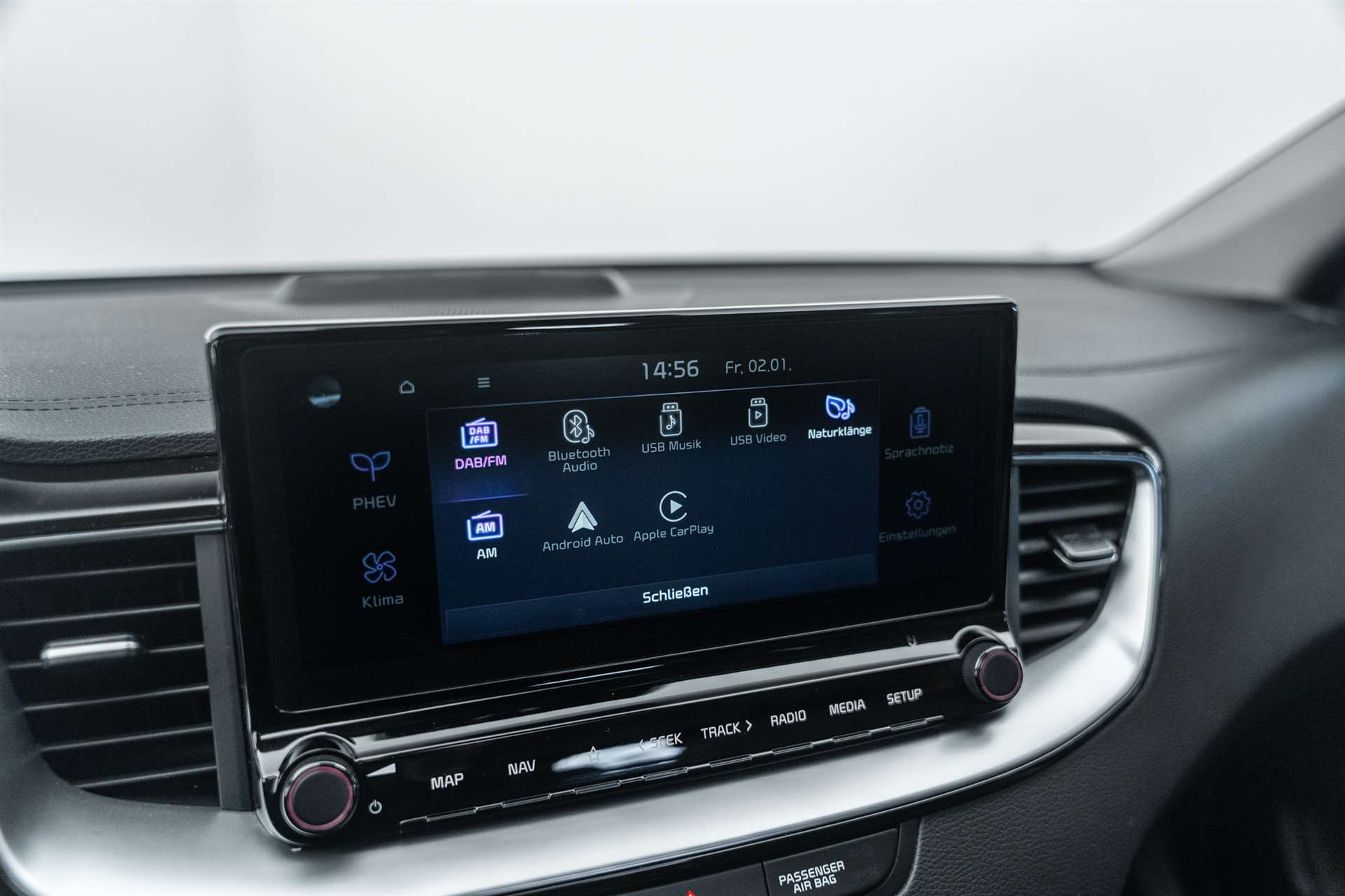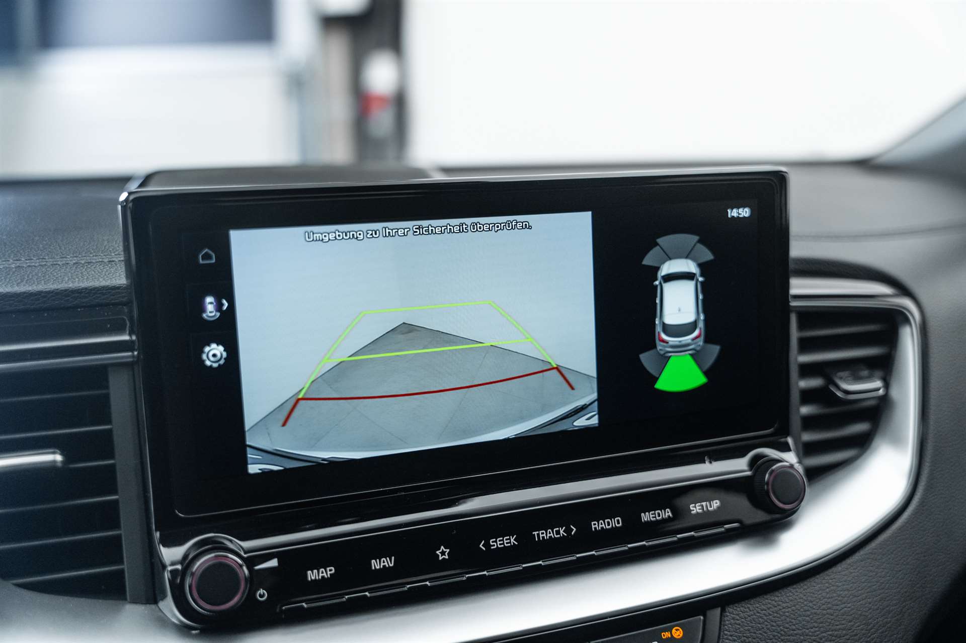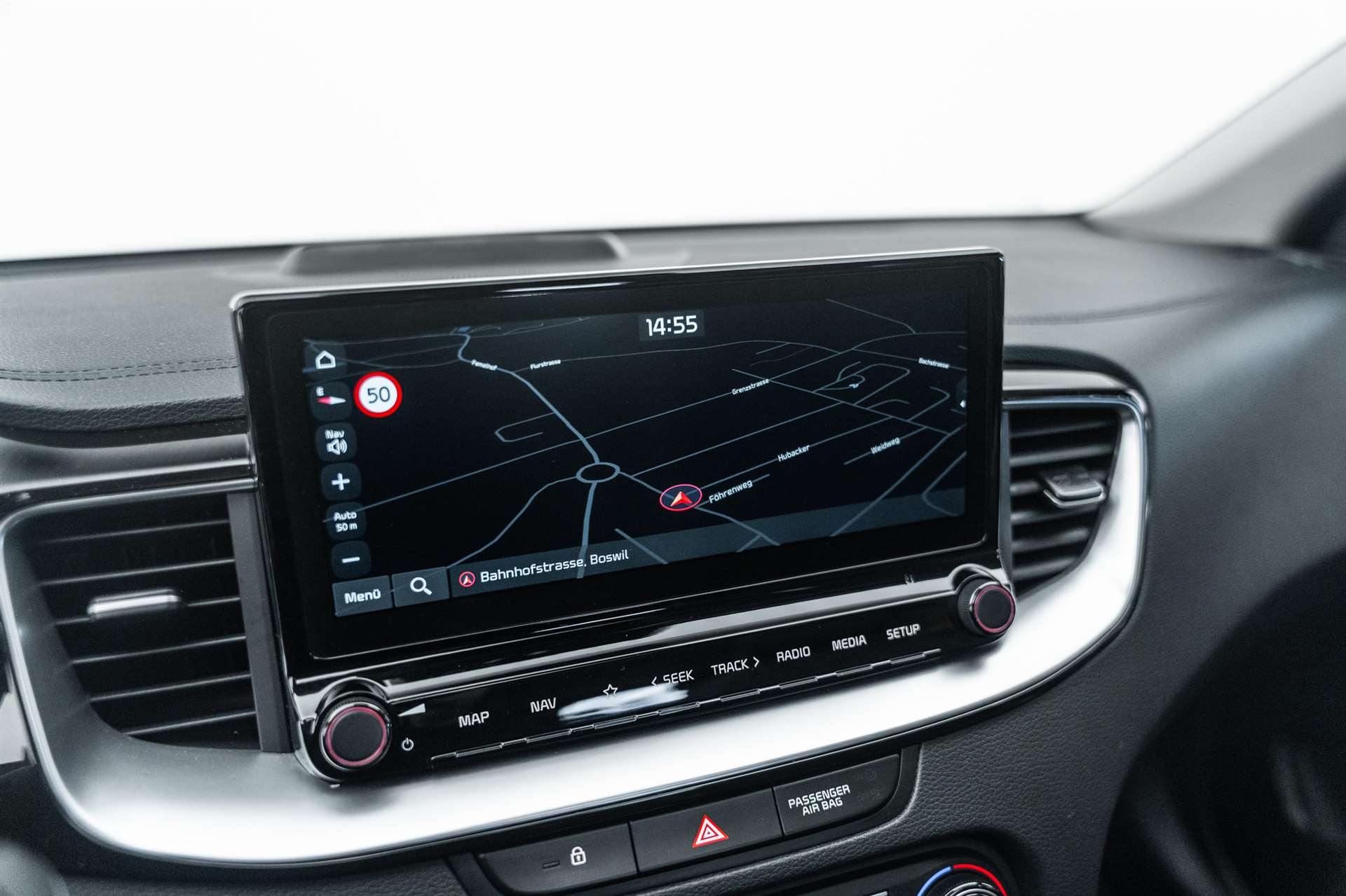 3-Punkt-Sicherheitsgurte an allen Sitzplätzen, vorn höhenverstellbar, Airbag: Airbag Fahrer und Beifahrer inkl. Seitenairbags, Airbag: Knie-Airbag, Airbag: Kopfairbags (Vorhang) vorn und hinten, Antiblockiersystem (ABS) mit elektronischer Bremskraftverteilung (EBD), Assist: Aktiv Bremslicht (ESS), Assist: Anzeige Tempolimit, Assist: Automatische Parkhilfe, Assist: Autonomer Bremsassistent (BAS), Fahrzeug- und Fussgängererkennung, Assist: Berganfahrassistent (HAC), Assist: Fernlicht-Assistent, Assist: Lichtsensor, Assist: Müdigkeitserkennung, Assist: Parksensoren hinten, Assist: Parksensoren vorn, Assist: Rear Cross Traffic Alert, Assist: Spurhalteassistent, Assist: Tempomat mit Distanzassistent, Assist: Totwinkel-Assistent, Aussenspiegel elektrisch verstell- und beheizbar, Dachreling, Drehzahlmesser, Elektrische Handbremse, Elektrische Heckklappe, Elektronisches Stabilitätsprogramm (ESC) / elektronische Traktionskontrolle (TCS), Fensterheber elektrisch vorn und hinten, Getönte Scheiben / Solarglas, Getriebe: 6-Gang DSG, Gurtstraffer und Gurtkraftbegrenzer vorn, Heckscheibenheizung, Heckscheibenwischer, Innenrückspiegel automatisch abblendbar, Katalysator geregelt mit Partikelfilter, Klima: 2-Zonen-Klima-Automatik, Kofferraumabdeckung (Rollo), Kopfstützen hinten höhenverstellbar, Kopfstützen vorne höhenverstellbar, Lackierung: Uni Lackierung, Ladeanschluss Typ2 inkl. Ladekabel, Lenkrad: GT-Line Lenkrad mit Schaltwippen, Lenkrad: Lenkrad höhen- und tiefenverstellbar, Lenkrad: Lenkradheizung, Licht: Drittes Bremslicht, Licht: LED Heckleuchten, Licht: LED-Scheinwerfer, Licht: LED-Tagfahrlicht, Media: 6 Lautsprecher, Media: Android Auto und Apple CarPlay, Media: Bluetooth, Media: Induktive Ladevorrichtung für Smartphone, Media: Instrumentenanzeige Supervision Digital 12.3", Media: KIA Connected, Media: Navigationssystem 10.25" mit DAB+ und Rückfahrkamera, Media: USB-Anschluss vorne, Polster: Sitzbezüge Stoff/Leder, Privacy-Verglasung, Räder: 4 Leichtmetallfelgen 6,5 J × 16", Räder: Reifendruckkontrollsystem (TPMS), Räder: Tire mobility kit, Regensensor, Servolenkung mit elektrischer Lenkunterstützung, Sitze: Fahrersitz höhenverstellbar, Sitze: ISOFIX-Kindersitzverankerung hinten, Sitze: Mittelarmlehne vorn mit Ablagefach, Sitze: Sitzheizung hinten, Sitze: Sitzheizung vorne, Sitze: Sitzlehne der 2. Sitzreihe umklappbar, asymmetrisch 60:40, Sonnenblende mit Make-up-Spiegel mit Beleuchtung, Start-/Stop-Knopf mit Smart Key, Türgriffe aussen in Chrom, Wegfahrsperre elektronisch, Zentralverriegelung mit Fernbedienung