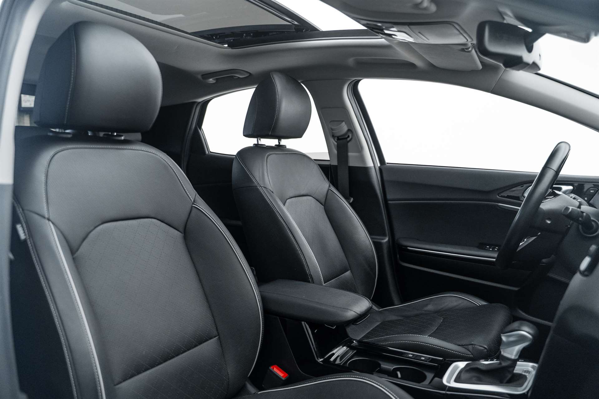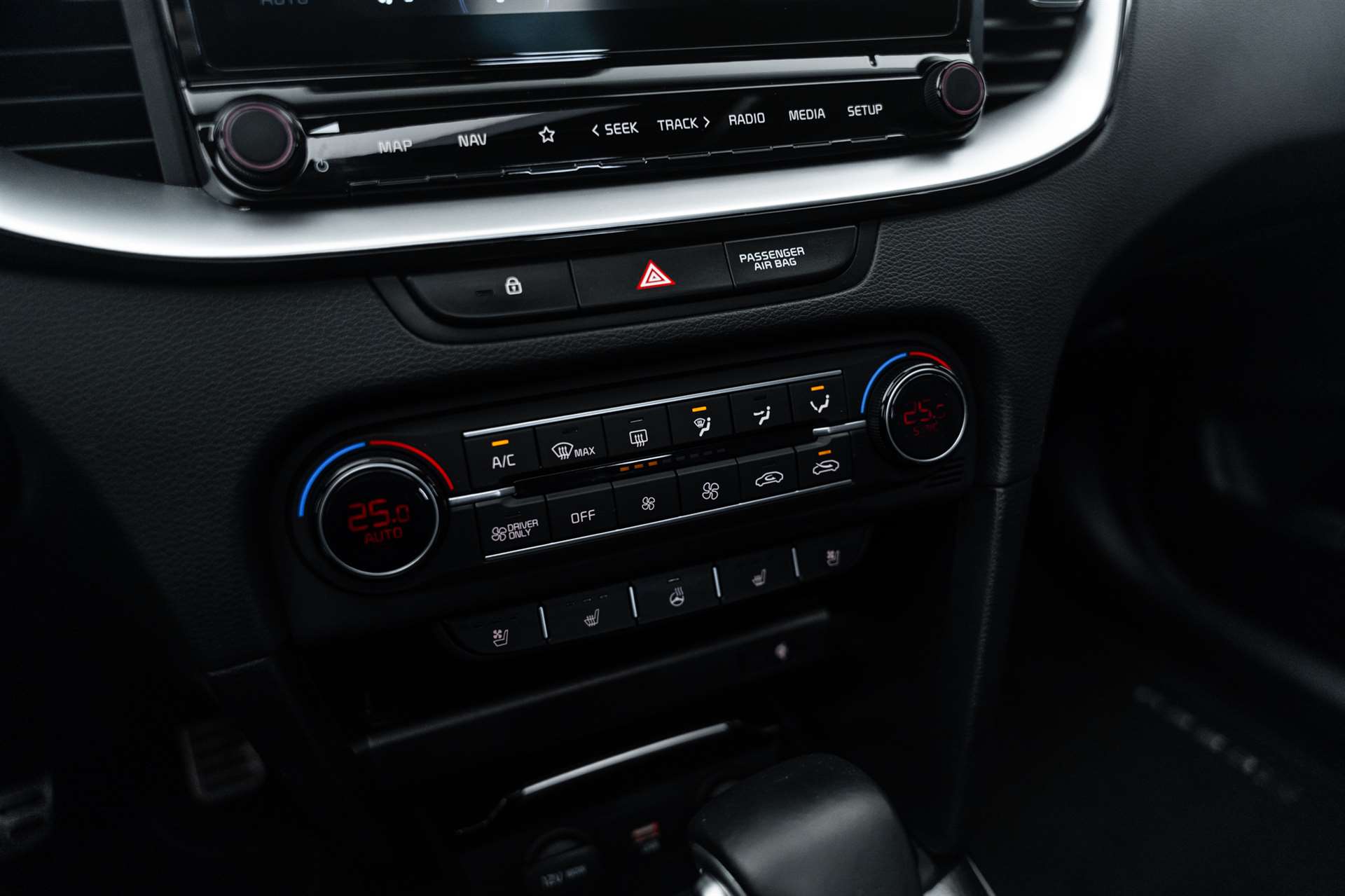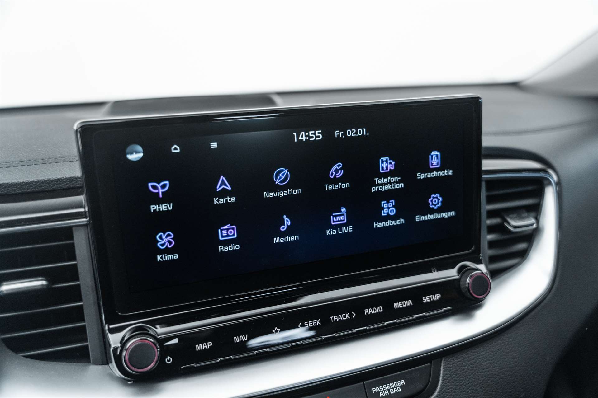 3-Punkt-Sicherheitsgurte an allen Sitzplätzen, vorn höhenverstellbar, Airbag: Airbag Fahrer und Beifahrer inkl. Seitenairbags, Airbag: Knie-Airbag, Airbag: Kopfairbags (Vorhang) vorn und hinten, Antiblockiersystem (ABS) mit elektronischer Bremskraftverteilung (EBD), Assist: Aktiv Bremslicht (ESS), Assist: Anzeige Tempolimit, Assist: Automatische Parkhilfe, Assist: Autonomer Bremsassistent (BAS), Fahrzeug- und Fussgängererkennung, Assist: Berganfahrassistent (HAC), Assist: Fernlicht-Assistent, Assist: Lichtsensor, Assist: Müdigkeitserkennung, Assist: Parksensoren hinten, Assist: Parksensoren vorn, Assist: Rear Cross Traffic Alert, Assist: Spurhalteassistent, Assist: Tempomat mit Distanzassistent, Assist: Totwinkel-Assistent, Aussenspiegel elektrisch verstell- und beheizbar, Dachreling, Drehzahlmesser, Elektrische Handbremse, Elektrische Heckklappe, Elektronisches Stabilitätsprogramm (ESC) / elektronische Traktionskontrolle (TCS), Fensterheber elektrisch vorn und hinten, Getönte Scheiben / Solarglas, Getriebe: 6-Gang DSG, Gurtstraffer und Gurtkraftbegrenzer vorn, Heckscheibenheizung, Heckscheibenwischer, Innenrückspiegel automatisch abblendbar, Katalysator geregelt mit Partikelfilter, Klima: 2-Zonen-Klima-Automatik, Kofferraumabdeckung (Rollo), Kopfstützen hinten höhenverstellbar, Kopfstützen vorne höhenverstellbar, Lackierung: Uni Lackierung, Ladeanschluss Typ2 inkl. Ladekabel, Lenkrad: GT-Line Lenkrad mit Schaltwippen, Lenkrad: Lenkrad höhen- und tiefenverstellbar, Lenkrad: Lenkradheizung, Licht: Drittes Bremslicht, Licht: LED Heckleuchten, Licht: LED-Scheinwerfer, Licht: LED-Tagfahrlicht, Media: 6 Lautsprecher, Media: Android Auto und Apple CarPlay, Media: Bluetooth, Media: Induktive Ladevorrichtung für Smartphone, Media: Instrumentenanzeige Supervision Digital 12.3", Media: KIA Connected, Media: Navigationssystem 10.25" mit DAB+ und Rückfahrkamera, Media: USB-Anschluss vorne, Polster: Sitzbezüge Stoff/Leder, Privacy-Verglasung, Räder: 4 Leichtmetallfelgen 6,5 J × 16", Räder: Reifendruckkontrollsystem (TPMS), Räder: Tire mobility kit, Regensensor, Servolenkung mit elektrischer Lenkunterstützung, Sitze: Fahrersitz höhenverstellbar, Sitze: ISOFIX-Kindersitzverankerung hinten, Sitze: Mittelarmlehne vorn mit Ablagefach, Sitze: Sitzheizung hinten, Sitze: Sitzheizung vorne, Sitze: Sitzlehne der 2. Sitzreihe umklappbar, asymmetrisch 60:40, Sonnenblende mit Make-up-Spiegel mit Beleuchtung, Start-/Stop-Knopf mit Smart Key, Türgriffe aussen in Chrom, Wegfahrsperre elektronisch, Zentralverriegelung mit Fernbedienung