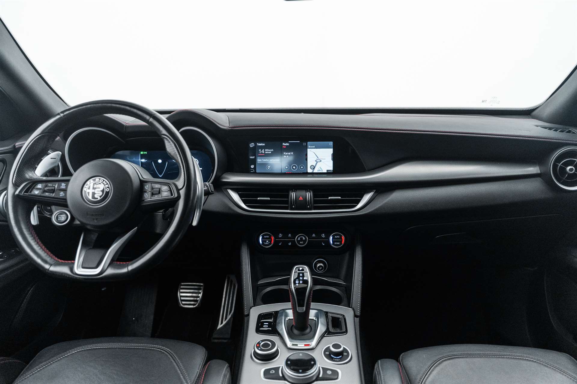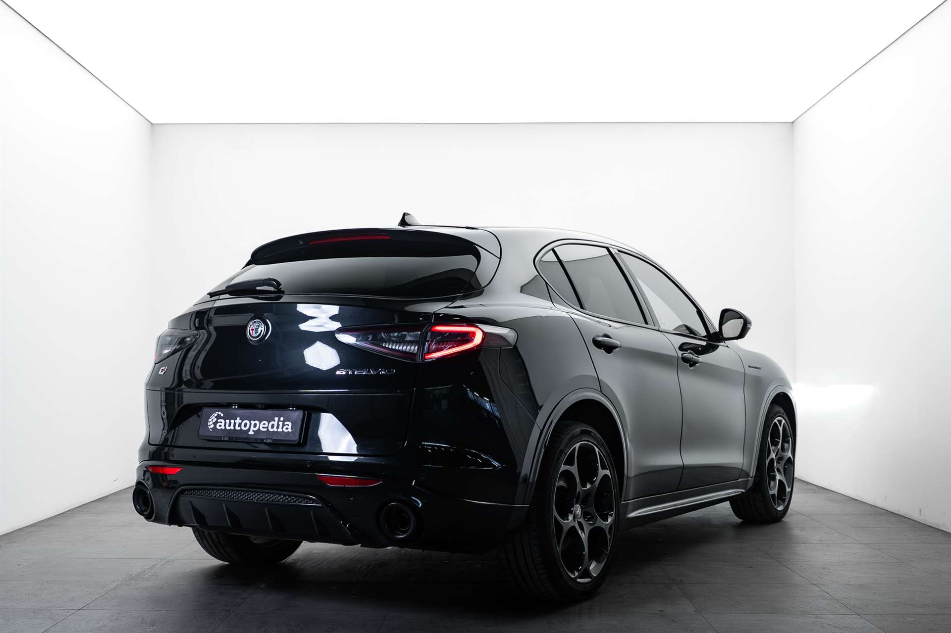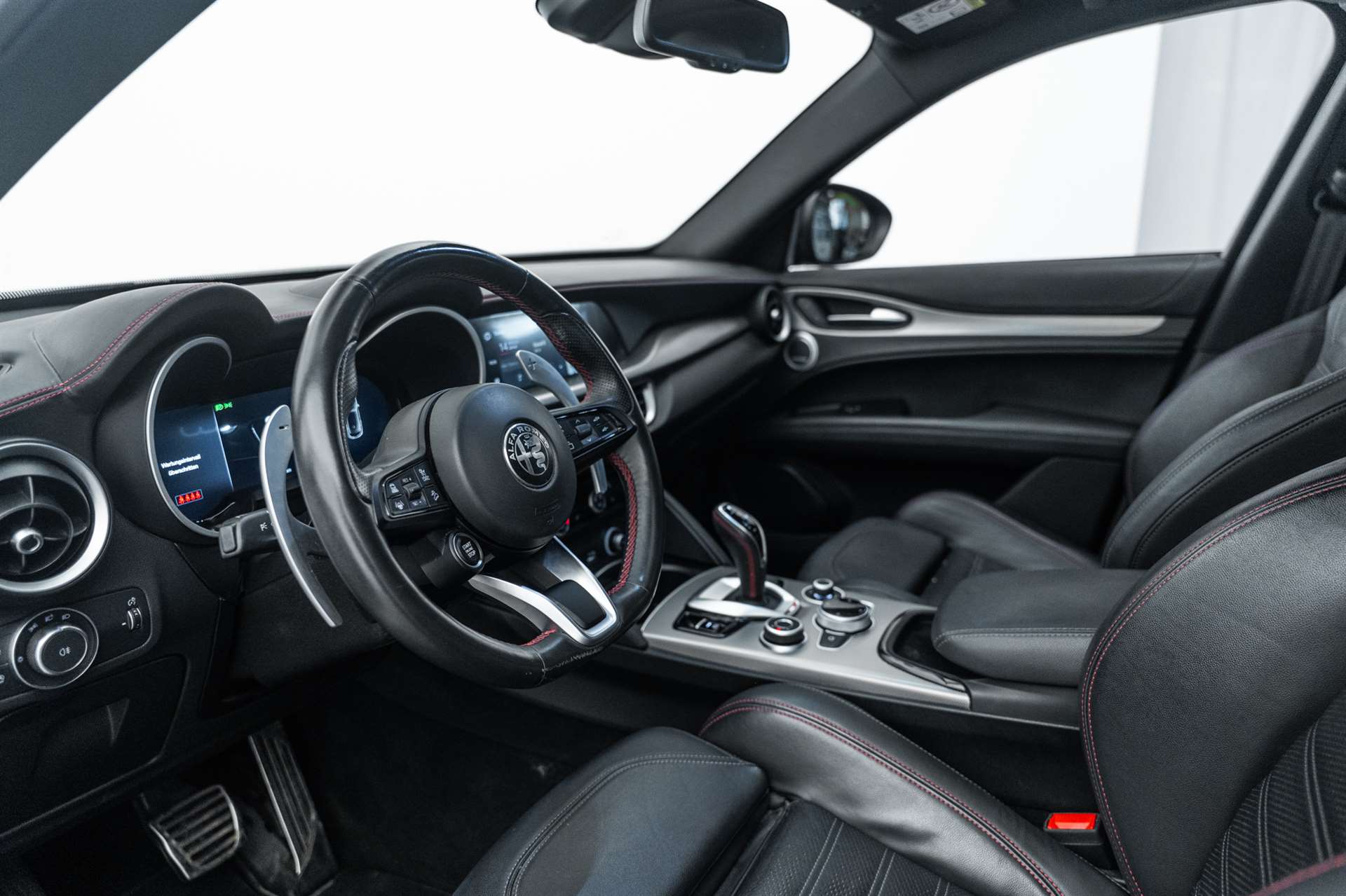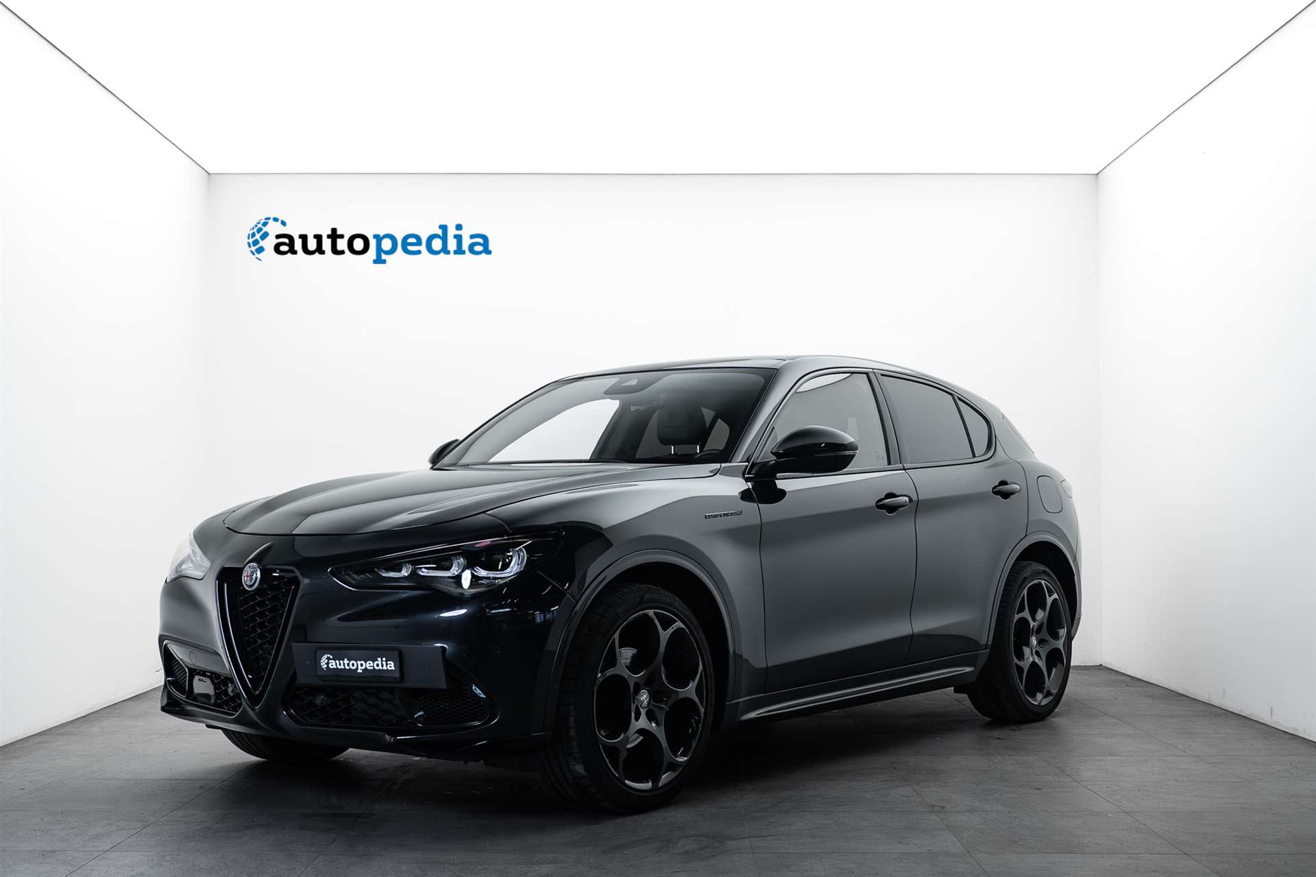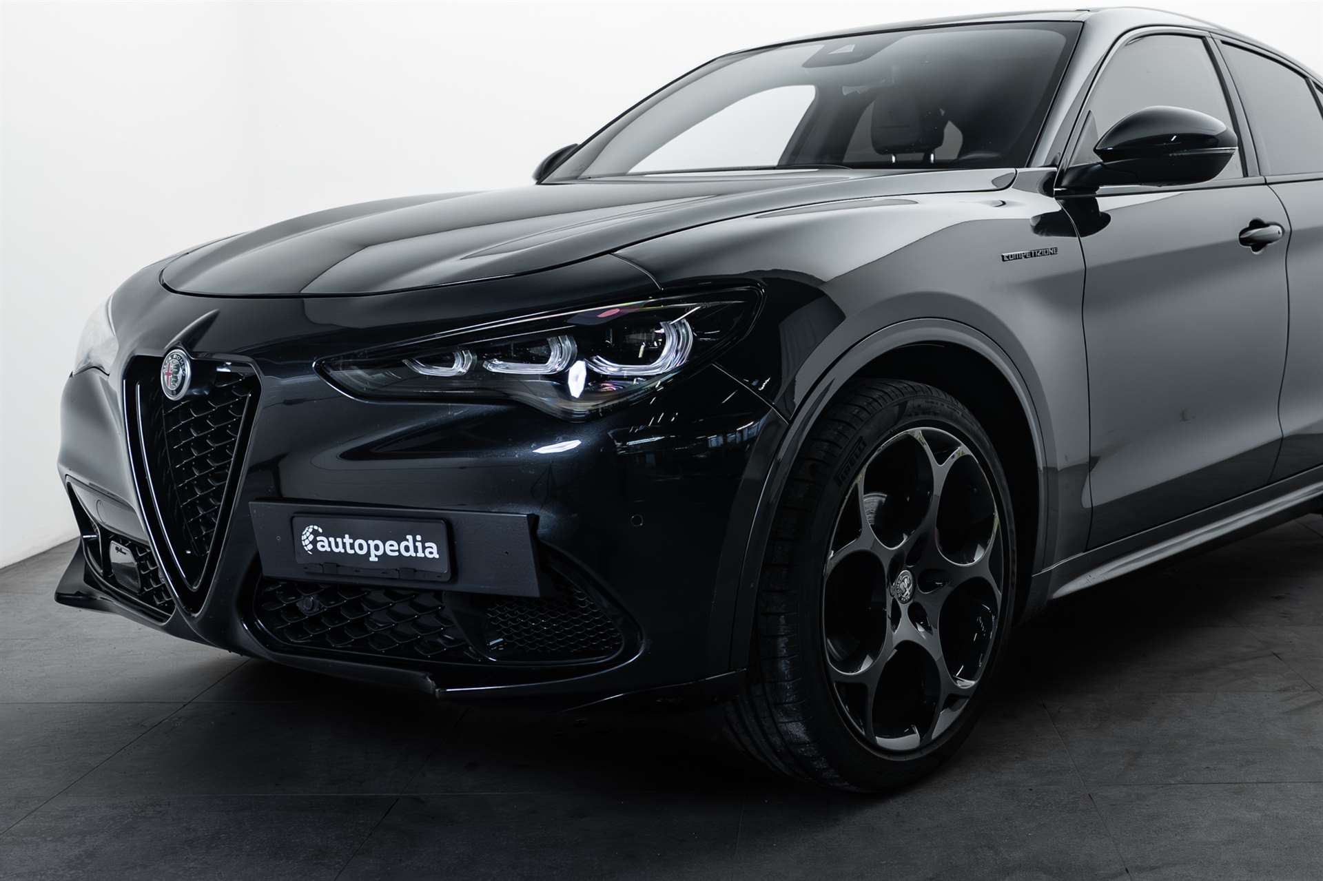 12 Volt-Steckdose im Laderaum, 230V/50Hz Zusatzsteckdose im Kofferaum, 3-Punkt-Sicherheitsgurte auf allen Plätzen, ABS, Air Quality System (AQS), Airbag: Airbag Beifahrer deaktivierbar, Airbag: Airbag Fahrer und Beifahrer, Airbag: Seitenairbag für Fahrer und Beifahrer, Airbag: Window-Kopfairbags, Alfa Romeo Fussmatten vorne/hinten, Armaturenbrett aus Leder, Assist: Adaptiver Tempomat mit Stoppfunktion, Assist: Aktiver Totwinkel-Assistent, Assist: Aufmerksamkeitsassistent, Assist: Autonome Notbremsung (AEB), Assist: Highway Assist System (HAS) Autobahn Assistent, Assist: Intelligente Geschwindigkeitskontrolle mit Erkennung von Strassenbegrenzungen, Assist: Intelligente Verkehrszeichenerkennung, Assist: Parksensoren vorne und hinten, Assist: Passiver Spurhalteassistent, Assist: Rückfahrkamera, Assist: Traffic Jam Assist, Auspuffendrohre Matt-dunkle, Aussenspiegel elektrisch einklappbar, Aussenspiegel in schwarz, Beleuchtete Türgriffe, Body-Kit in Aussenfarbe, Bordcomputer, Bremssättel rot lackiert, Dachhimmel schwarz, Dekor: Badge Competizione, Dekor: Schwarzglänzende Fensterrahmen, Drehzahlmesser, Elektrische Heckklappe, sensorgesteuert, Elektrische Servolenkung mit Dynamic Steering Torque, Elektrisches Panorama-Schiebedach, Elektronisches Stabilitäts-Programm, Fahrwerk: Alfa Active Suspension Fahrwerk mit elektronischer Stossdämpferregelung, Fahrwerk: Alfa Romeo D.N.A - Fahrdynamikregelung, Fahrwerk: Allradantrieb Alfa Q4 Verteilergetriebe, Fahrwerk: Antriebswelle aus Kohlefaser, Fahrwerk: Differenzialsperre, Garantie: 3 Jahre Lackgarantie, Garantie: 5 Jahre / 200 000 km Vollgarantie Alfa Romeo auf Teile und Arbeit, Garantie: 5 Jahre Swiss Free Service oder 100'000 km, Garantie: 8 Jahre Antikorrosions-Garantie, Getriebe: 8-Stufen-Automat sequentiell, Heckscheiben-Wisch-/Waschanlage, Heckscheibenheizung, Hintere Belüftungsdüsen, Innenspiegel automatisch abblendbar, Katalysator geregelt mit Otto-Partikelfilter, Keyless Entry / -Start, Klima: 2-Zonen-Klimaautomatik, Kofferraum-Abdeckung, Lackierung: Uni-Lackierung, Lenkrad: Lenkrad beheizbar, Lenkrad: Schaltwippen aus Aluminium, Lenkrad: Sport-Lederlenkrad mit schwarzen Nähten und schwarzem Startknopf, Licht: Drittes Bremslicht, Licht: Fernlichtassistent High Beam, Licht: LED Innenbeleuchtung, Licht: Nebelschlussleuchte, Licht: Voll-Matrix-LED-Scheinwerfer mit automatischer adaptiver Ausleuchtung, Media: 8,8" Farbiges Multitouch-Display mit Navigationssystem, Media: Alfa Connect Services, Media: Connected / Android Auto / Apple CarPlay, Media: Harman Kardon Soundsystem, Media: Instrumententafel mit 12,3’’-TFT- anpassbare Farbbildschirm, Media: Kabelloses Apple Car Play / Android Auto, Media: Kabelloses Ladepad, Media: Radio Dab+, Media: USB-Anschlüsse hinten (Typ A/C), Media: USB-C Anschluss im Frontfach mit Lade und Datenfunktion, Media: USB+AUX-Anschluss in Der Armlehne, Polster: Sport-Ledersitze, Räder: 21"-Leichtmetallfelgen QUADRIFOGLIO STYLE DARK, Räder: Reifendruck-Kontrollanzeige, Räder: Reifenreparaturset (Kit Fix&Go), Regen- und Dämmerungssensor, Rücksitzlehne mit 3 Kopfstützen, Schalthebelknauf in Leder, Scheibenwaschdüsen beheizt, Schwellerverkleidung verchromt, Sitze: Beifahrersitz 6-fach elektrisch verstellbar, Sitze: Fahrersitz 6-fach elektrisch verstellbar, Sitze: Kopfstützen hinten, Sitze: Kopfstützen vorne höhenverstellbar, Sitze: Umklappbare Rücksitzbank im Verhältnis 40 / 20 / 40, Sitze: Vordersitze heizbar, Sonnenblende Fahrer und Beifahrerseite mit beleuchtetem Spiegel, Sportpedale in Aluminium inkl. Fussstütze, Start/Stop-Funktion, V-Grill "Scudetto" in Anthrazit, Veloce Unterfahrschutz, Wegfahrsperre elektronisch, Zentralverriegelung