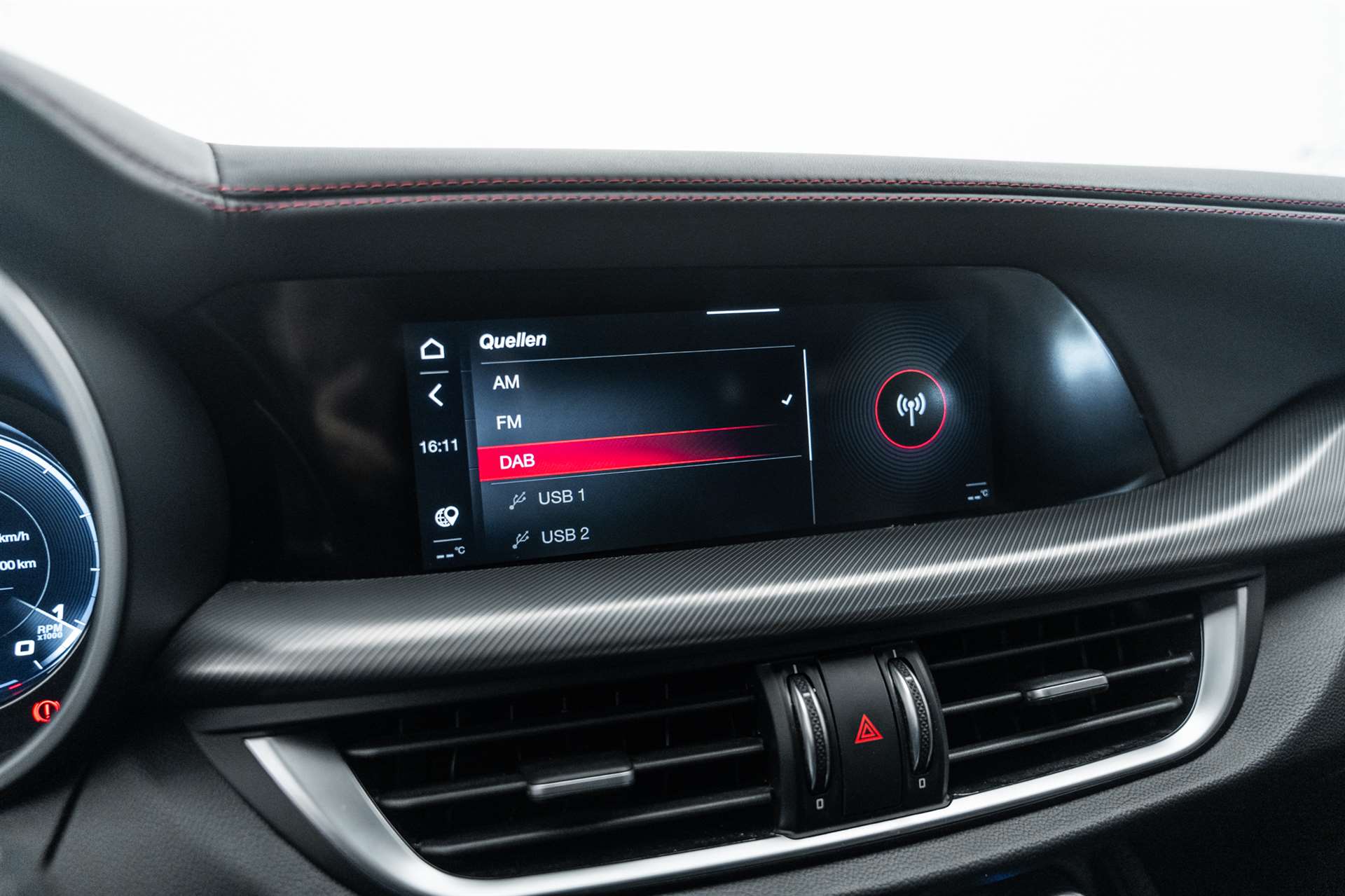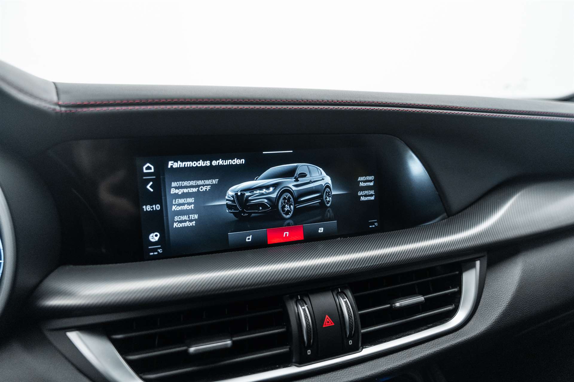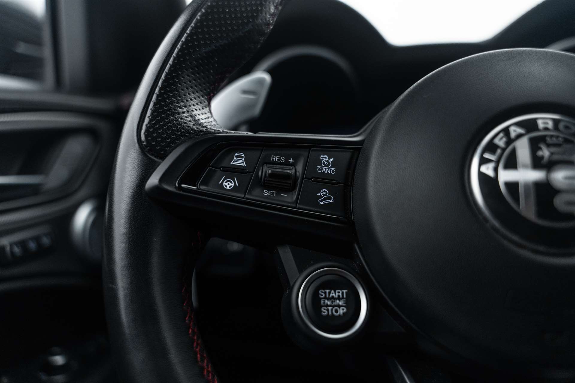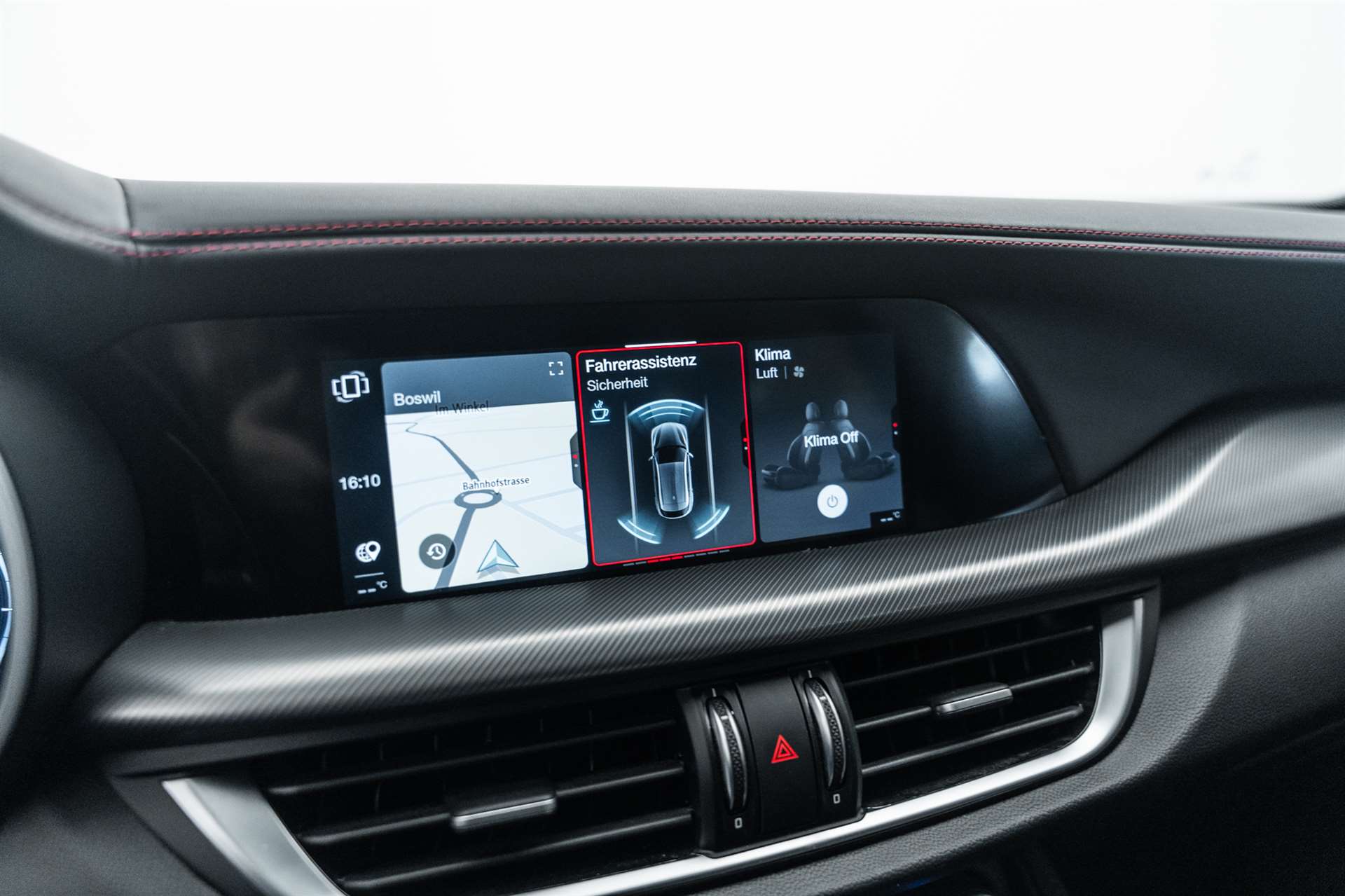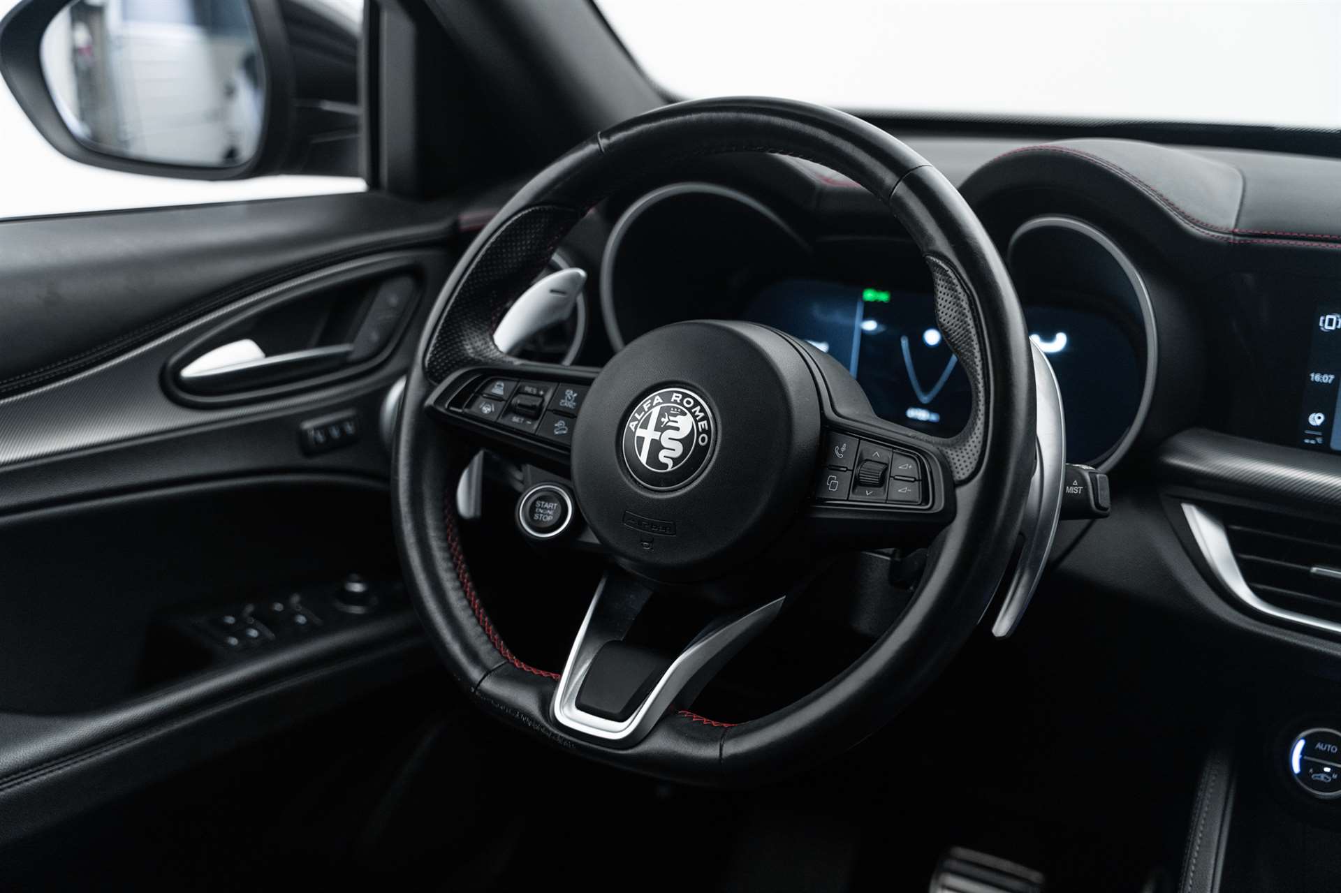 12 Volt-Steckdose im Laderaum, 230V/50Hz Zusatzsteckdose im Kofferaum, 3-Punkt-Sicherheitsgurte auf allen Plätzen, ABS, Air Quality System (AQS), Airbag: Airbag Beifahrer deaktivierbar, Airbag: Airbag Fahrer und Beifahrer, Airbag: Seitenairbag für Fahrer und Beifahrer, Airbag: Window-Kopfairbags, Alfa Romeo Fussmatten vorne/hinten, Armaturenbrett aus Leder, Assist: Adaptiver Tempomat mit Stoppfunktion, Assist: Aktiver Totwinkel-Assistent, Assist: Aufmerksamkeitsassistent, Assist: Autonome Notbremsung (AEB), Assist: Highway Assist System (HAS) Autobahn Assistent, Assist: Intelligente Geschwindigkeitskontrolle mit Erkennung von Strassenbegrenzungen, Assist: Intelligente Verkehrszeichenerkennung, Assist: Parksensoren vorne und hinten, Assist: Passiver Spurhalteassistent, Assist: Rückfahrkamera, Assist: Traffic Jam Assist, Auspuffendrohre Matt-dunkle, Aussenspiegel elektrisch einklappbar, Aussenspiegel in schwarz, Beleuchtete Türgriffe, Body-Kit in Aussenfarbe, Bordcomputer, Bremssättel rot lackiert, Dachhimmel schwarz, Dekor: Badge Competizione, Dekor: Schwarzglänzende Fensterrahmen, Drehzahlmesser, Elektrische Heckklappe, sensorgesteuert, Elektrische Servolenkung mit Dynamic Steering Torque, Elektrisches Panorama-Schiebedach, Elektronisches Stabilitäts-Programm, Fahrwerk: Alfa Active Suspension Fahrwerk mit elektronischer Stossdämpferregelung, Fahrwerk: Alfa Romeo D.N.A - Fahrdynamikregelung, Fahrwerk: Allradantrieb Alfa Q4 Verteilergetriebe, Fahrwerk: Antriebswelle aus Kohlefaser, Fahrwerk: Differenzialsperre, Garantie: 3 Jahre Lackgarantie, Garantie: 5 Jahre / 200 000 km Vollgarantie Alfa Romeo auf Teile und Arbeit, Garantie: 5 Jahre Swiss Free Service oder 100'000 km, Garantie: 8 Jahre Antikorrosions-Garantie, Getriebe: 8-Stufen-Automat sequentiell, Heckscheiben-Wisch-/Waschanlage, Heckscheibenheizung, Hintere Belüftungsdüsen, Innenspiegel automatisch abblendbar, Katalysator geregelt mit Otto-Partikelfilter, Keyless Entry / -Start, Klima: 2-Zonen-Klimaautomatik, Kofferraum-Abdeckung, Lackierung: Uni-Lackierung, Lenkrad: Lenkrad beheizbar, Lenkrad: Schaltwippen aus Aluminium, Lenkrad: Sport-Lederlenkrad mit schwarzen Nähten und schwarzem Startknopf, Licht: Drittes Bremslicht, Licht: Fernlichtassistent High Beam, Licht: LED Innenbeleuchtung, Licht: Nebelschlussleuchte, Licht: Voll-Matrix-LED-Scheinwerfer mit automatischer adaptiver Ausleuchtung, Media: 8,8" Farbiges Multitouch-Display mit Navigationssystem, Media: Alfa Connect Services, Media: Connected / Android Auto / Apple CarPlay, Media: Harman Kardon Soundsystem, Media: Instrumententafel mit 12,3’’-TFT- anpassbare Farbbildschirm, Media: Kabelloses Apple Car Play / Android Auto, Media: Kabelloses Ladepad, Media: Radio Dab+, Media: USB-Anschlüsse hinten (Typ A/C), Media: USB-C Anschluss im Frontfach mit Lade und Datenfunktion, Media: USB+AUX-Anschluss in Der Armlehne, Polster: Sport-Ledersitze, Räder: 21"-Leichtmetallfelgen QUADRIFOGLIO STYLE DARK, Räder: Reifendruck-Kontrollanzeige, Räder: Reifenreparaturset (Kit Fix&Go), Regen- und Dämmerungssensor, Rücksitzlehne mit 3 Kopfstützen, Schalthebelknauf in Leder, Scheibenwaschdüsen beheizt, Schwellerverkleidung verchromt, Sitze: Beifahrersitz 6-fach elektrisch verstellbar, Sitze: Fahrersitz 6-fach elektrisch verstellbar, Sitze: Kopfstützen hinten, Sitze: Kopfstützen vorne höhenverstellbar, Sitze: Umklappbare Rücksitzbank im Verhältnis 40 / 20 / 40, Sitze: Vordersitze heizbar, Sonnenblende Fahrer und Beifahrerseite mit beleuchtetem Spiegel, Sportpedale in Aluminium inkl. Fussstütze, Start/Stop-Funktion, V-Grill "Scudetto" in Anthrazit, Veloce Unterfahrschutz, Wegfahrsperre elektronisch, Zentralverriegelung