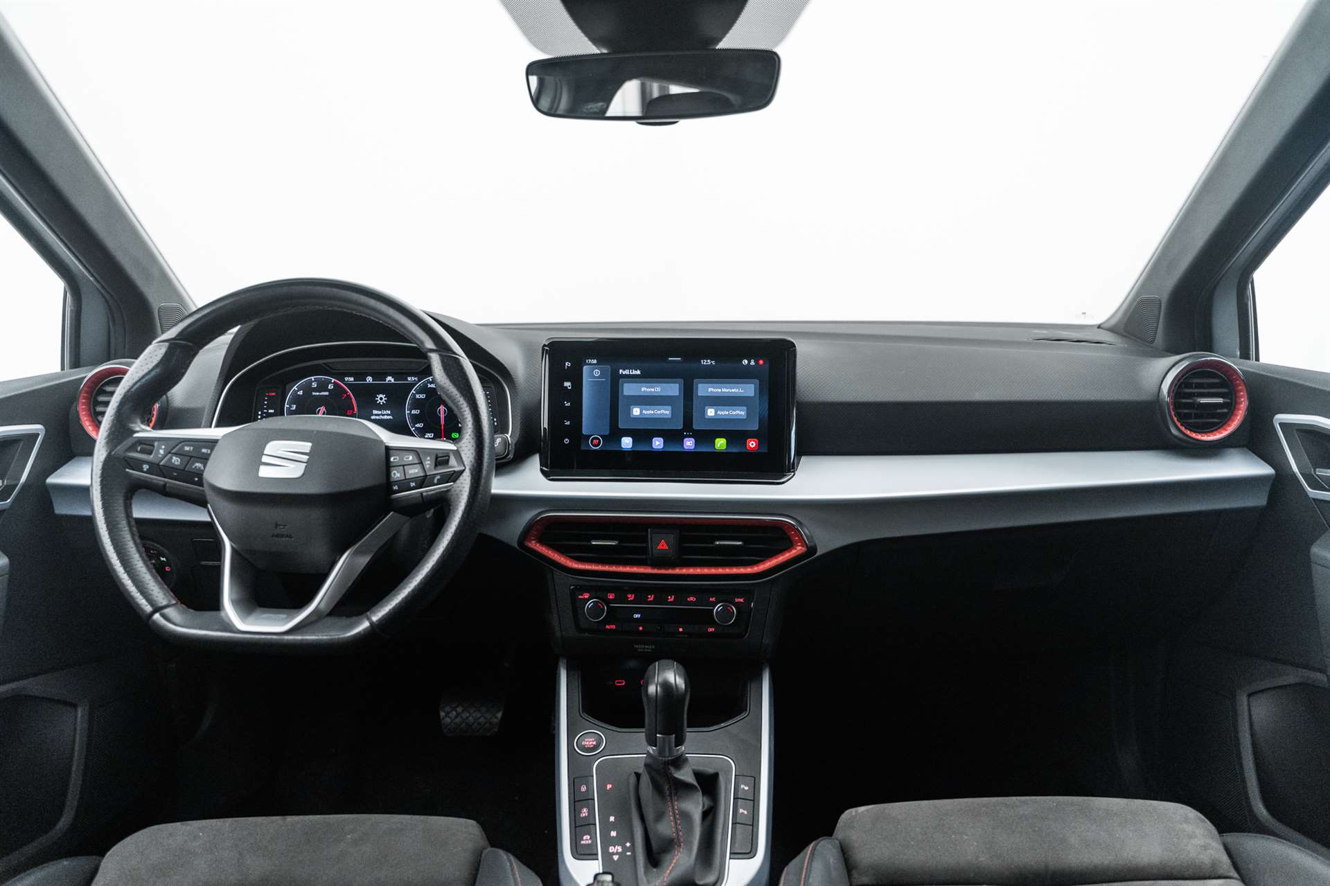 3-Punkt-Sicherheitsgurte auf allen Plätzen, 8.0" Digital Cockpit, 8.25'' Farbdisplay, Abgedunkelte Scheiben ab B-Säule hinten, Airbag: Beifahrerairbag deaktivierbar, Airbag: Fahrer und Beifahrer Airbag, Airbag: Seitenairbags und Kopfairbags vorne, Antiblockiersystem (ABS), Assist: Aufmerksamkeits- und Müdigkeitserkennung (ADA), Assist: Berganfahrhilfe (Hill Holder), Assist: Einparkhilfe hinten, Assist: Front-Assist, Assist: Licht- und Regensensor, Assist: Müdigkeitserkennung, Assist: Multifunktionskamera, Assist: Multikollisionsbremse, Assist: Spurhalteassistent Lane Assist, Assist: Tempomat, Assist: Traffic sign recognition (Verkehrszeichenerkennung), Aussenspiegel in Dachlackierung und Türgriffe in Wagenfarbe, Aussenspiegel rechts und links beheizt, elektrisch verstell-/ und einklappbar, Dach in Bicolor, Dachhimmel schwarz, Dachreling silber, Dekor: Dashbord in silber matt, Elektrische Fensterheber vorne und, Elektronische Differentialsperre (XDS), Elektronisches Stabilitäts-Programm, Fussmatten vorne und hinten, Getriebe: 7-Gang DSG, Heckscheiben-Wisch-Waschanlage mit Intervall, Heckscheibenheizung, Innenspiegel automatisch abblendbar, Katalysator geregelt, Kindersitzverankerung ISOFIX mit TopTether Vorbereitung (äussere Plätze hinten), Klima: 2-Zonen Climatronic, Lackierung: Uni-Lackierung, Lenkrad: Ledermultifunktionslenkrad, Lenkrad: Schaltwippen am Lenkrad für DSG, Licht: Bremslicht Drittes, Licht: Coming Leaving Home Funktion, Licht: Eco-LED Scheinwerfer, Licht: LED Heckleuchten, Licht: Nebelschlussleuchte, Licht: Tagfahrlicht, Luftausströmer beleuchtet weiss und rot (links und rechts), Luftausströmer in rot, Media: DAB+ (Digital Audio Broadcasting), Media: Lautsprecher 6, Media: Mobiltelefon Freisprecheinrichtung Bluetooth, Media: SEAT Connect Safety & Services für Media System, Media: SEAT FullLink, Media: SEAT Media System, Media: USB-Anschluss Typ C, Multifunktionsanzeige Medium, Paket: Komfortpaket, Polster: Stoff, Räder: Leichtmetallräder 6.5J x 17", "DYNAMIC", Räder: Reifendruckkontrollsystem, Scheibenbremsen hinten, Schriftzug "Handwriting-Optik", SEAT Drive Profile, Servolenkung, Sitze: Kopfstützen vorne und hinten, Sitze: Rücksitzlehne geteilt abklappbar, Sitze: Vordersitze höhenverstellbar, Wärmeschutzverglasung, Wegfahrsperre elektronisch, Zentralverriegelung mit Fernbedienung, Zierleisten Seitenfenster mit Alueinfassung glänzend