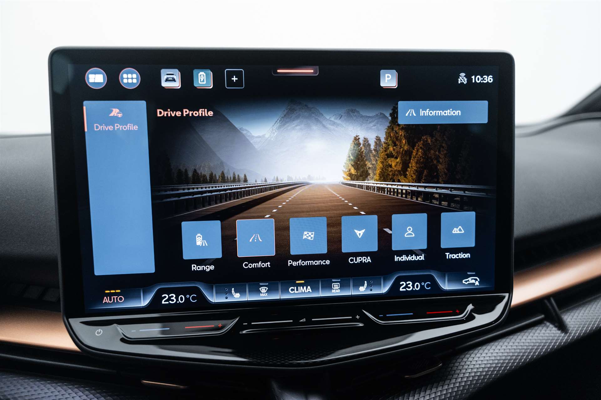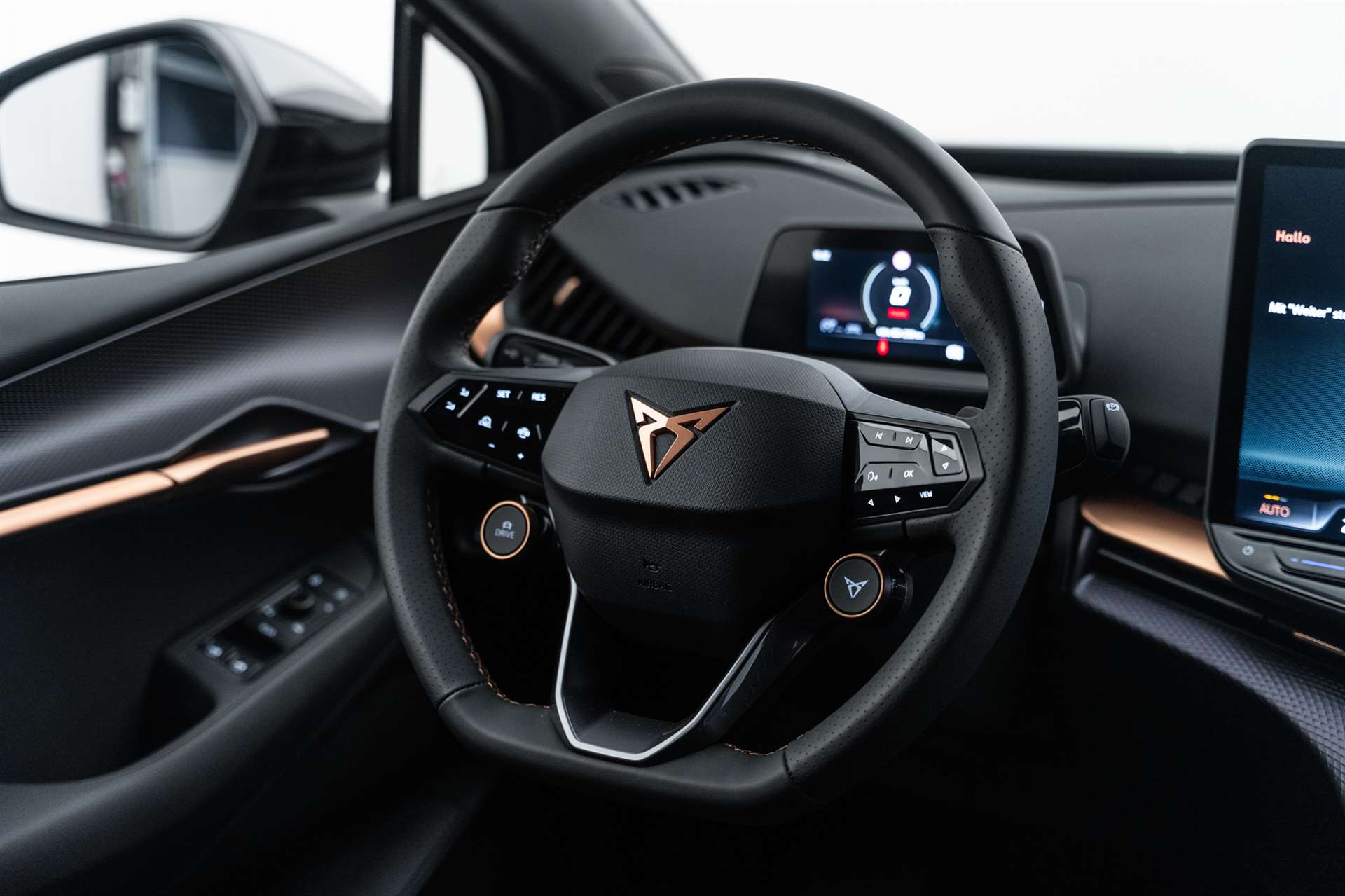 5.3" Full Digital Cockpit, Abgedunkelte Scheiben ab B-Säule hinten, ABS, Airbag: Airbag Beifahrer deaktivierbar, Airbag: Airbag Fahrer und Beifahrer, Airbag: Seitenairbags für Fahrer und Beifahrer, Alarmanlage mit Innenraumüberwachung, Allradantrieb permanent, Assist: Aufmerksamkeits- und Müdigkeitserkennung (ADA), Assist: Ausweichunterstützung / Abbiegeassistent, Assist: Car2X, Assist: eCall Notruffunktion, Assist: Exit Assist (Ausparkassistent), Assist: Exit Warning (Ausstiegswarner), Assist: Front Assist, Assist: Intelligenter Geschwindigkeitsassistent, Assist: Parklenkassistent RPA (Remote Park Assist), Assist: Prädiktive automatische Distanzregelung ACC, Assist: PreCrash Sicherheitssystem, Assist: Regen-/Lichtsensor, Assist: Rückfahrkamera, Assist: Side Assist (Spurwechselassistent), Assist: Traction Control (TCS), Assist: Traffic sign recognition (Verkehrszeichenerkennung), Assist: Travel Assist, Aussenspiegel elektrisch einstell-, beheiz- und einklappbar, Automatisch abblendender Innenrückspiegel, CUPRA Drive Profile, Dreipunkt-Automatiksicherheitsgurte auf allen Plätzen, Elektrische Fensterheber vorne und hinten mit Komfortschaltung und Einklemmschutz, Elektronisches Stabilitäts-Programm (ESP), Fahrwerk: Adaptive Fahrwerksregelung DCC, Frontscheibenheizung, Garantie: Cupra 12 Jahre Gewährleistung gegen Karosserie-Durchrostung, Garantie: Cupra 3 Jahre Lack-Gewährleistung, Garantie: Cupra Garantie 2 Jahre ohne Kilometerbegrenzung, Getriebe: 1-Gang Automatik, Heckklappe elektrisch öffnend und schliessend "Virtual Pedal", Klima: 3-Zonen Climatronic mit Fondraumbedienung, Lackierung: Uni-Lackierung, Ladekabel (Mode 3), LED Ambientebeleuchtung "PURE", Lenkrad: Supersportlenkrad mit Drive Profile-Knopfsystem,beheizbar, Licht: Drittes Bremslicht, Licht: LED Heckleuchten mit beleuchtetem 3D CUPRA Logo, Licht: LED-Blinker, Licht: LED-Tagfahrlicht, Licht: Matrix LED Fernlicht, Licht: Matrix LED Scheinwerfer, Licht: Nebelschlussleuchte, Media: 15" Infotainment (MIB3), Media: 2 USB C Anschlüsse hinten und vorne, Media: 6 Lautsprecher, Media: Bluetooth-Freisprecheinrichtung, Media: CUPRA Connect Online Infotainment, Media: CUPRA Connect Remote & Access, Media: CUPRA Connect Safety & Services, Media: CUPRA FullLink, Media: CUPRA Navigationssystem, Media: DAB+ (Digital Audio Broadcasting), Media: Wireless Charger zur induktiven Smartphone Ladung, Polster: Sitzbezüge in Stoff "Soul Black", Räder: Alufelgen 8J x 20", "Heckla" Machined Sport in Black/Silver, Räder: Reifendruckkontrollsystem, Schlüsselloses Schliess- und Startsystem (KESSY Advance), Servolenkung geschwindigkeitsabhängig, Sitze: Geteilt abklappbare Rücksitzlehne 1/3 - 2/3, Sitze: Kindersitzbefestigungssystem ISOFIX, Sitze: Kopfstützen hinten höhenverstellbar, Sitze: Kopfstützen vorne (integrierte), Sitze: Sitzheizung für Vordersitze, getrennt regelbar, Sitze: Vordersitze höhenverstellbar, Vorbereitung für Anhängevorrichtung, Wärmepumpe, Wärmeschutzverglasung, Wegfahrsperre elektronisch, Zentralverriegelung mit Fernbedienung