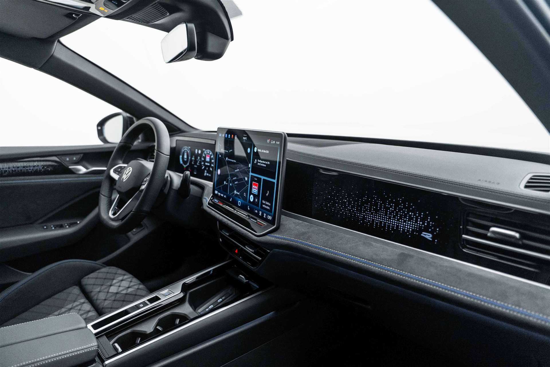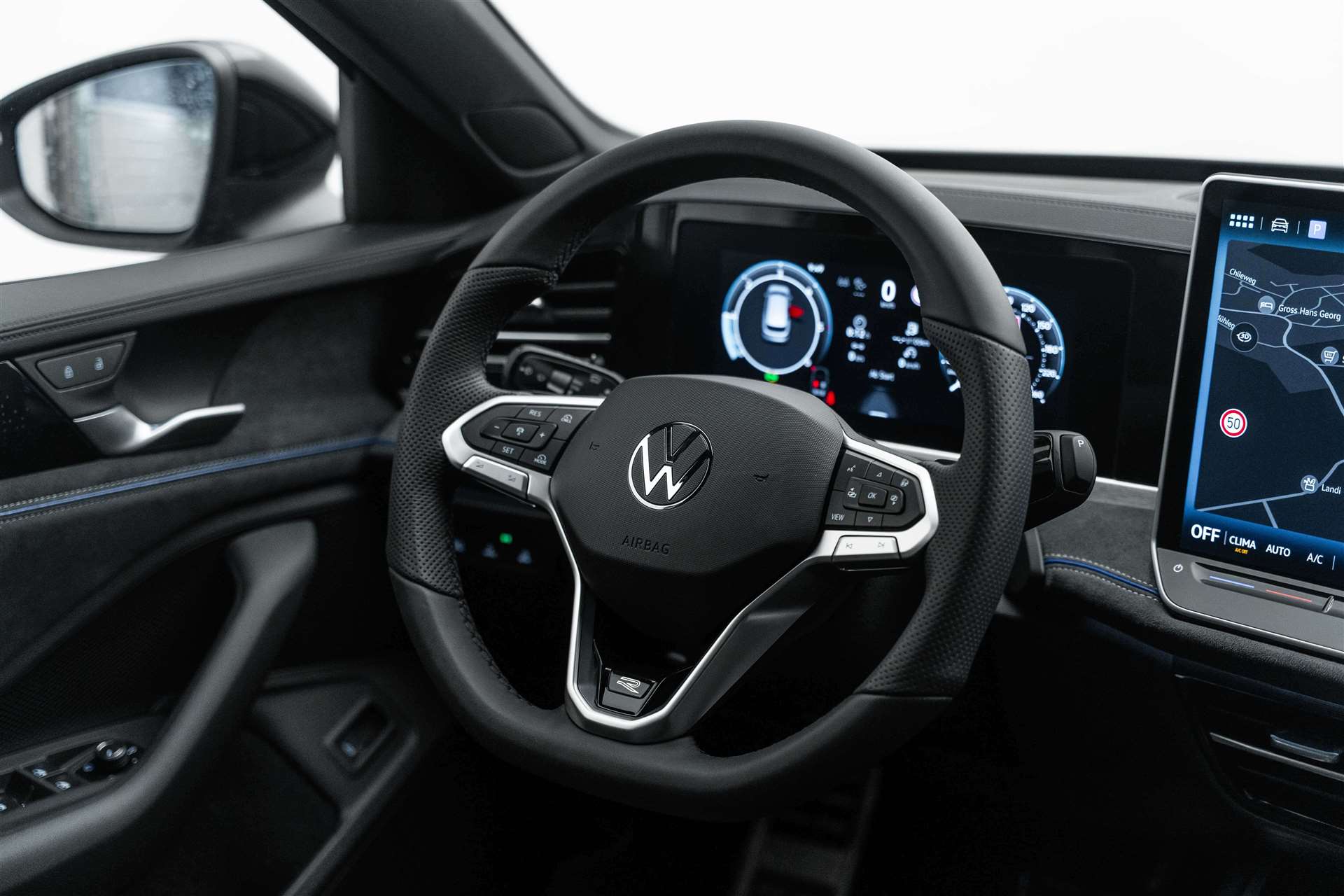 "Easy Open & Close" - Heckklappe mit sensorgesteuerter Öffnung und Schliessung mit Fernentriegelung, 12 Volt-Steckdose, 3 Kopfstützen hinten, Airbag: Airbag für Fahrer und Beifahrer mit Beifahrerairbag-Deaktivierung, Airbag: Knieairbag auf Fahrerseite, Airbag: Kopfairbagsystem vorn und hinten, Seitenairbags vorn, Center Airbag, Ambientebeleuchtung 30-farbig, Antiblockiersystem (ABS), Antriebsschlupfregelung (ASR), Assist: Abbiegebremsfunktion und Ausweichunterstützung, Assist: Ablenkungs- und Müdigkeitserkennung, Assist: Automatische Distanzregelung ACC "stop&go", Assist: Berganfahrassistent, Assist: Car2X-Technologie, Assist: Elektronische Parkbremse inkl. Auto-Hold-Funktion, Assist: Geschwindigkeitsbegrenzer mit vorausschauender Regelung, Assist: Kreuzungsassistent, Assist: Memory-Funktion für Parkassistent, Assist: Multifunktionskamera, Assist: Notbremsassistent "Front Assist" mit Fussgänger- und Radfahrererkennung, Assist: Parkassistent "Park Assist Pro", inkl. Einparkhilfe und Remote Park Assist, Assist: Proaktives Insassenschutzsystem, Assist: Rückfahrkamera Rear View, Assist: Spurhalteassistent Lane Assist, Assist: Spurwechselassistent "Side Assist" mit Ausparkassistent und Ausstiegswarner, Assist: Stauassistent, Assist: Traktionskontrolle (ASR), Assist: Verkehrszeichenerkennung, Aussenspiegel elektrisch anklapp- und beheizbar, auf Fahrerseite abblendend,, Aussenspiegelgehäuse in Wagenfarbe, Bordwerkzeug, Chromleisten an den Seitenfenstern, Dachreling silber eloxiert, Dekor: Dekoreinlagen, Diebstahlwarnanlage mit Innenraumüberwachung, Back-up-Horn und Abschleppschutz, Einstiegs-/Warnleuchten in LED-Technik in allen Türen, Einstiegsleisten vorne und hinten mit R-Line Logo, Elektronisches Stabilisierungsprogramm und elektromechanischer Bremskraftverstärker, Fahrprofilauswahl, Fahrwerk: Dämpfung vorn, Sportfahrwerk, -15mm, Stahl, Fahrwerk: Sportfahrwerk, Fensterheber vorne und hinten elektrisch, Frontscheibe in Verbundsicherheitsglas, wärmedämmend, Gepäckraumabdeckung auszieh- und herausnehmbar, mit elektrischer Öffnung, Gepäckraumboden in 2 Höhen einstellbar, Getriebe: Sequentielles 7-Gang-Getriebe mit Automatikfunktion, Heckscheibenwischer mit Intervallschaltung, Heckspoiler in Wagenfarbe, Innenspiegel automatisch abblendend, ISOFIX-Halteösen für Kindersitze (auf den äusseren Rücksitzen und auf dem Beifahreresitz,, Klima: Klimaanlage "Air Care Climatronic" mit Aktiv-Kombifilter, Bedienungselementen hinten, Lackierung: Uni-Lackierung, Ladekantenschutz in Edelstahl, LED-Leuchte im Fussraum vorn, Lichtfarbe wählbar, Leiste zwischen den Scheinwerfern und Rückleuchten sowie Türgriffmulden beleuchtet, Lenkrad: Elektrische Lenksäulenverriegelung, Lenkrad: Multifunktions-Sportlenkrad in Leder beheizbar mit Schaltwippen, Licht: Abbiege- und Schlechtwetterlicht, Licht: Dynamischer Fernlichtassistent "Dynamic Light Assist", Licht: Fahrlichtschaltung automatisch, mit LED-Tagfahrlicht, Licht: IQ.LIGHT - LED-Matrix-Scheinwerfer, Licht: IQ.LIGHT - Matrix LED-Scheinwerfer, Licht: LED-Rückleuchten mit dynamischer Blinkleuchte mit Chromleiste, Licht: Leuchtweitenregulierung dynamisch, mit dynamischen Kurvenfahrlicht, Licht: Nebelschlusslicht beidseitig, Rückfahrlicht beidseitig, Licht: VW Logo hinten beleuchtet, Media: 2 USB-C Schnittstellen vorn und USB-C Ladebuchsen an der Mittelkonsole hinten,, Media: 8 Lautsprecher, Media: App-Connect mit Wireless App-Connect für Apple CarPlay und Android Auto, Media: Digital Cockpit Pro, mehrfarbig, verschiedene Info-Profile wählbar, Media: Digitaler Radioempfang DAB+, Media: Infotainment-System mit 32-cm-Display (12,9 Zoll), Media: Navigationssystem "Discover", Streaming & Internet fähig, Media: Sprachassistent IDA und elektronische Sprachverstärkung, Media: Telefonschnittstelle "Comfort" mit Induktiver Ladefunktion für 2 Smartphones, Media: Vorbereitet für We Connect / VW Connect & We Connect Plus / VW Connect Plus, Media: We Connect / VW Connect Basisfunktionen - Kostenlos und ohne Laufzeitbeschränkung, Mittelarmlehne hinten verschiebbar, mit Becherhaltern und Ablagemöglichkeit für Handy/Tablet, Netztrennwand, Paket: Assistenzpaket "Park & Comfort", Paket: Infotainment Paket "Discover", Streaming & Internet fähig, Paket: Technikpaket Insassenschutz, Pedale in gebürstetem Edelstahl, Polster: Sitzmittelbahnen der Vordersitze und der äusseren Rücksitzplätze in Stoff "R-Line", Polster: Sitzmittelbahnen der Vordersitze und der äusseren Rücksitzplätze in Stoff "R-Line", Progressivlenkung, Räder: Leichtmetallräder "Coventry" in Schwarz, Räder: Reifenfülldruck-Kontrollsystem, Regensensor, Schlüsselloses Schliess- und Startsystem "Keyless Access" mit Safe-Lock, Servolenkung, Sitze: ergoActive Sitze vorn, mit elektrischer Einstellung, Memory,, Sitze: Kopfstützen vorne im Sitz integriert, Sitze: Lendenwirbelstütze, pneumatisch einstellbar beidseitig, Sitze: Rücksitzlehne asymmentrisch geteilt umklappbar, mit Durchlademöglichkeit, Sitze: Sportsitze vorn, Sitze: Vordersitze beheizbar, Sitze: Vordersitze mit Massageprogrammen, Sonnenblenden, mit Make-up-Spiegel beleuchtet auf Fahrer und Beifahrerseite, Sonnenschutzrollo an den Türscheiben hinten, Start-Stopp-System, Stossfänger im ''R-Line''-Styling, Textilfussmatten vorn und hinten, Tür und Seitenverkleidung, Insert Artvelour mit Doppelkapnaht, Umfeldbeleuchtung mit Logo-Projektion, Verbandtasche, Warndreieck und Warnweste, Wärmeschutzverglasung grün, seitlich und hinten, Zentralverriegelung mit Fernbedienung