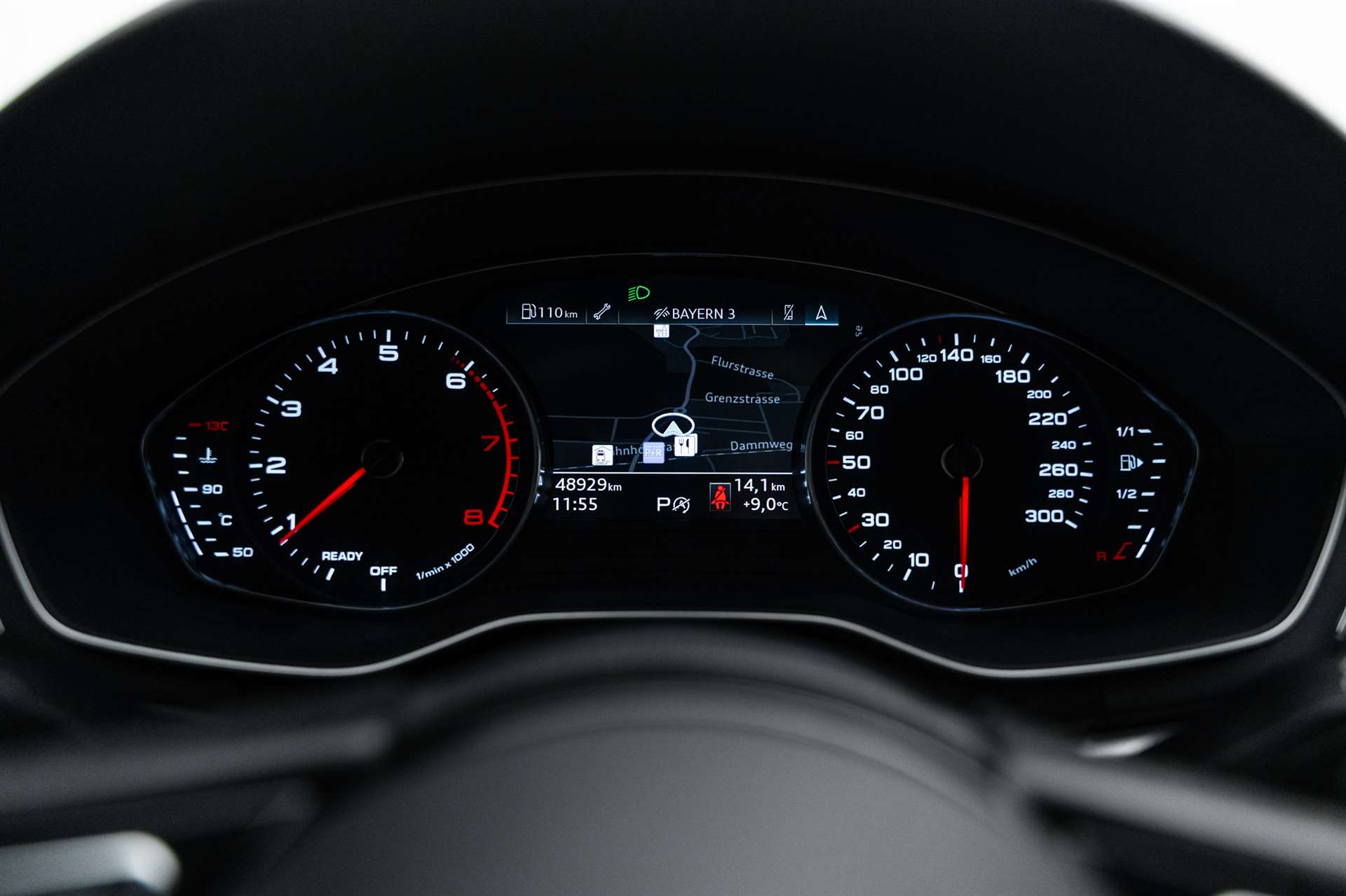 Polster: Stoff System, Lackierung: Uni-Lackierung, Entfall Leistungs- / Technologie-Schriftzug, Garantie: Audi Swiss Service Package + (ASSP+), Bordwerkzeug und Wagenheber, Räder: Radschrauben mit Diebstahlsicherung, Sonnenblenden auf Fahrer- und Beifahrerseite ausziehbar, Zigarettenanzünder und Aschenbecher, Türgriffe aussen verchromt, Beide Make up-Spiegel beleuchtet, USB Ladeschnittstellen für Fondpassagier, Assist: Anfahrassistent, Dachreling in Aluminium, Räder: Abwahl rollwiderstandsoptimierte Reifen, Aufhebung der Geschwindigkeitsbegrenzung (16 Zoll), Räder: Abwahl rollwiderstandsoptimierte Reifen, Aufhebung der Geschwindigkeitsbegrenzung (17 Zoll), Räder: Abwahl rollwiderstandsoptimierte Reifen, Aufhebung der Geschwindigkeitsbegrenzung (18 Zoll), Audi connect Schlüssel, Räder: Reserverad platzsparend, Licht: Einstiegs-LED mit Logoprojektion vorn, Variabel faltbare Gepäckraummatte, Variable Kopfstützen für die Vordersitze, Assist: Spurverlassenswarnung, Einstiegsleisten mit Aluminiumeinleger vorn, beleuchtet, Akustikverglasung für Türscheiben vorn, Dekor: Akzentflächen Glasoptik schwarz, Paket: Ablagen- und Gepäckraumpaket, Vorbereitung für Anhängevorrichtung, Komfortmittelarmlehne vorne, Schienensystem im Laderaum mit Fixierset, Paket: Glanzpaket, Assist: Kamerabasierte Verkehrszeichenerkennung, Garagentoröffner, Audi pre sense basic, Paket: Ambiente Lichtpaket, Garantie: Audi Garantie: 4 Jahre oder 80'000 km (ab 1. Inv.), Dachhimmel schwarz, Lenkrad: Sportkontur-Lederlenkrad im 3-Speichen-Design unten abgeflacht mit Multifunktion plus, Dekor: Dekoreinlagen Aluminium Ellipse silber, Dekor: Dekoreinlagen in Aluminium matt gebürstet, Dekor: Dekoreinlagen Aluminium Ellipse grau, Licht: Scheinwerfer-Reinigungsanlage, Sitze: 4-Wege-Lendenwirbelstütze für die Vordersitze, Dekor: Interieurelemente in Kunstleder, Media: Audi Soundsystem, Fahrwerk: Sportfahrwerk, Lenkrad: Lederlenkrad im 3-Speichen-Design mit Multifunktion plus und Lenkradheizung, Aussenspiegel rechts und links beheizbar und elektrisch anklappbar, Paket: Kontur-/Ambiente-Lichtpaket (mehrfarbig), Aussenspiegel rechts und links beheizt, elektrisch verstell-/ und einklappbar mit Memory, Airbag: Seitenairbags hinten, Sitze: Sportsitze vorne, Assist: Einparkhilfe hinten, Sitze: Fahrersitz elektrisch verstellbar, Garantie: Audi Garantie: 4 Jahre oder 120'000 km (ab 1. Inv.), Fussmatten Audi exclusive, Frontscheibe in Klimakomfort-/Akustikverglasung, beheizbar, Assist: Rückfahrkamera, Media: Audi Phone Box, Dekor: Dekoreinlagen Holz Eiche grau naturell, Dekor: Dekoreinlagen in Klavierlackoptik schwarz Audi exclusiv, Dekor: Dekoreinlagen Holz Nussbaum braun, Diebstahlwarnanlage, Kontrastnähte in Rot Audi Sport, Sitze: Lendenwirbelstütze, pneumatisch einstellbar mit Massagefunktion, Polster: Mikrofaser Frequenz/Leder-Kombination mit S-Prägung, Polster: Sitzbezüge in Alcantara, Polster: Dinamica/Leder-Kombination mit S-Prägung, Komfortschlüssel inklusive sensorgesteuerter Gepäckraumentriegelung, Komfortschlüssel inklusive, Audi virtual cockpit plus, Garantie: Audi Garantie: 5 Jahre oder 100'000 km (ab 1. Inv.), Aussenspiegel in Carbon, Räder: Leichtmetallräder 16 Zoll im 5-Arm-Design, Assist: Audi active lane assist mit kamerabasierter Verkehrszeichenerkennung, Klima: 3-Zonen-Klimatisierungsautomatik, Sitze: Sitzheizung vorne und hinten, Sitze: Vordersitze elektrisch verstellbar, Dekor: Bedienelemente in Leder schwarz Audi exclusive, Assist: Spurverlassenswarnung inkl. Audi pre sense rear, Paket: Paket Technik, Licht: LED Scheinwerfer, Rahmenloser Innenspiegel automatisch abblendbar, Assist: Einparkhilfe plus, Klima: 3-Zonen-Klimatisierungsautomatik, Assist: Geschwindigkeitsregelanlage inklusive Geschwindigkeitsbegrenzer, Lackierung: Metallic-Lackierung, Sitze: S-Sportsitze vorne, Dekor: Bedienelemente in Alcantara schwarz Audi exclusive, Paket: Communication Paket, Head-Up Display, Anhängevorrichtung, Licht: LED-Scheinwerfer mit LED-Heckleuchten und dynamischem Blinklicht Heck, Polster: Erweiterte Leder-Ausstattung Audi exclusive, Dynamiklenkung, Garantie: Audi Garantie: 5 Jahre oder 150'000 km (ab 1. Inv.), Fahrwerk: Komfortfahrwerk mit Dämpferregelung, Fahrwerk: Sportfahrwerk mit Dämpferregelung, Assist: Parkassistent mit Einparkhilfe plus, Dekor: Dekoreinlagen Holz Audi exclusive, Polster: Leder/Kunstleder mono.pur 550-Kombination, Komfortschlüssel inkl. sensorgesteuerter Gepäckraumentriegelung, Komfortschlüssel mit sensorgesteuerter Gepäckraumentriegelung, Polster: Lederausstattung Feinnappa, Media: Bang & Olufsen Soundsystem, Räder: Leichtmetallräder 17 Zoll im 10-Speichen-Kristall-Design, Räder: Leichtmetallräder 17 Zoll im 10-Speichen-Design, Sitze: Sportsitze mit Sitzbelüftung vorn, Dekor: Dekoreinlagen Carbon Köper, Sitze: Vordersitze elektrisch einstellbar mit Memory-Funktion für Aussenspiegel und Fahrersitz, Polster: Mikrofaser Dinamcia / Leder Kombination, Paket: Assistenzpaket Tour, Assist: Kamerabasierte Verkehrszeichenerkennung, Räder: Leichtmetallräder 17 Zoll im 5-Parallelspeichen-Design, Polster: Leder Feinnappa mit S-Prägung, Paket: Assistenzpaket Stadt, Assist: Einparkhilfe plus, Assist: Rückfahrkamera, Panorama-Glasdach, Räder: Leichtmetallräder 17 Zoll im 5-Arm-Aero-Design, kontrastgrau, teilpoliert, Licht: Matrix LED-Scheinwerfer mit LED-Heckleuchten und Scheinwerfer-Reinigungsanlage, Paket: Assistenzpaket Parken, Assist: Parkassistent mit Einparkhilfe plus, Assist: Umgebungskameras, Klima: Standheizung/-Lüftung, Räder: Leichtmetallräder 18 Zoll im 10-Speichen-V-Design, Räder: Leichtmetallräder 18 Zoll im 5-Doppelspeichen-Stern-Design (S-Design), Paket: Komfort Paket, Paket: Ablagen- und Gepäckraumpaket, Komfortschlüssel inklusive sensorgesteuerter Gepäckraumentriegelung, Assist: Rückfahrkamera, Fahrwerk: Komfortfahrwerk mit Dämpferregelung, Sitze: 4-Wege-Lendenwirbelstütze für die Vordersitze, Sitze: Vordersitze elektrisch verstellbar, Paket: 