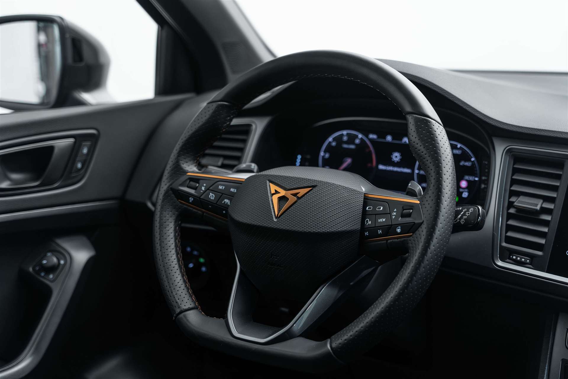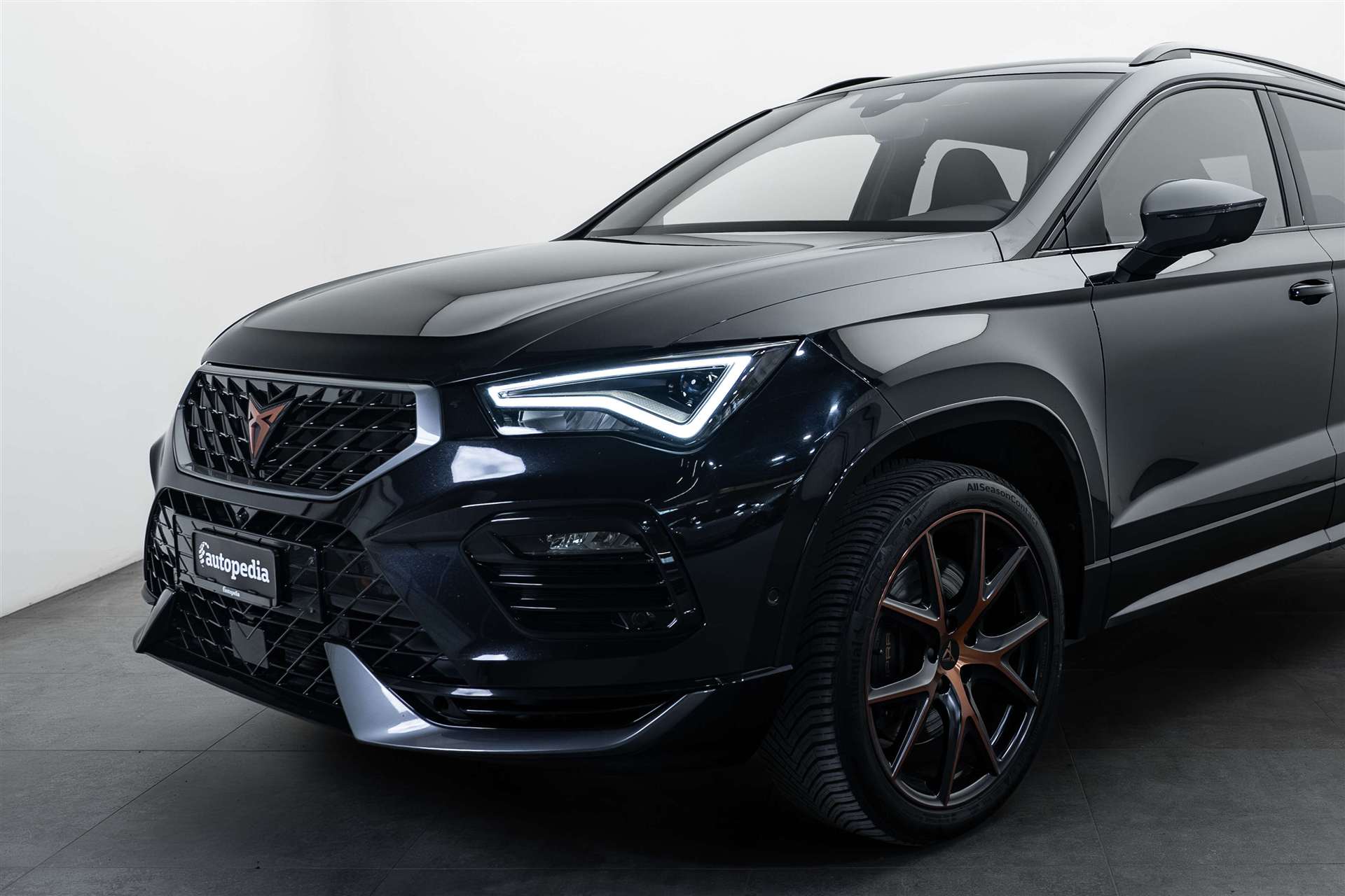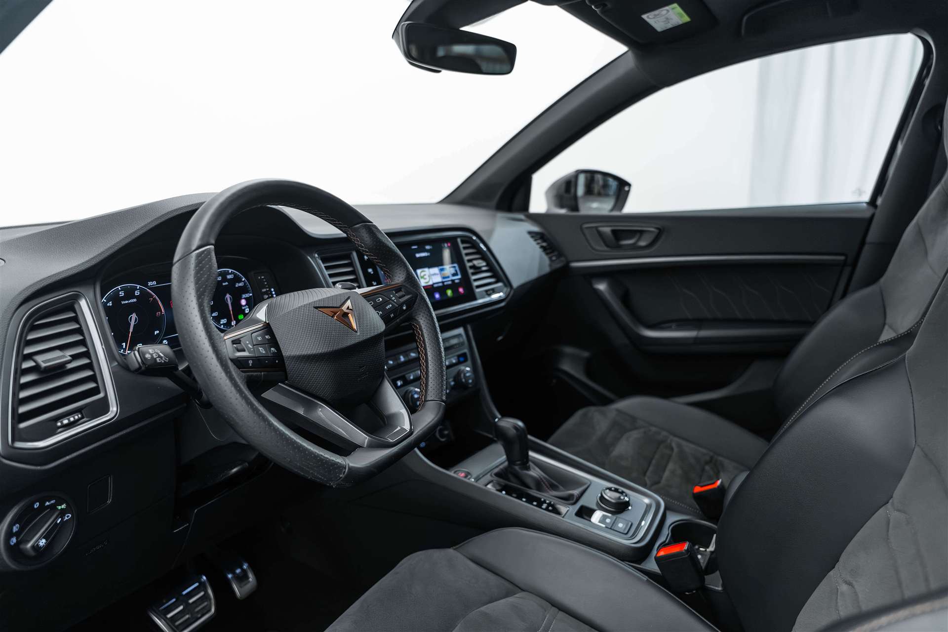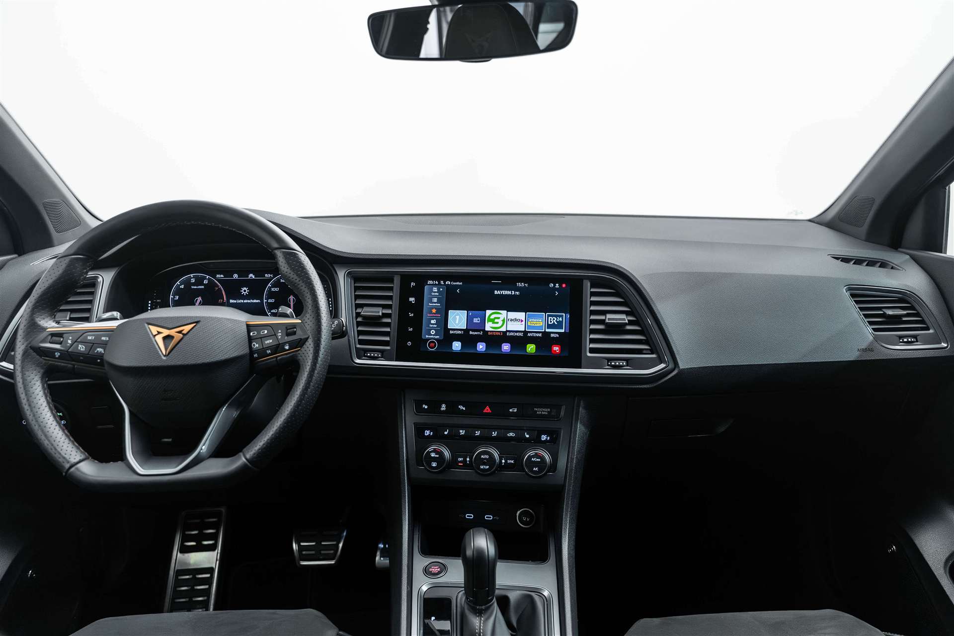 Paket: Elektrikpaket-, 230-Volt und 12-Volt Steckdose im Kofferraum, CUPRA Mobilität Plus, Variabler Ladeboden, Netztrennwand, Assist: Trailer Assist, Räder: Alufelgen 8J x 19", "EXCLUSIVE" 36/1 Machined in Copper (245/40 R19), Paket: Winterpaket 2, Athermisch beschichtete und beheizbare Windschutzscheibe, Sitze: Fahrersitz elektrisch einstellbar, Garantie: Cupra Hersteller-Garantieverlängerung für das 3. und 4. Jahr / max. 80000 km, Heckklappe elektrisch öffnend und schliessend "Virtual Pedal", Räder: Alufelgen 8J x 19", "EXCLUSIVE" 36/4 Machined Aerowheels in Sport Black Matt, Lenkrad: Supersportlenkrad mit Start-/ Drive Profile-Knopfsystem und Schaltwippen, beheizbar, Lackierung: Metallic-Lackierung, Garantie: Cupra Hersteller-Garantieverlängerung für das 3., 4. und 5. Jahr / max.100000 km, Räder: Alufelgen 8J x 19", "EXCLUSIVE" 36/5 Machined Aerowheels in Copper, Räder: Alufelgen 8J x 19", "EXCLUSIVE" 36/2 Machined in Silver (245/40 R19), Paket: CUPRA Ateca Pack, Lenkrad: Supersportlenkrad mit Start-/ Drive Profile-Knopfsystem und Schaltwippen, beheizbar, Paket: Fahrerassistenzpaket XL, Sitze: Fahrersitz elektrisch einstellbar, Paket: Elektrikpaket-, Anhängevorrichtung (Einklappbar), Lackierung: Premium Metallic-Lackierung, Panorama-Schiebe-/Ausstelldach, Polster: Lederausstattung mit Sport-Schalensitze vorne "petrol blue", CUPRA Service, CUPRA ServicePLUS, Paket: Performance Brembo Bremsen, Media: BeatsAudio- Sound System - Subwoofer; 340 Watt Leistung 10 High-End-Lautsprecher, CUPRA Räder, CUPRA Räder Plus, CUPRA Reifen, CUPRA Reifen Plus