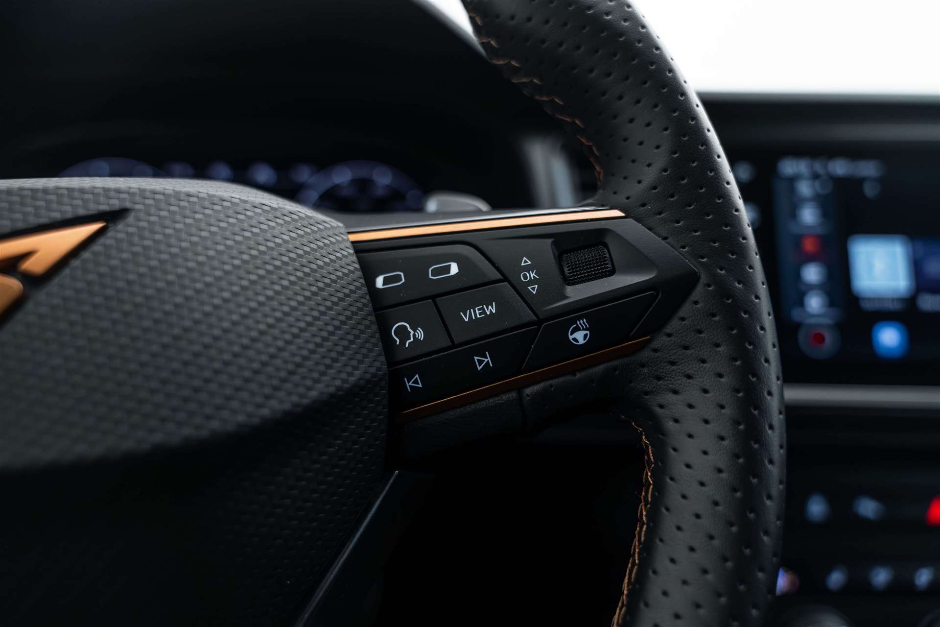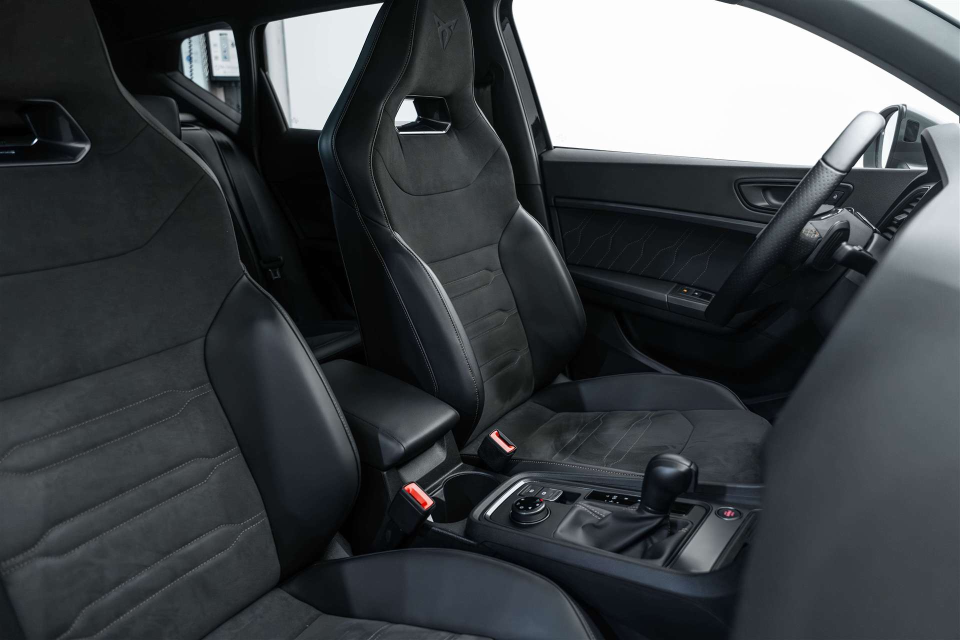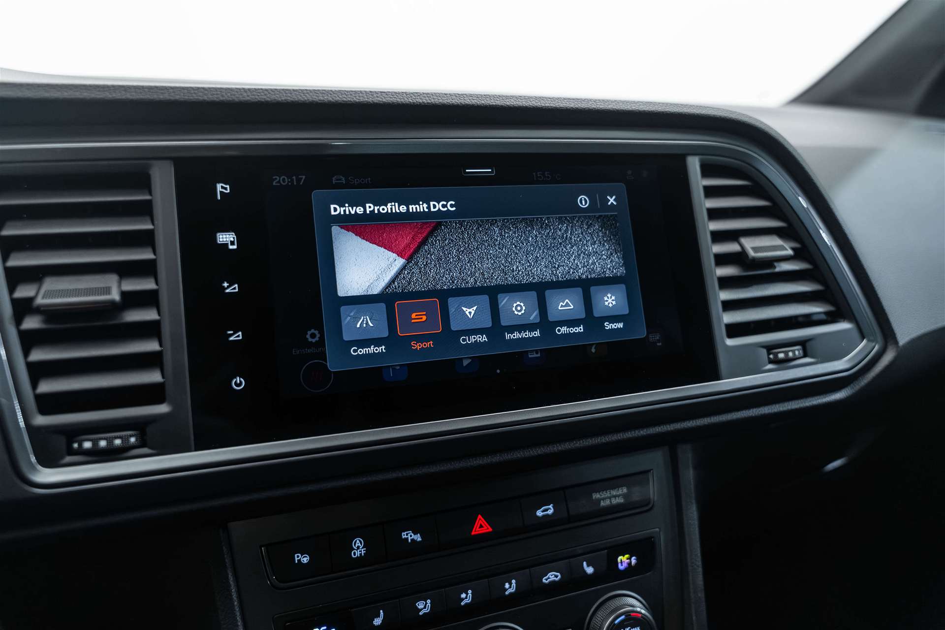 2 Schlüssel mit Fernbedienung, 3-Punkt-Sicherheitsgurte auf allen Plätzen, Abgedunkelte Scheiben ab B-Säule hinten, ABS, EBV elektronische Bremskraft-verteilung, Airbag: Airbag Beifahrer deaktivierbar, Airbag: Airbag Fahrer und Beifahrer, Airbag: Knie-Airbag für Fahrer, Airbag: Kopfairbags vorne und hinten, Airbag: Seitenairbags für Fahrer und Beifahrer, Airbag: Window-Kopfairbags, Allradantrieb permanent, Ambientebeleuchtung Multi-Colour, Assist: Auto-Hold-Funktion, Assist: Einparkhilfe vorne und hinten mit optischer Anzeige, Assist: Elektronische Parkbremse mit Auto Hold Funktion, Assist: Lane assist (Spurhalteassistent), Assist: Müdigkeitserkennung, Assist: Multifunktionskamera, Assist: Multikollisionsbremse, Assist: Parklenkassistent, Assist: Prädiktive automatische Distanzregelung ACC, Assist: Speedlimiter, Assist: Spurhalteassistent Lane Assist, Assist: Tempomat, Assist: Tiredness detection (Müdigkeitserkennung), Assist: Top View Camera (Rundumblick), Assist: Traffic sign recognition (Verkehrszeichenerkennung), Assist: Verkehrszeichenerkennung, Auspuffanlage mit 4 Endrohren, Aussenspiegel mit Beifahrerspiegelabsenkung, Aussenspiegel mit LED-Umfeldbeleuchtung, Aussenspiegel rechts und links beheizt,elektrisch verstell- / und einklappbar, Aussenspiegel und Türgriffe in Wagenfarbe, Beleuchtete Sonnenblende links mit abdeckbarem Spiegel und Lasche, rechts mit abdeckbarem Spiegel, Beleuchtetes Einstiegssystem mit Umfeldbeleuchtung, Bordcomputer, Bremsenergie-Rückgewinnung, CUPRA Drive Profile mit "driving experience button" Comfort, Sport, CUPRA, Individual, Snow, Offroad, Dachhimmel schwarz, Dachreling schwarz, Dekor: Dekorblenden in Grau glänzend, Dekor: Türverkleidung mit Ambient light, Einstiegsleisten in Aluminium, Elektrische Fensterheber vorne und hinten mit Komfortschaltung und Einklemmschutz, Elektronische Differentialsperre (XDS), ESC mit EBA, DSR, XDS und Reifendruckkontrolle, Fahrwerk: Adaptive Fahrwerksregelung DCC, Fahrwerk: Progressivlenkung, Fensterschachtzierleisten in Aluminium, Full Digital Cockpit, Garantie: Cupra 12 Jahre Gewährleistung gegen Karosserie-Durchrostung, Garantie: Cupra 3 Jahre Lack-Gewährleistung, Garantie: Cupra Garantie 2 Jahre ohne Kilometerbegrenzung, Getriebe: Sequentielles 7-Gang-Getriebe mit Automatikfunktion, Gurtkontrolle, Heckdiffusor, Heckscheiben-Wisch-/Waschanlage mit Intervall, Heckscheibenheizung, Heckspoiler, Höhenverstellbare Gurten vorne, Innenleuchten LED, Innenspiegel automatisch abblendbar, Katalysator geregelt, Klima: 2-Zonen-Klimaautomatik, Lackierung: Uni-Lackierung, LED Innenraumbeleuchtung, Lenkrad und Schalthebelgriff in Leder, Lenkrad: Beheizbares Ledermultifunktionslenkrad mit Schaltwippen, Lenkrad: Multifunktionslenkrad mit Schaltwippen, Lenkrad: Schaltwippen am Lenkrad für DSG, Licht : LED-Scheinwerfer für Abblend- und Fernlicht, Licht- und Regensensor, Licht: Coming-home-Funktion, Licht: Drittes Bremslicht, Licht: LED-Heckleuchten mit dynamischem Blinklicht, Licht: LED-Nebelscheinwerfer mit Cornering-Funktion, Licht: LED-Tagfahrlicht, Licht: Leuchtweitenregulierung dynamisch, Media: 2 USB C Anschlüsse hinten und vorne, Media: 9.2" 3D Infotainment (MIB3), Media: CUPRA Connect Online Infotainment für Navigationssystem, Media: CUPRA Connect Remote & Access für Navigationssystem, Media: CUPRA Connectivity Box, Media: CUPRA FullLink, Media: CUPRA Navigationssystem, Media: DAB+ (Digital Audio Broadcasting), Media: Kartenmaterial ''Europa'', Media: Mobiltelefon Freisprecheinrichtung Bluetooth, Media: Radiovorbereitung, Antenne, Entstörung und 8 LS, Media: Sprachsteuerung, Nebelschlussleuchte, Pollenfilter (Staubfilter), Polster: Sitzbezüge in Dinamica "black", Pyrotechnische Gurtstraffer und Gurtkraftbegrenzer, Räder: Alufelgen 8J x 19", Machined Sport Black / Silver (245/40 R19), Räder: Reifendruck-Kontrollanzeige, Räder: Reifenreparatur-Set (Tire Fit), Radlaufblenden in Wagenfarbe, Scheibenwaschdüsen beheizt, Scheinwerferreinigungsanlage, Schlüsselloses Schliess- und Startsystem (KESSY), Servolenkung mit geschwindigkeitsabhängiger Lenkkraftunterstützung, Sitze: 2 verstellbare Kopfstützen vorne und 3 hinten, Sitze: CUPRA Sportschalensitze, Sitze: Easy Backseat Release (Rücksitzentriegelung im Kofferraum), Sitze: Easy-Entry Lehnenentriegelung, Sitze: Einstellbare Lendenwirbelstütze für den Fahrer und Beifahrer, Sitze: Geteilt abklappbare Rücksitzlehne 1/3 - 2/3, Sitze: Gurtstraffer vorne, Sitze: ISOFIX Kindersitzvorrichtung, Sitze: Kopfstützen vorne höhenverstellbar, Sitze: Mittelarmlehne hinten, Sitze: Mittelarmlehne vorne, Sitze: Schublade unter Fahrersitz, Sitze: Sitzheizung für Vordersitze, getrennt regelbar, Sitze: Vordersitze höhenverstellbar mit Lendenwirbelstütze, Sportabgasanlage mit 4 Endrohren, Stopp - Start- und Rekuperationssystem, Teppichfussmatten vorne und hinten, Vollverzinkte Karosserie, Wegfahrsperre elektronisch, Zentralverriegelung mit Fernbedienung