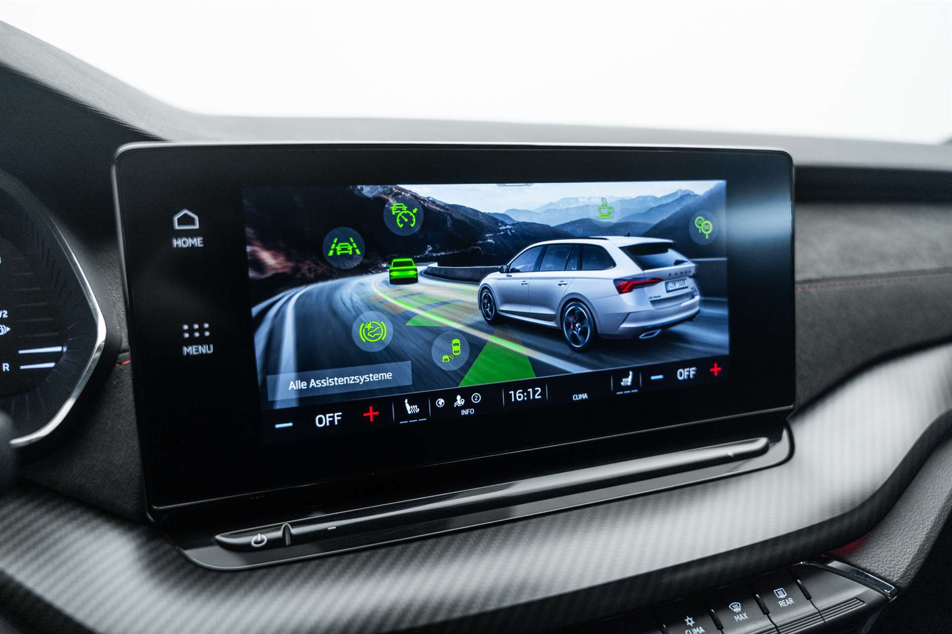 Entfall Motorenbezeichnung hinten, Lackierung: Uni-Lackierung Candy weiss, Lackierung: Uni-Lackierung Mamba Grün, Räder: Leichtmetallräder 7,5 J x 18" "COMET", schwarz mit polierter Oberfläche, Paket: Simply Clever Paket, SKODA Care: MobilitätPLUS (Ersatzmobilität für die Dauer der Wartung) für 4 Jahre / 100000 km, Lenkrad: 3-Speichen-Supersport-Leder-Multifunktionslenkrad mit Schaltwippen (DSG), beheizbar, Paket: Schlafpaket, 2 spezielle Kopfstütze hinten, Decke, Sonnenschutzrollo für Seitenscheiben hinten-mechanisch, Steckdose 230 V, zusätzliche 3 USB C-Anschlüsse, Lackierung: Metallic-Lackierung, Alarmanlage mit Innenraumüberwachung und Neigungssensor, SKODA Garantie: Garantie +1 Jahr / 100'000 km, Berührungsloses Öffnen der Heckklappe (Virtual Pedal), Paket: Safety Pack RS, Assist: Spurwechselassistent "Side Assist", Assist: Proaktives Insassenschutzsystem "Crew Protect Assistant" vorne und hinten, Assist: Müdigkeitserkennung, Licht: LED-Nebelscheinwerfer mit integrierter Corner Funktion, Airbag: Seitenairbags hinten, SKODA Garantie: Garantie +2 Jahre / 100'000 km (ab 1. Inv.), Räder: Leichtmetallräder 7,5 J x 19" «ALTAIR», antrazit mit polierter Oberfläche, Lackierung: Sonderlackierung Metallic, Fahrwerk: Adaptive Fahrwerksregelung "Dynamic Chassis Control" inkl. "Driving Mode Selection", Anhängerkupplung, mechanisch anklappbar mit elektrischer Entriegelung, Panorama-Schiebedach, Paket: mySKODA Pack RS, Phonebox und Wireless Charging, Assist: Adaptiver "Lane Assist", Assist: Spurwechselassistent "Side Assist", WLAN und LTE Antenne für High Speed Internet, Assist: "Travel Assist": Verkehrszeichenerkennung/"Stau Assist und Emergency Assist" für DSG /, Assist: Rückfahrkamera, Licht: LED-Nebelscheinwerfer mit integrierter Corner Funktion, Paket: Akustikpaket, Assist: Predictive Cruise Control (PCC), Tür und Seitenverkleidung mit Regenschirm auf Fahrerseite, Ladeboden variabel, SKODA Garantie: Garantie +3 Jahre / 150'000 km (ab 1. Inv.), SKODA Care: Service (Wartung & Verschleiss) für 4 Jahre / 100000 km, SKODA Care: Räder (Radwechsel und Reifenersatz) für 4 Jahre / 100000 km, Paket: Relax Pack RS, Klima: 3-Zonen-Klimatisierungsautomatik, Sitze: Fahrer- und Beifahrersitz elektrisch einstellbar, mit Memoryfunktion, Netzprogramm und Cargoelemente, Sitze: Vorder- und Rücksitze Beheizbar, Sitze: Ergositze RS inkl. Sitzbezüge Alcantara/Leder, SKODA Care: ServicePLUS (Wartung, Verschleiss & Flüssigkeiten) für 4 Jahre / 100000 km, SKODA Care: RäderPLUS (Radwechsel, Reifenersatz und Radeinlagerung) für 4 Jahre / 100000 km, SKODA Care: Reifen (Reifenwechsel und Reifenersatz) für 4 Jahre / 100000 km, SKODA Care: ReifenPLUS (Reifenwechsel, Reifenersatz und Reifeneinlagerung) für 4 Jahre / 100000 km