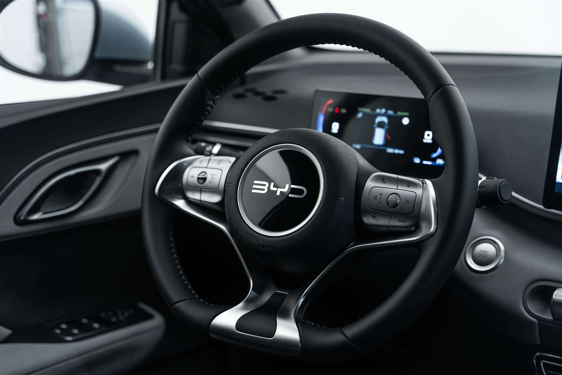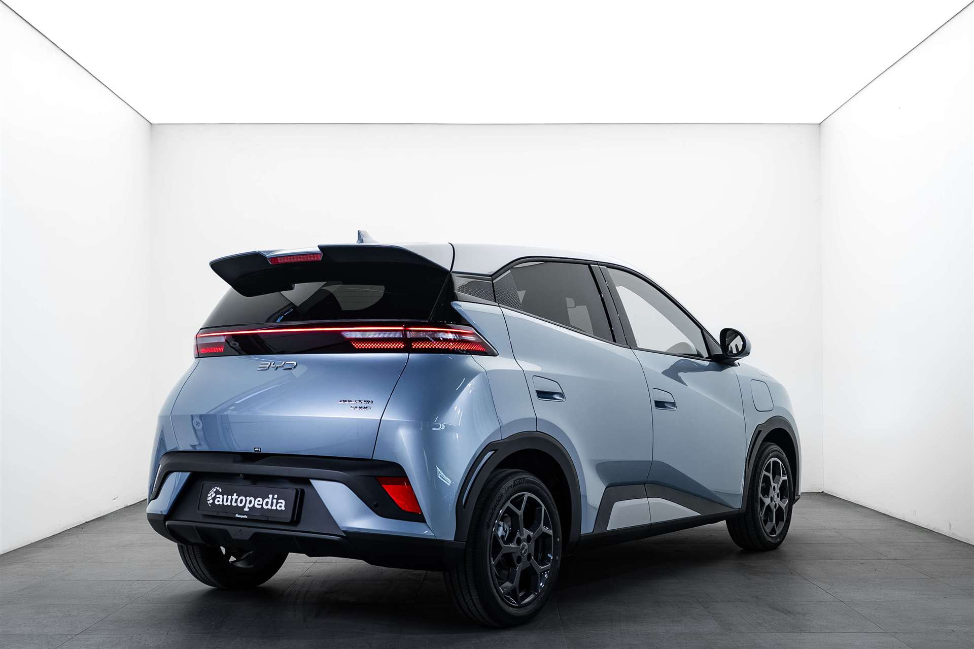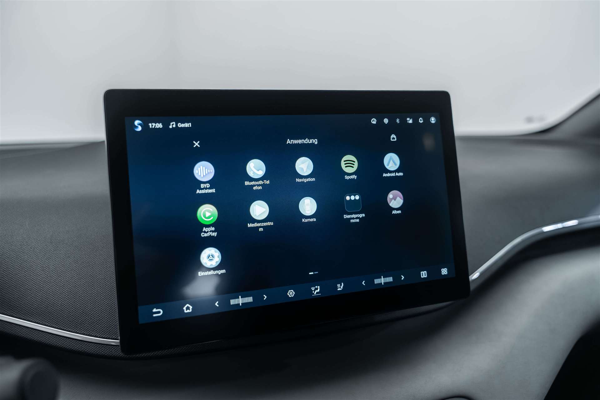 11kW On-Board Charger (OBC), 12-V-Stromanschluss, 2 x Smart Key, Airbag: Fahrerairbag und Beifahrerairbag, Airbag: Seitenairbags vorn und hinten, Antiblockiersystem (ABS), Assist: 360° view camera, Assist: Adaptive Geschwindigkeitsregelung (ACC) & Intelligente Geschwindigkeitsregelung (ICC), Assist: Auto Hold, Assist: Automatische Notbremsung (AEB), Assist: Comfort Stop (CST), Assist: Elektrische Parkbremse (EPB), Assist: Fahrerüberwachungssystem (DMS), Assist: Intelligente Bremskraftverstärker (IPB), Assist: Intelligente Geschwindigkeitsbegrenzungskontrolle (ISLC), Assist: Notfall-Spurhalteassistent (ELKA), Assist: Parksensoren hinten, Assist: Spurverlassensassistent (LDA), Assist: Traktionskontrolle (TCS), Assist: Verkehrszeichenerkennung (TSR), Assist: Vorwärtskollisionswarnung (FCW), Aussenspiegel elektrisch verstellbar, elektrisch anklappbar, beheizbar, BYD digital key, Elektronische Bremskraftverteilung (EBD), ESP (Elektronisches Stabilitätsprogramm), Fahrerseitenfenster, mit Ein-Klick-Funktion und Einklemmschutz, Fahrmodus: Eco, Normal, Sport, Snow, Frontscheibe, Scheibenwischer mit Regensensor, Garantie: Batterie-Garantie 8 Jahre oder 200'000 km, Garantie: Garantie 6 Jahre oder 150'000 km, Getriebe: Direktantrieb, kein Getriebe, Heckscheiben und hintere Windschutzscheibe, Privacy glass, ISOFIX und i-Size, Beifahrer- und äussere Rücksitze, Keyless entry & keyless start, Kindersicherung manuell, Klima: Klimaanlage, Lackierung: Metallic-Lackierung, LED-Leseleuchten vorn, Lenkrad: Multifunktionslenkrad in Vegan-Leder, Licht: Follow-me-Home, Licht: Intelligenter Fernlichtassistent (IHBC), Licht: LED-Rückleuchten, Licht: LED-Scheinwerfer, automatisches Ein-/Ausschalten, Licht: LED-Tagfahrlicht, Licht: Nebelschlussleuchten, Media: 10,1" elektrisch drehbarer Touchscreen, Media: 7" Digital-Instrumententafel, Media: Android Auto & Apple CarPlay, Media: Audiosystem, 4 Lautsprecher, Media: DAB+ & FM, Media: Integrierte 4G-Konnektivität, Media: Intelligente Sprachsteuerung "Hallo, BYD", Media: Navigationsystem, Media: Smartphone wireless charging, 15 W, Media: USB-Anschlüsse hinten: 1 x 18W Typ A, 1 x 60W Typ C, Mittelarmlehne vorn, 2 Getränkehalter, Notruf, Polster: Vegan-Leder Sitze, Räder: 16" Leichtmetallfelgen, Reifendruckkontrolle (TPMS), Servolenkung, Sicherheitsgurte mit Vorspannung und Kraftbegrenzer, Sitze: 4 Sitze, Sitze: Beifahrersitz beheiztbar, Sitze: Beifahrersitz, elektrisch verstellbar, 4-fach, Sitze: Fahrersitz beheiztbar, Sitze: Fahrersitz, elektrisch verstellbar, 6-fach, Sitze: Lordosenstütze für Fahrer, Sitze: Rücksitze 50:50 geteilt umklappbar, Sonnenblenden vorne mit beleuchtetem Spiegel, Türöffnungswarnung (DOW), Wärmepumpe, Zentralverriegelung