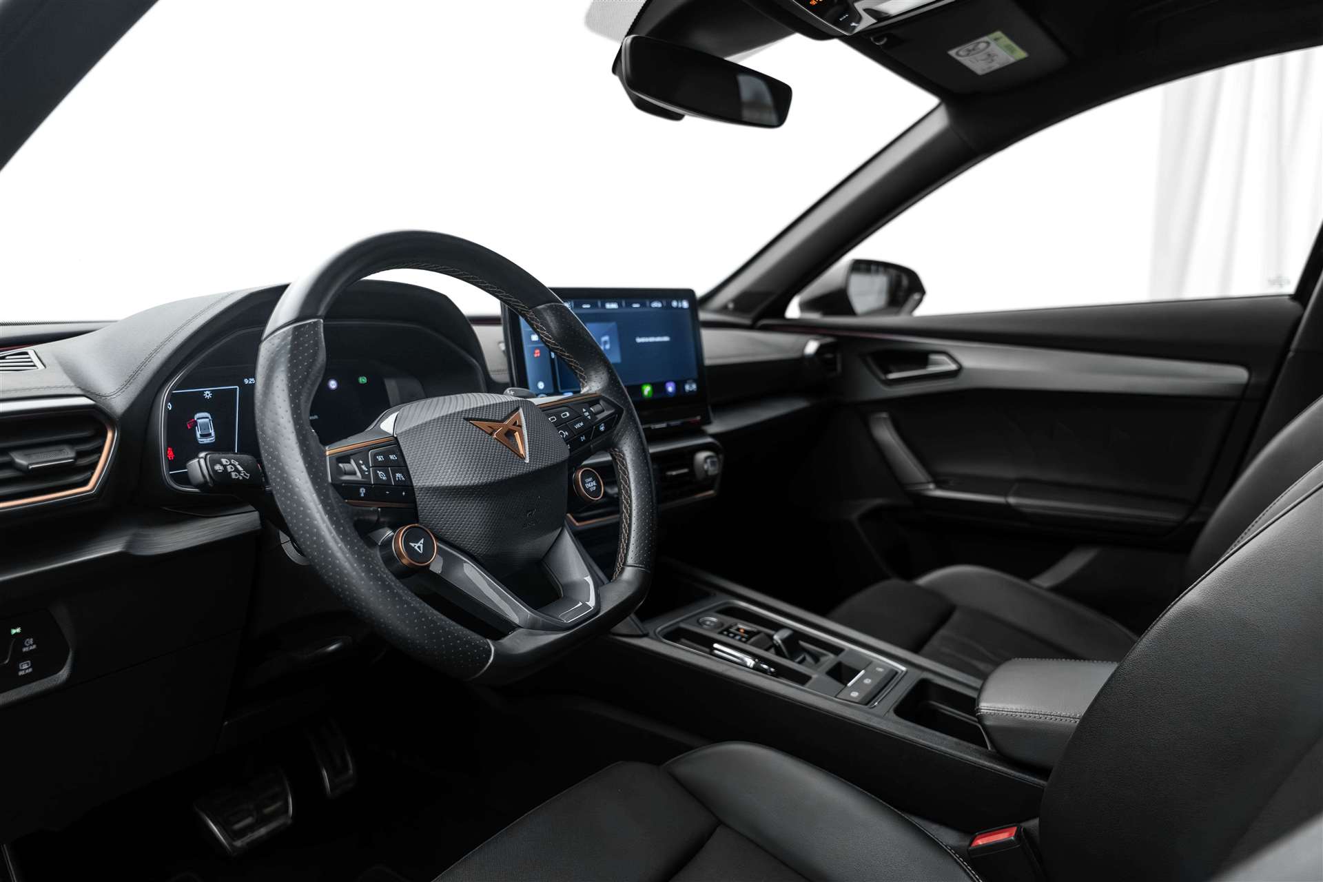 230-Volt Steckdose im Kofferraum und 12-Volt Steckdose in der Mittelkonsole, 3-Punkt-Sicherheitsgurte auf allen Plätzen, Abgedunkelte Scheiben ab B-Säule hinten, ABS, EBV elektronische Bremskraft-verteilung, Airbag: Airbag Beifahrer deaktivierbar, Airbag: Airbag Fahrer und Beifahrer, Airbag: Knie-Airbag für Fahrer, Airbag: Kopfairbags vorne und hinten, Airbag: Seitenairbag für Fahrer und Beifahrer, Allradantrieb permanent, Assist: City Notbremsfunktion, Assist: Einparkhilfe vorne und hinten mit Rückfahrkamera, Assist: Elektronische Parkbremse mit Auto Hold Funktion, Assist: Exit Assist (Ausparkassistent), Assist: Exit Warning (Ausstiegswarner), Assist: Front Assist, Assist: Lane assist (Spurhalteassistent), Assist: Multifunktionskamera, Assist: Multikollisionsbremse, Assist: Parklenkassistent, Assist: Prädiktive automatische Distanzregelung ACC, Assist: PreCrash Sicherheitssystem, Assist: Tiredness detection (Müdigkeitserkennung), Assist: Top View Camera (Rundumblick), Assist: Traffic Jam Assist (Stauassistent), Assist: Traffic sign recognition (Verkehrszeichenerkennung), Aussenspiegel elektrisch einstell-, beheiz- und einklappbar, Aussenspiegel mit Beifahrerspiegelabsenkung, Aussenspiegel mit LED-Umfeldbeleuchtung, Automatisch abblendender Innenrückspiegel, Beleuchtete Sonnenblende links mit abdeckbarem Spiegel und Lasche, rechts mit abdeckbarem Spiegel, Bremsen mit 6-Kolben-AKEBONO-Bremssätteln, CUPRA Drive Profile mit "driving experience button" Comfort, Sport, CUPRA, Individual, Snow, Offroad, Dachhimmel Schwarz, Dachreling schwarz, Elektrische Fensterheber vorne und hinten mit Komfortschaltung und Einklemmschutz, ESC mit EBA, DSR, XDS und Reifendruckkontrolle, Fahrwerk: Adaptive Fahrwerksregelung DCC, Fahrwerk: Progressivlenkung, Full Digital Cockpit, Fussmatten vorne und hinten, Garantie: Cupra 12 Jahre Gewährleistung gegen Karosserie-Durchrostung, Garantie: Cupra 3 Jahre Lack-Gewährleistung, Garantie: Cupra Garantie 2 Jahre ohne Kilometerbegrenzung, Getriebe: 7-Gang DSG, Heckscheiben-Wisch-/Waschanlage mit Intervall, Heckscheibenheizung, Katalysator geregelt, Klima: 3-Zonen Climatronic mit Fondraumbedienung, Lackierung: Metallic-Lackierung, Lackierung: Metallic-Lackierung, LED-Innenraumbeleuchtung mit Ambientebeleuchtung Smart Wraparound "Multicolor", Lenkrad: Supersportlenkrad mit Start-/ Drive Profile-Knopfsystem und Schaltwippen, beheizbar, Licht : LED-Scheinwerfer für Abblend- und Fernlicht, Licht- und Regensensor, Licht: Coming Leaving Home Funktion, Licht: Drittes Bremslicht, Licht: Durchgehende Full LED-Heckleuchten, Licht: LED-Heckleuchten mit dynamischem Blinklicht, Licht: LED-Nebelscheinwerfer mit Cornering-Funktion, Licht: LED-Tagfahrlicht, Licht: Leuchtweitenregulierung dynamisch, Media: 2 USB C Anschlüsse hinten und vorne, Media: 7 Lautsprecher, Media: CUPRA Connectivity Box, Media: CUPRA FullLink, Media: CUPRA Navigationssystem 12" Infotainment (MIB3), Media: DAB+ (Digital Audio Broadcasting), Media: Kartenmaterial ''Europa'', Media: Mobiltelefon Freisprechanlage Bluetooth, Media: Sprachsteuerung, Nebelschlussleuchte, Pollenfilter (Staubfilter), Räder: Alufelgen 8,5J X 20", "Exclusive" Machined in Black/Copper, Räder: Reifendruck-Kontrollanzeige, Räder: Reserverad platzsparend, Schlüsselloses Schliess- und Startsystem (KESSY), Seitliche Frontsplitter und Einsätze in Karbon, Servolenkung mit geschwindigkeitsabhängiger Lenkkraftunterstützung, Sitze: 2 verstellbare Kopfstützen vorne und 3 hinten, Sitze: CUPRA Sport Schalensitze in "Sharp Textil schwarz", Sitze: Easy Backseat Release (Rücksitzentriegelung im Kofferraum), Sitze: Geteilt abklappbare Rücksitzlehne 1/3 - 2/3, Sitze: Kindersitzverankerung ISOFIX hinten, Sitze: Mittelarmlehne hinten, Sitze: Mittelarmlehne vorne, Sitze: Sitzheizung für Vordersitze, getrennt regelbar, Sitze: Vordersitze höhenverstellbar mit Lendenwirbelstütze, Sportabgasanlage mit 4-Fach Endrohr und Karbon Heckdiffusor, Stopp - Start- und Rekuperationssystem, Türgriffe in Wagenfarbe, Variabler Ladeboden, Vollverzinkte Karosserie, Wegfahrsperre elektronisch, Zentralverriegelung mit Funkfernbedienung, 2 Funkschlüssel