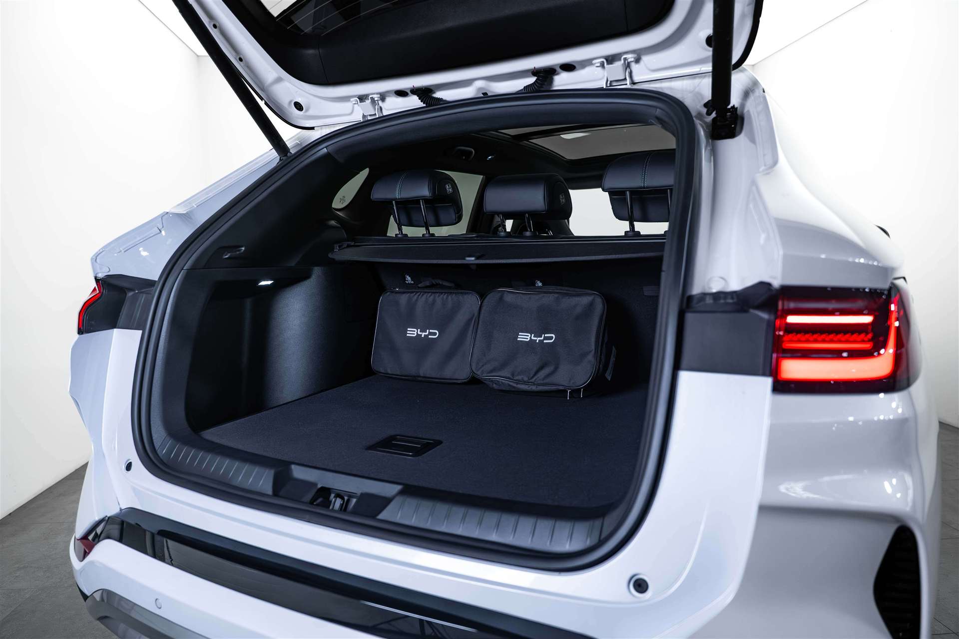 11kW On-Board Charger (OBC), 12-V-Stromanschluss, 2 x Smart Key, 4 x One-Touch-Fensterheber mit Einklemmschutzfunktion, Airbag: Fahrerairbag und Beifahrerairbag, Airbag: Frontairbag in der Mitte, Airbag: Seitenairbags vorn, Airbag: Vorhangairbags, Ambientebeleuchtung, mehrfarbig, Antiblockiersystem (ABS), Armlehne hinten, 2 Getränkehalter, Assist: 360° view camera, Assist: Adaptive Geschwindigkeitsregelung (ACC) & Intelligente Geschwindigkeitsregelung (ICC), Assist: Auto Hold, Assist: Automatische Notbremsung (AEB), Assist: Bergabfahrhilfe (HDC), Assist: Berganfahrassistent (HSA), Assist: Comfort Stop (CST), Assist: Elektrische Parkbremse (EPB), Assist: Heckkollisionswarnung (RCW), Assist: Hydraulischer Bremsassistent (HBA), Assist: Kindererkennung (CPD), Assist: Kontrollierte Verzögerung mit Feststellbremse (CDP), Assist: Müdigkeitserkennung für den Fahrer (DFW) und Aufmerksamkeitswarnung für den Fahrer (DFW), Assist: Parksensoren vorne und hinten, Assist: Querverkehrswarnung hinten (RCTA) & Querverkehrsbremse hinten (RCTB), Assist: Querverkehrswarnung vorn (FCTA) & Querverkehrsbremse vorn (FCTB), Assist: Spurhalteassistent (ELKA), Assist: Spurverlassensverhinderung (LDP), Assist: Spurverlassenswarnung (LDW), Assist: Spurwechselassistent (LCA), Assist: Toter-Winkel-Warnung (BSD), Assist: Traktionskontrolle (TCS), Assist: Überschlagskontrollsystem (RMI), Assist: Verkehrszeichenerkennung (TSR), Assist: Vorwärtskollisionswarnung (FCW), Aussenspiegel elektrisch verstellbar, elektrisch anklappbar, beheizbar, Automatisch abblendender Rückspiegel, Automatisches Verriegelungssystem, Bodenbeleuchtung vorne, Bremsüberbrückungssystem (BOS), Dachreling in Aluminium, Diebstahlsicherung, Dynamische Blinker, Elektrische Heckklappe, Elektronische Bremskraftverteilung (EBD), Elektronische Kindersicherung, ESP (Elektronisches Stabilitätsprogramm), Fahrmodus: Eco, Normal, Sport, Snow, Sand, Muddy, Fahrwerk: Fahrdynamikregelung (VDC), Frontscheibe, Scheibenwischer mit Regensensor, Frontscheibe, UV-Schutz, Wärmedämmung, Schalldämmung, Fussraumbeleuchtung in den Aussenspiegeln, Garantie: Batterie-Garantie 8 Jahre oder 200'000 km, Garantie: Garantie 6 Jahre oder 150'000 km, Gepäckraumleuchte, Getriebe: Direktantrieb, kein Getriebe, Head-up-Display (HUD), ISOFIX und i-Size, Beifahrer- und äussere Rücksitze, Keyless entry & keyless start, Kindersicherung manuell, Klima: Belüftungsdüsen hinten, Kofferraum-Gepäckablage, Kraftbegrenzender Sicherheitsgurt auf dem mittleren Rücksitz, Lackierung: Metallic-Lackierung, LED-Leseleuchten hinten, LED-Leseleuchten vorn, Licht: Fernlichtassistent (HMA), Licht: Follow-me-Home, Licht: LED-Rückleuchten, Licht: LED-Scheinwerfer, automatisches Ein-/Ausschalten, Licht: LED-Tagfahrlicht, Licht: Nebelschlussleuchten, Media: 12,3" TFT-LCD-Instrumententafel, Media: 15,6" elektrisch drehbarer Touchscreen, Media: Android Auto & Apple CarPlay, Media: DAB+ & FM, Media: Infinity-Soundsystem, 10 Lautsprecher, Media: Integrierte 4G-Konnektivität2, Media: Intelligente Sprachsteuerung "Hallo, BYD", Media: Smartphone wireless charging, 2x 15 W, Media: USB-Anschlüsse hinten: 1 x 18W Typ C, 1 x 60 W Typ C, Media: USB-Anschlüsse vorn: 1 x 18W Typ C, 1 x 60 W Typ C, Mehrfarbige LED-Ladeanzeige, Mittelarmlehne hinten, 2 Getränkehalter, Mittelarmlehne vorn, 2 Getränkehalter, Notruf, Panoramadach, elektrisch verstellbares Sonnenschutzrollo, PM2.5 filter, PM2.5-Luftreinigungssystem, Privacy glass in fond, Räder: 19" Bicolor- Leichtmetallfelgen, Reifendruckkontrolle (TPMS), Servolenkung, Sitze: Beifahrersitz belüftet, beheizt, Sitze: Beifahrersitz, elektrisch verstellbar, 4-fach, Sitze: Fahrersitz belüftet, beheizt, gespeicherte Einstellung, Sitze: Fahrersitz und Beifahrer, integrierte Kopfstütze, Sitze: Fahrersitz, elektrisch verstellbar, 8-fach, Positionsspeicher, Sitze: Rücksitze 40:60 geteilt umklappbar, Sitze: Rücksitze, manuell einstellbare Kopfstütze, Türöffnungswarnung (DOW), Vier LED-Türleuchten, Vordersitz-Sonnenblenden mit beleuchtetem Schminkspiegel, Vorgespannte und kraftbegrenzende Sicherheitsgurte vorn, Wärmepumpe